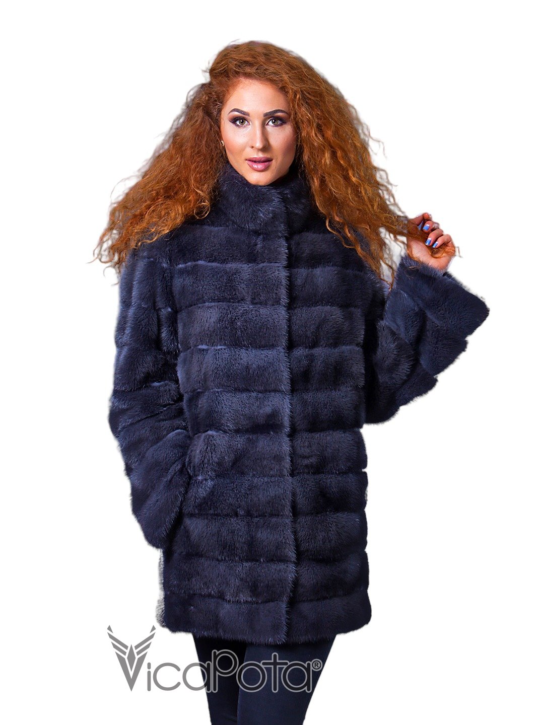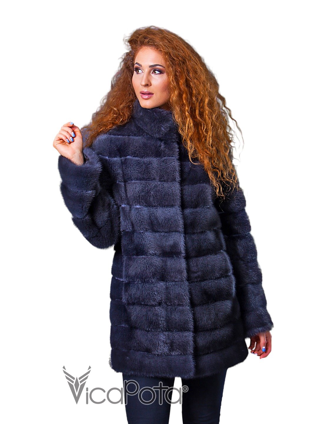Норкова шуба з високоякісного аукціонного хутра кольору графить. Практична довжина - 90 см перекриє довжину плаття, спідниці й добре буде сполучатися зі штанами. Модель викладена широкими поперечними смугами із цільних шкурок. Комір стійка на гачку. Фурнітура - шубні гачки, у колір шуби. Є дві бічні кишені й один внутрішній. Сучасна й стильна шуба - must have будь-якої модниці, що обирає тепло комфорт і шик.
