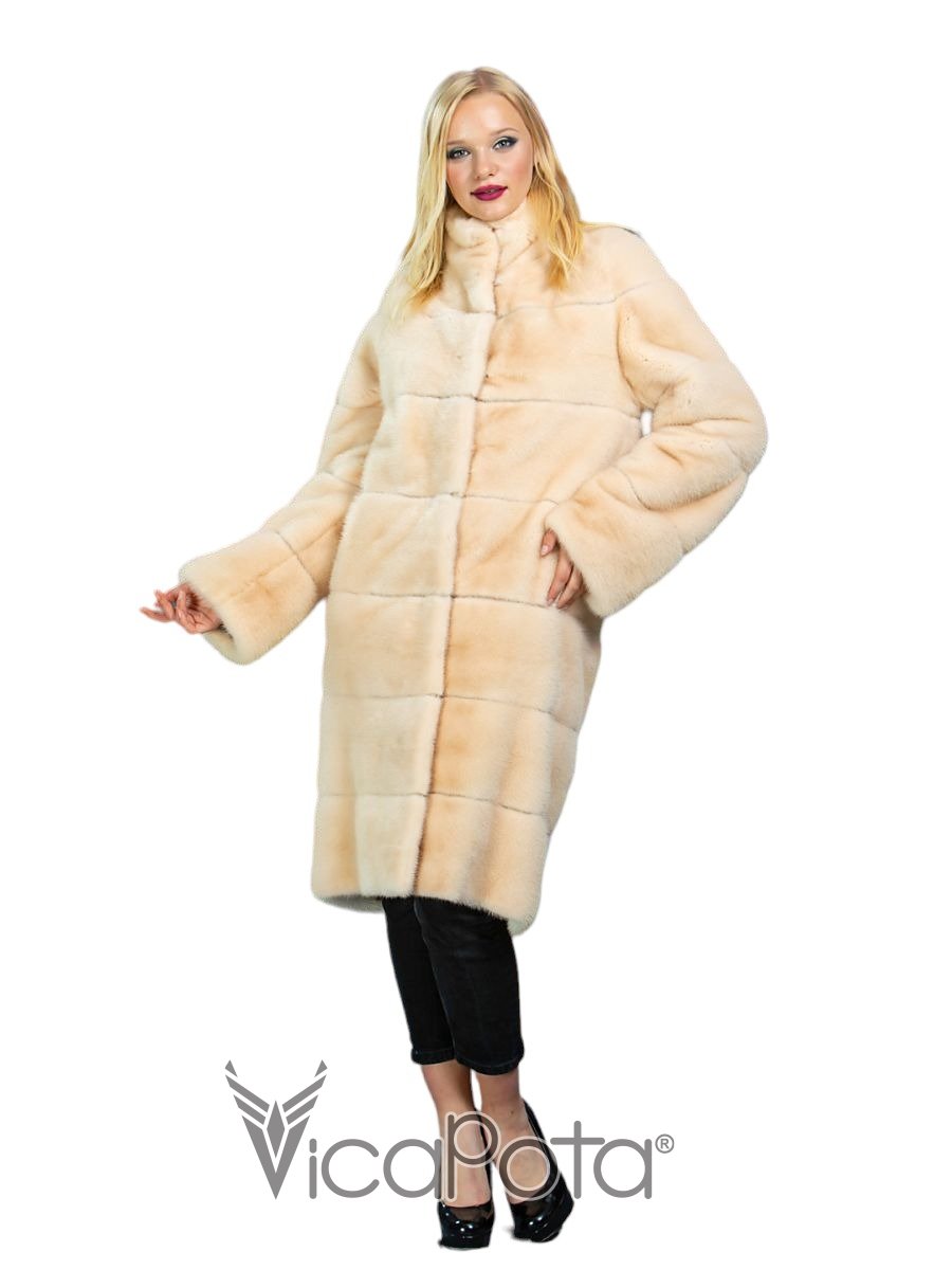 Норкова шуба в модному кольорі пудра. Фурнітура шубні класичні гачки білого кольору. Довжина шуби 100 см. Розмір 40-42. Комір виробу стійка, яка легко застібається на гачок. Є дві функціональні бічні кишені. Шуба крою барило, хутро норки викладений широкими поперечними смугами. Дана стильна й модна модель універсальна для будь-якого стилю одягу й завжди вигідно виділить і підкреслить Вашу індивідуальність і смак.
