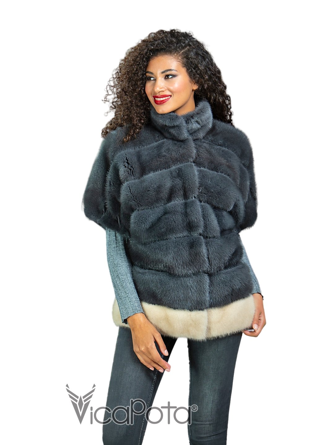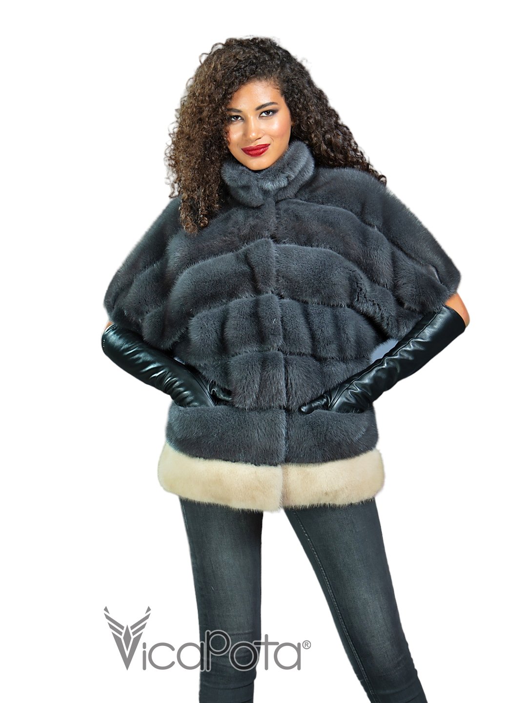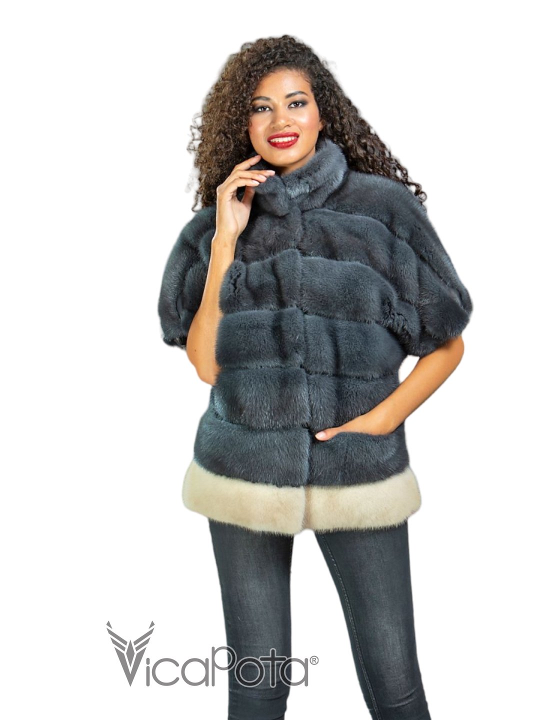 Норкова шуба з високоякісного хутра норки з комбінацією кольору графить і паломіно . Норкова шуба довжини «автоледі» 63 см , розмір 42-44. Рукав футболочний . Модель шуби викроєна із цільних шкурок норки поперечними смугами із вставками шкіри меду ними, а позаду пошита в розпуск. Фурнітура шубні гачки чорного кольору. Модель прямого силуету із класичним коміром - стійка й прорізними кишенями. Сучасна й розкішна шубка ідеально підійде для повсякденного й класичного стилю одягу.