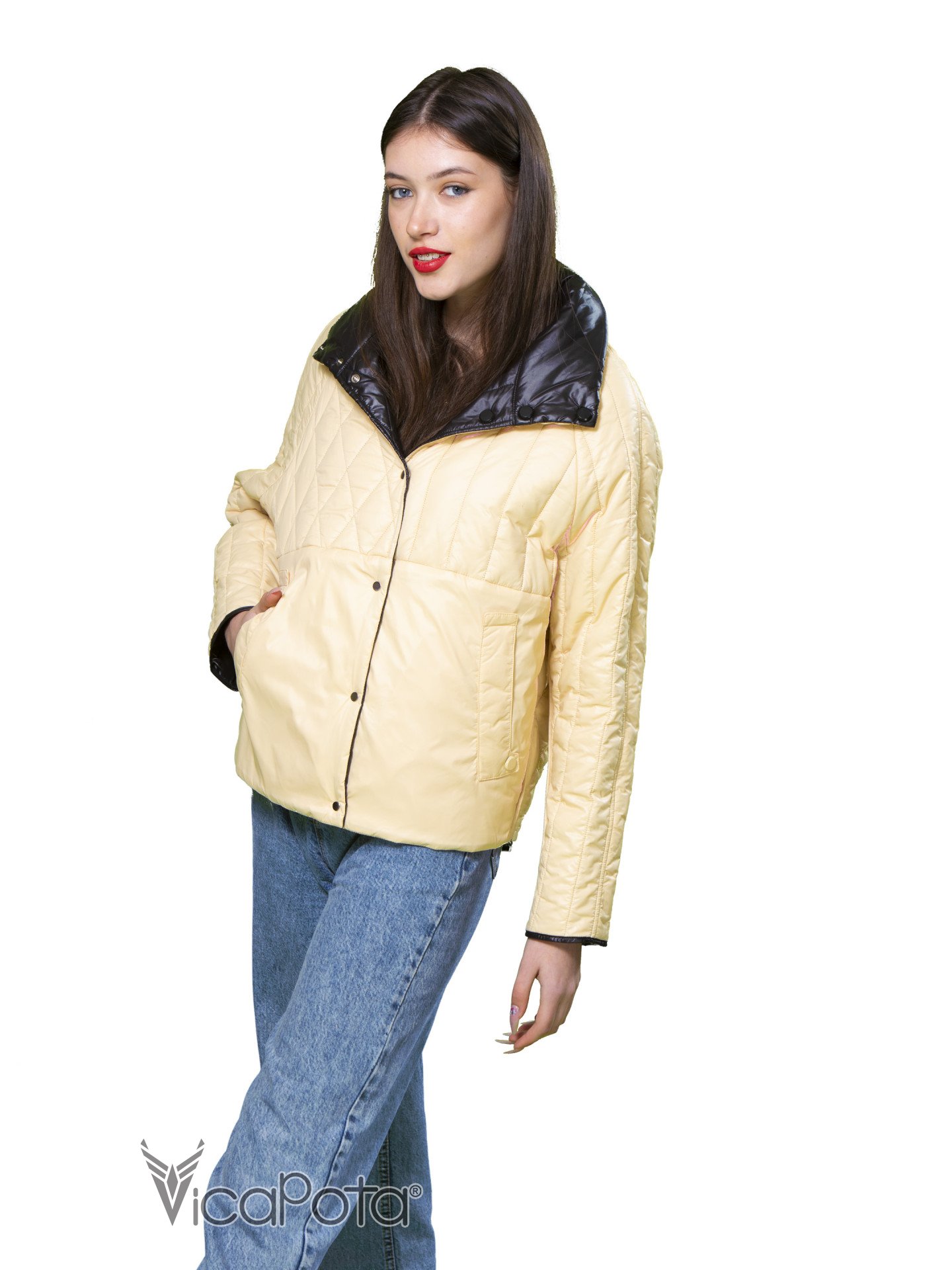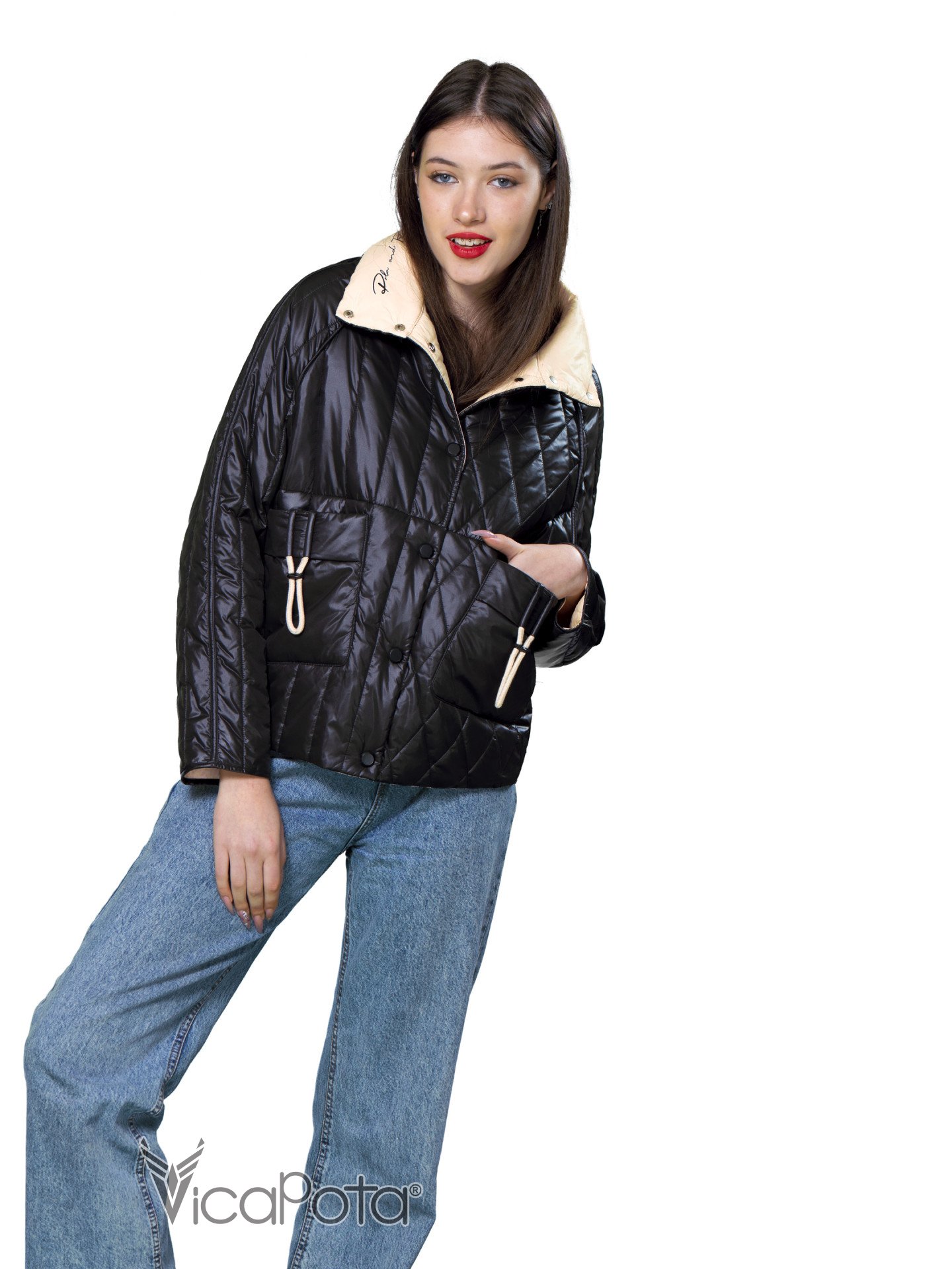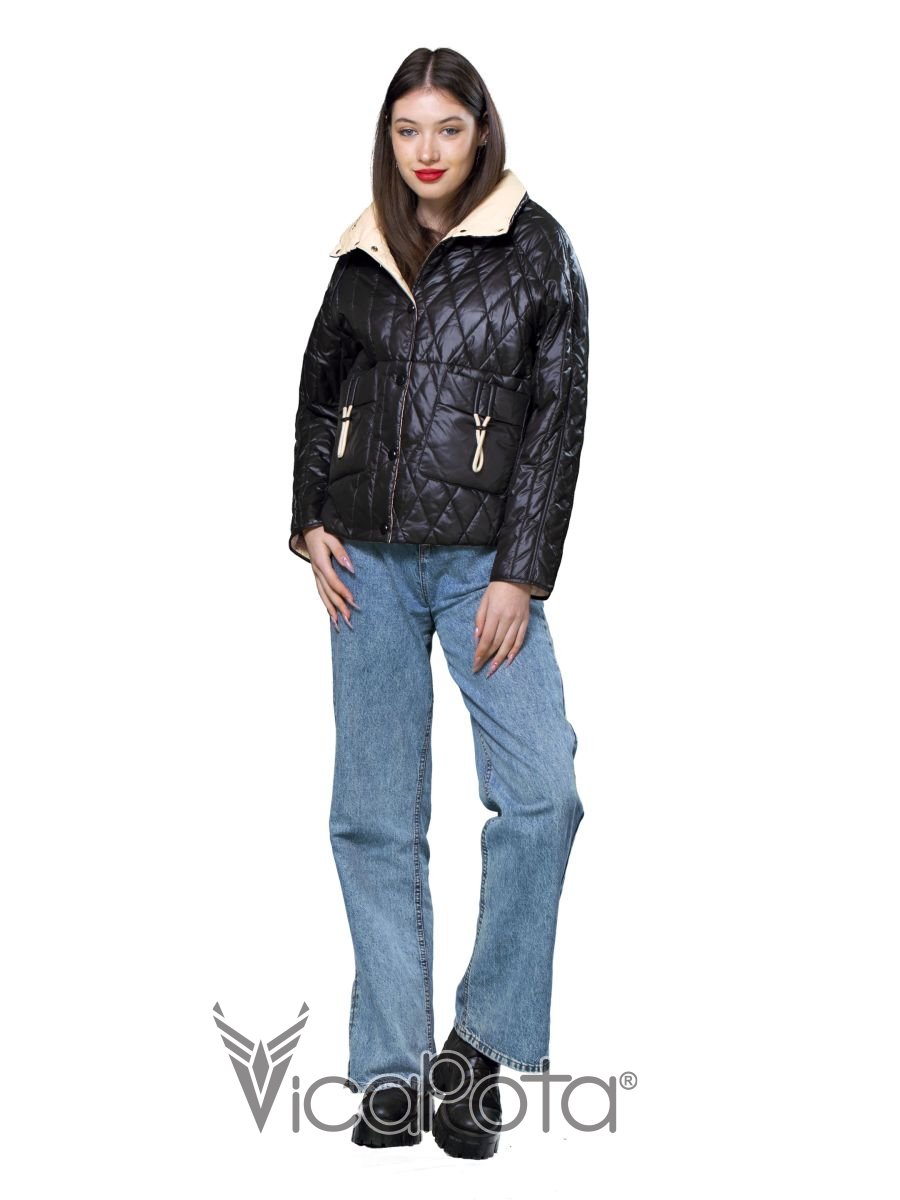Куртка має легке утеплення, тому вам не буде холодно навіть у прохолодну весняну погоду. Але головною особливістю цієї куртки є те, що вона двостороння! З одного боку - чорний колір, з іншого - бежевий, що дає можливість створювати різні образи.