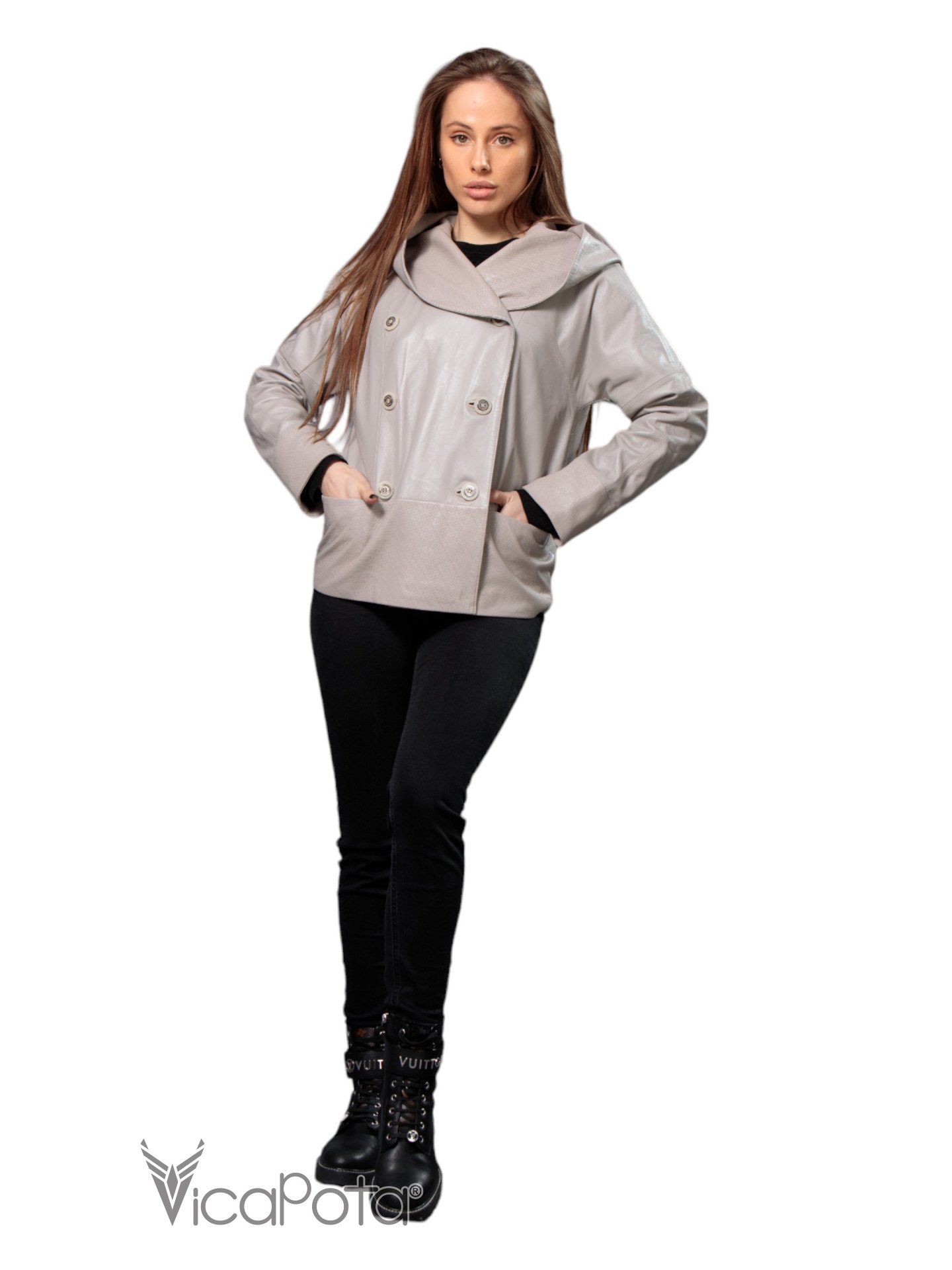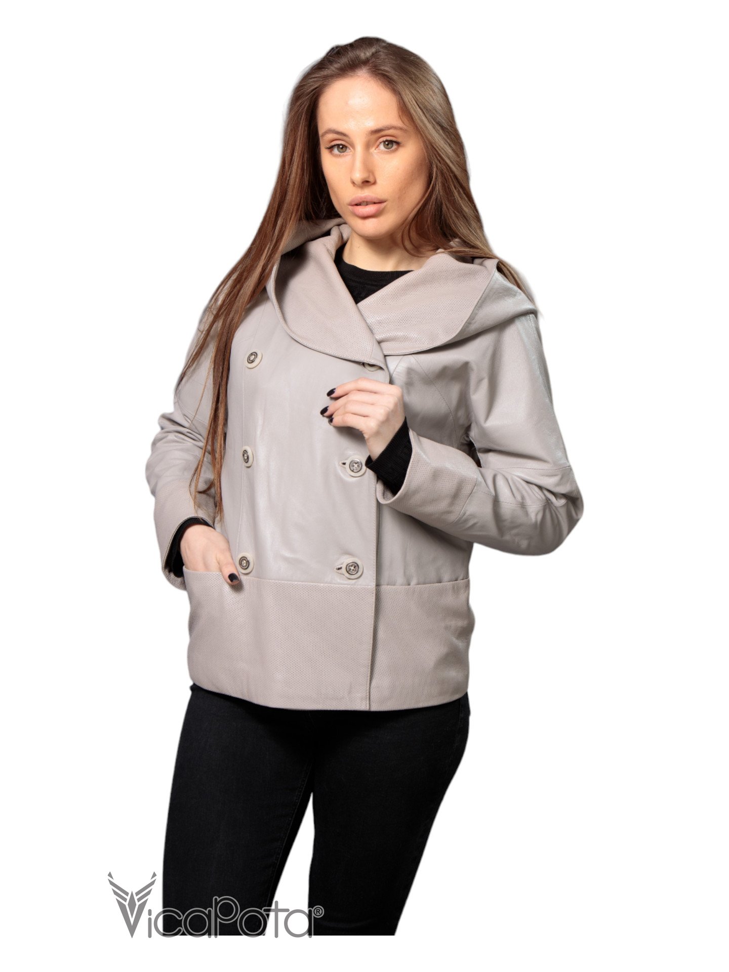 Жіноча шкіряна куртка зі знижкою 18-9485