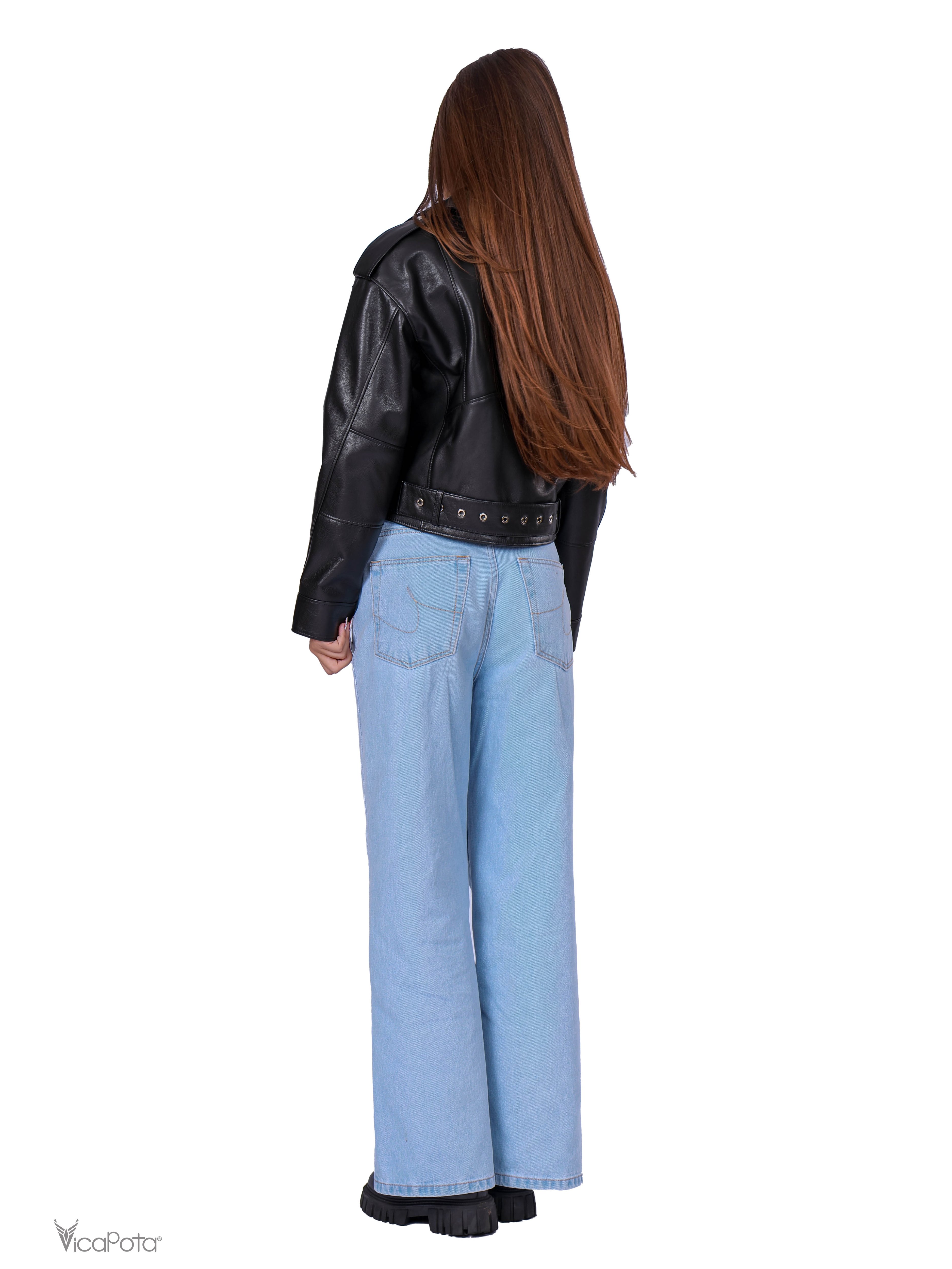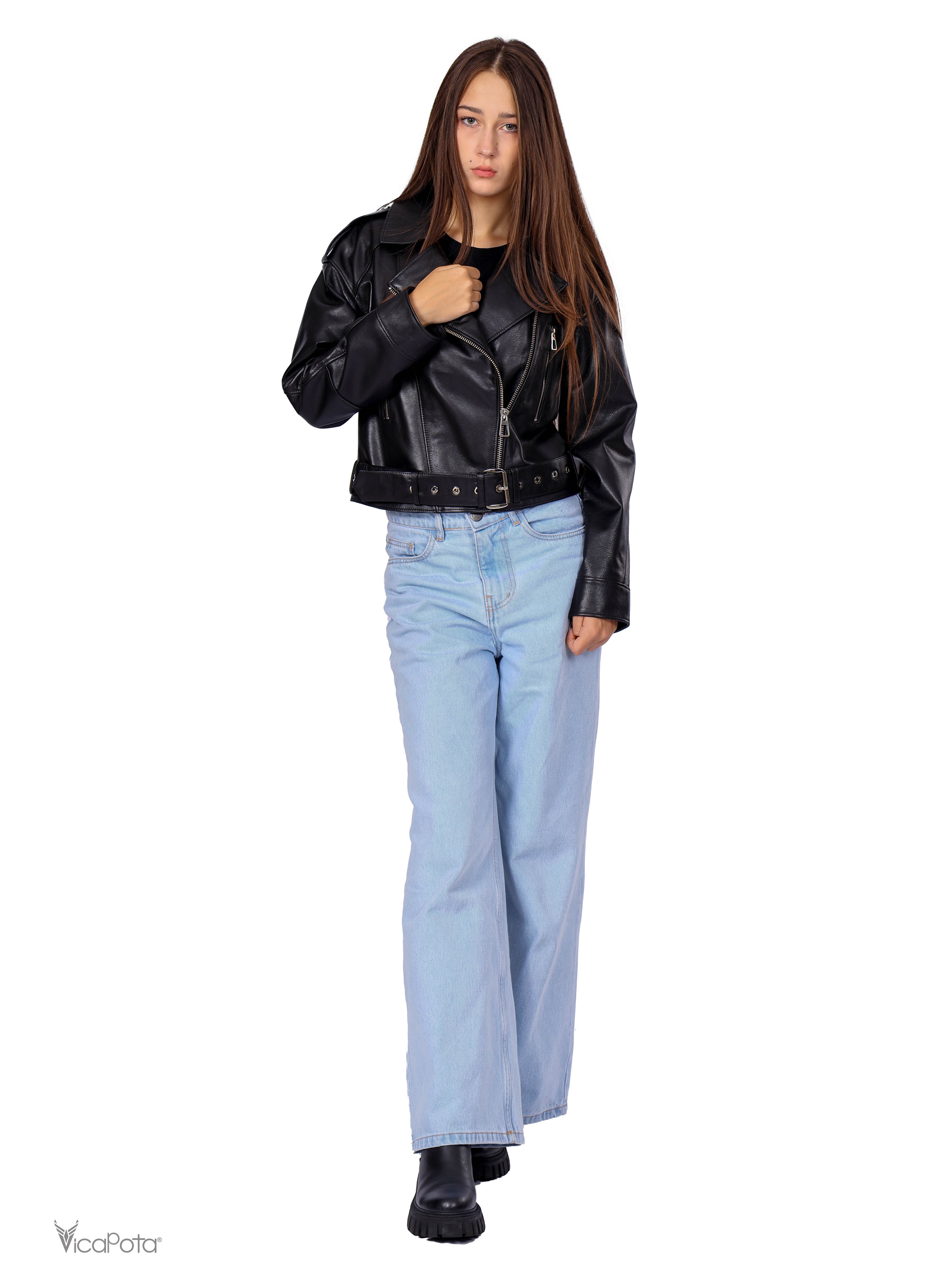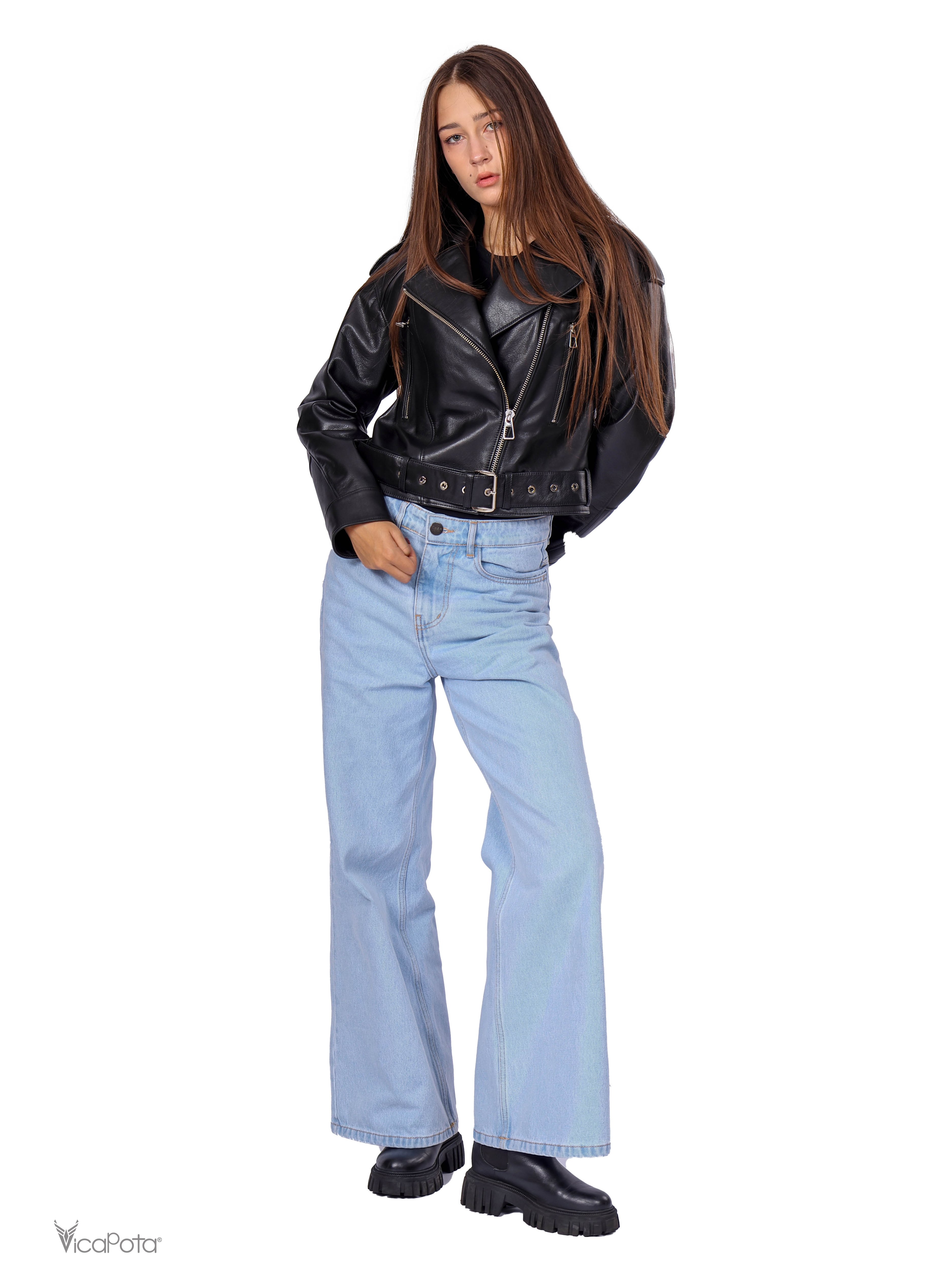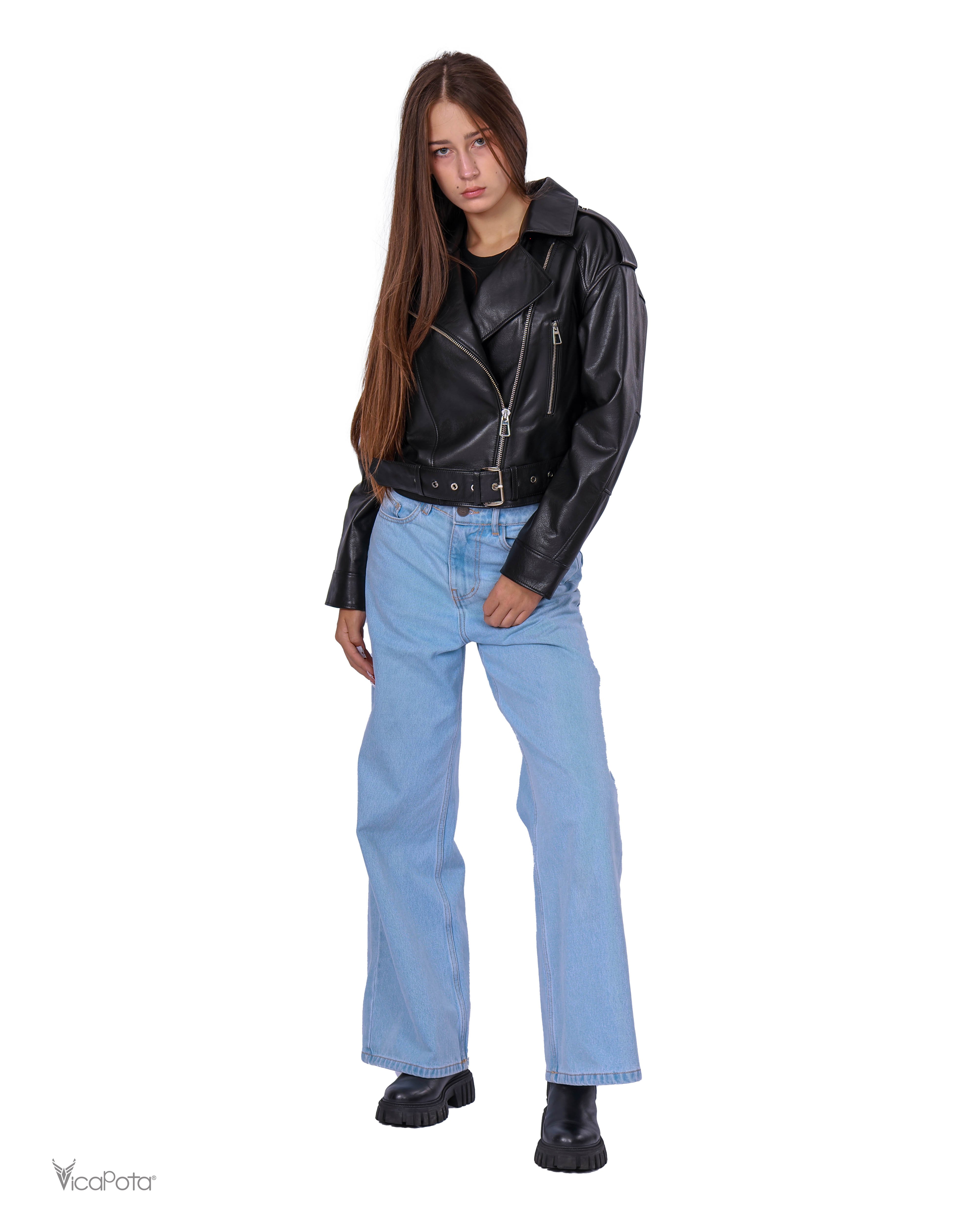 Ця жіноча коротка куртка-косуха з натуральної телячої шкіри преміум-класу стане стильним вибором для весни та осені. Довжина куртки 48 см, пояс на пряжці підкреслює фігуру та додає акцент на талії. Елементи, такі як погони та приспущене плече, надають моделі особливого стилю.