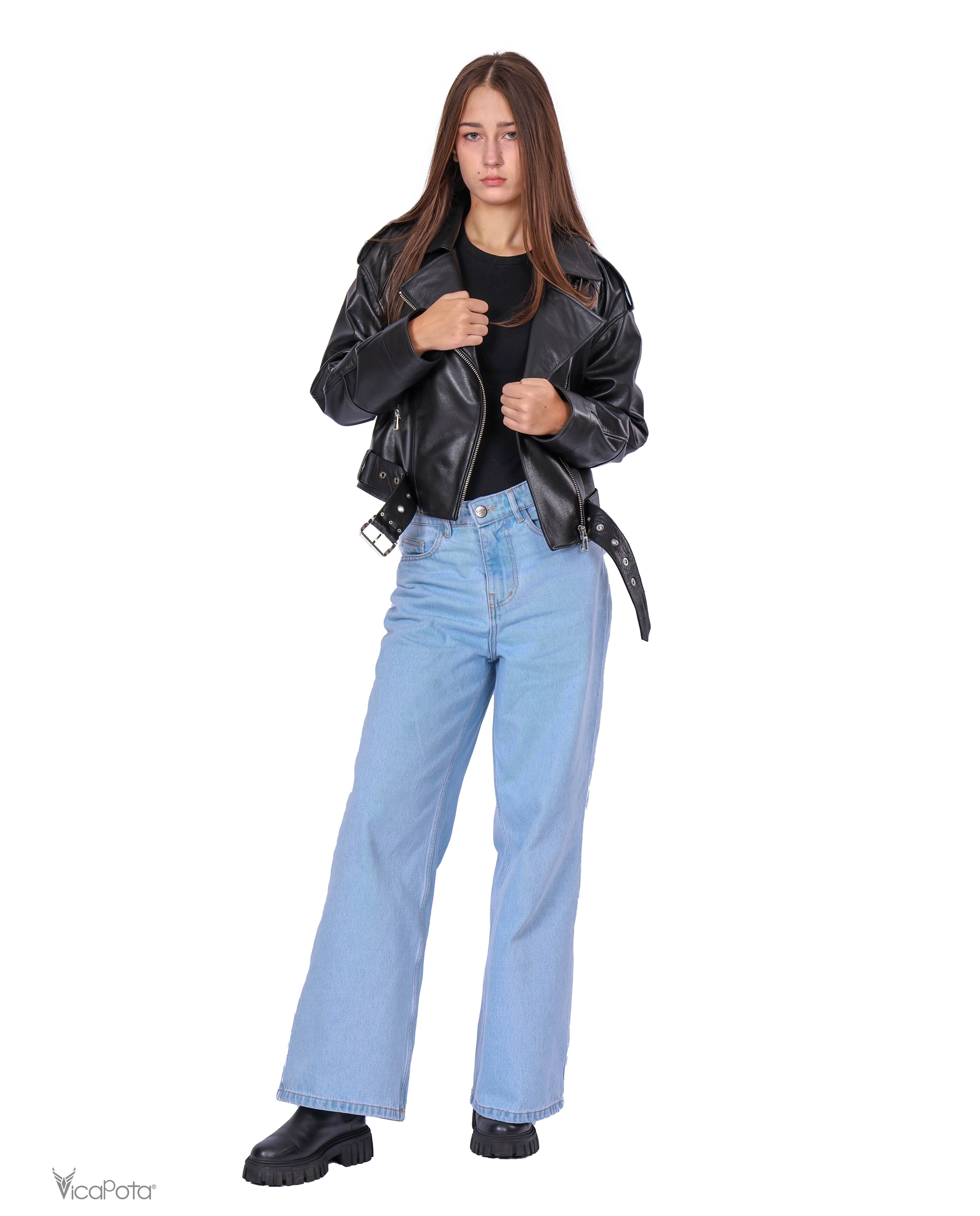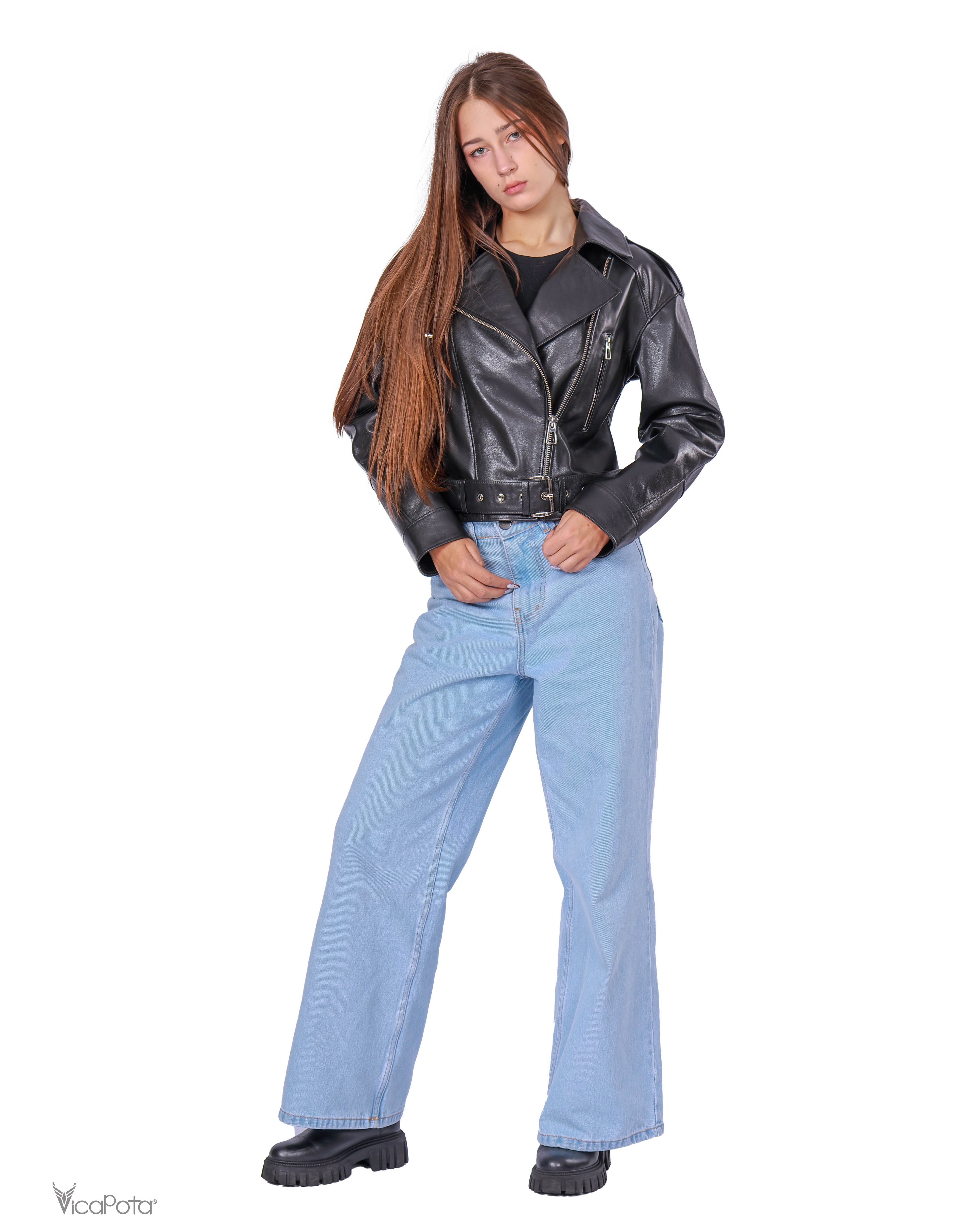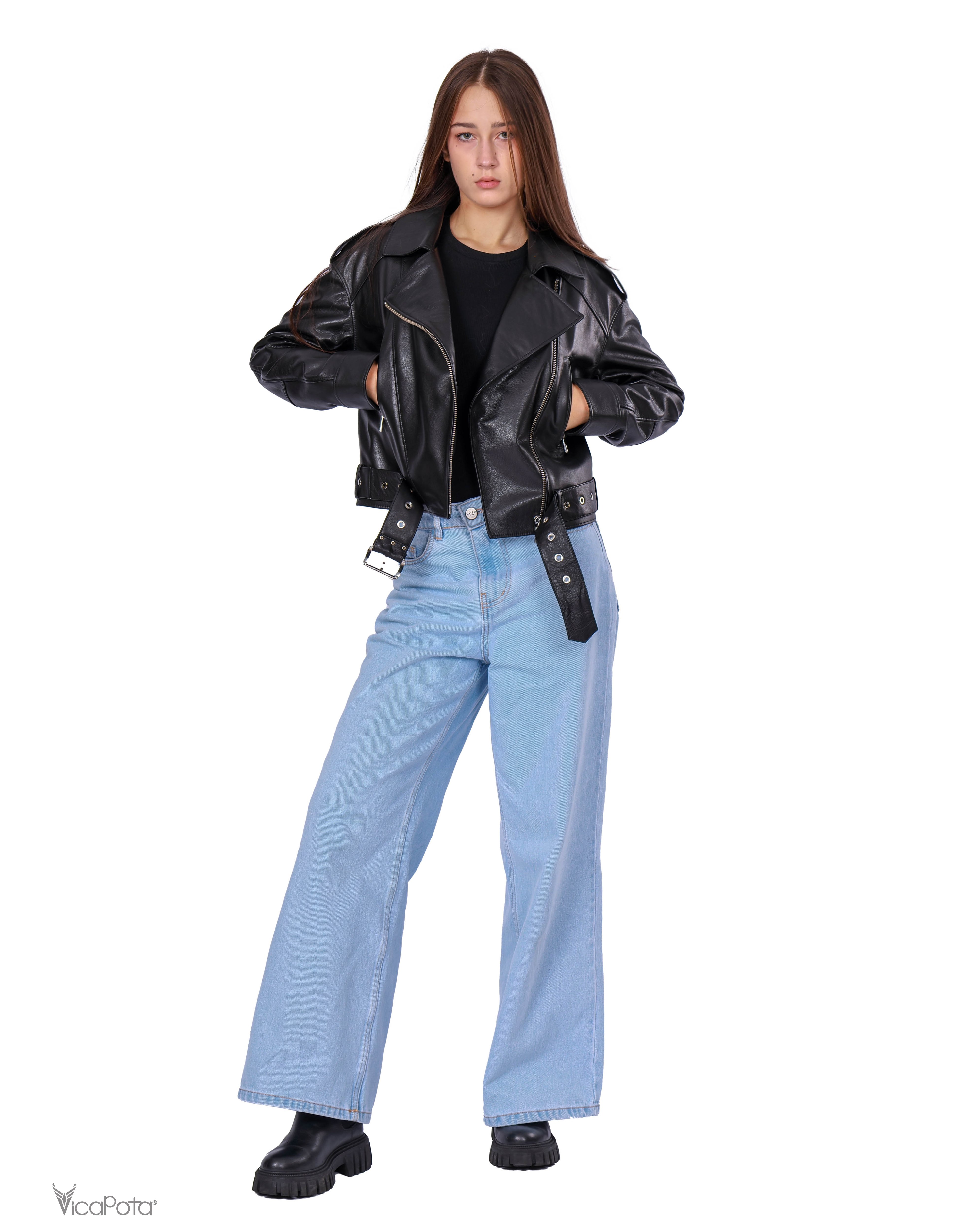 Ця жіноча коротка куртка-косуха з натуральної телячої шкіри преміум-класу стане стильним вибором для весни та осені. Довжина куртки 48 см, пояс на пряжці підкреслює фігуру та додає акцент на талії. Елементи, такі як погони та приспущене плече, надають моделі особливого стилю.