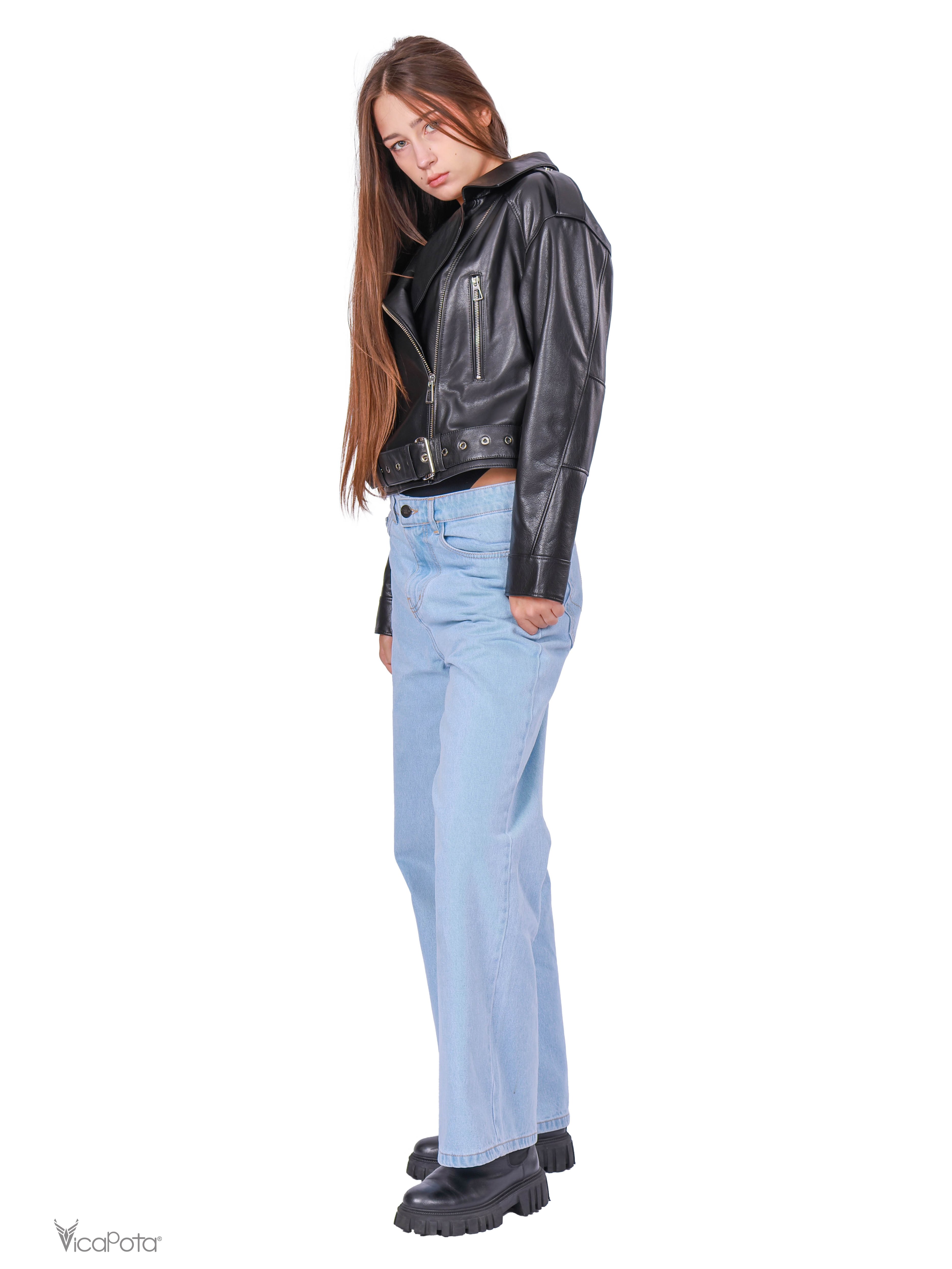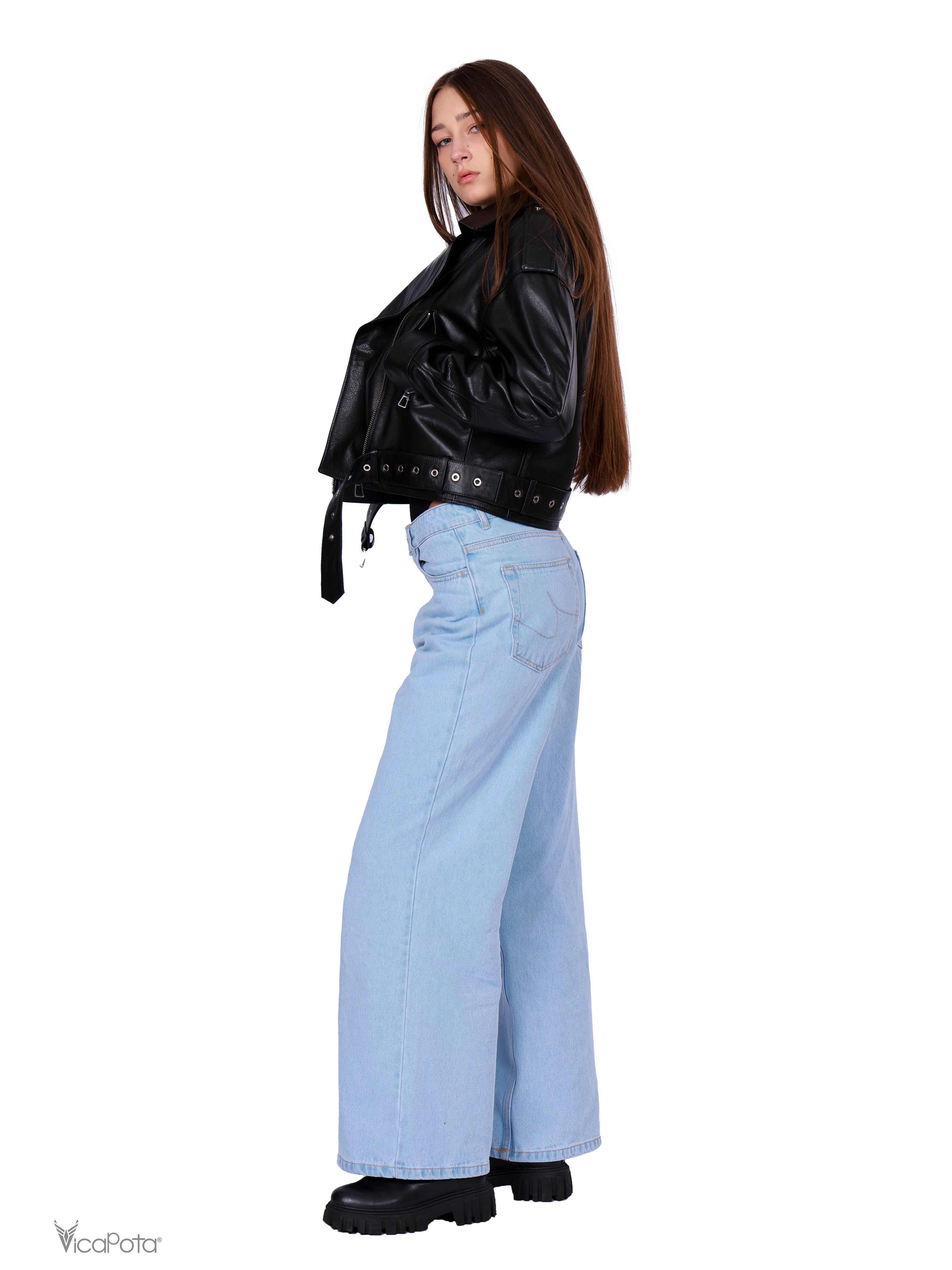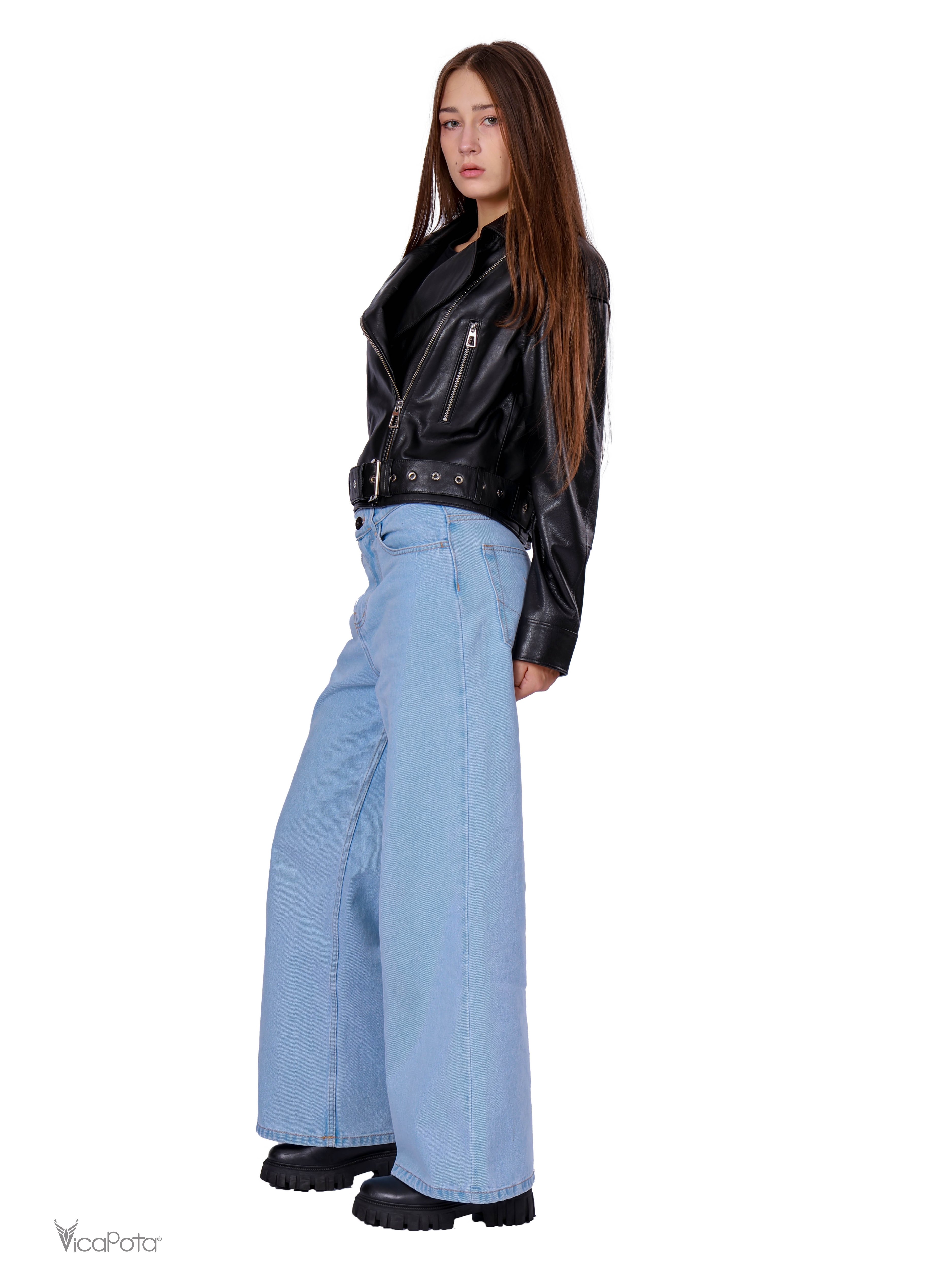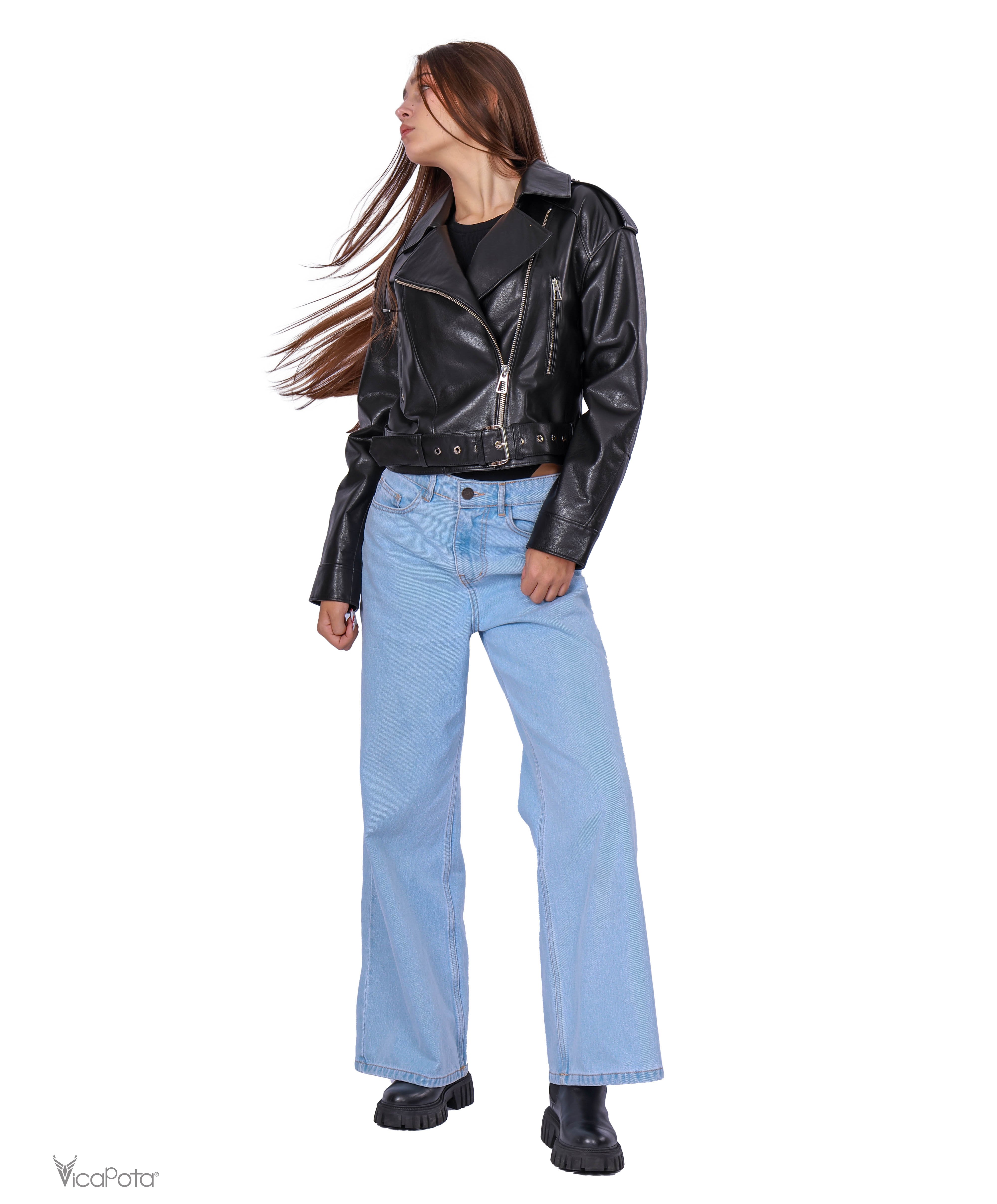 Ця жіноча коротка куртка-косуха з натуральної телячої шкіри преміум-класу стане стильним вибором для весни та осені. Довжина куртки 48 см, пояс на пряжці підкреслює фігуру та додає акцент на талії. Елементи, такі як погони та приспущене плече, надають моделі особливого стилю.