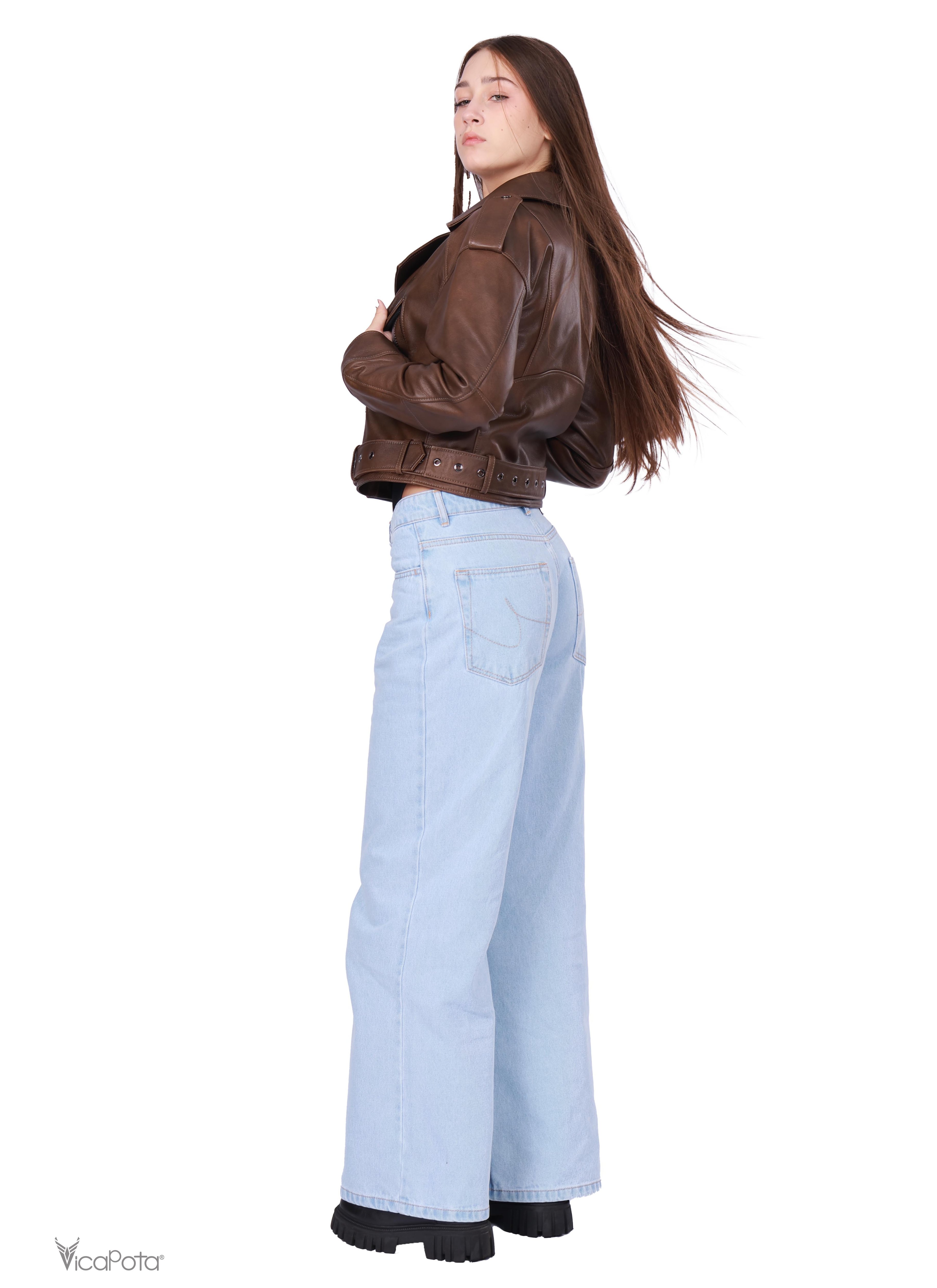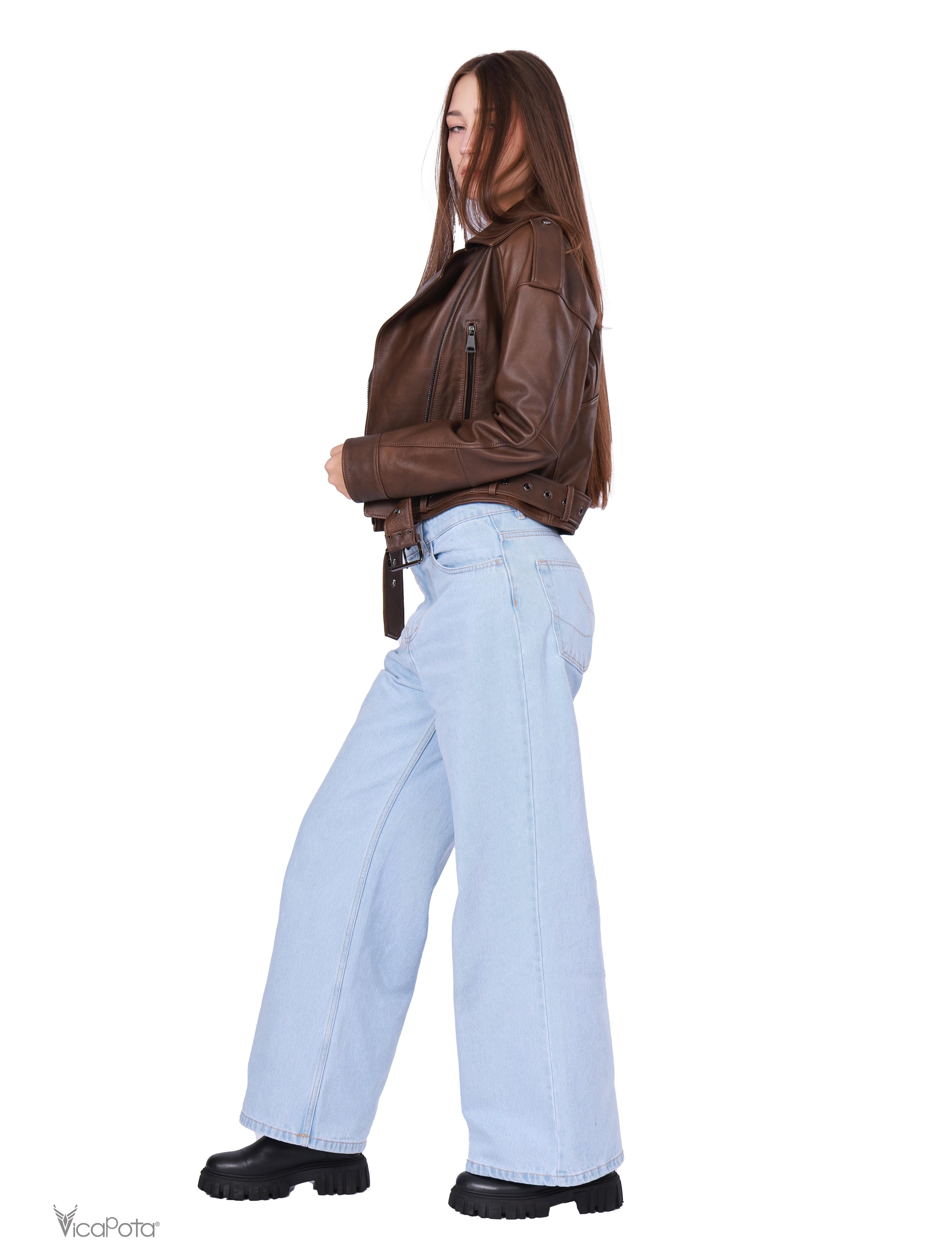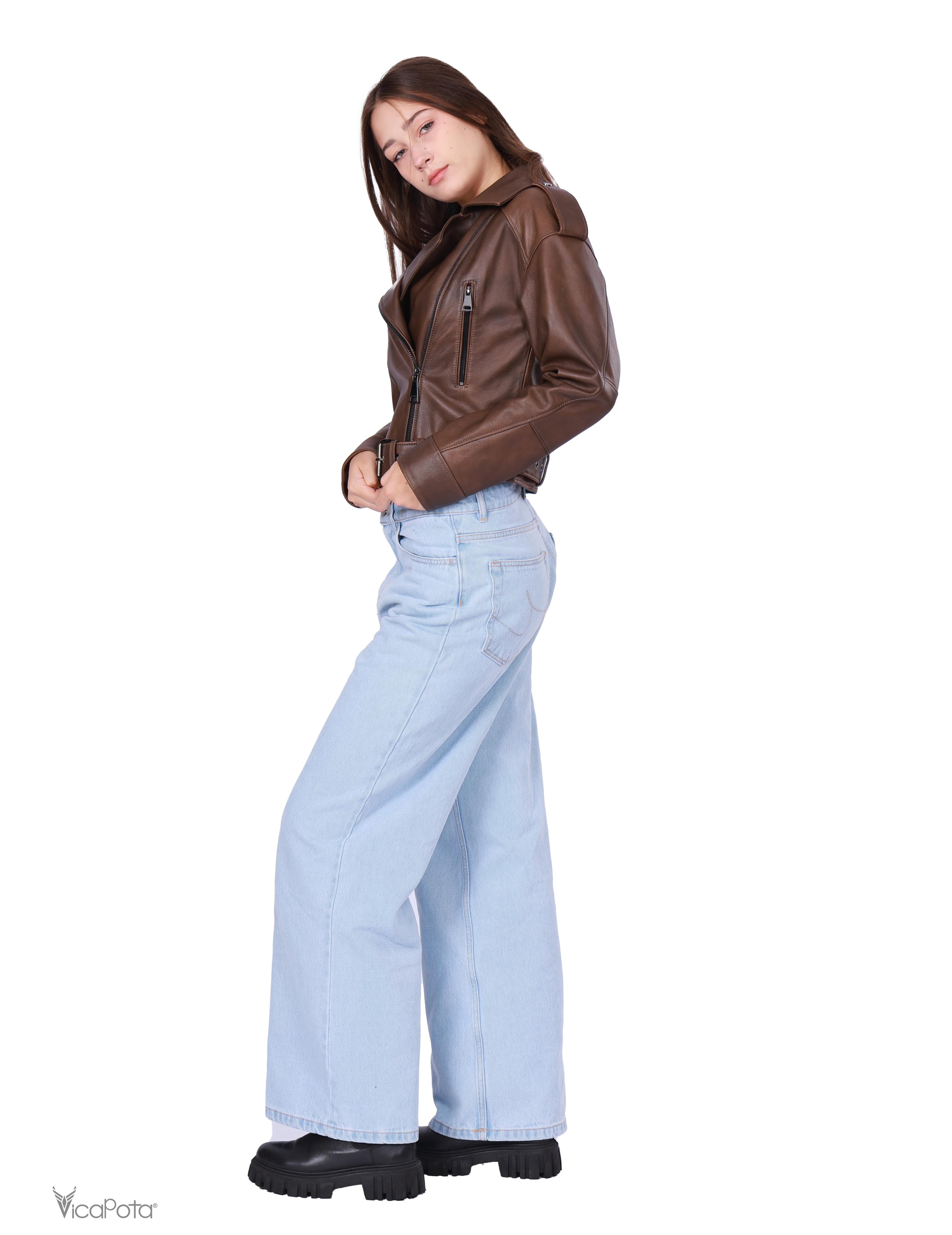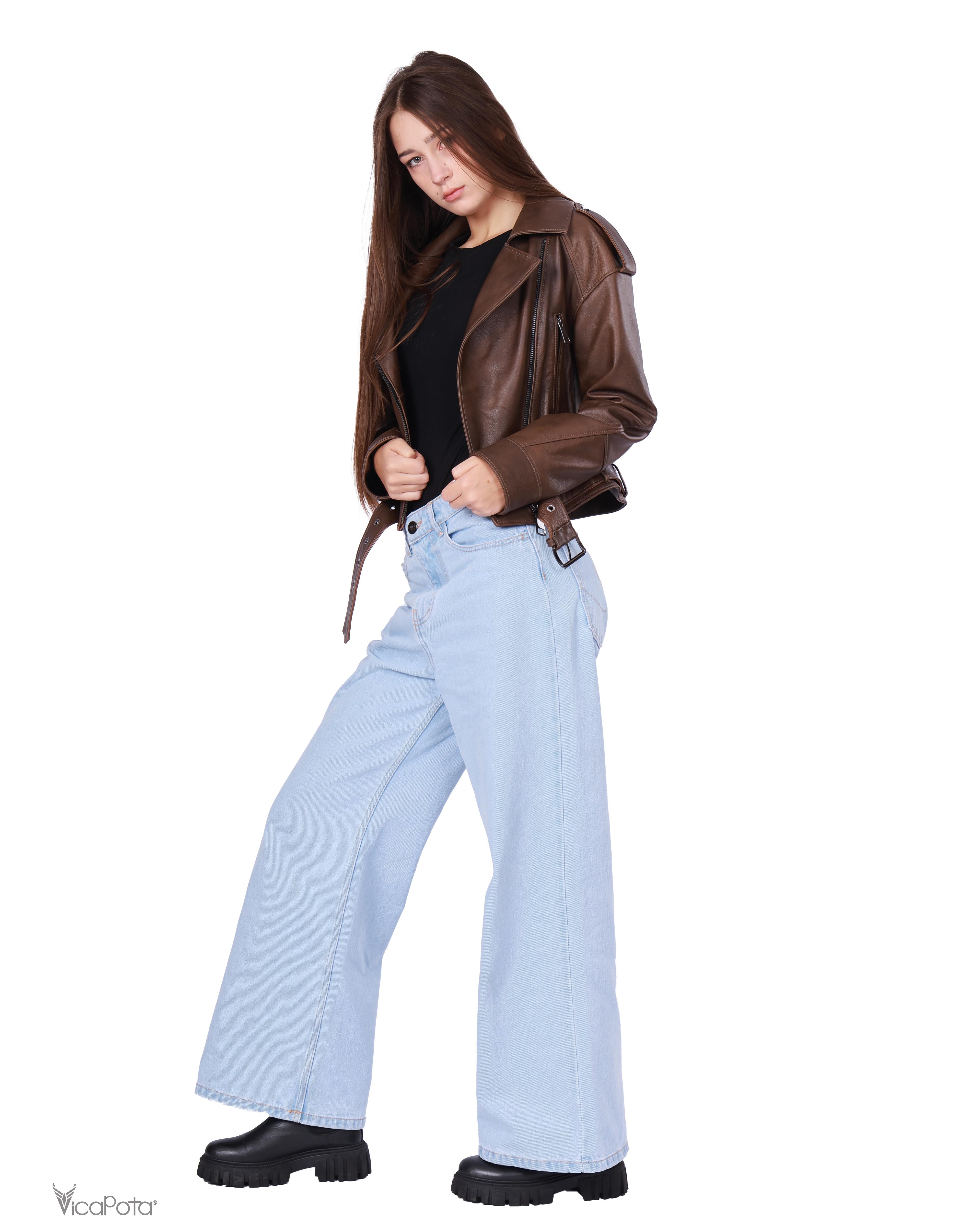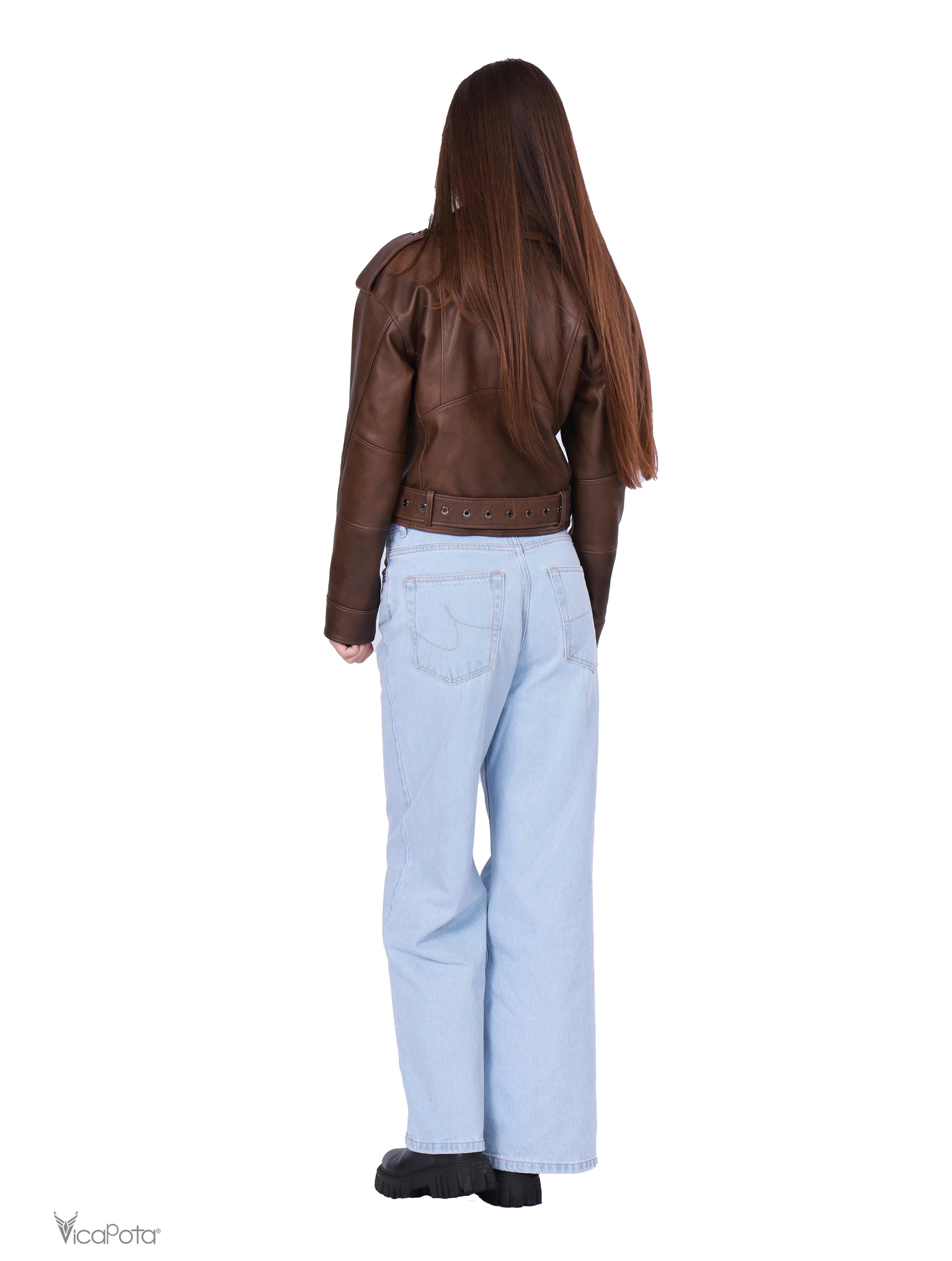 Ця жіноча коротка куртка-косуха з натуральної телячої шкіри преміум-класу стане стильним акцентом вашого образу. Довжина куртки 48 см, що робить її ідеальним вибором для тих, хто шукає зручність та елегантність. Куртка оснащена поясом на пряжці, що підкреслює талію і додає додатковий акцент на стиль байкерської косухи.