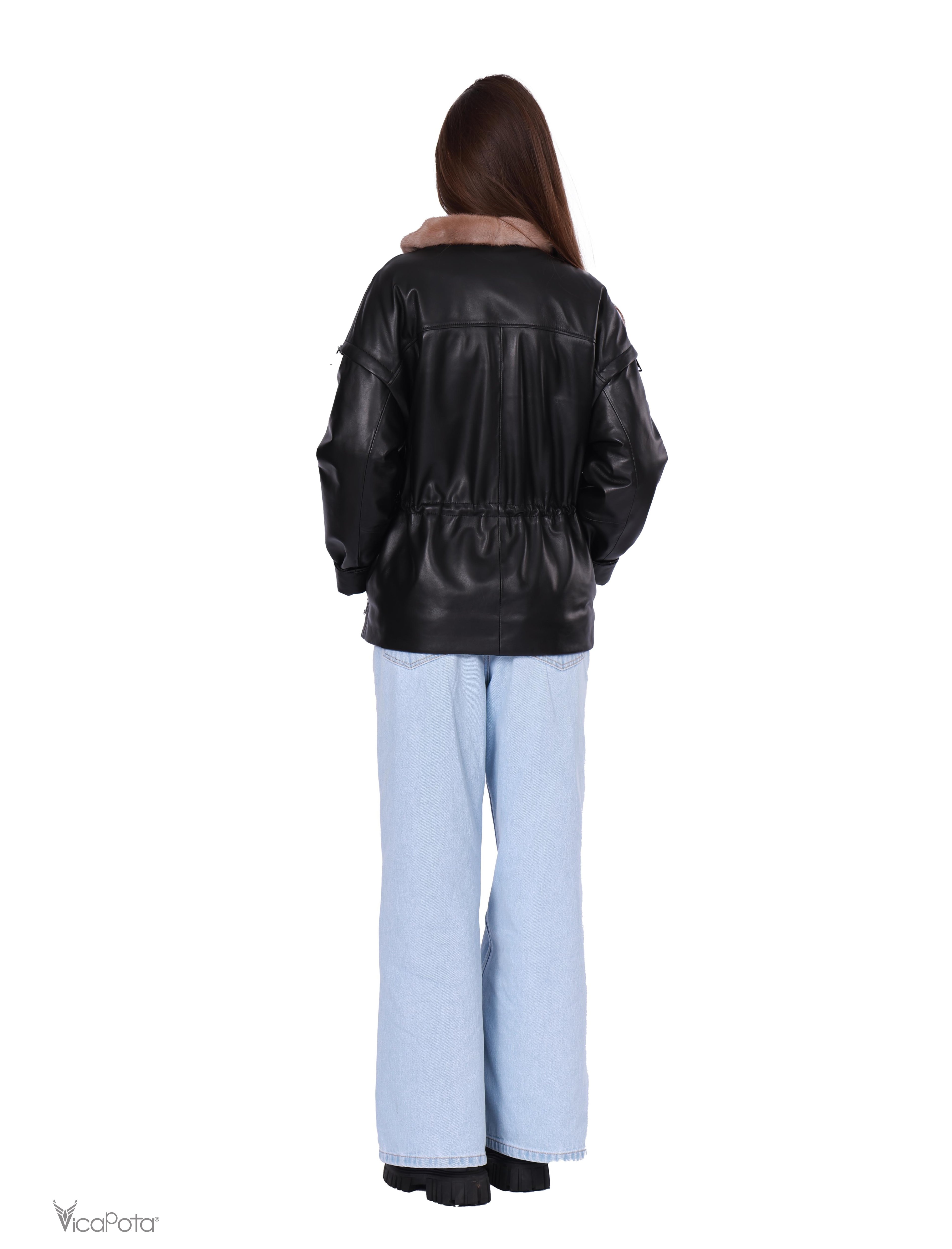 Куртка легко адаптується під вашу фігуру завдяки лаштункам на талії, що дозволяє підкреслити силует і створити жіночний образ. Чорна шкіряна куртка універсальна - вона відмінно комбінується з будь-яким одягом і ідеально підходить як для повсякденних виходів, так і для особливих випадків.