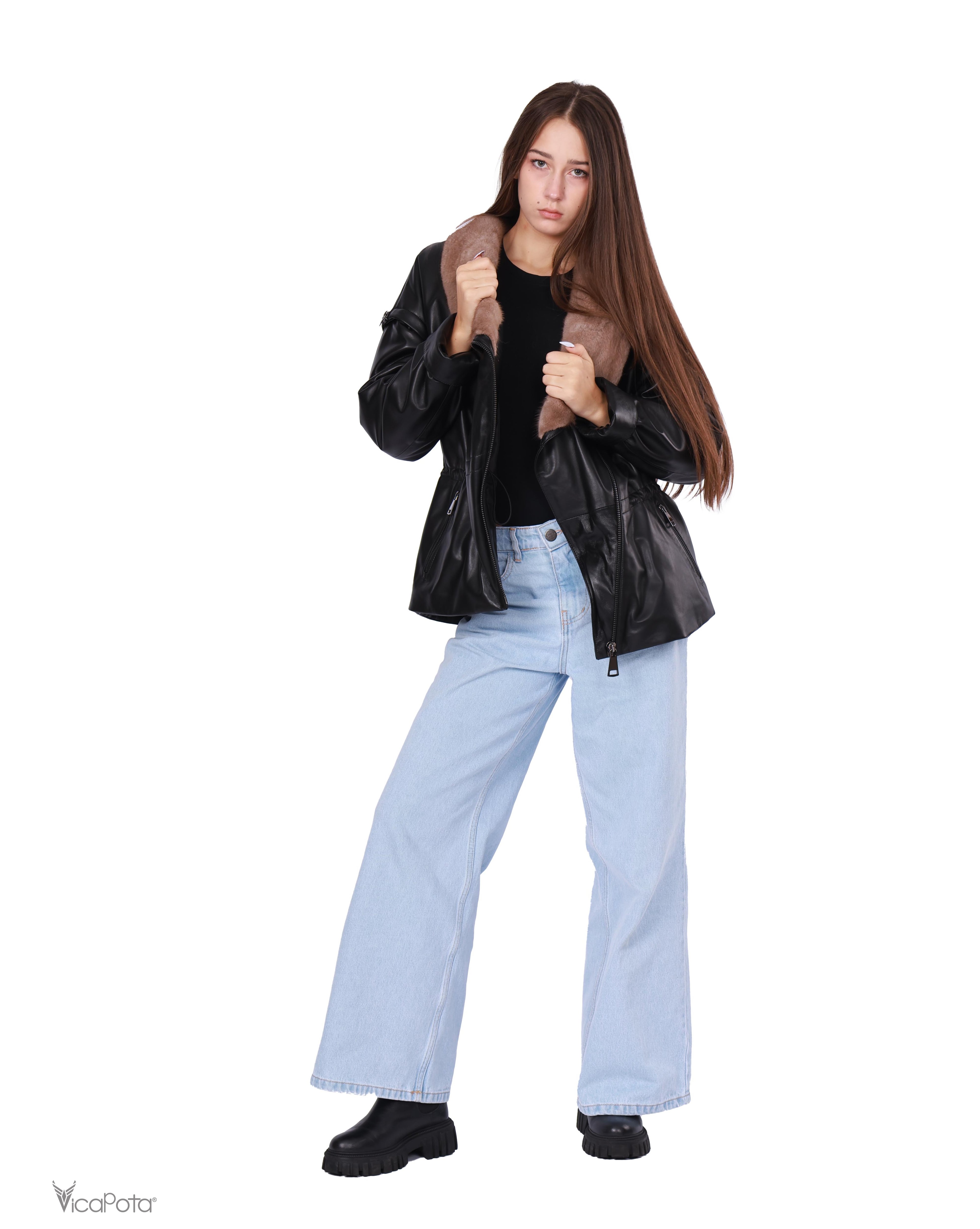 Ця жіноча шкіряна куртка - ідеальний вибір для тих, хто цінує якість, стиль та комфорт. Виготовлена з натуральної шкіри (планже) виробництва Туреччини, вона відрізняється міцністю та довговічністю. Чорна шкіряна куртка довжиною 70 см підходить як для холодної осені, так і для зими завдяки утепленій підкладці, яка зберігає тепло навіть у найморозніші дні. Комір з натуральної норки надає куртці розкішного вигляду, роблячи її не тільки практичною, але й стильною.