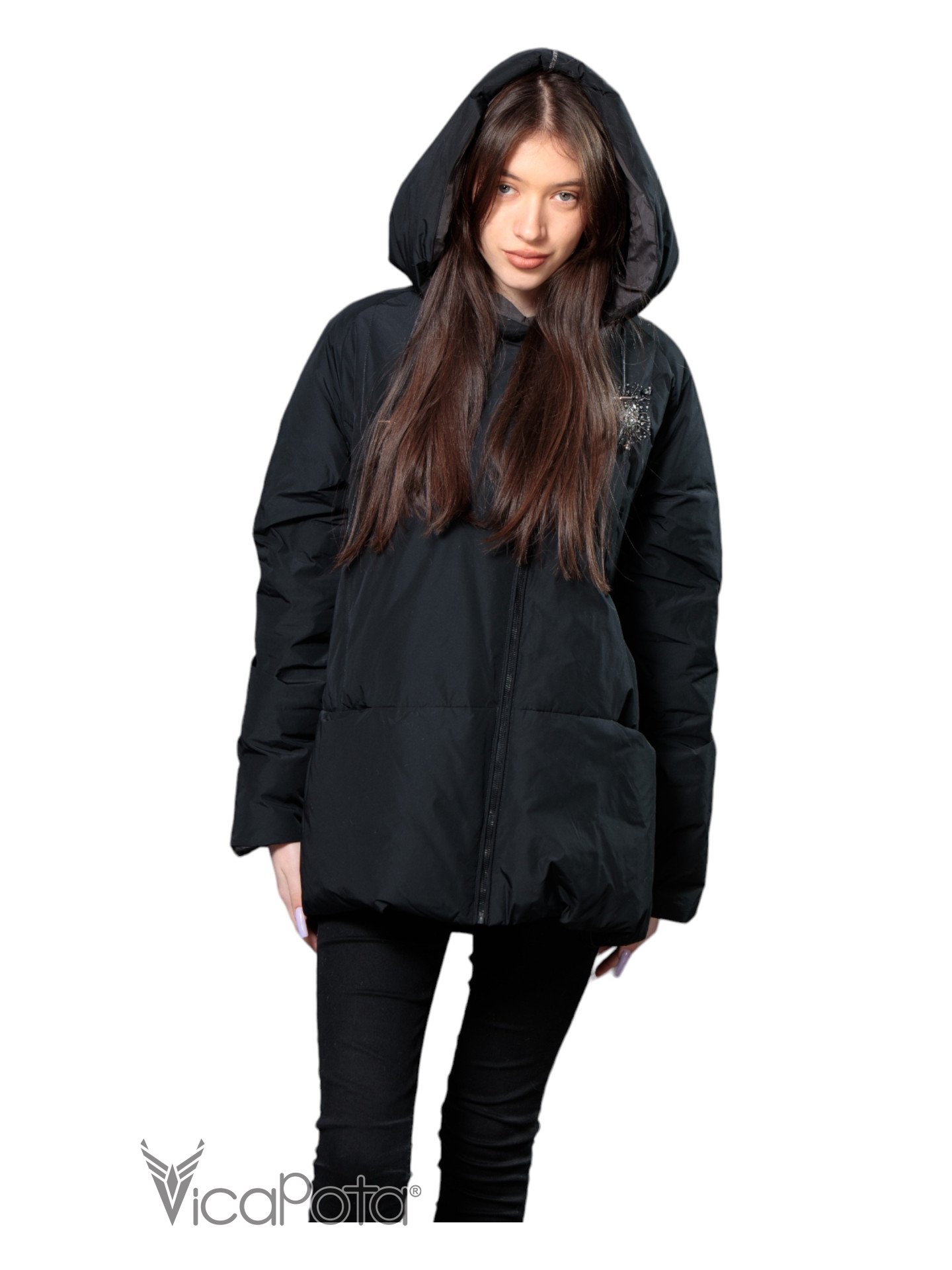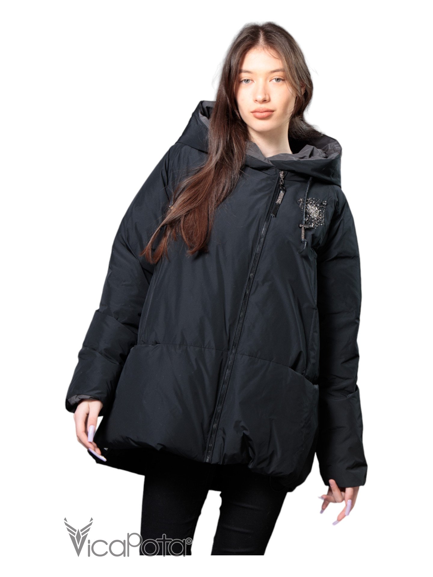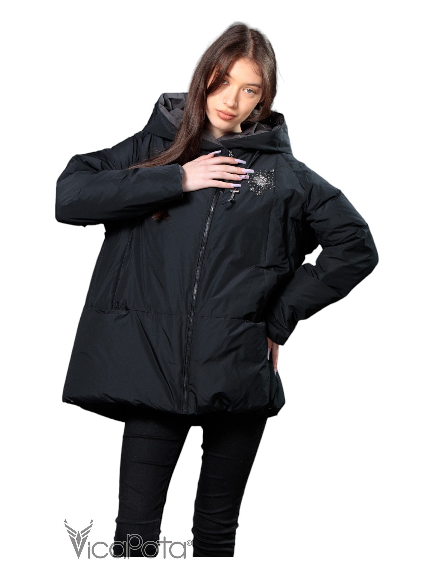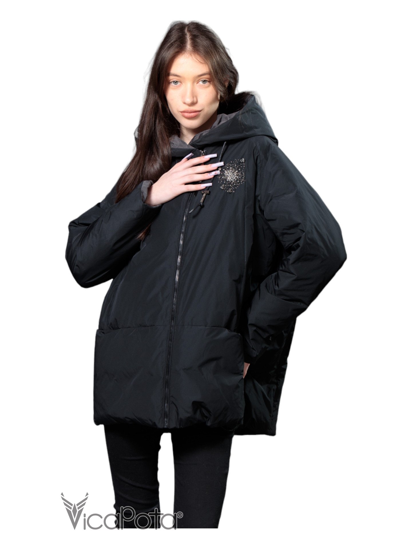 Елегантний пуховик чорного кольору довжиною 75 см - ідеальне рішення для холодного сезону.