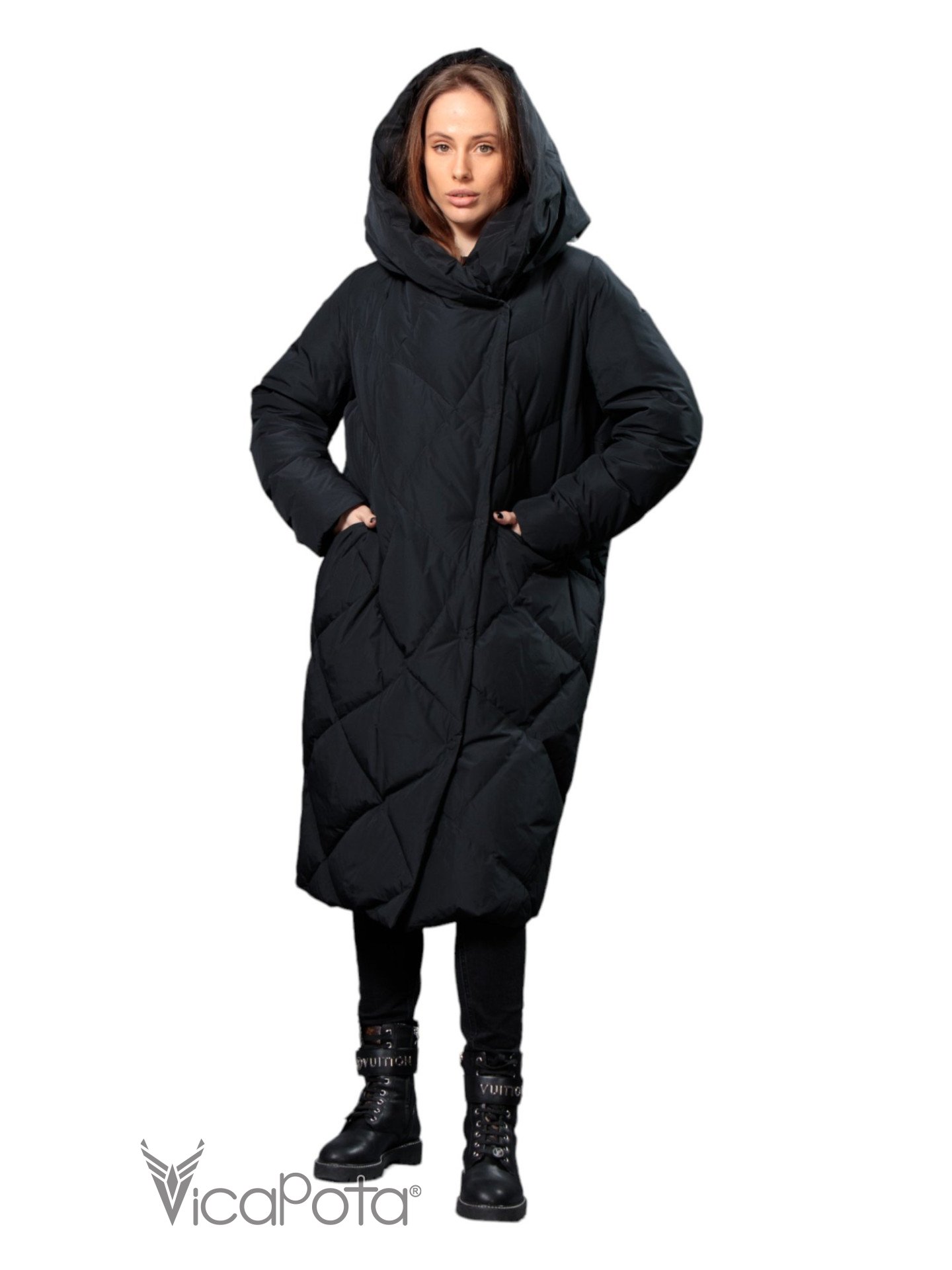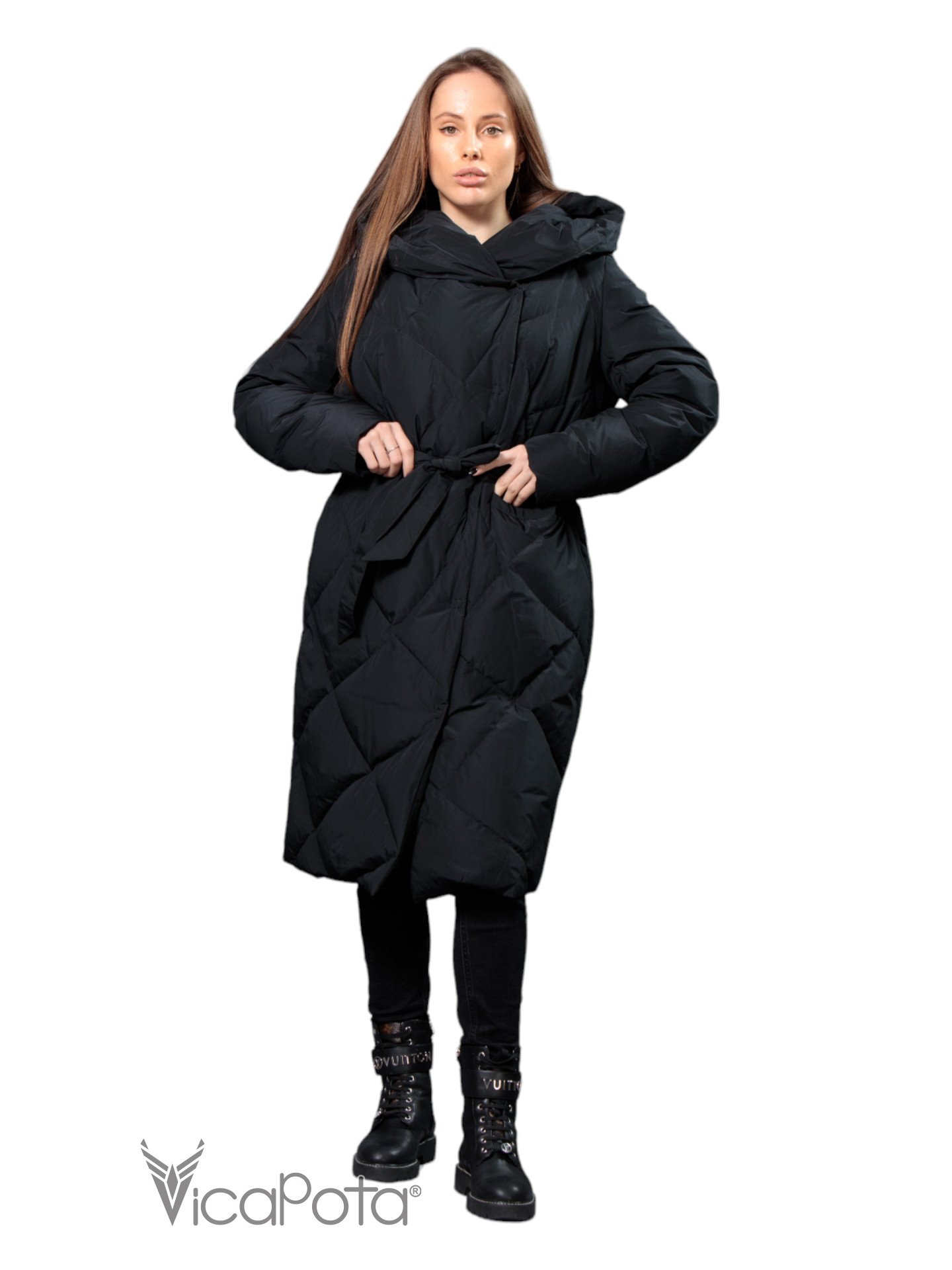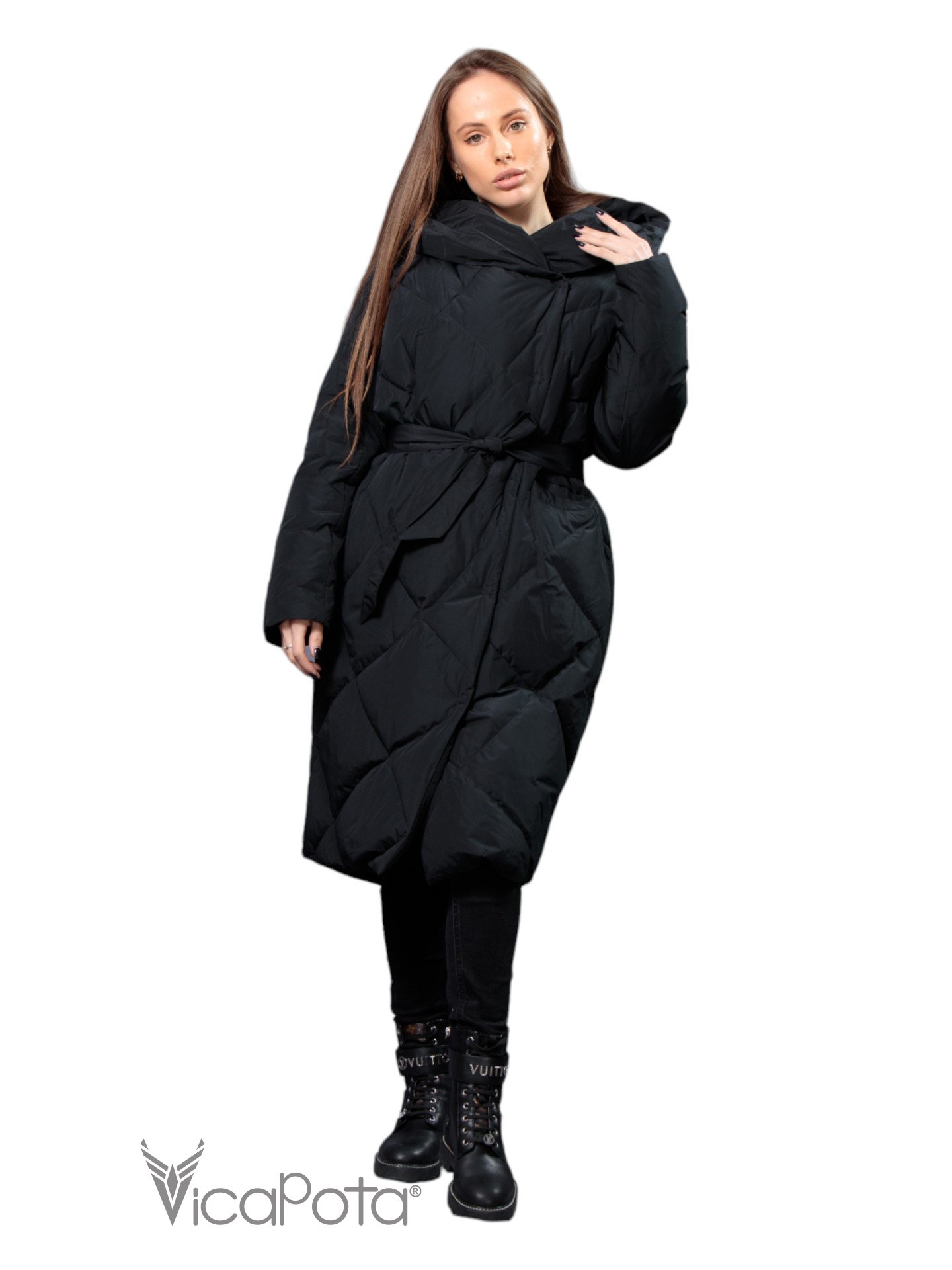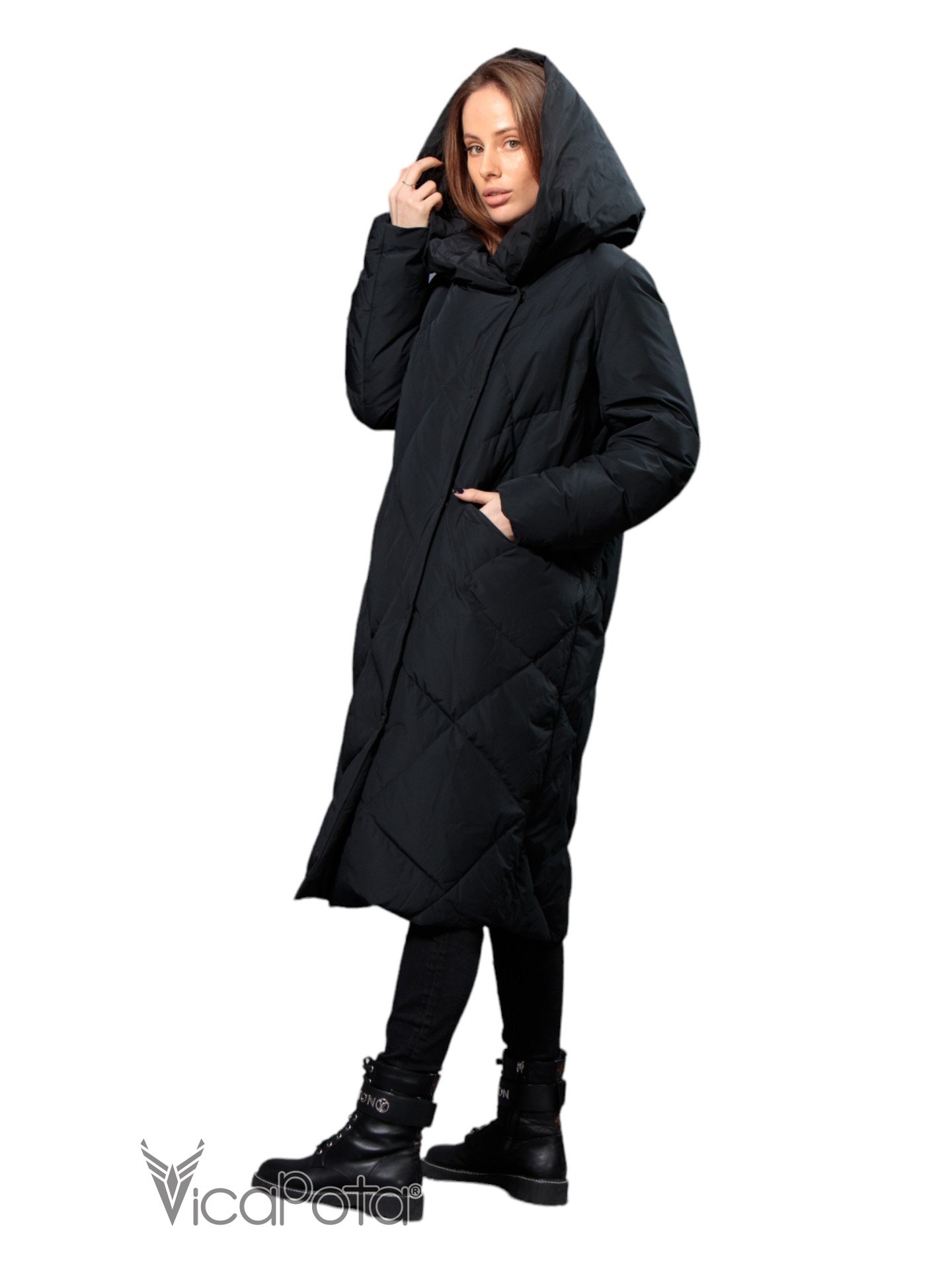 ✅ Довгий пуховик чорного кольору.