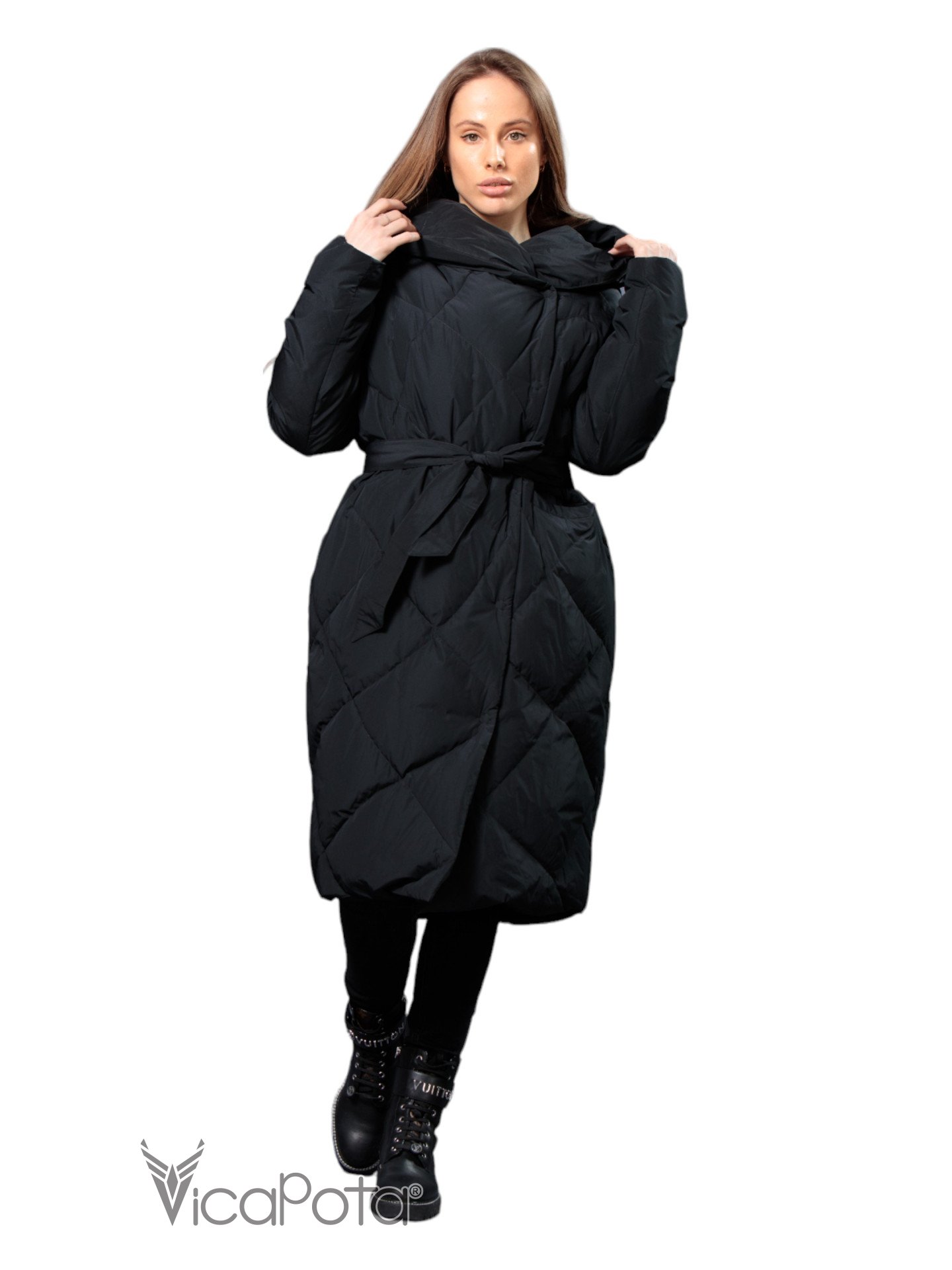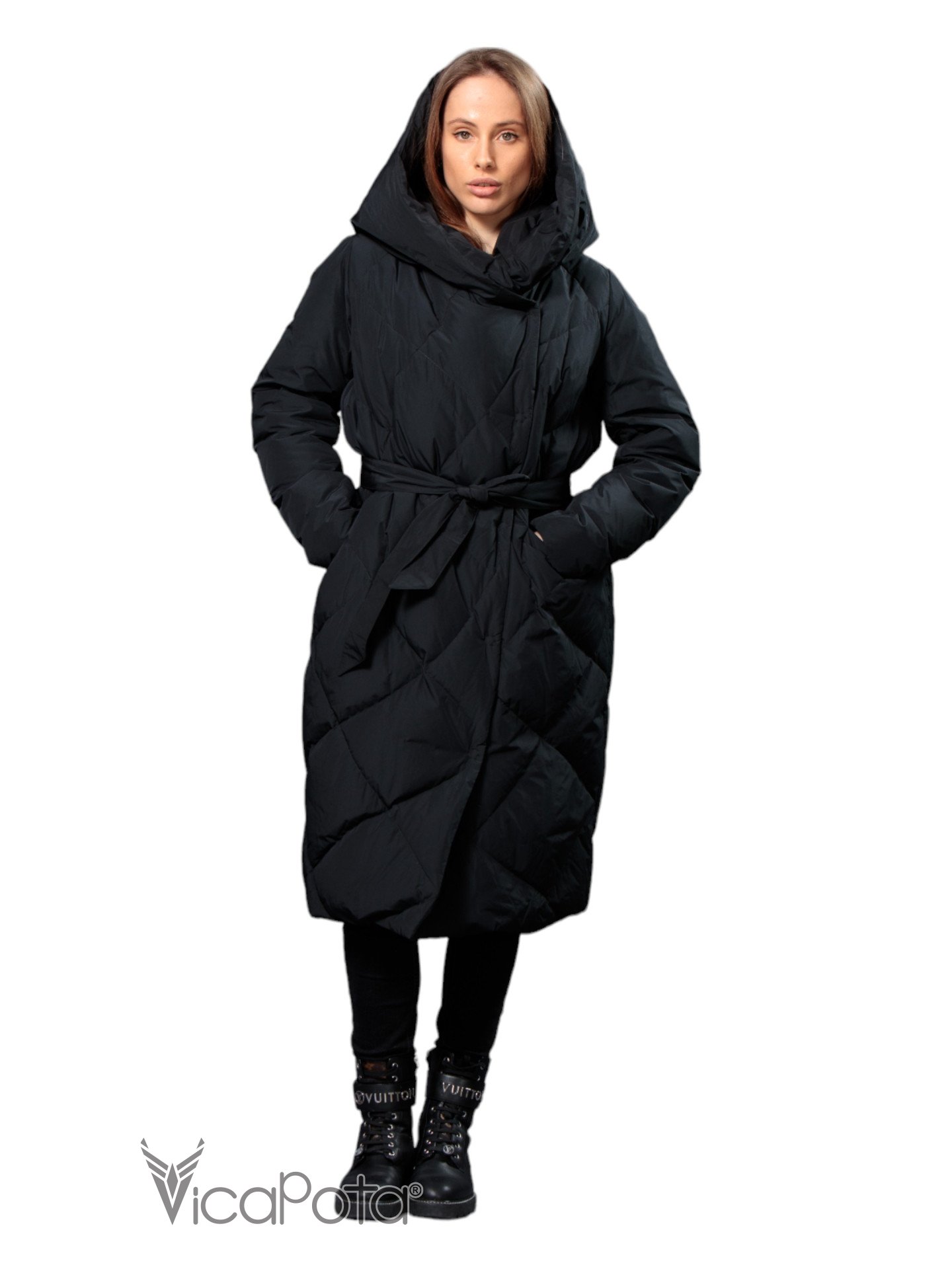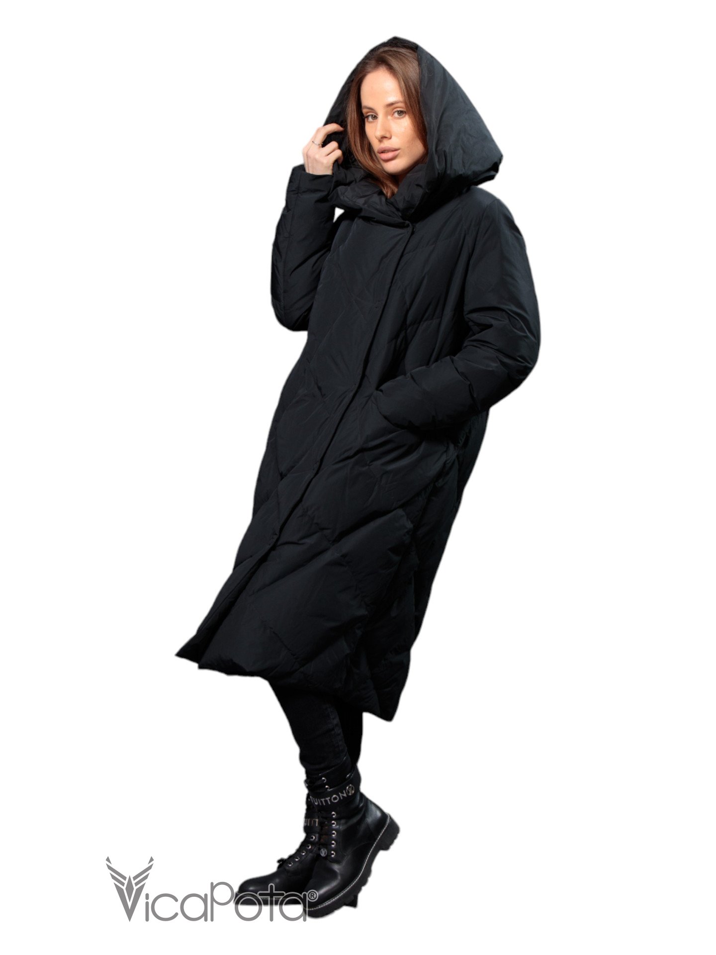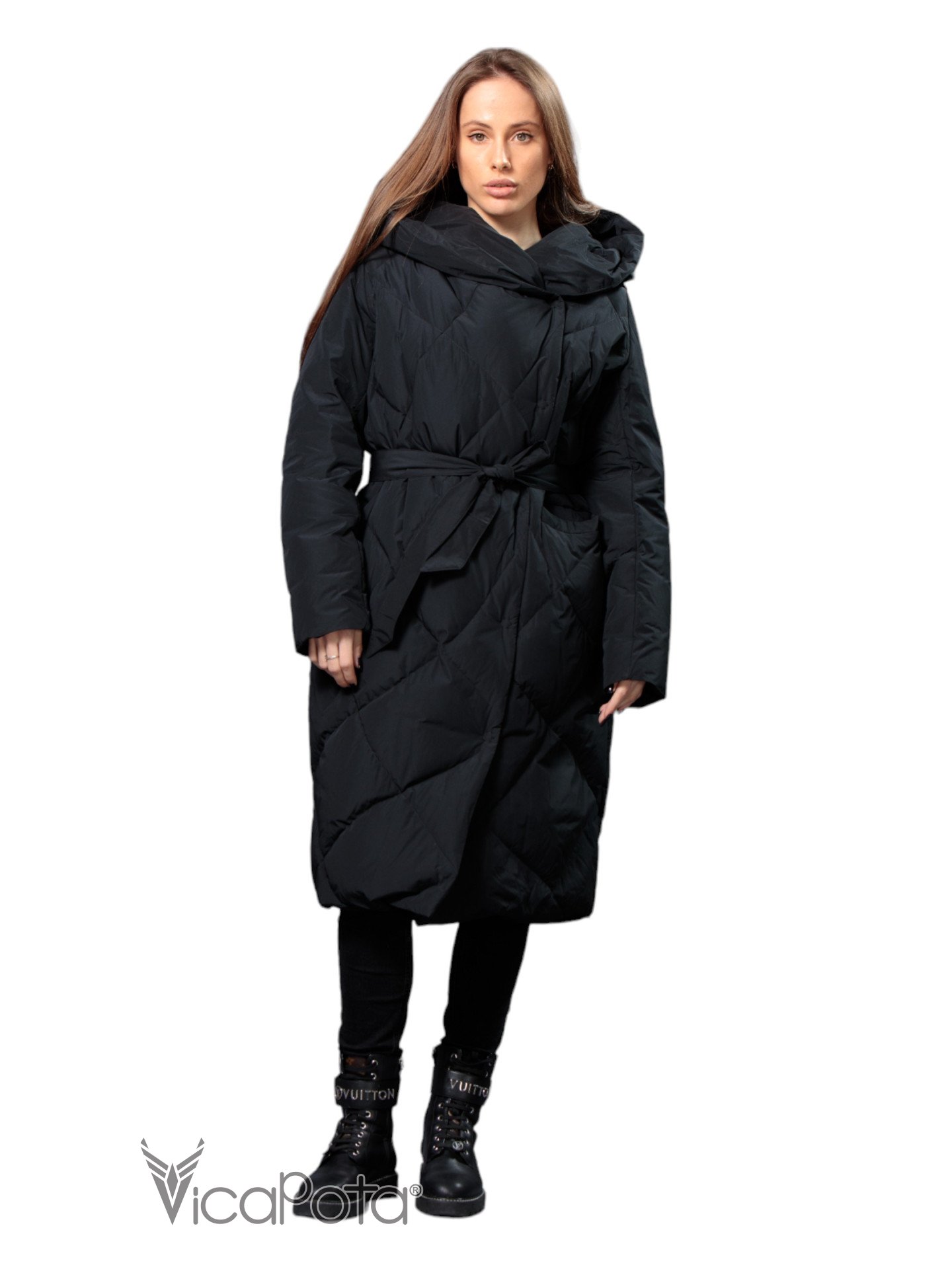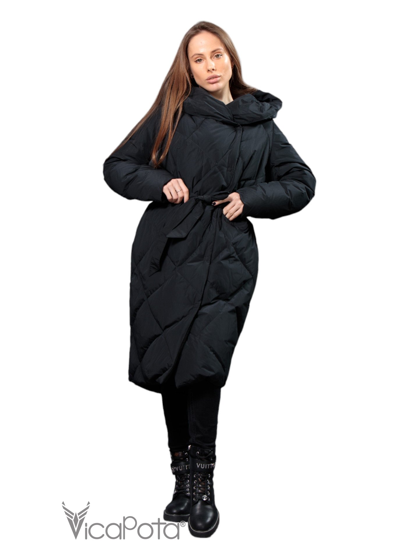 ✅ Довгий пуховик чорного кольору.