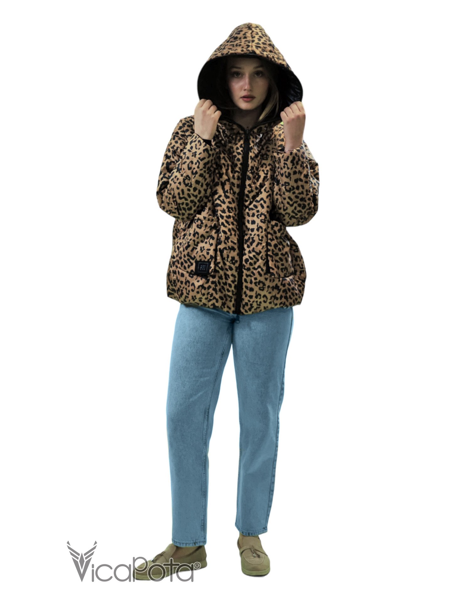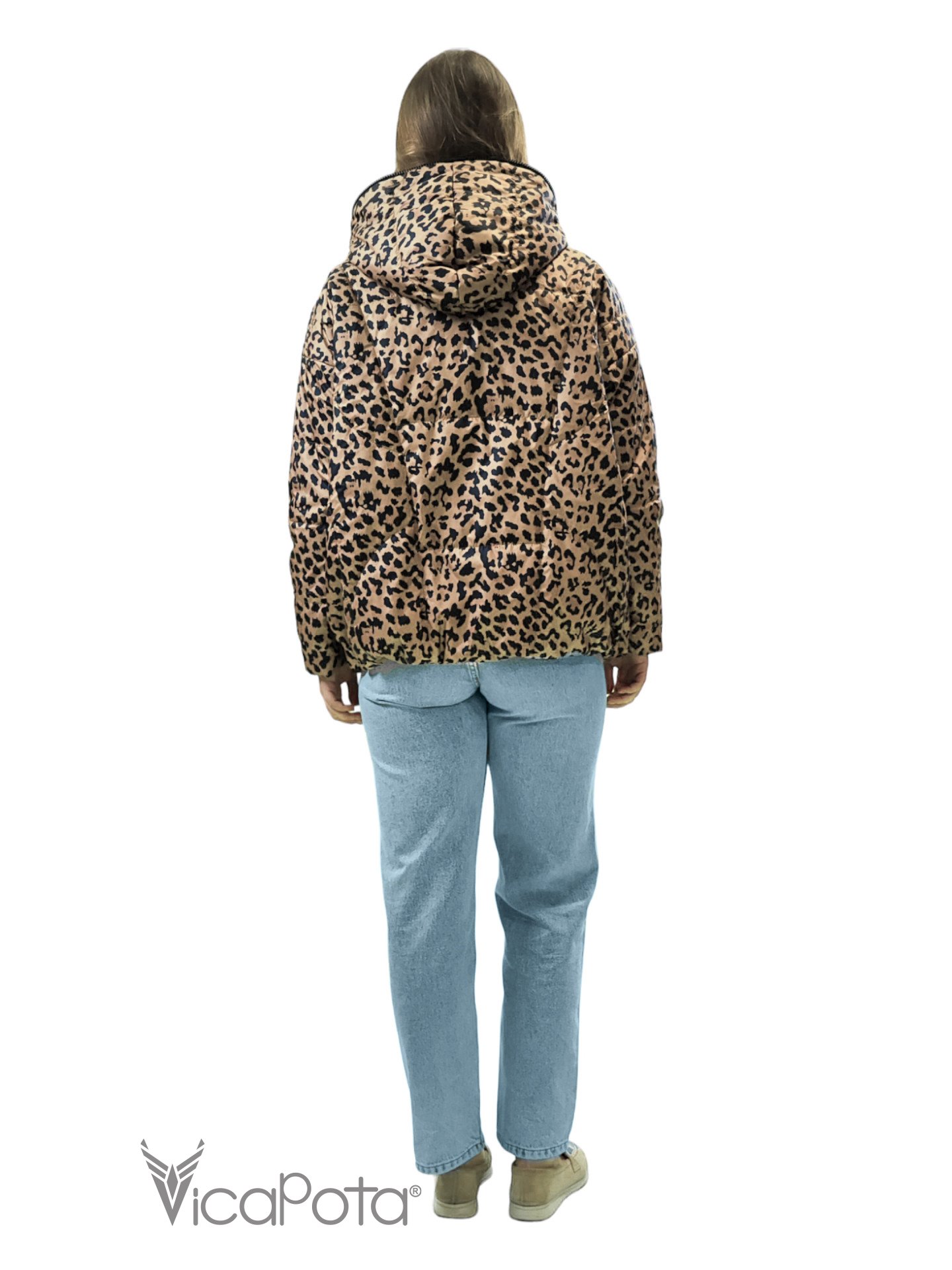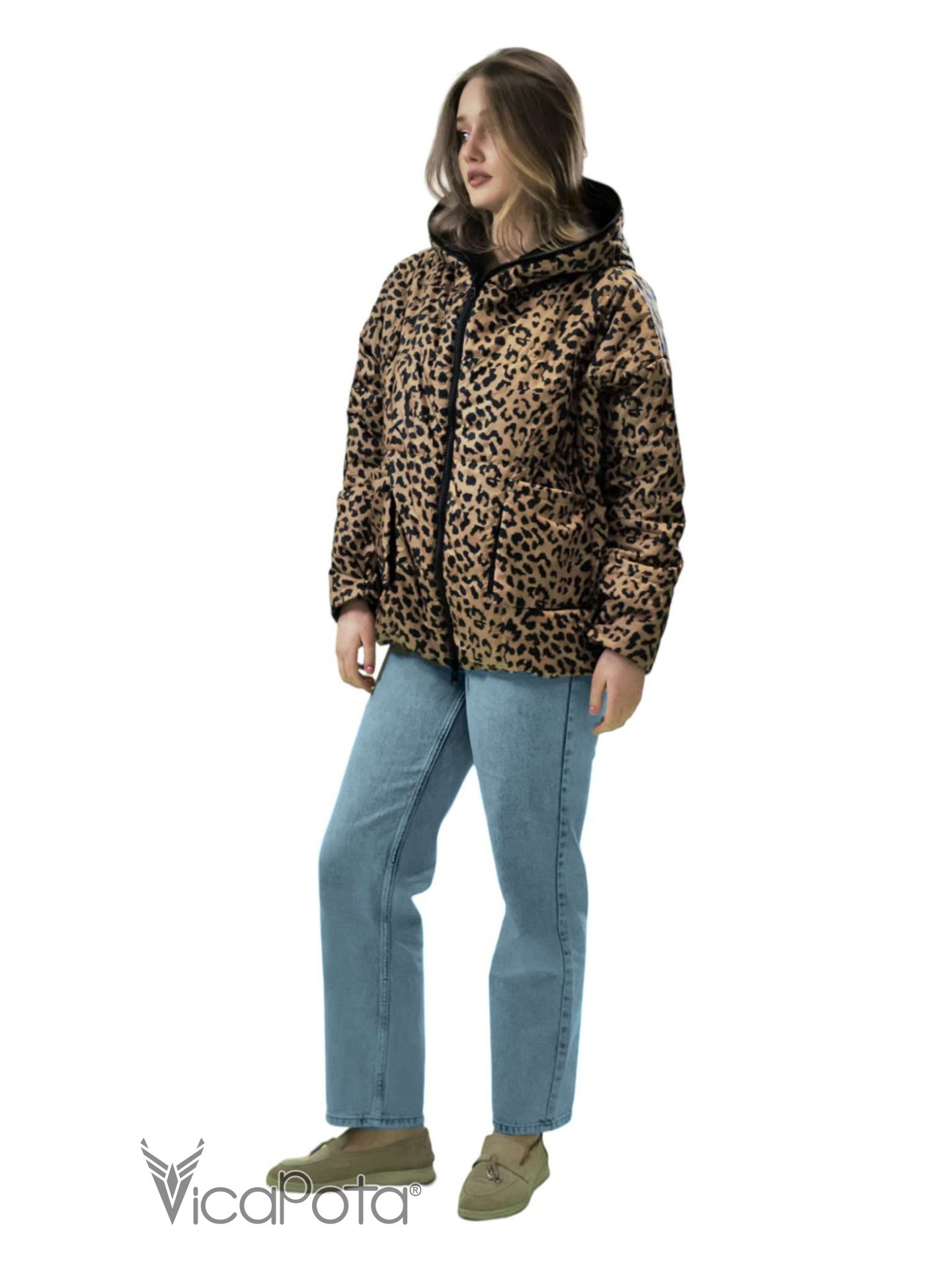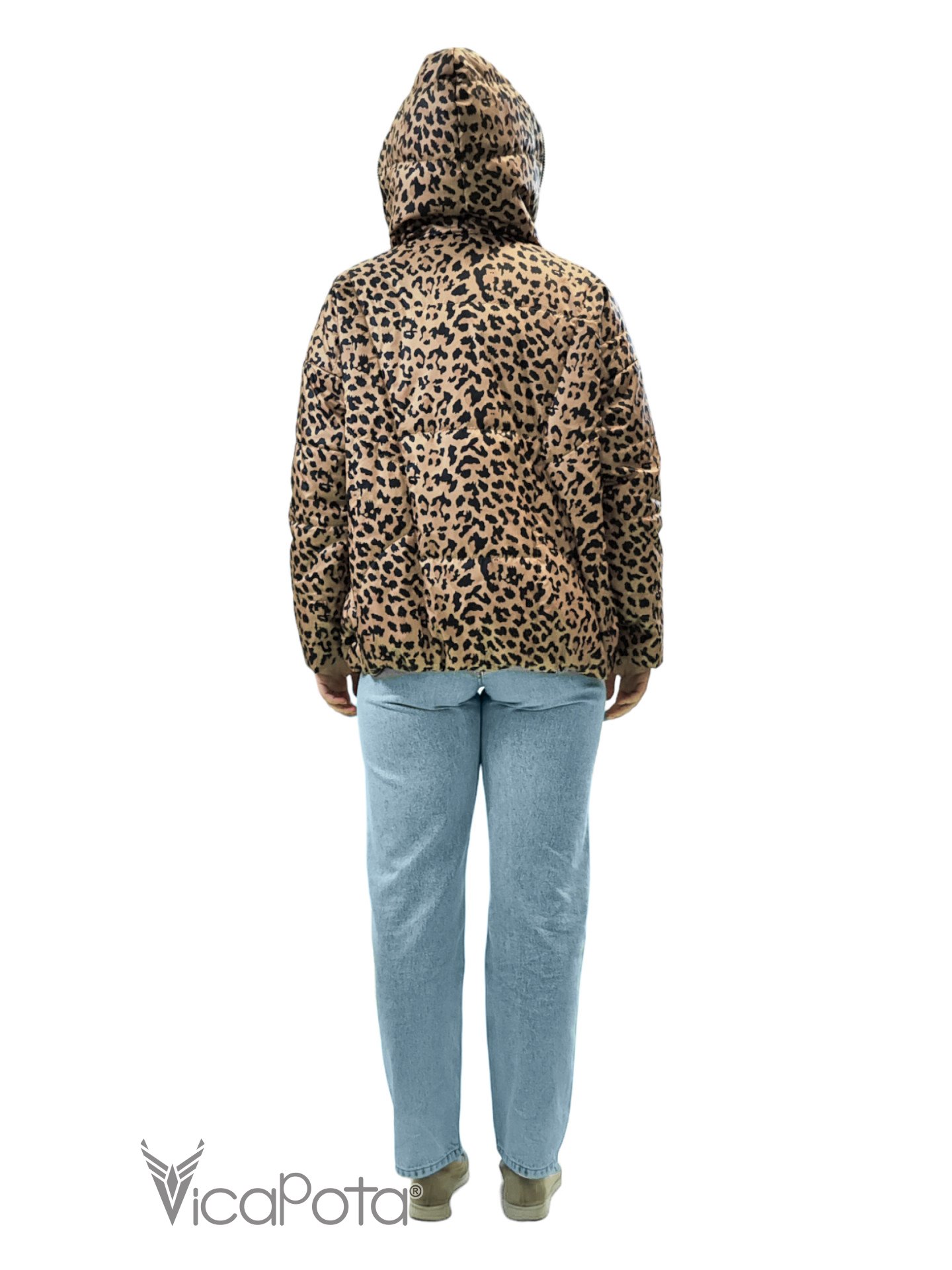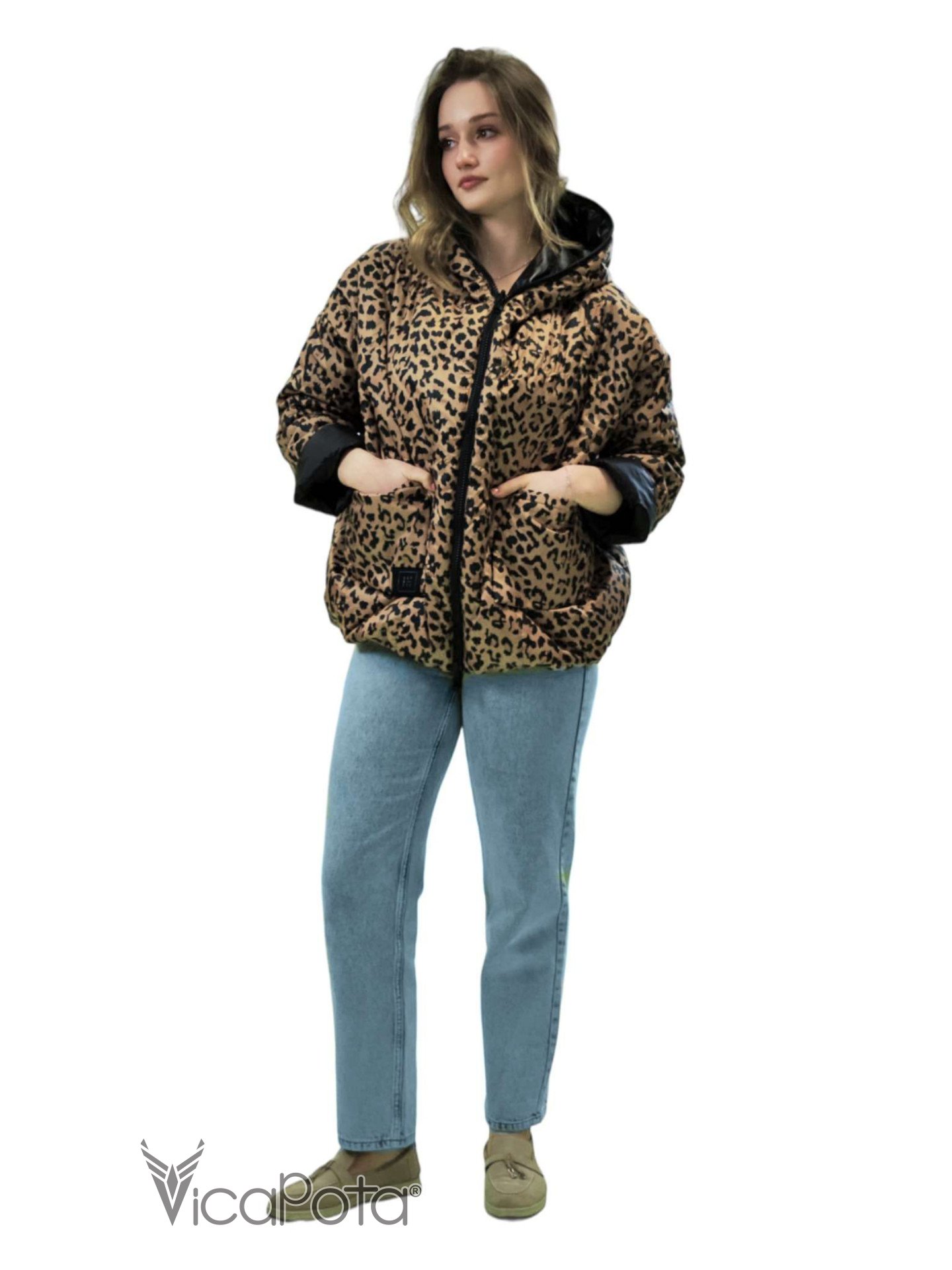 Колір леопард с черным; Розмір XL; Ог 150 см; От 146 см; Ос 146 см; Довжина рукава от плеча 73 см., есть подворот.; Довжина 67 см., по низу кулиска.