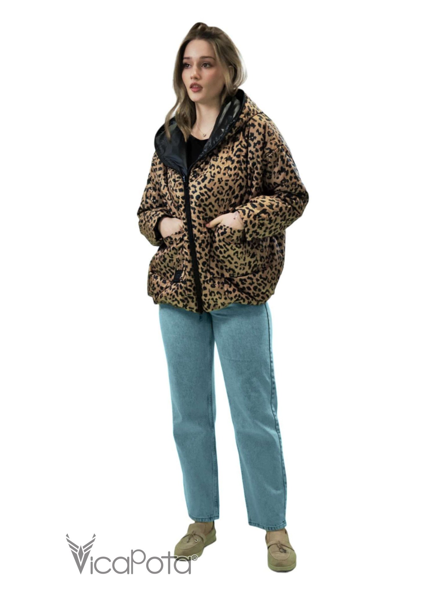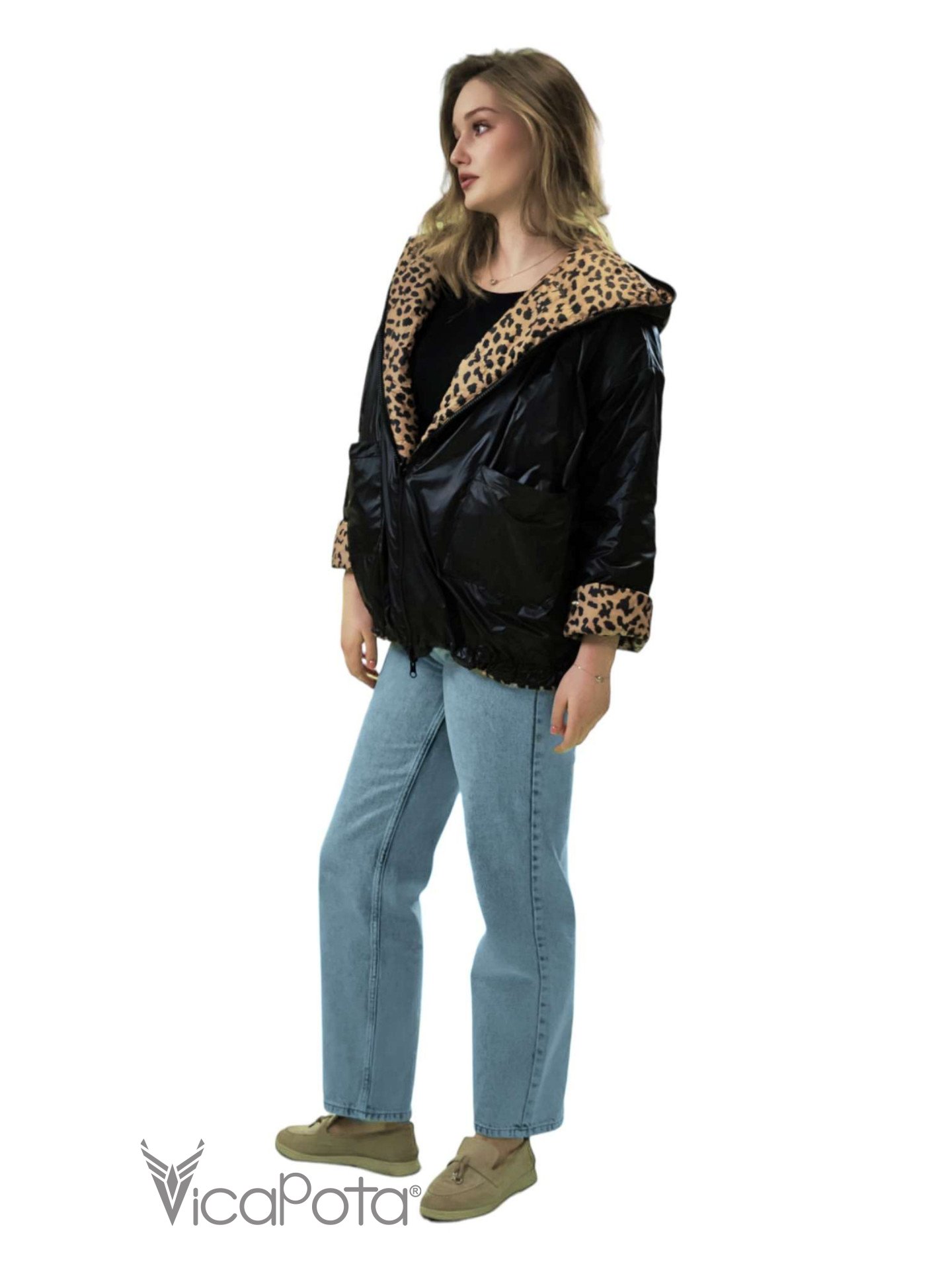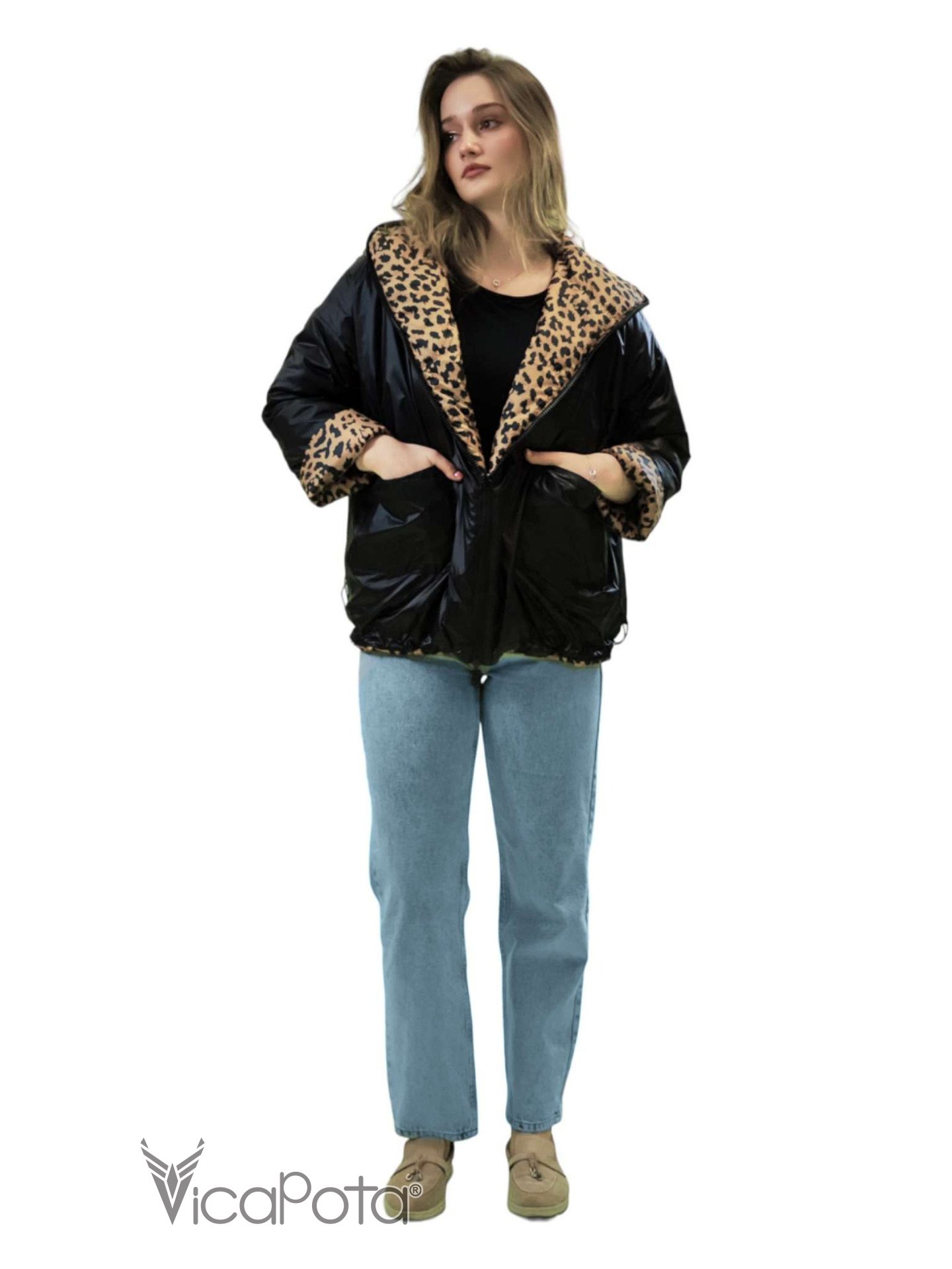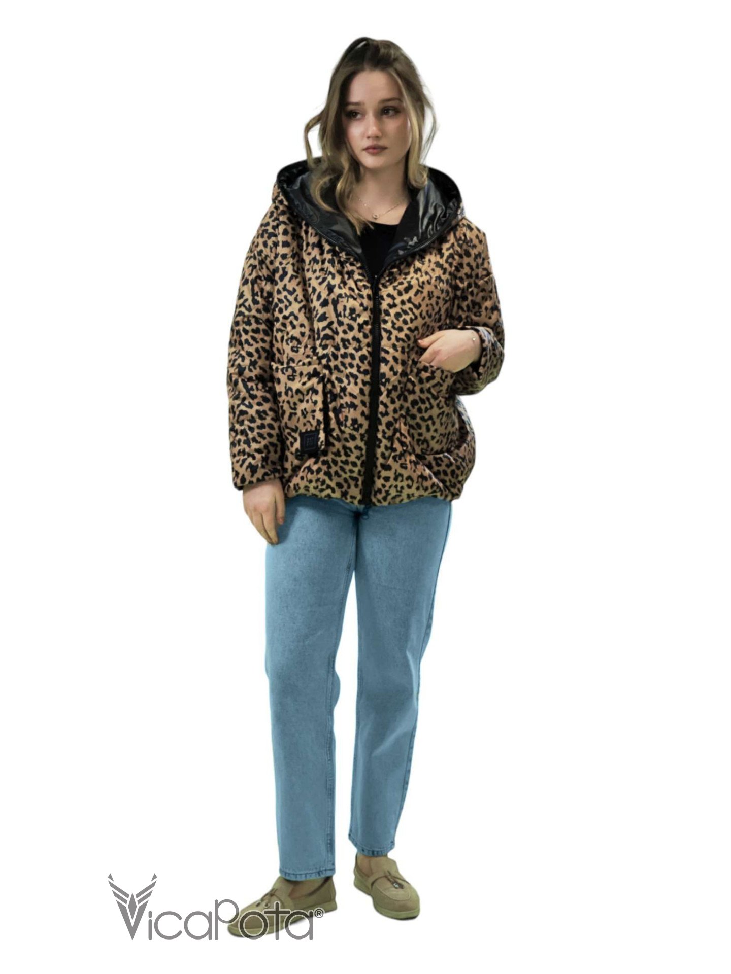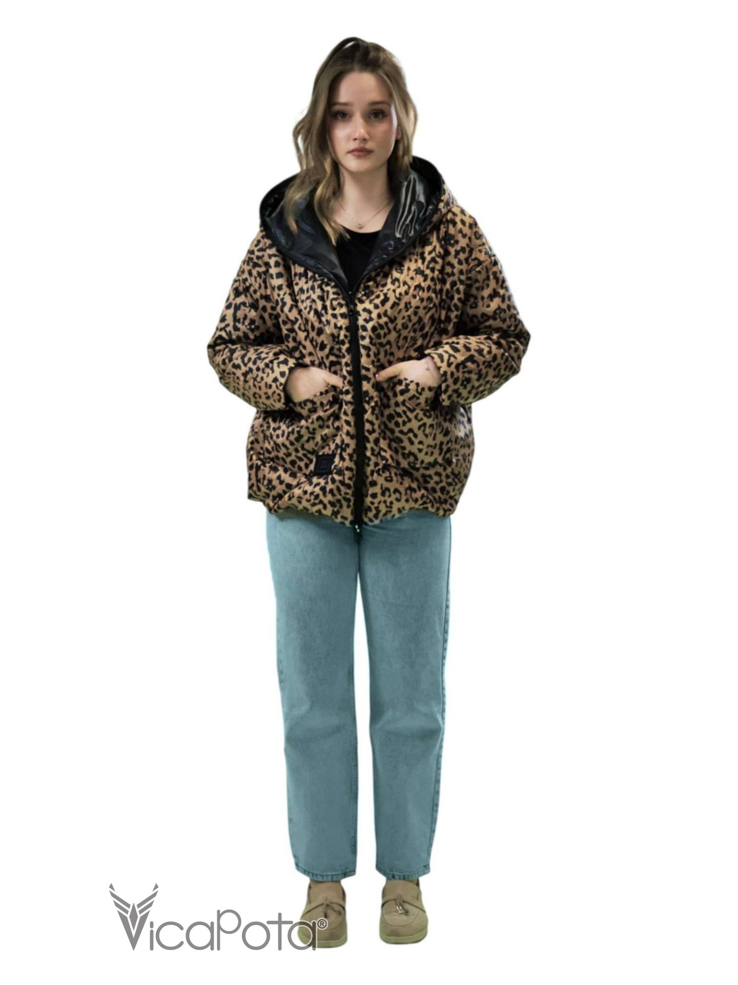 Колір леопард с черным; Розмір XL; Ог 150 см; От 146 см; Ос 146 см; Довжина рукава от плеча 73 см., есть подворот.; Довжина 67 см., по низу кулиска.