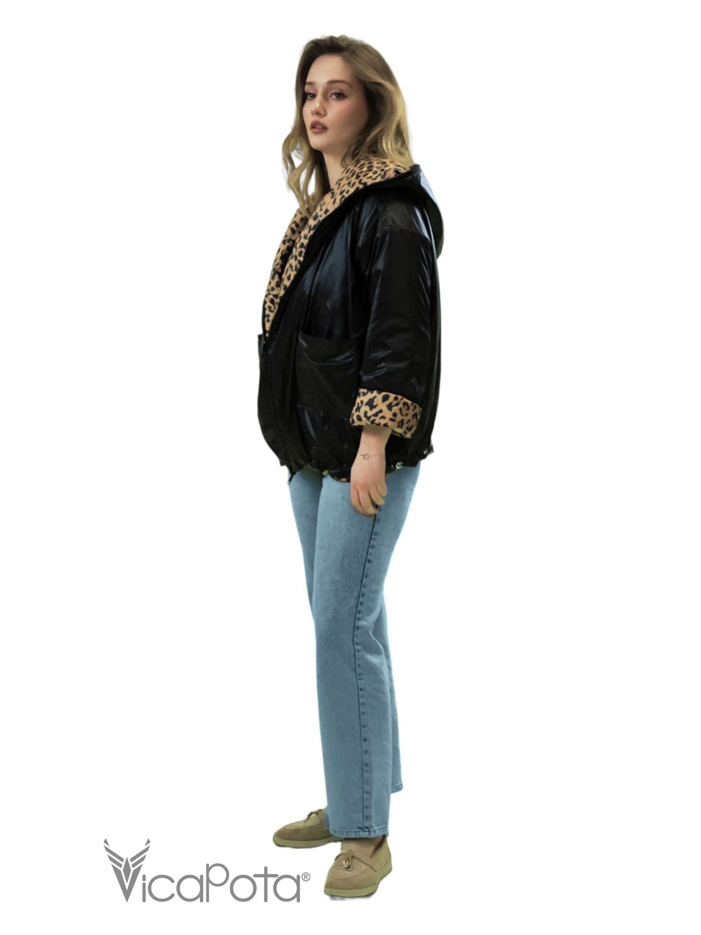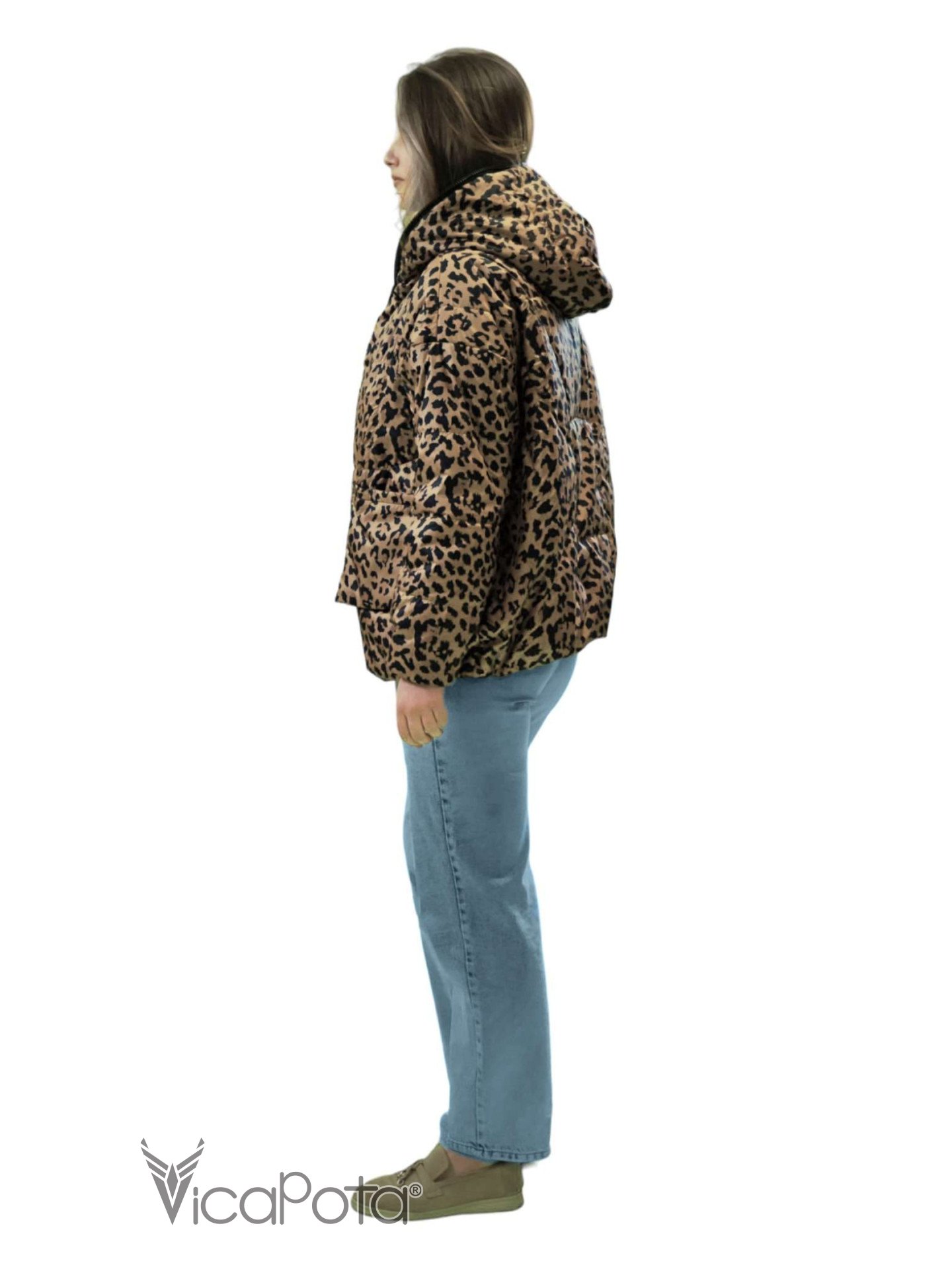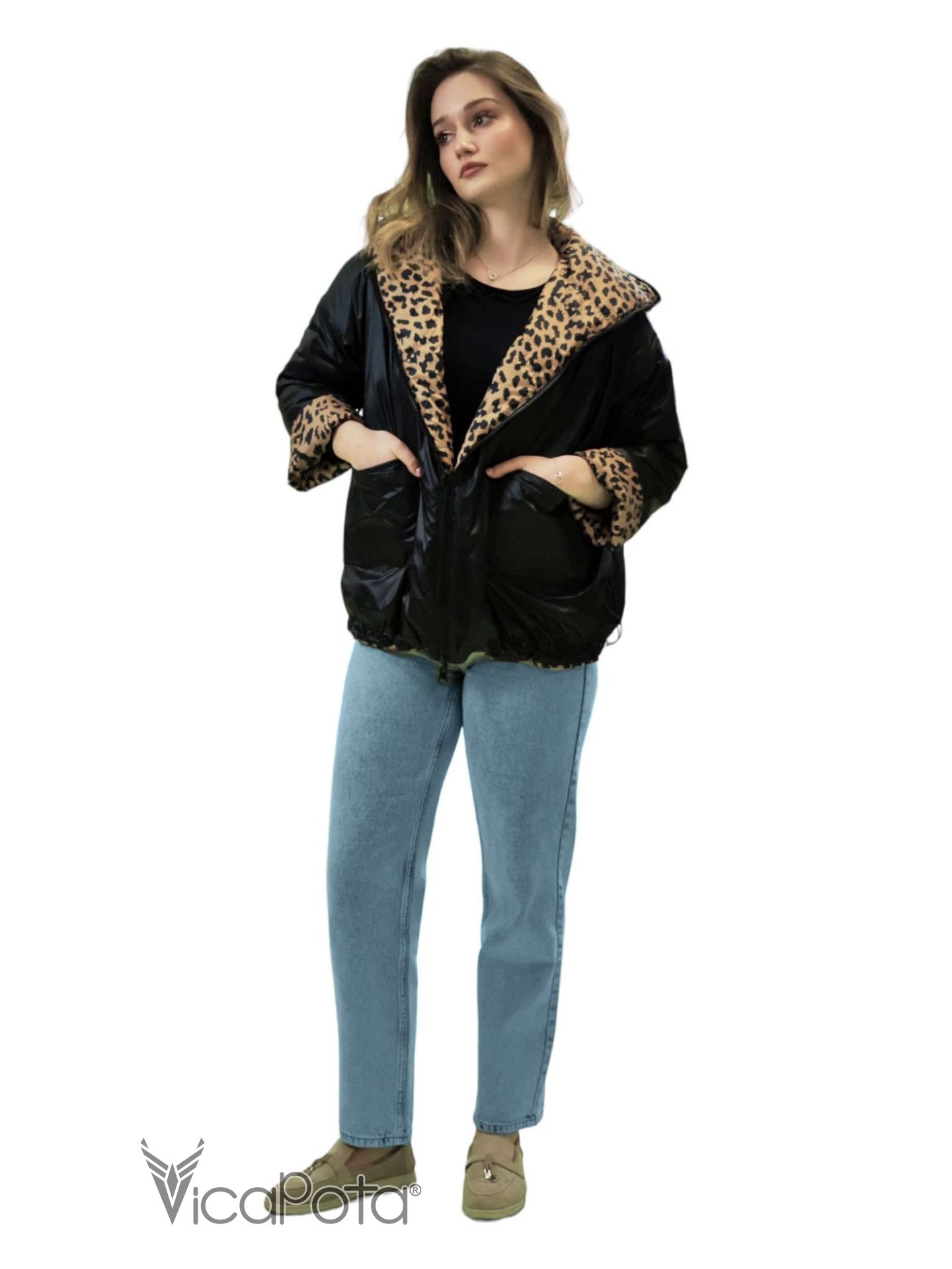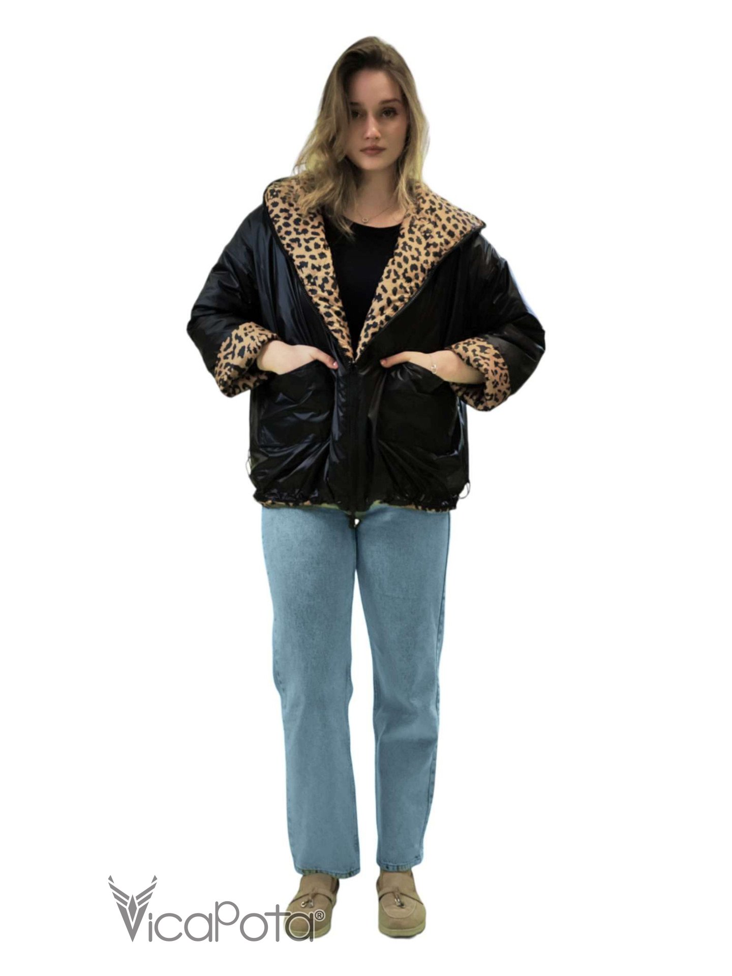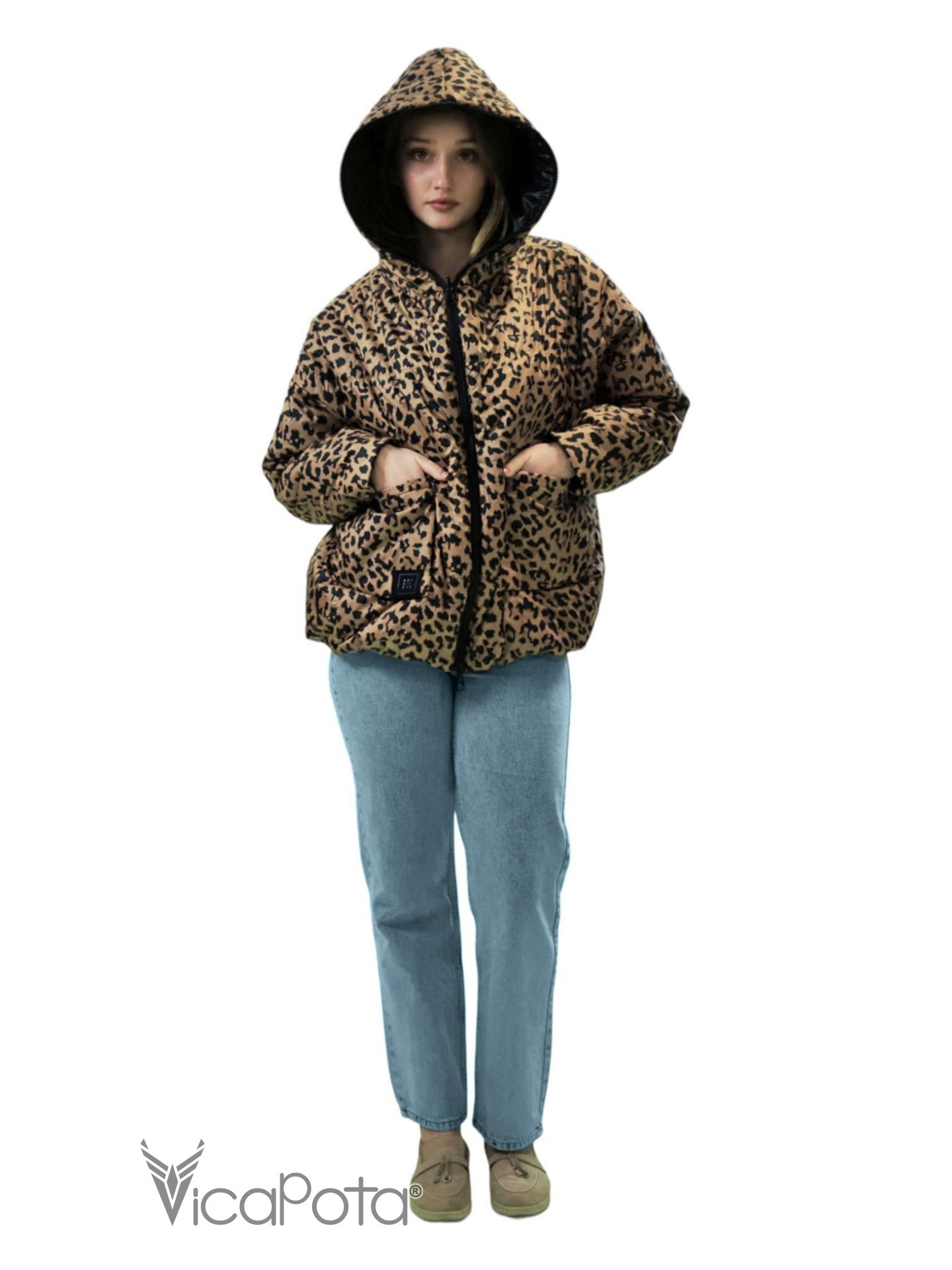 Колір леопард с черным; Розмір XL; Ог 150 см; От 146 см; Ос 146 см; Довжина рукава от плеча 73 см., есть подворот.; Довжина 67 см., по низу кулиска.