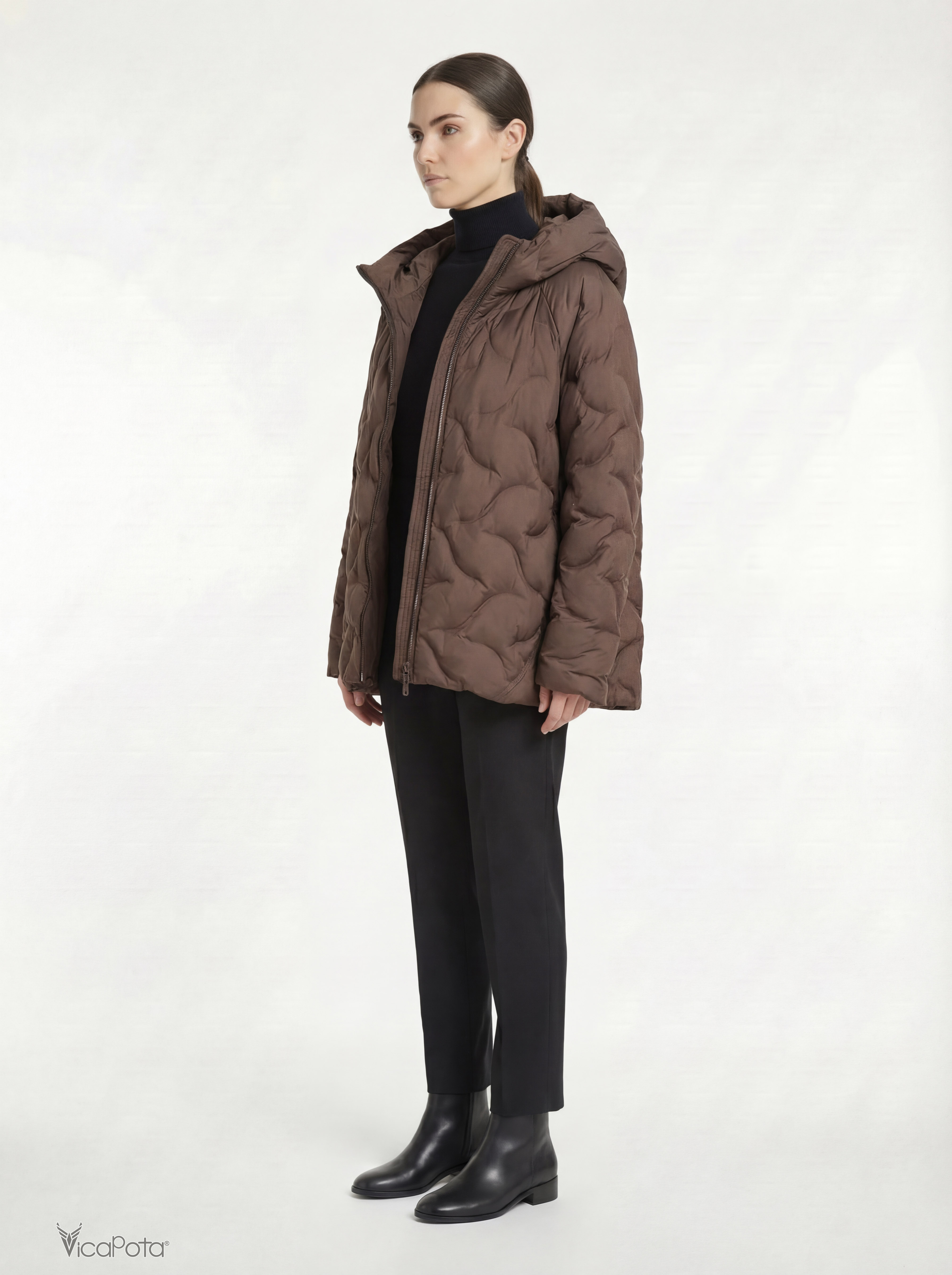 Вільний силует не обмежує рухів і легко поєднується з базовим гардеробом. Коричневий колір виглядає благородно та актуально в міжсезоння.