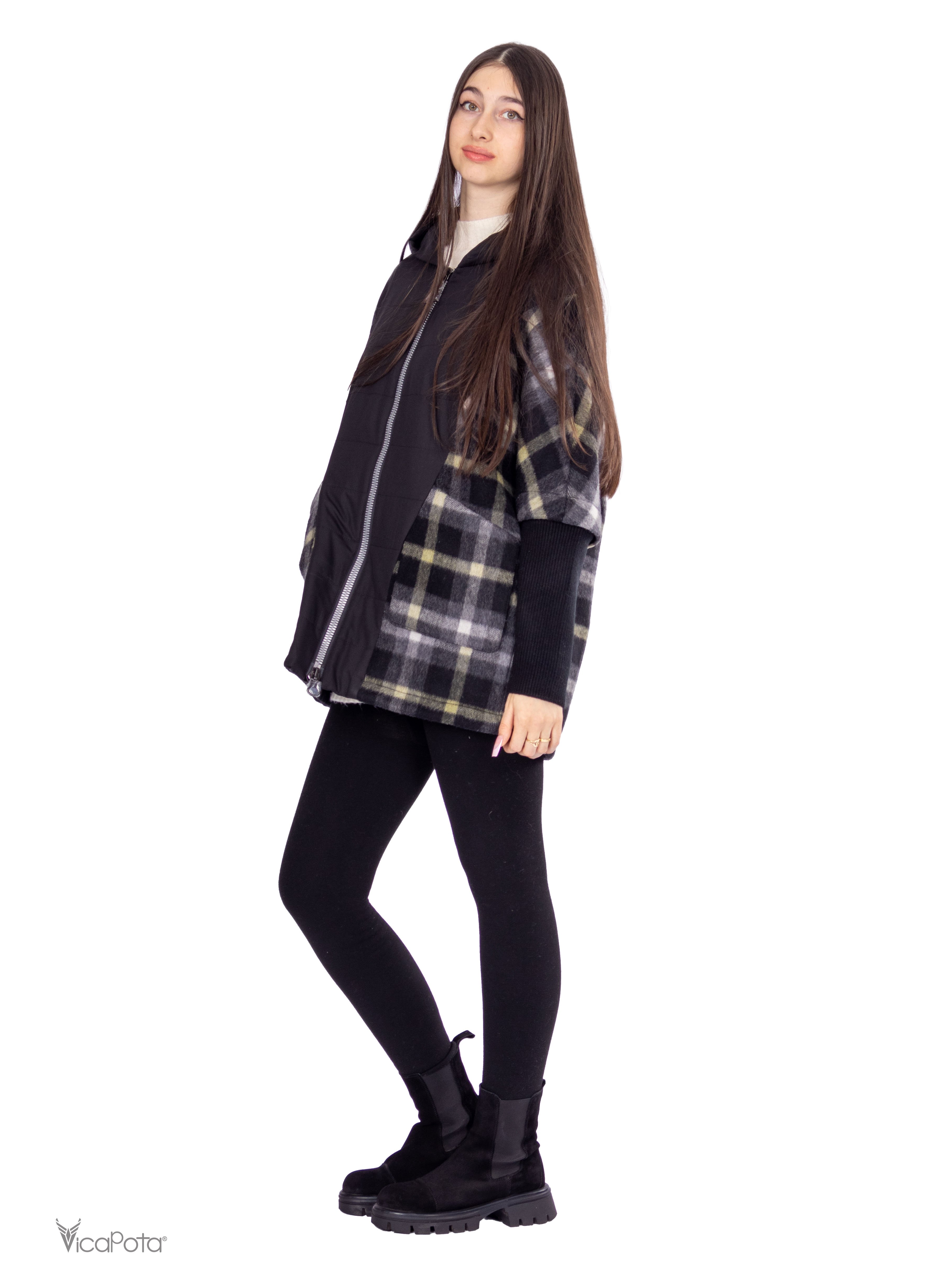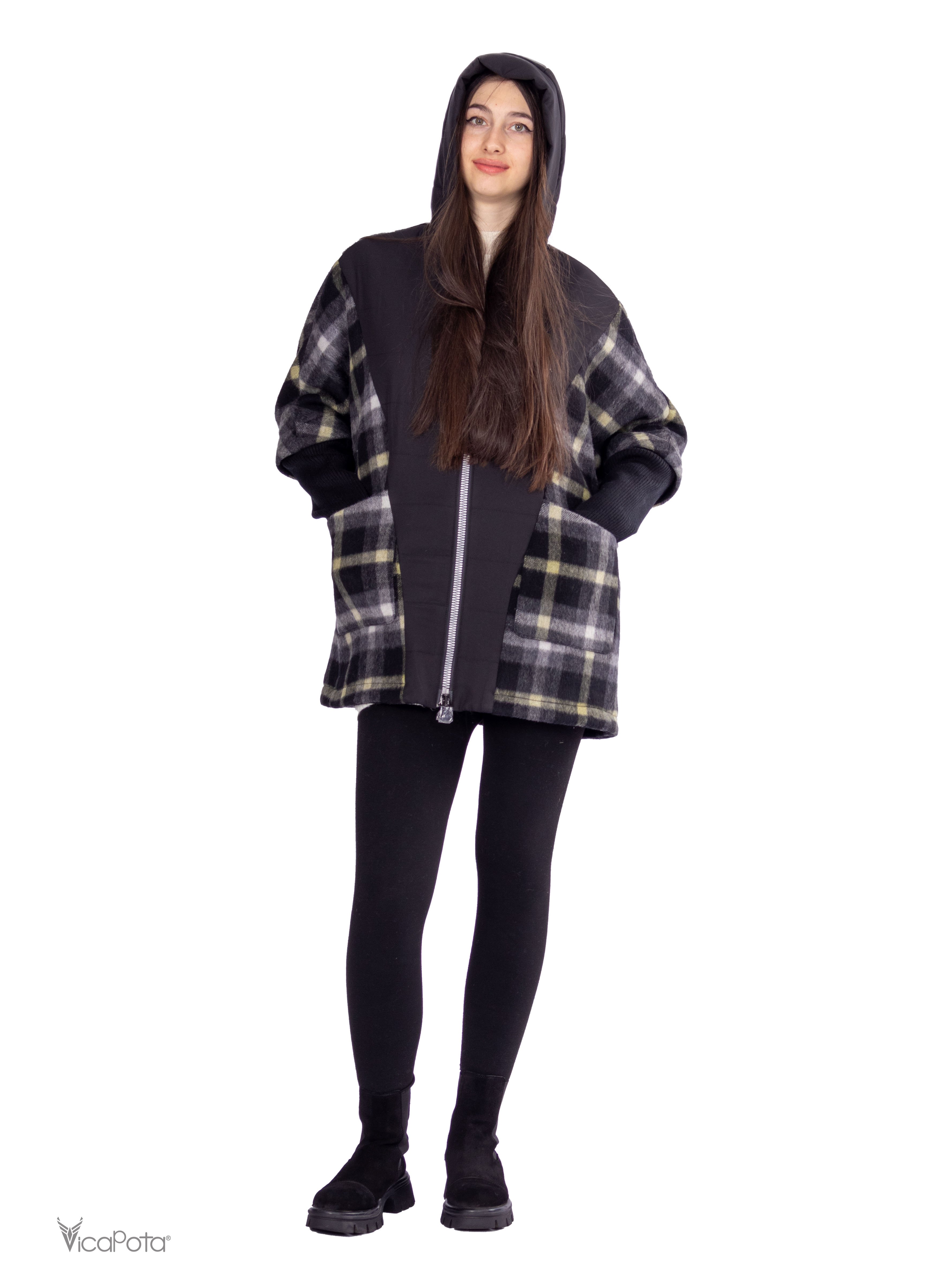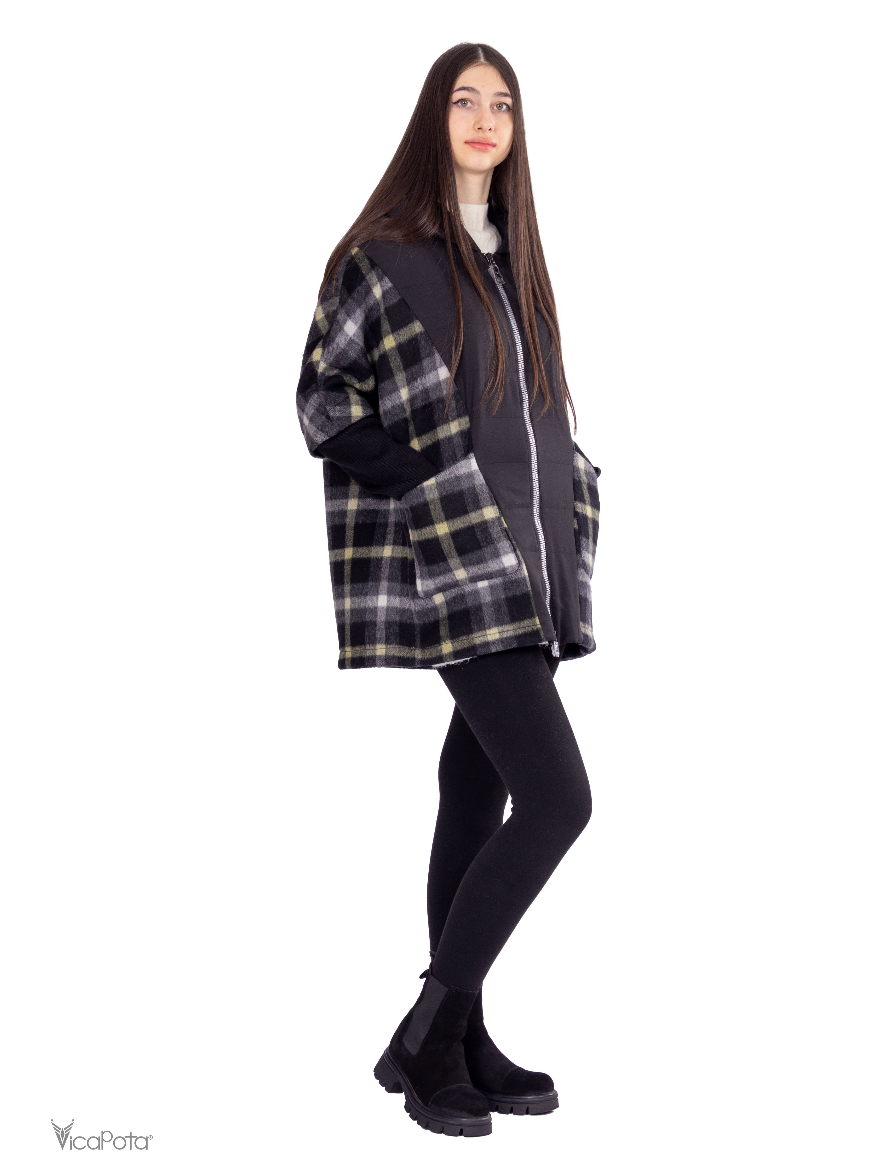 Прямокутний силует, глибокий чорний із зеленуватими відтінками та візерунок у вигляді клітинки – сучасний стиль на кожен день!