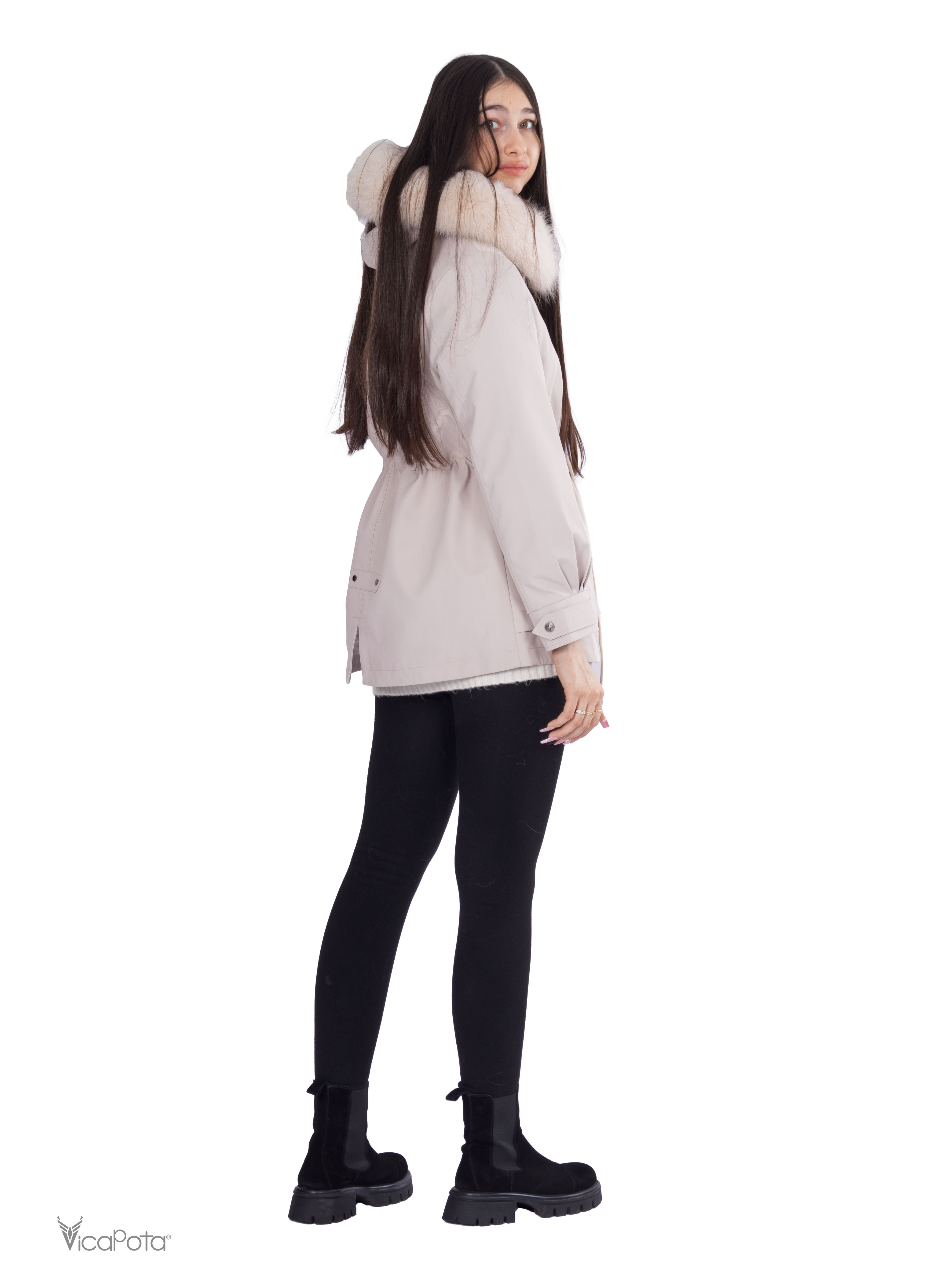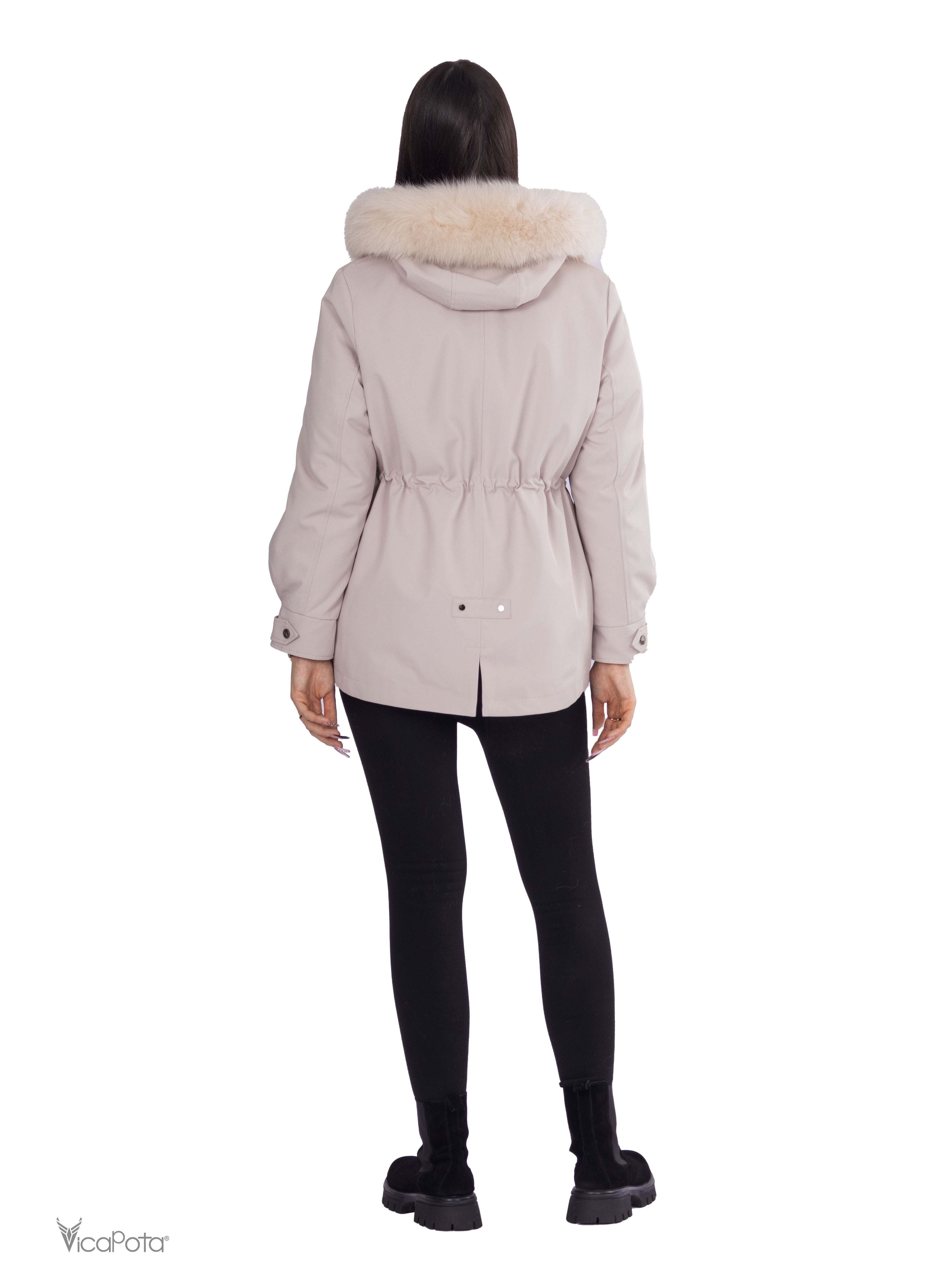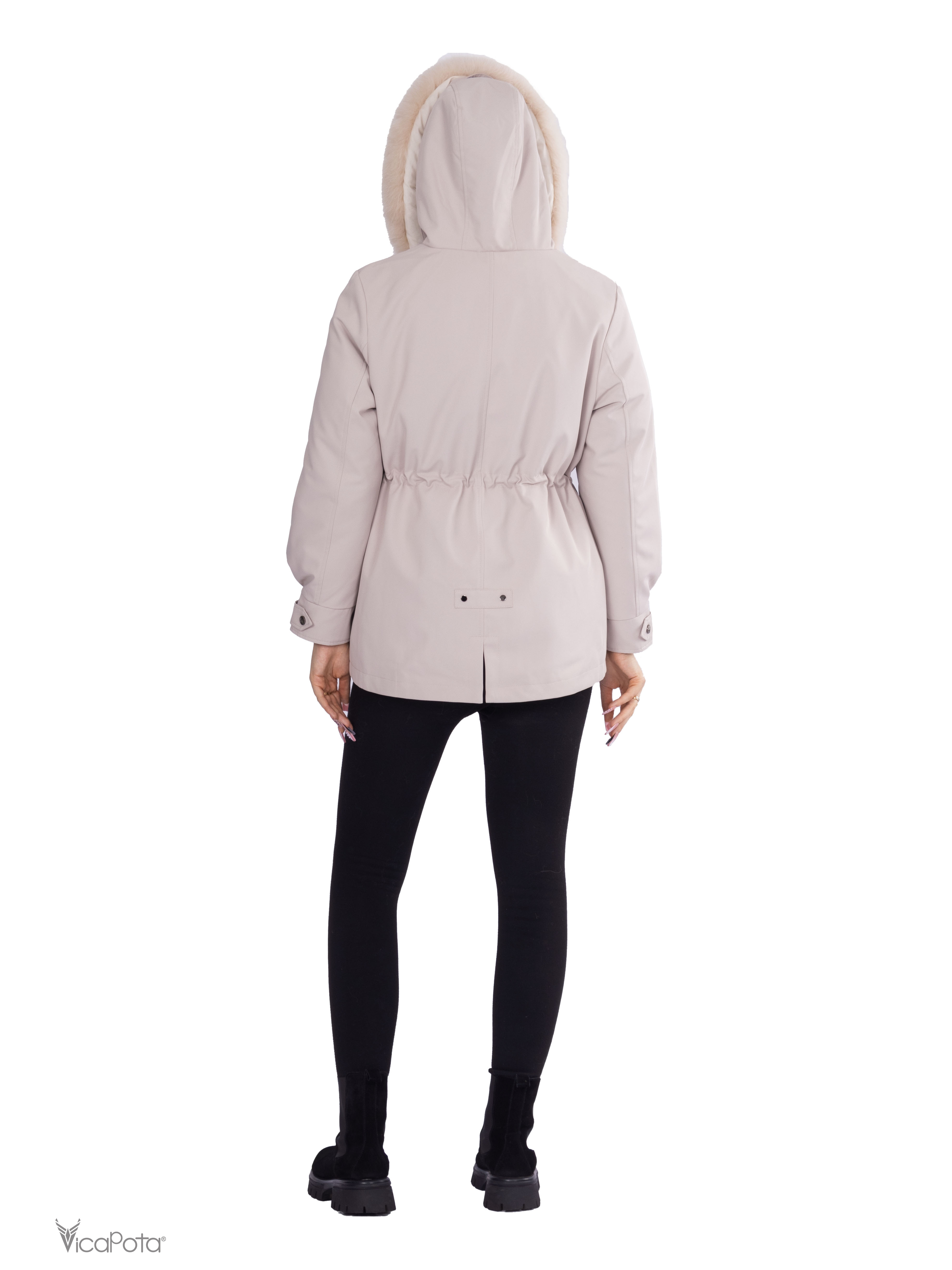 - **Хутро:** натуральне хутро кролика у знімній підкладці забезпечує тепло та комфорт, а хутро песця додає вишуканості.