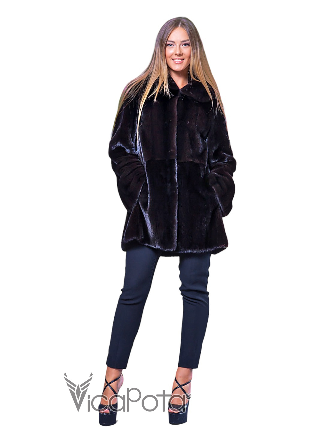 Норкова шуба з натурального високоякісного аукціонного хутра кольору темний шоколад. Довжина виробу 84 см. Фурнітура класичні чорні гачки. Є глибокий каптур, який додатково застібається на комірі. Модель трапецієподібного крою з відрізною талією. Дві бічні кишені. Універсальна й зручна шуба як у повсякденному житті так і для походу в театр.