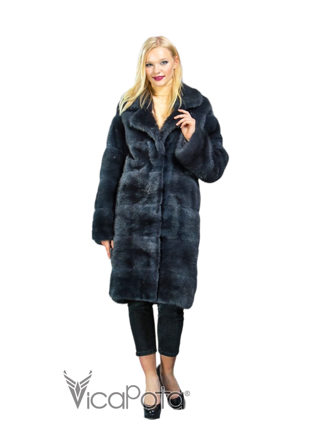 Норкова шуба з високоякісного хутра норки кольору графить. Модель прямого крою із класичним англійським коміром і повноцінним рукавом стандартної довжини . Довжина виробу- 100 см , розмір 40-42 см. Модель шуби викроєна із цільних шкурок норки широкими поперечними смугами. Фурнітура шубні гачки чорного кольору. Є бічні кишені. Ця модель легко комбінується з повсякденним стилем, а також із платтями й костюмами дозволяючи зробити образ елегантним і розкішним.