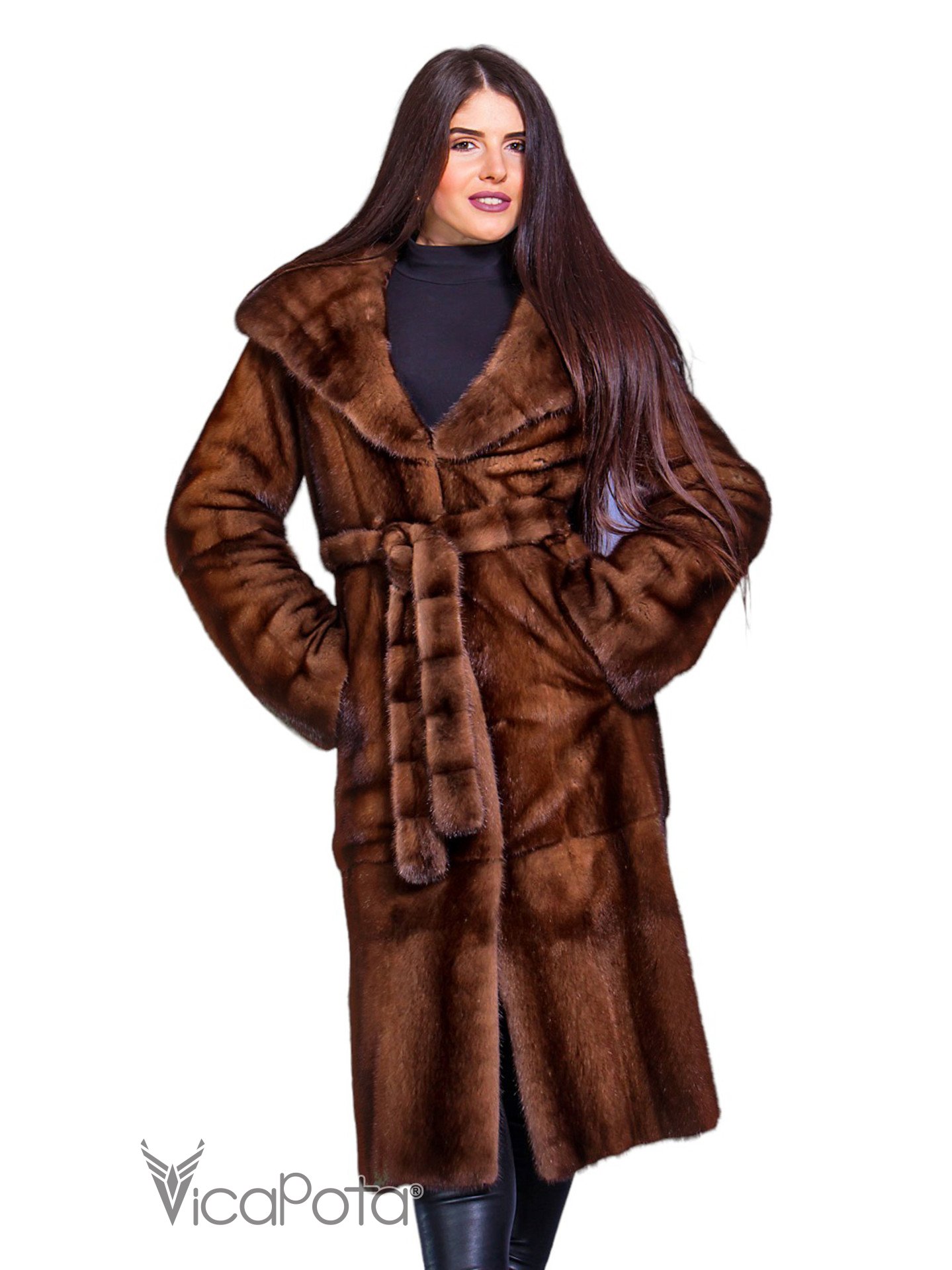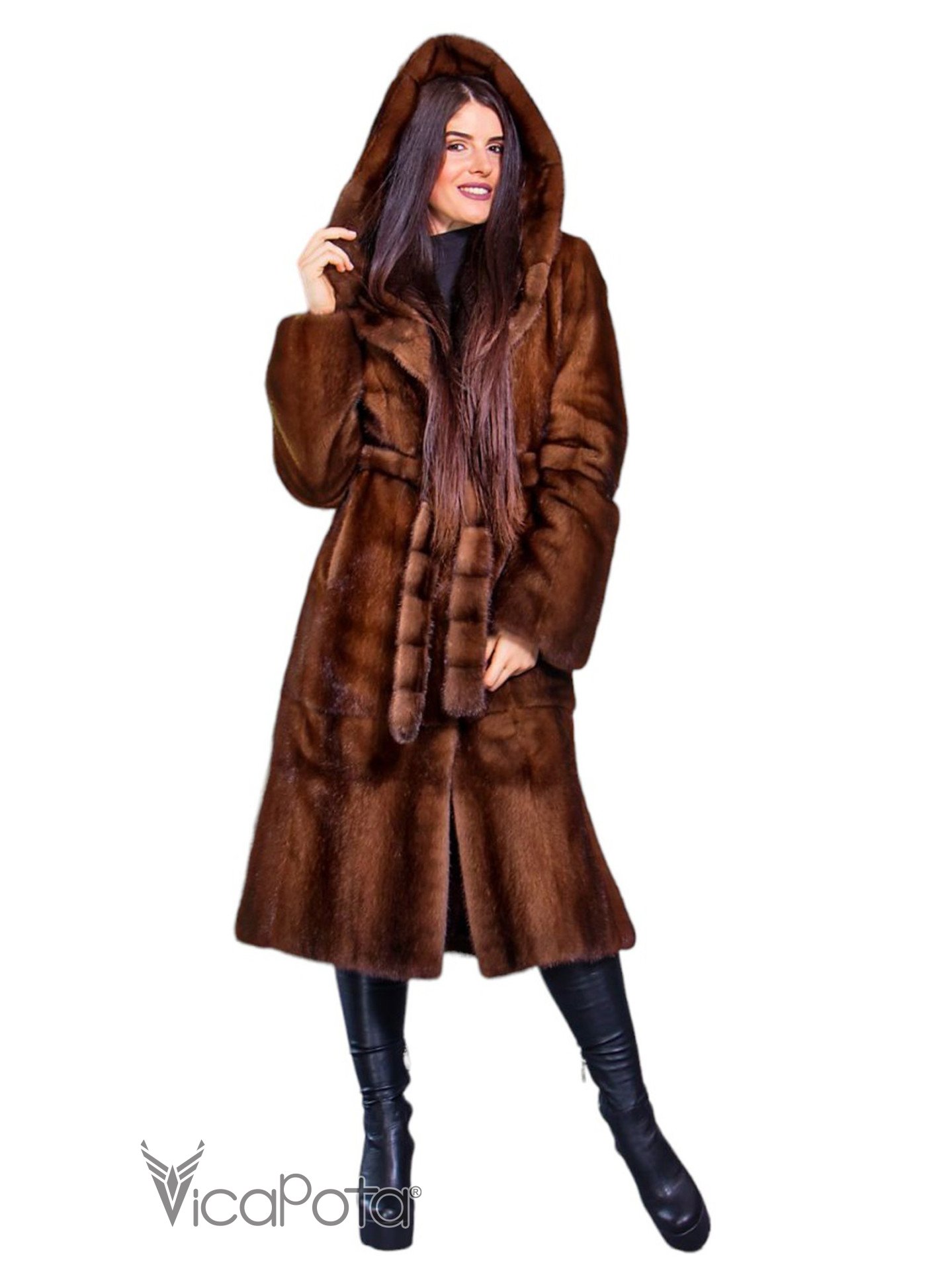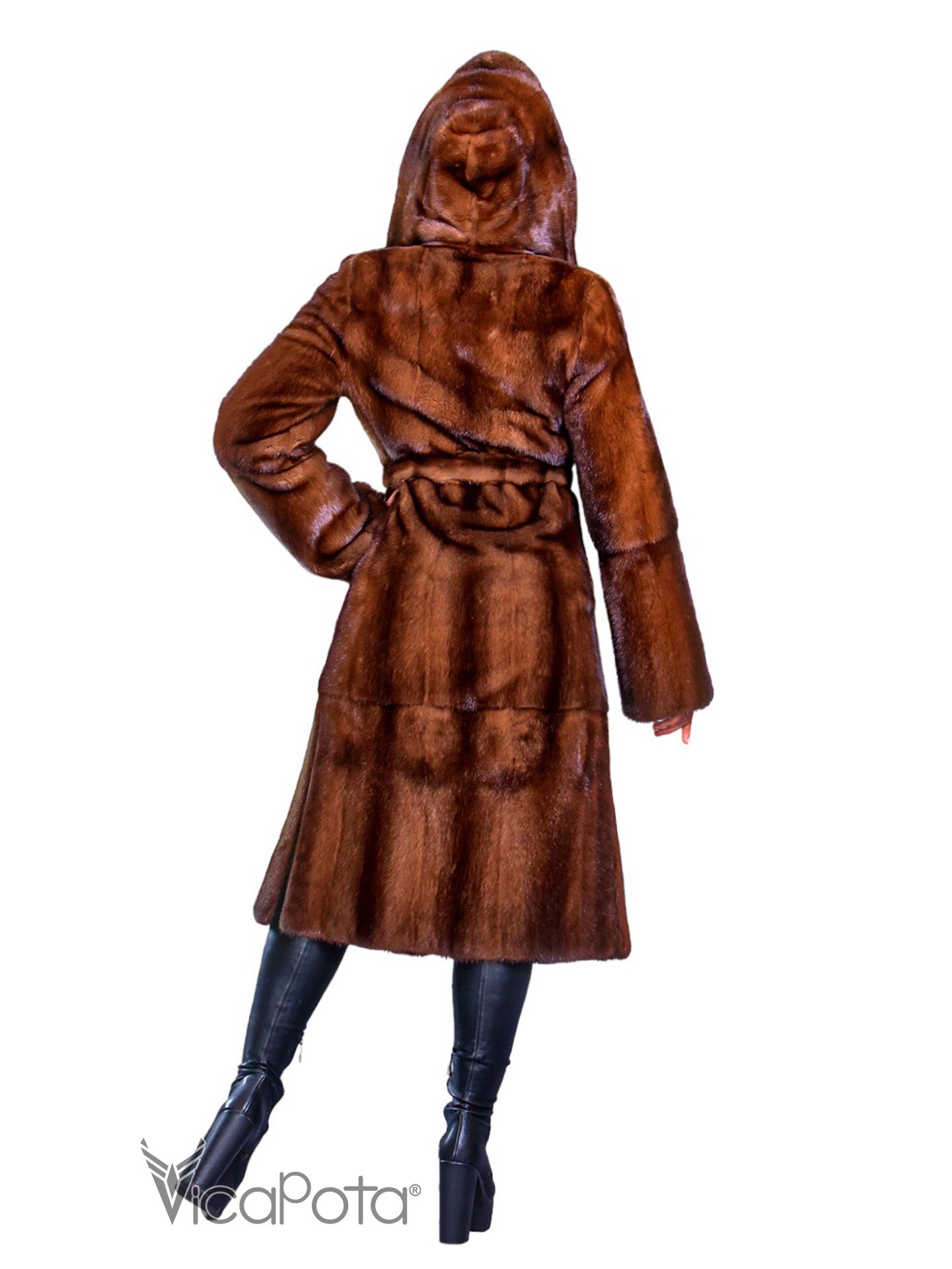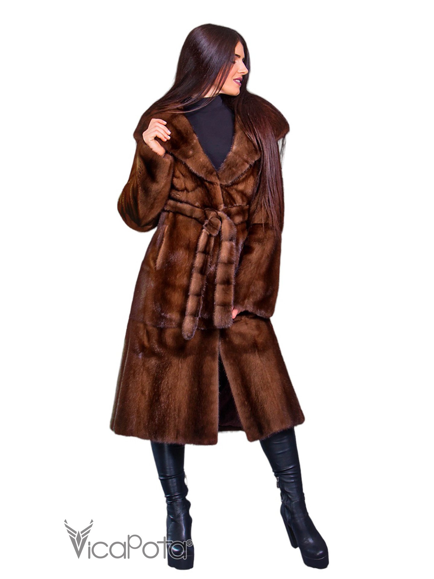 Норкова шуба в кольорі горіх. Довжина 117 см. Фурнітура – класичні гачки коричневого кольору. Шуба пошита в класичному стилі криємо в розпуск. Є дві функціональні бічні кишені. Виріб має глибокий каптур, перехідний у шалевий комір. Бічні шліци не дозволять стискувати Ваші рухи при ходьбі. Довжина виробу оптимальна й практична що дає Вам почувати себе затишно в будь-яку зимову погоду. Також під цю модель Вам не важко буде підібрати будь-яке вбрання.
