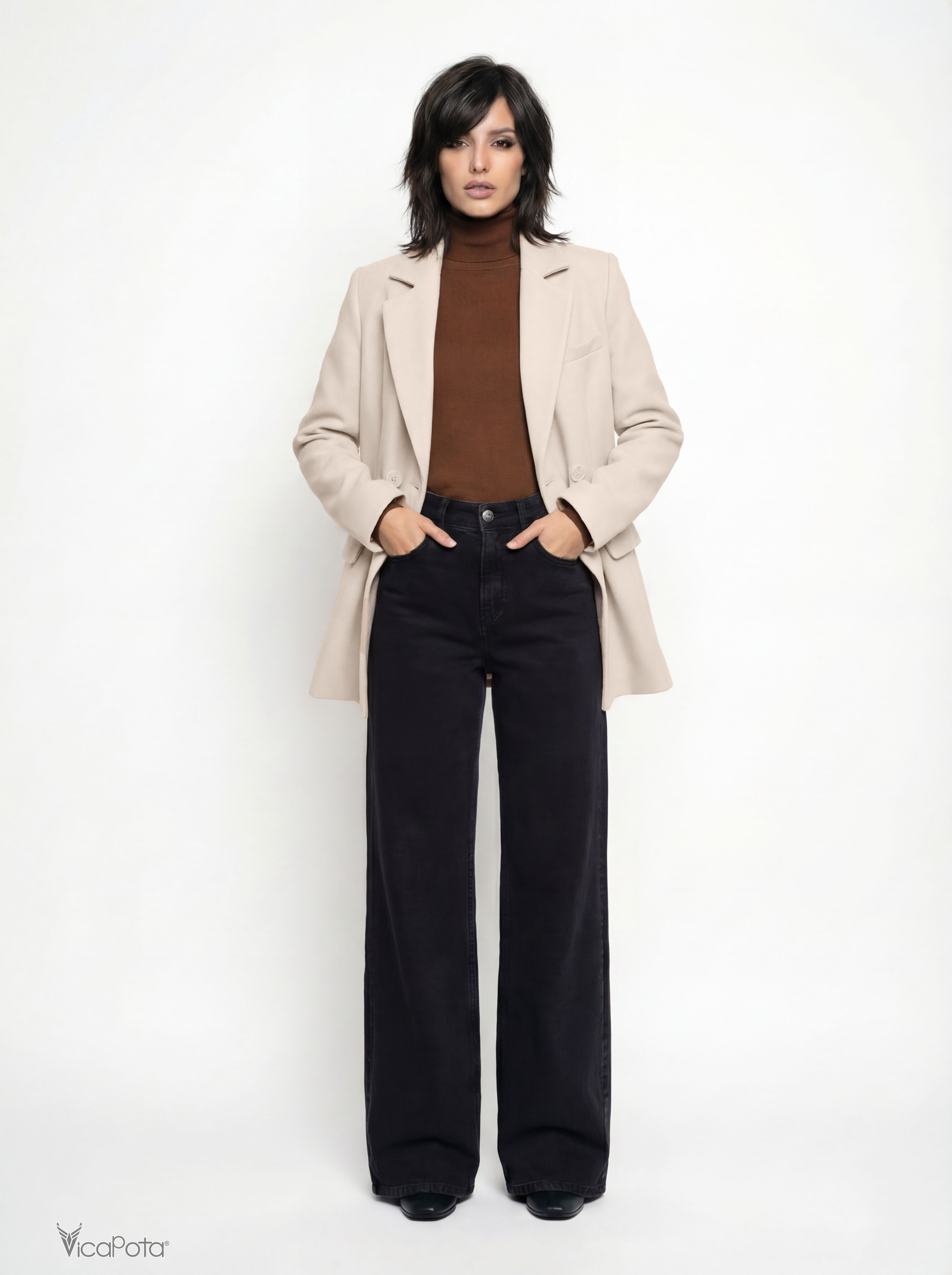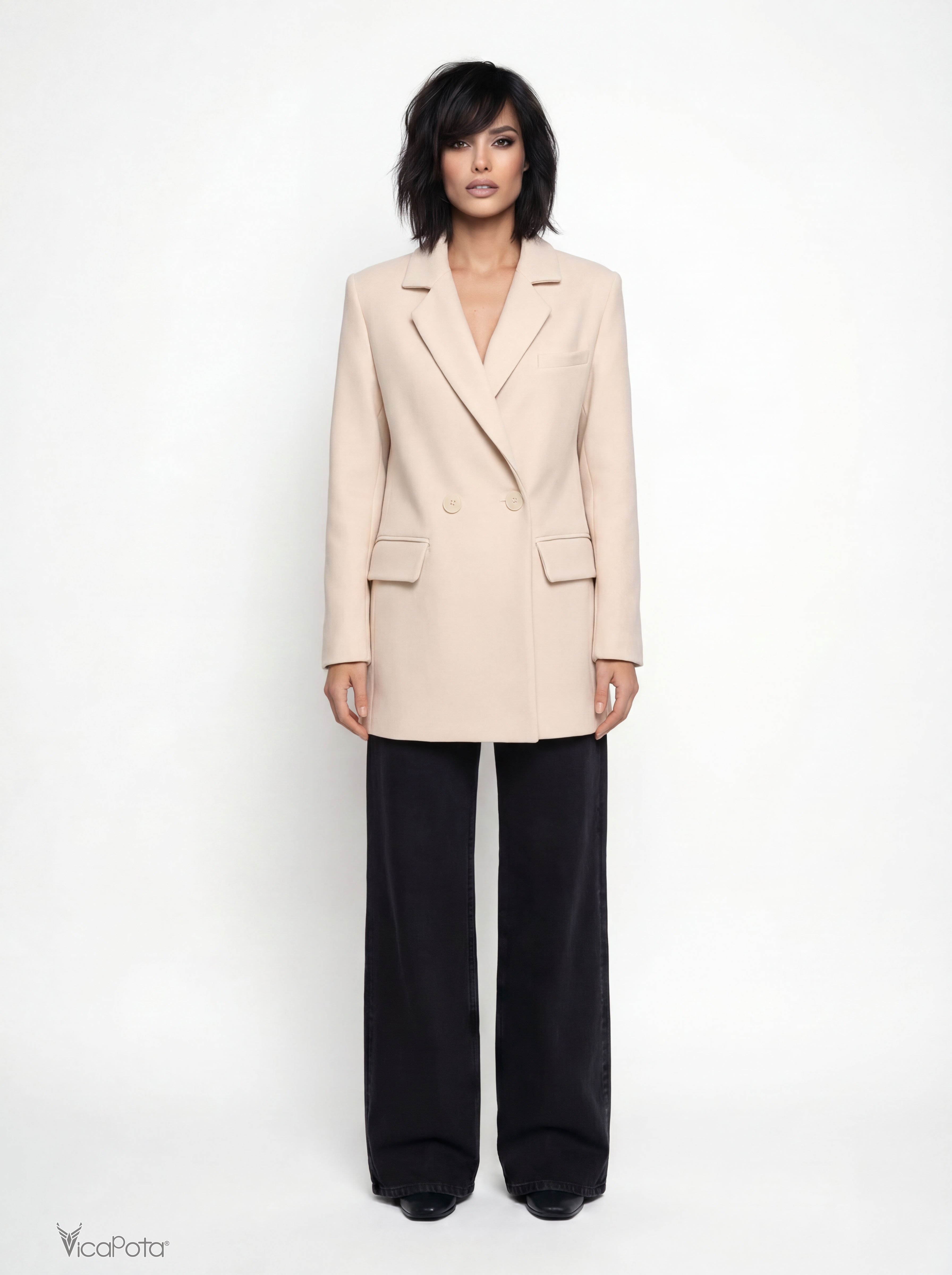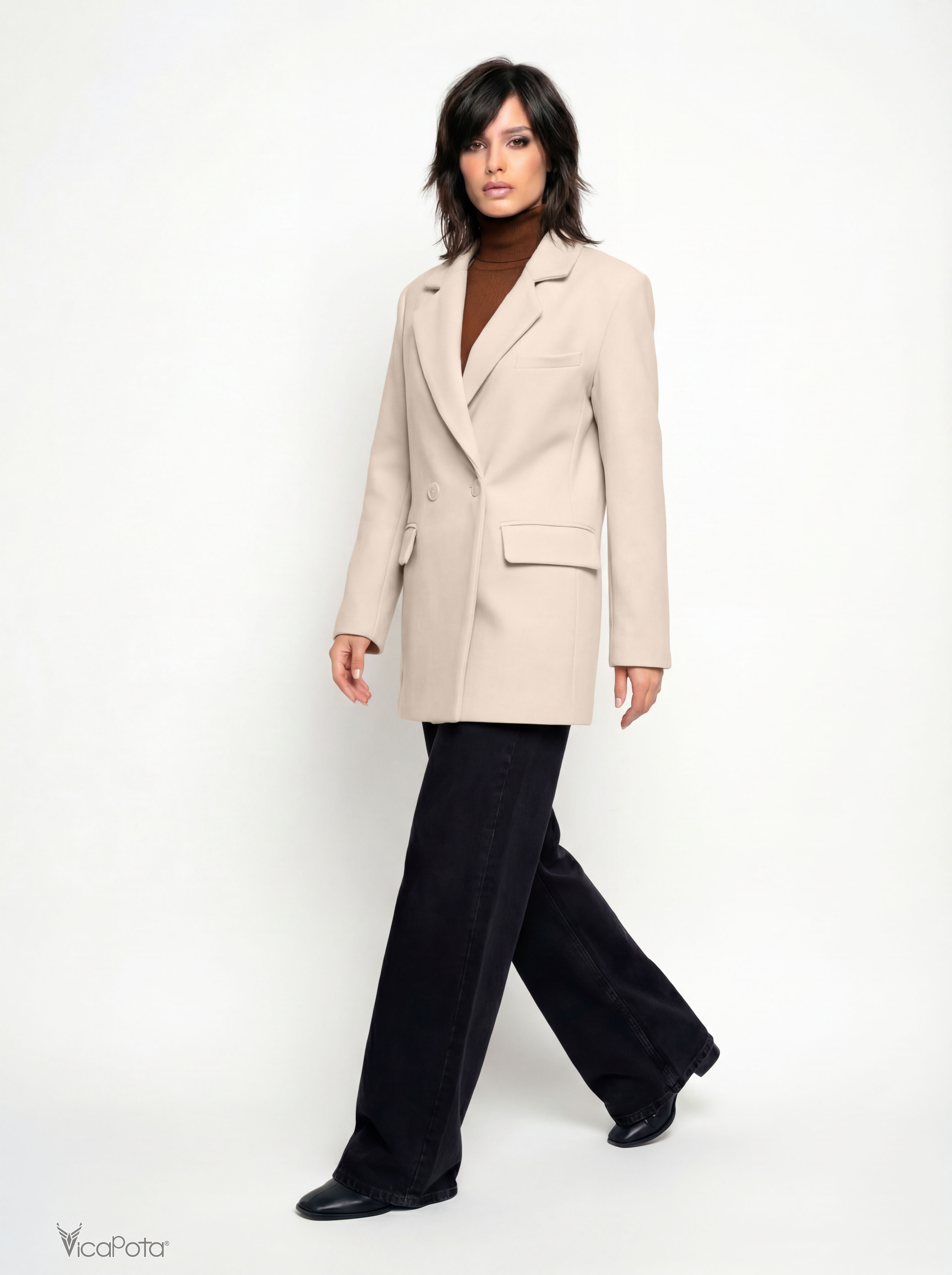 Жіноче коротке пальто світло-бежевого кольору — елегантна демісезонна модель довжиною 75 см із турецького кашеміру. Пальто поєднує класичний стиль та сучасний крій, тому чудово підходить як для повсякденних образів, так і для ділового гардероба.