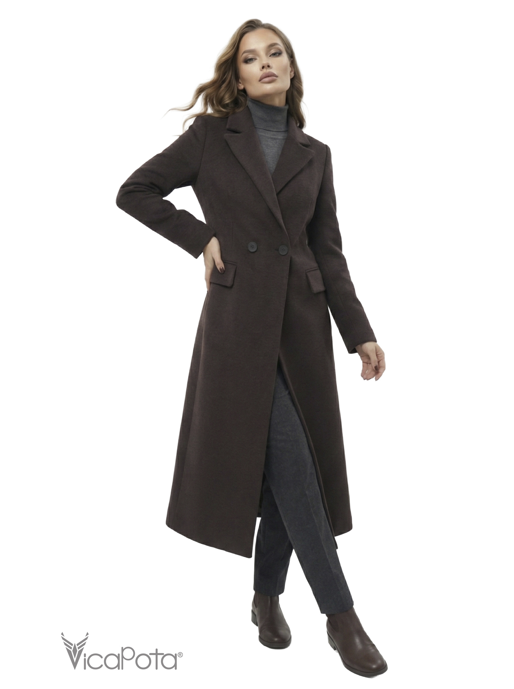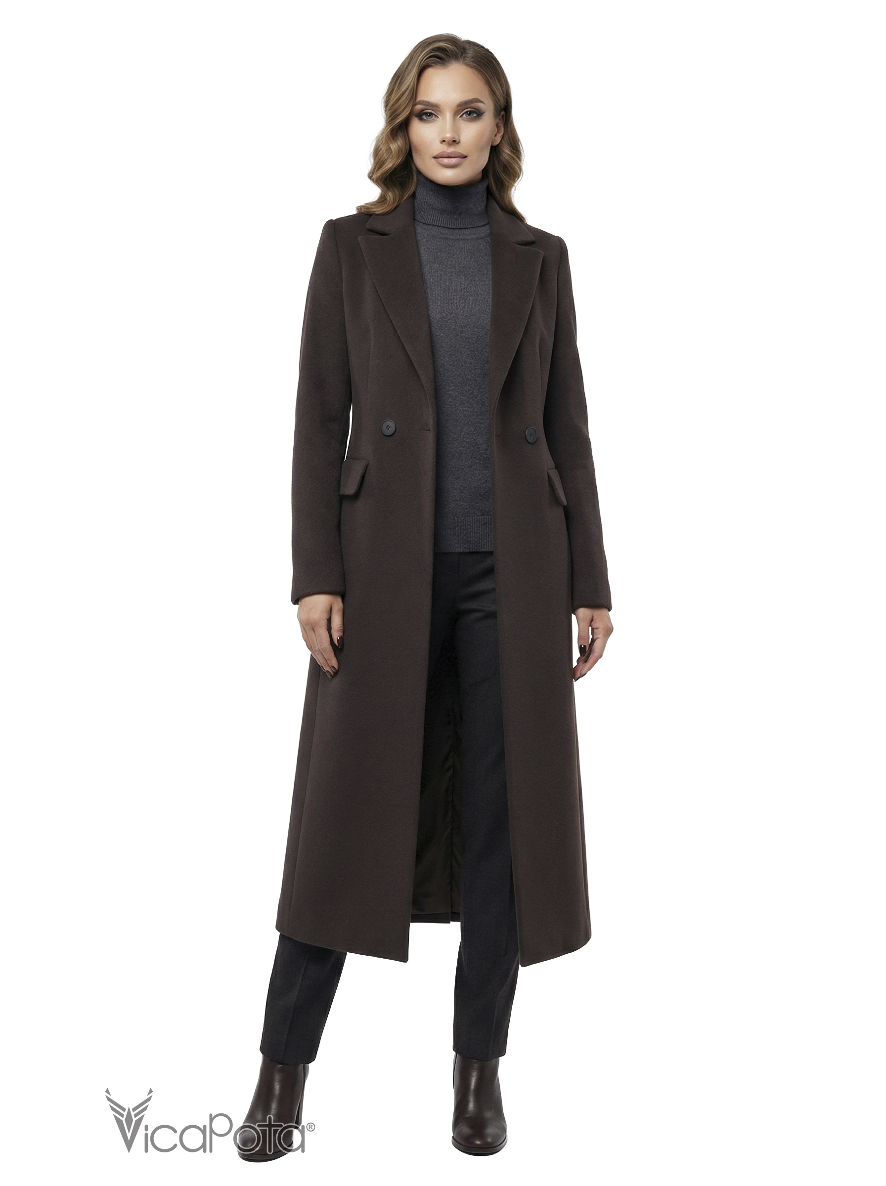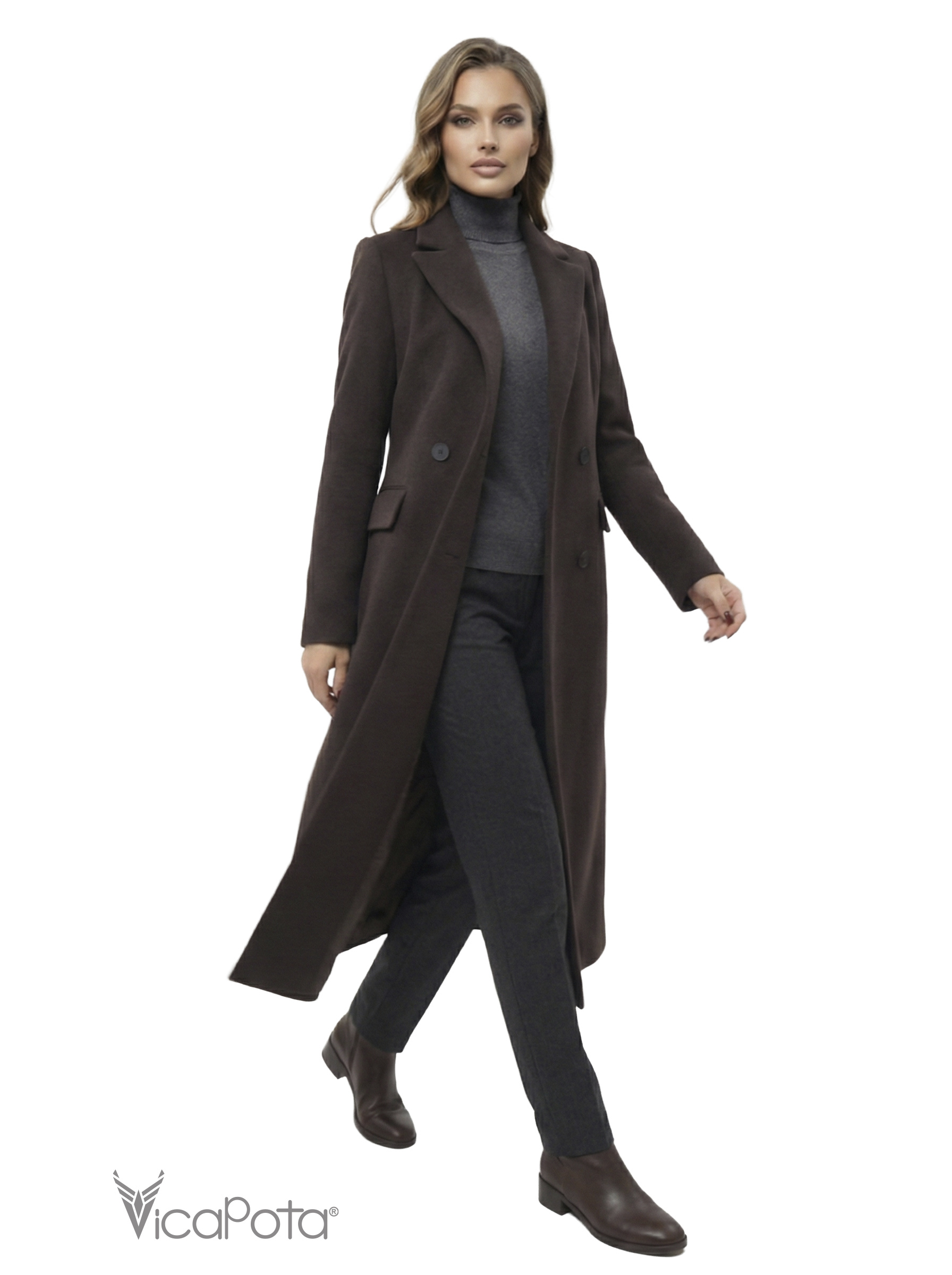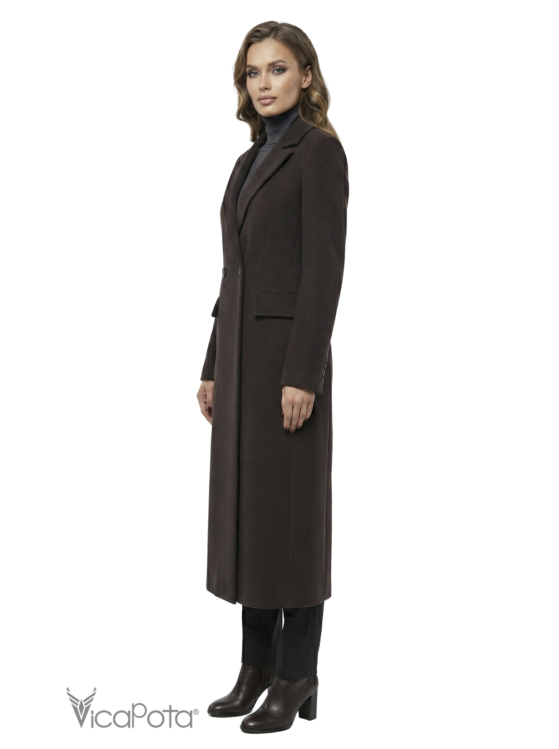 Розкішний шоколад: Довге пальто з турецького кашеміру (80% вовна)