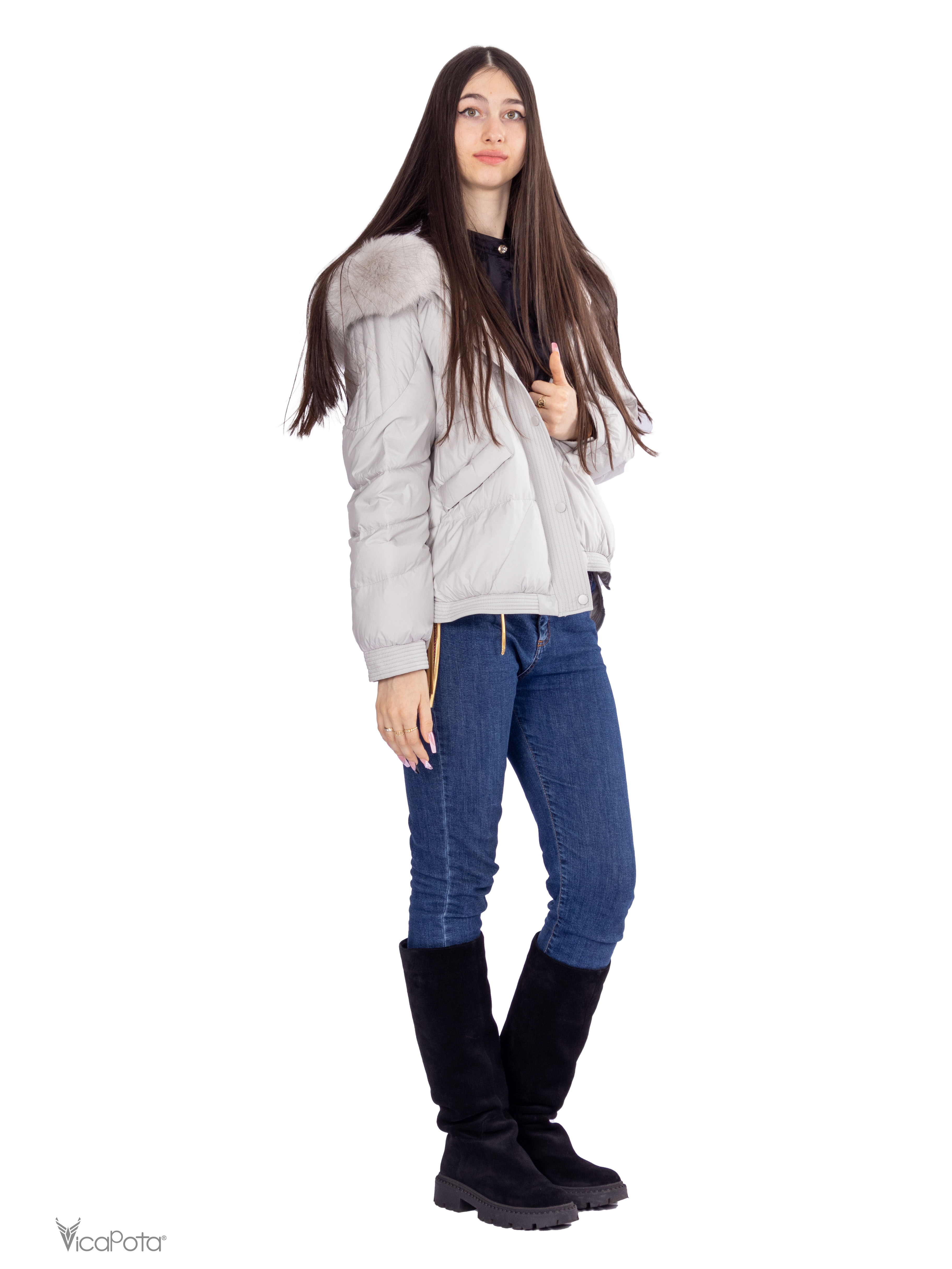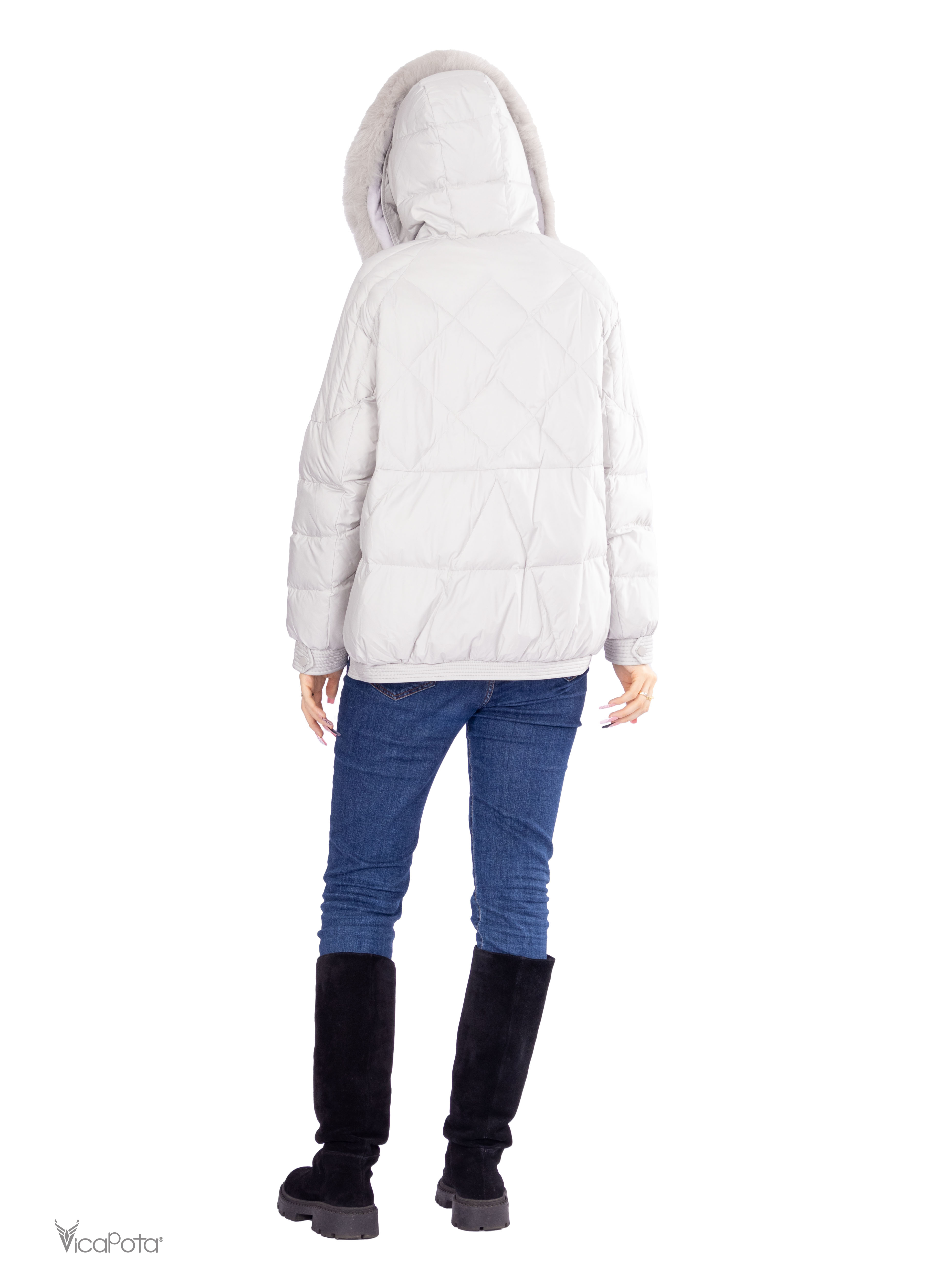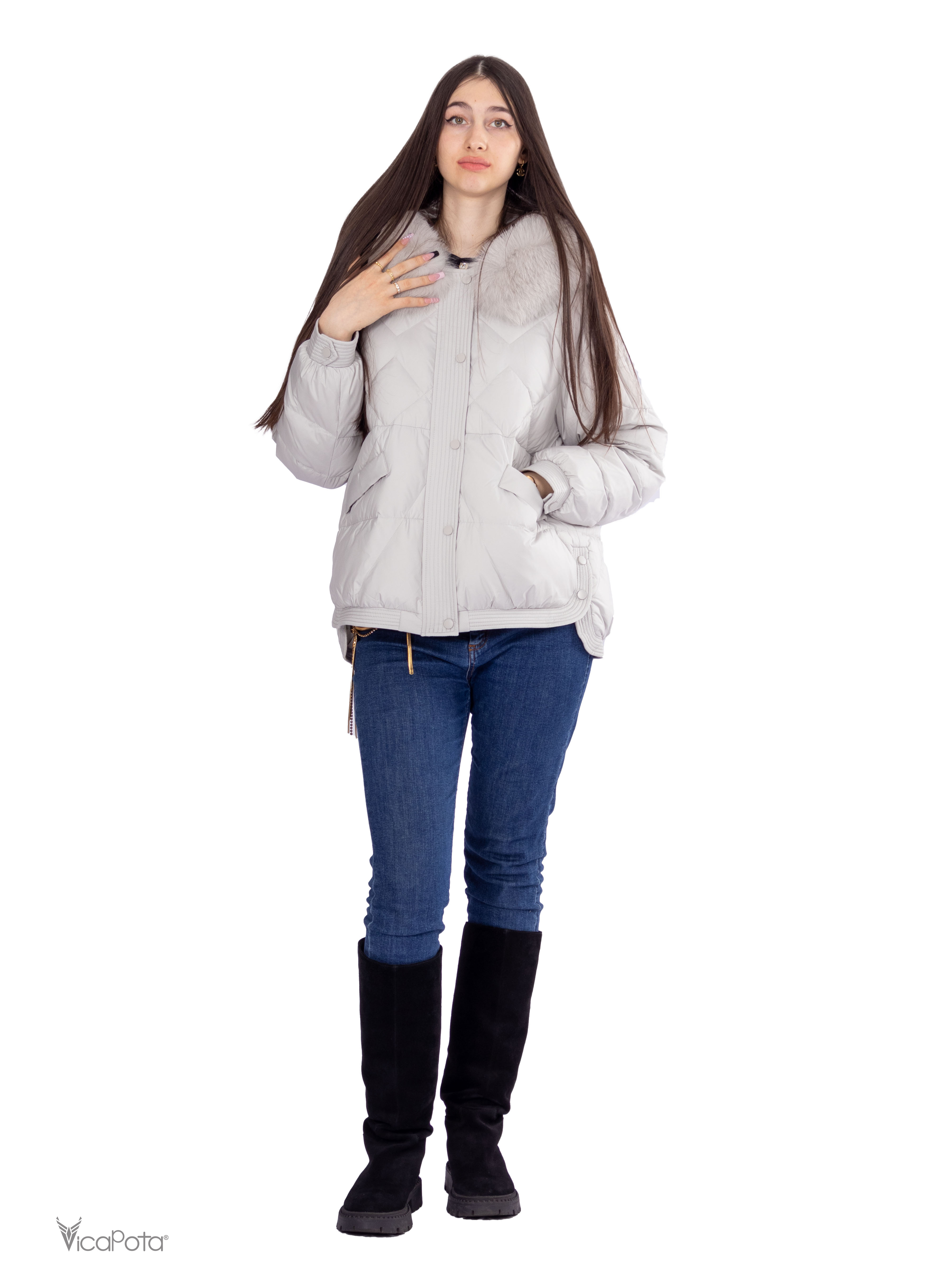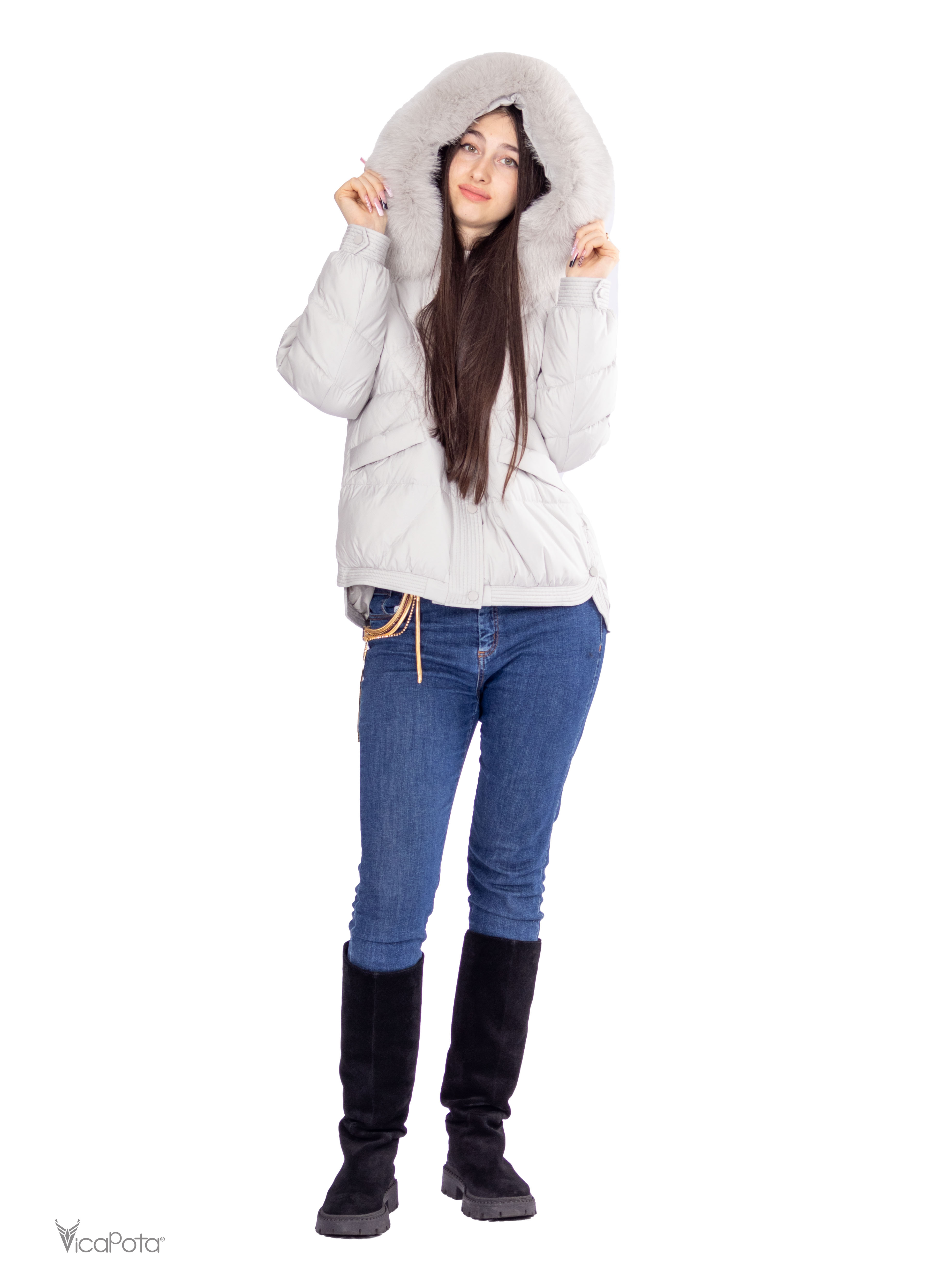 **Особливості:** практичний капюшон і знімне натуральне хутряне оздоблення для універсальності образу.