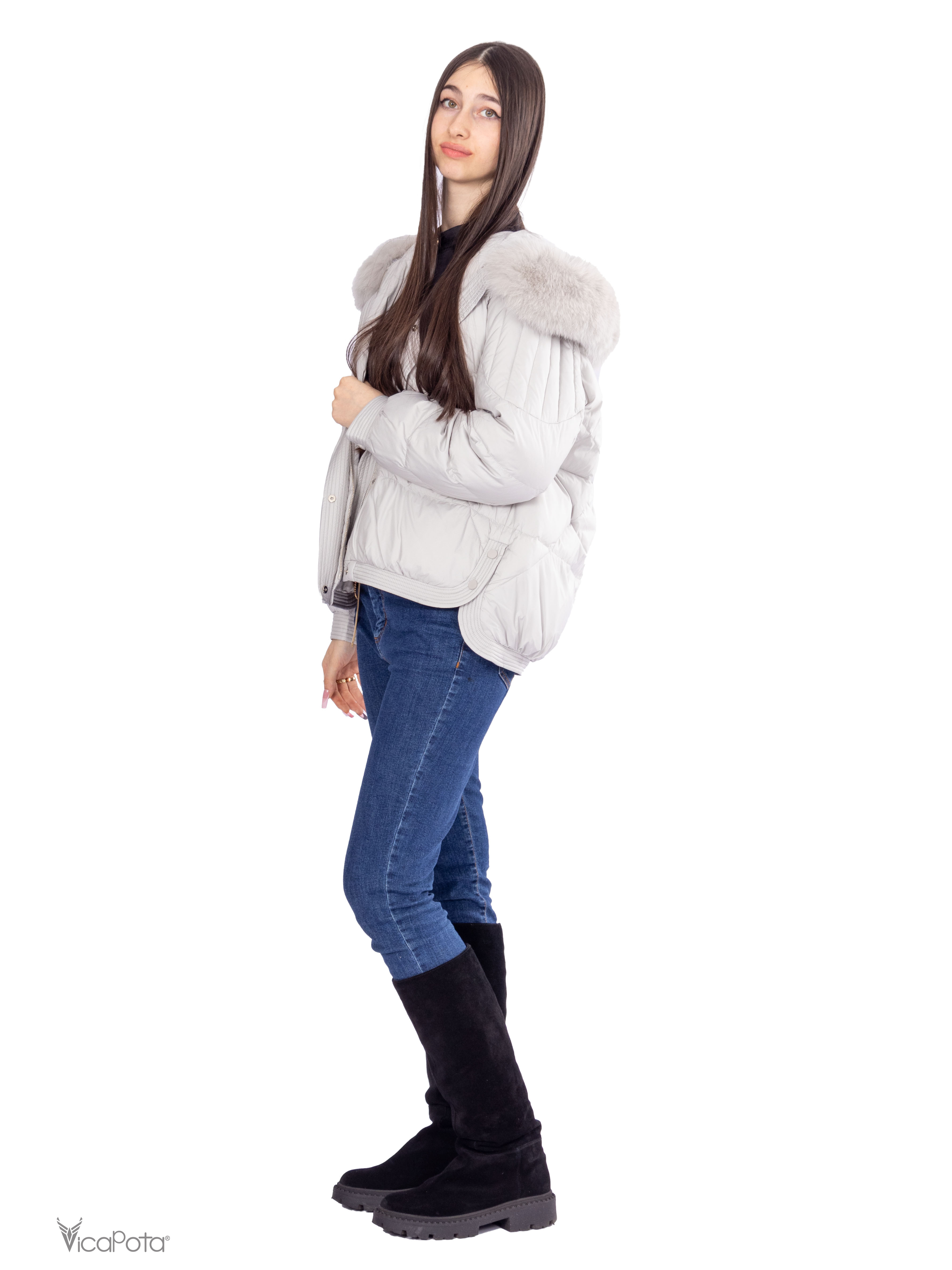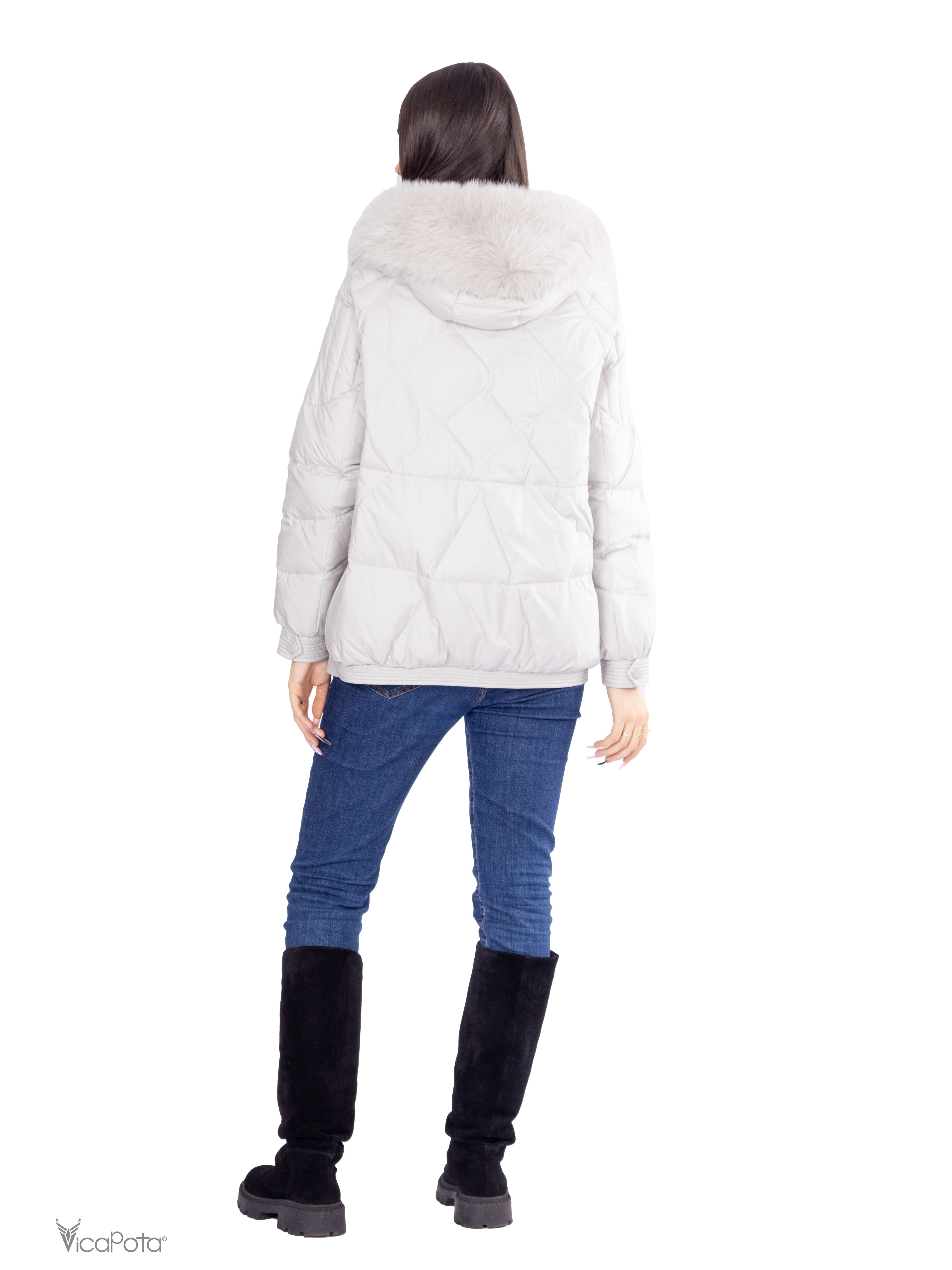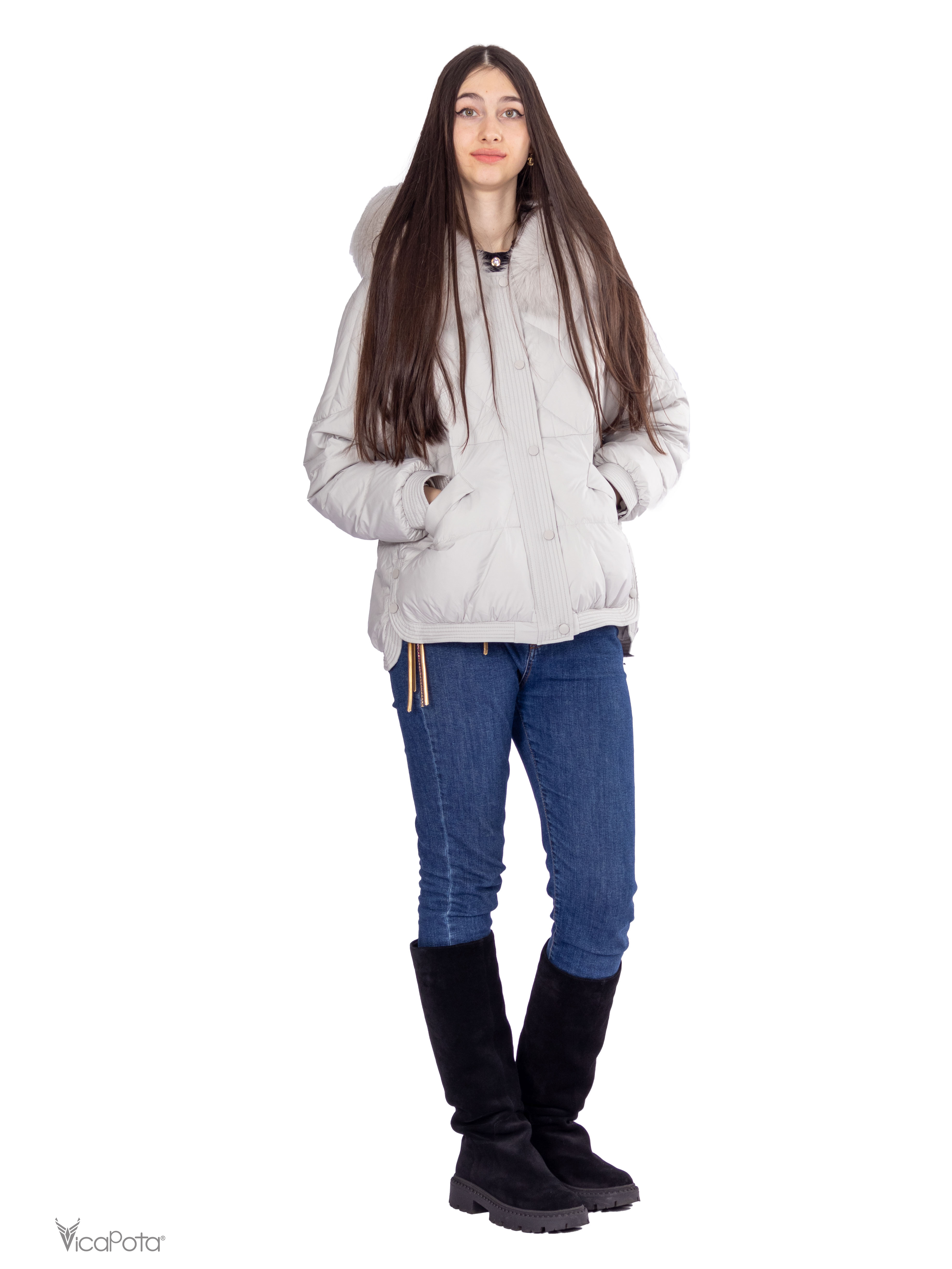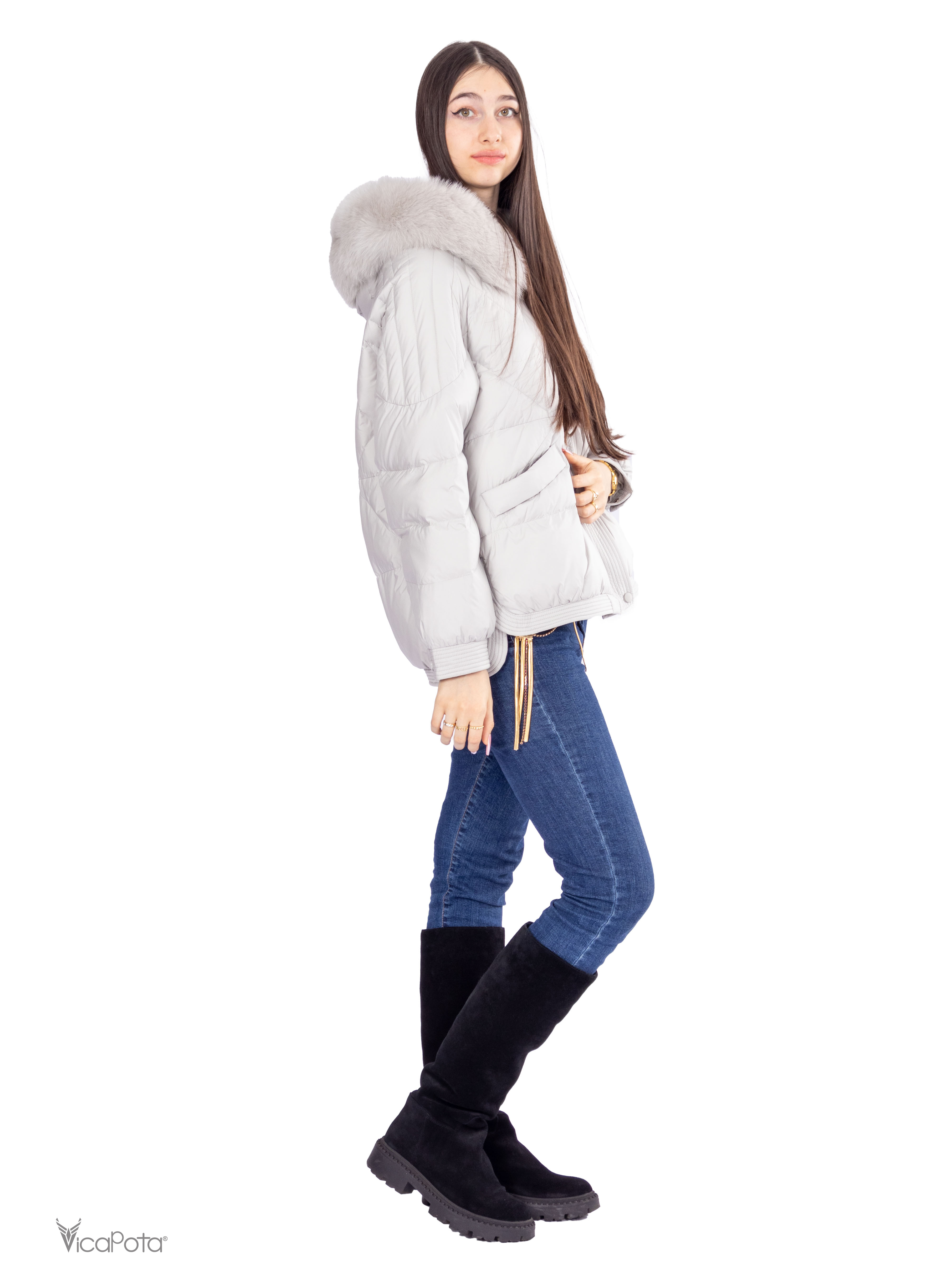 **Особливості:** практичний капюшон і знімне натуральне хутряне оздоблення для універсальності образу.