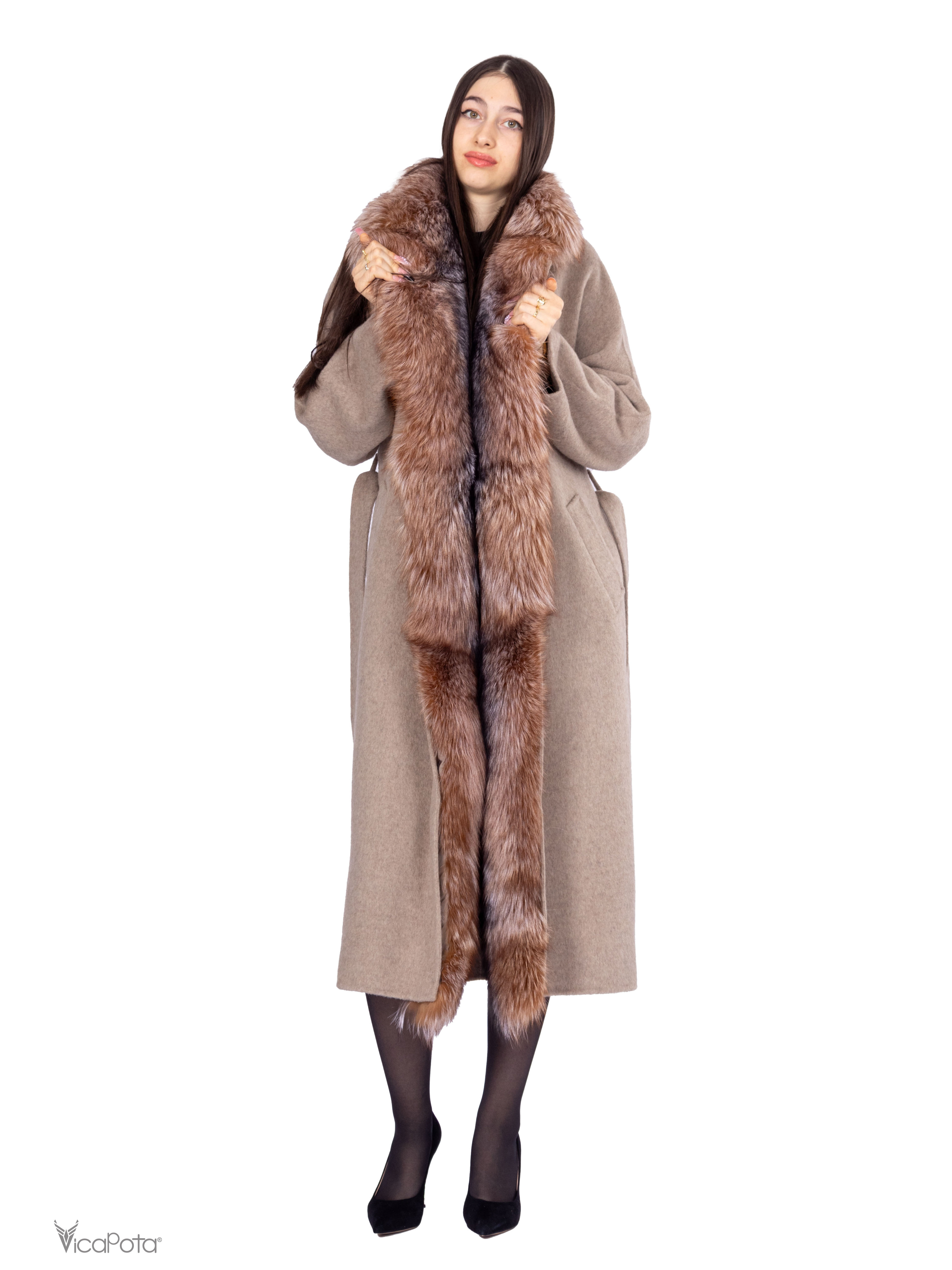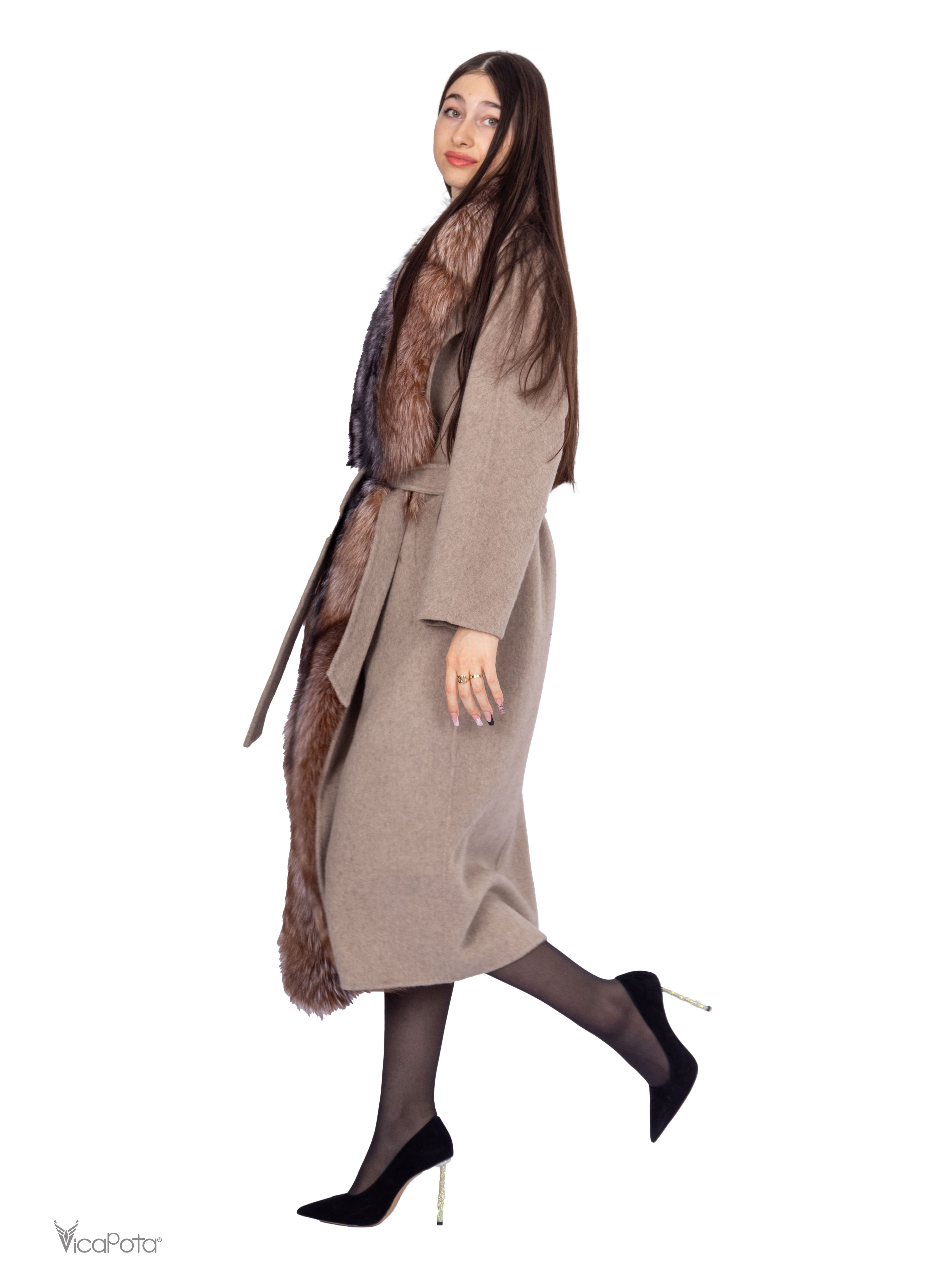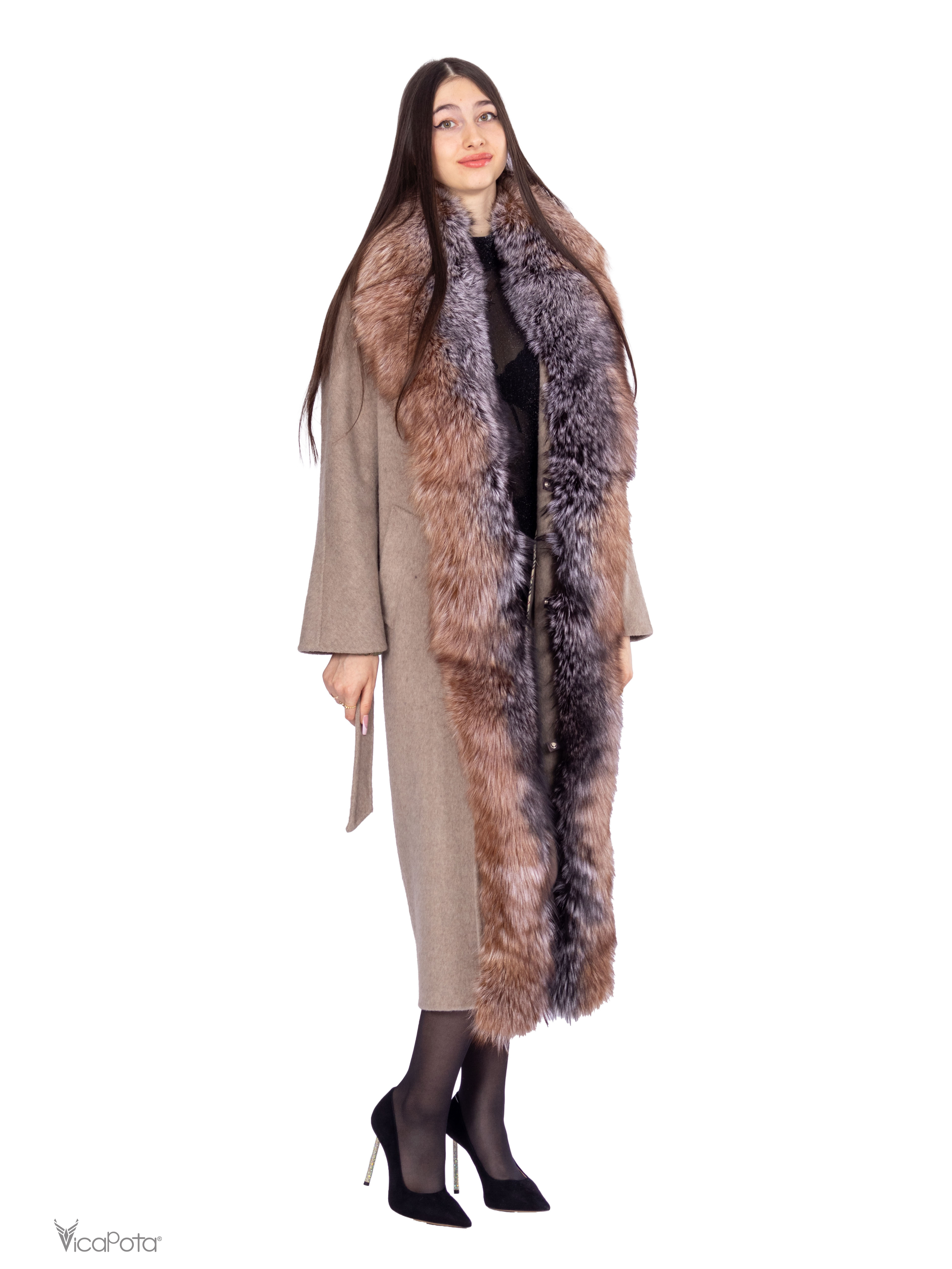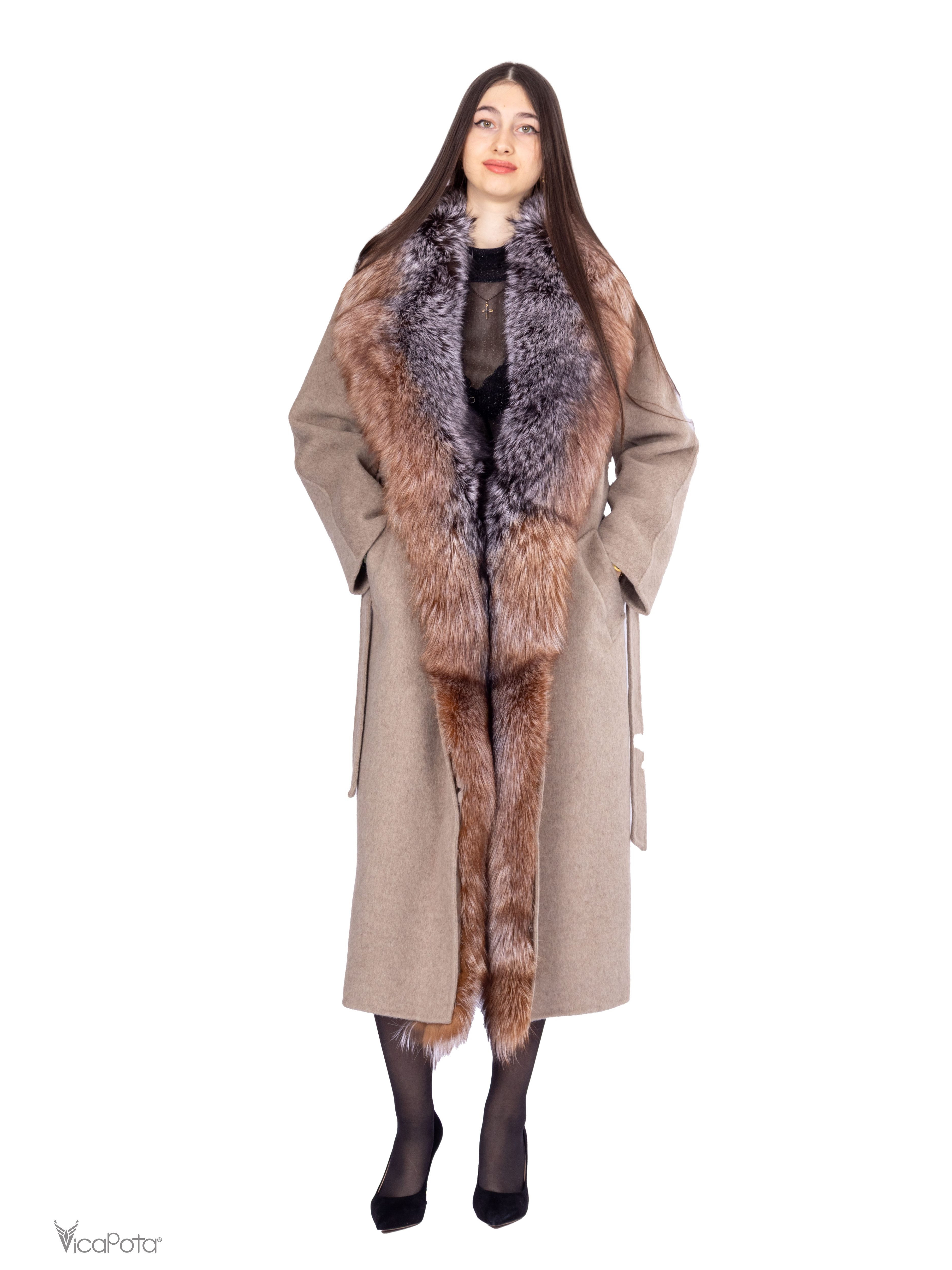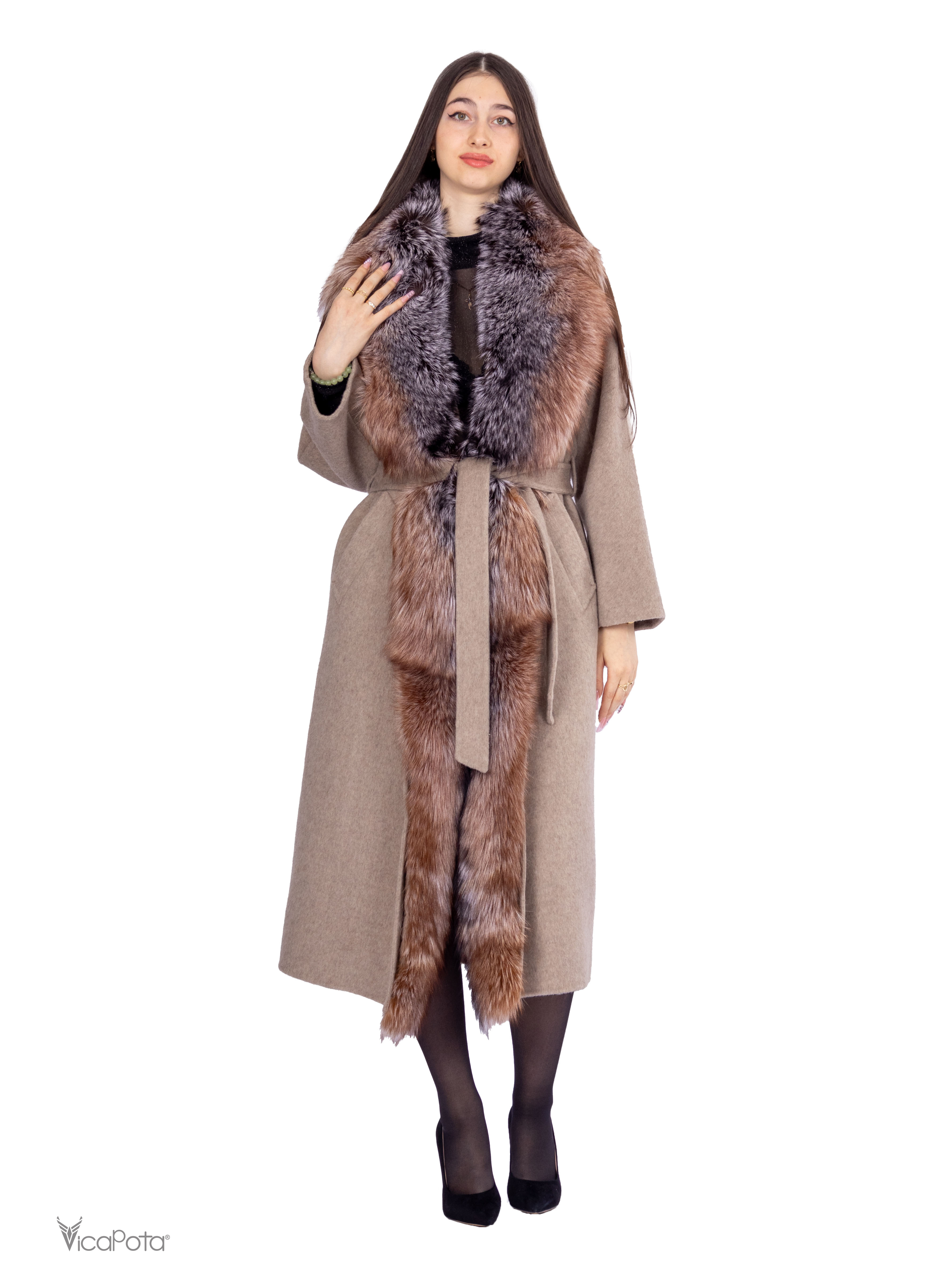 - Натуральне хутро лисиці прикрашає пальто, додаючи вишуканості.