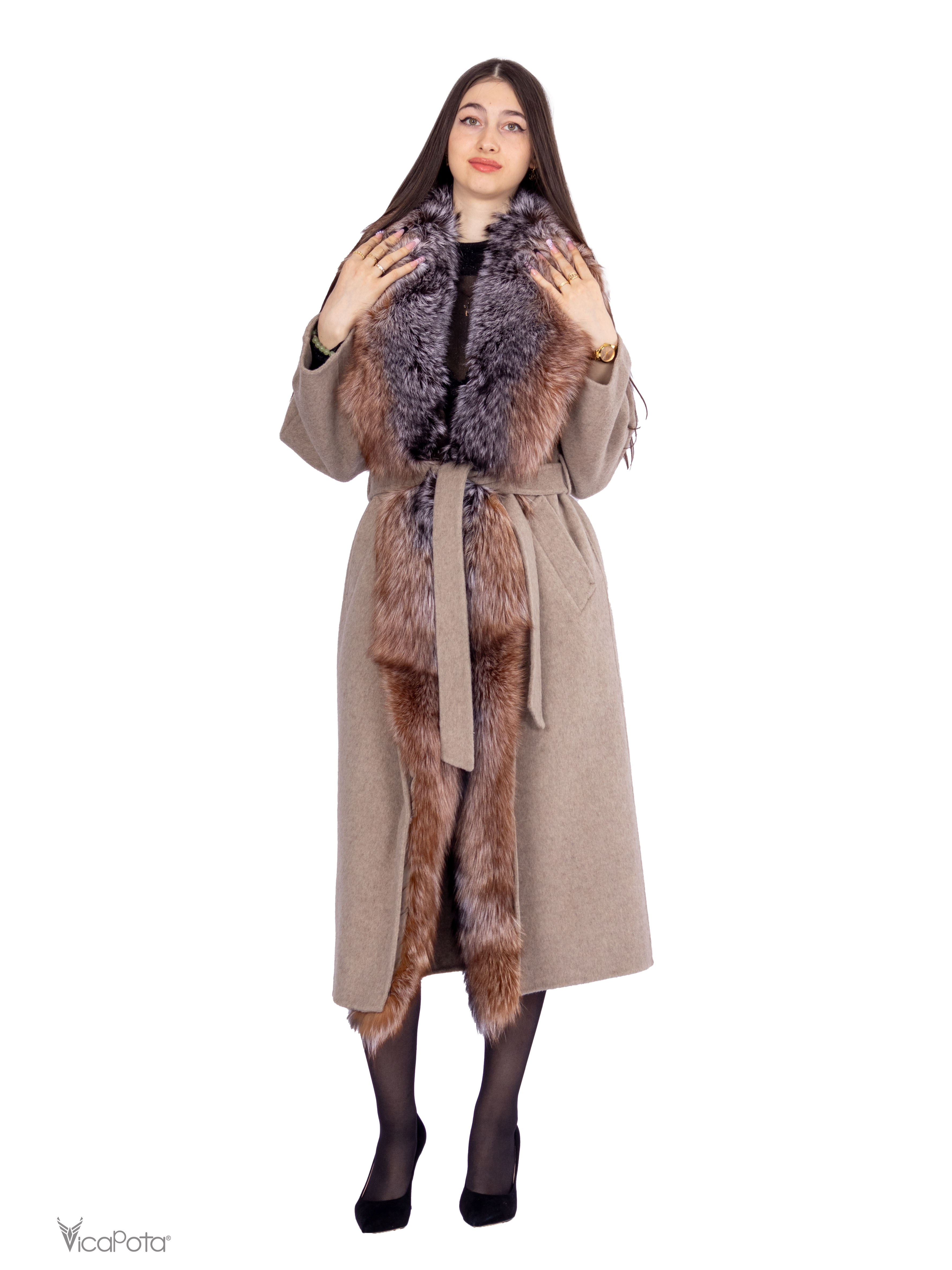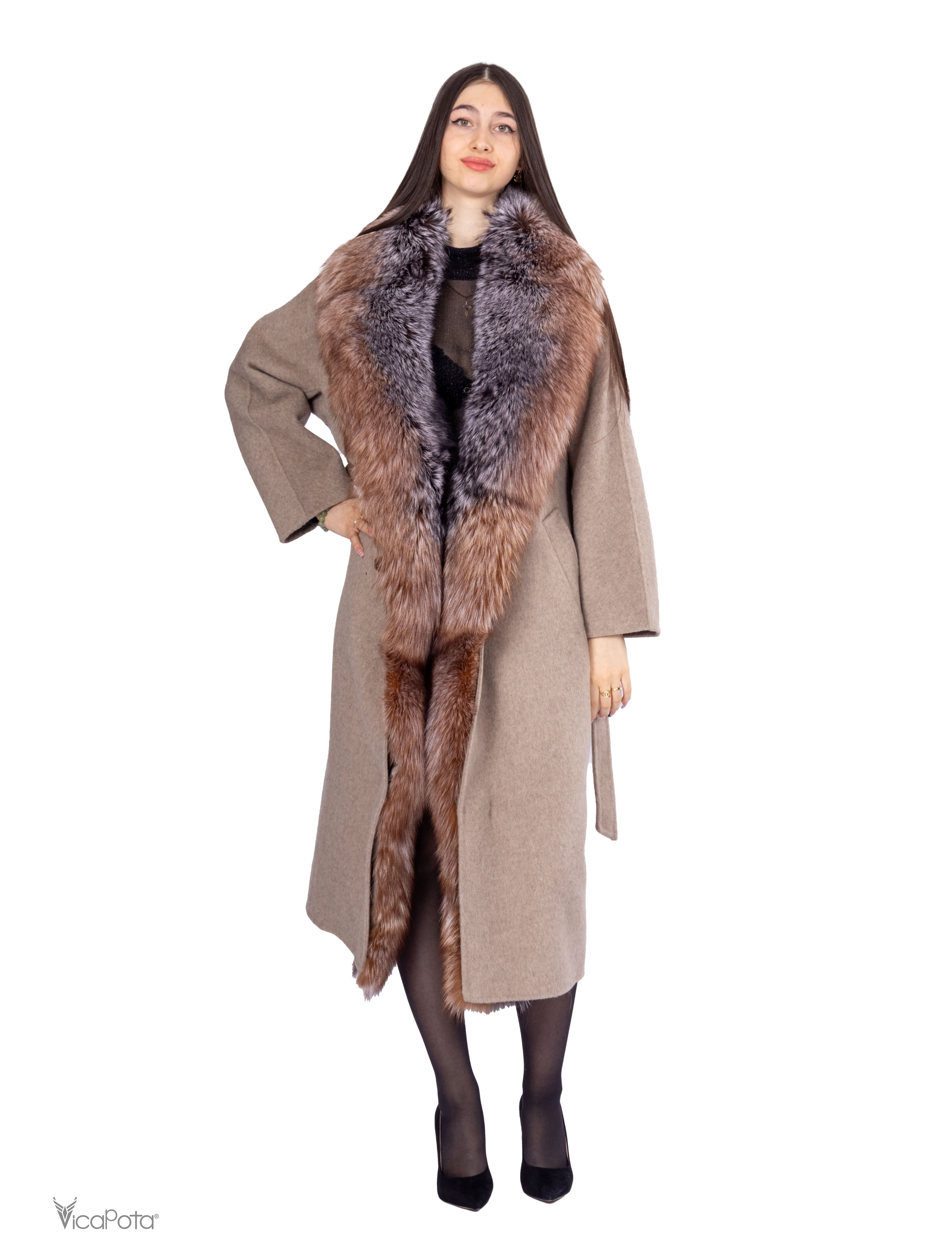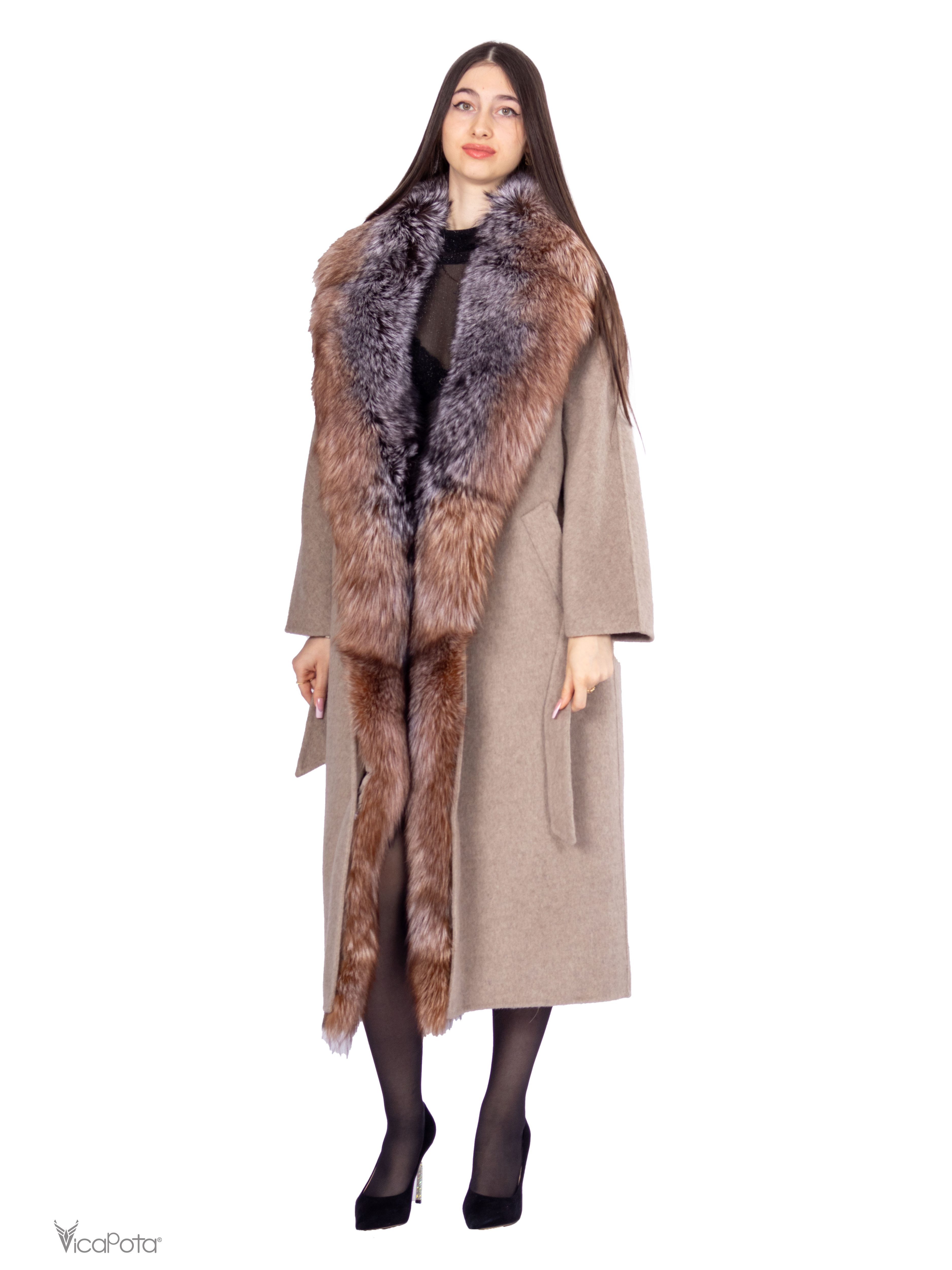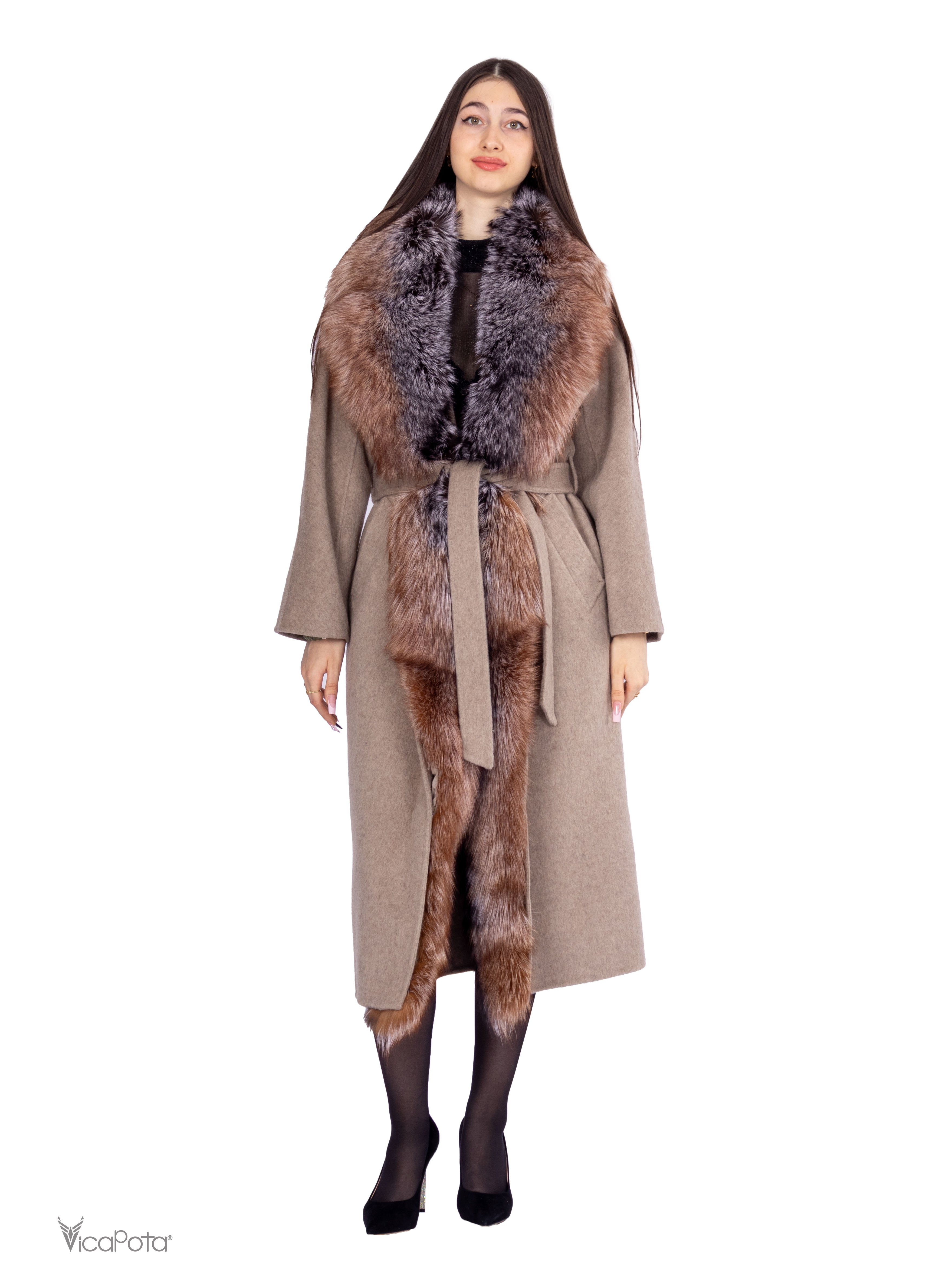 - Натуральне хутро лисиці прикрашає пальто, додаючи вишуканості.