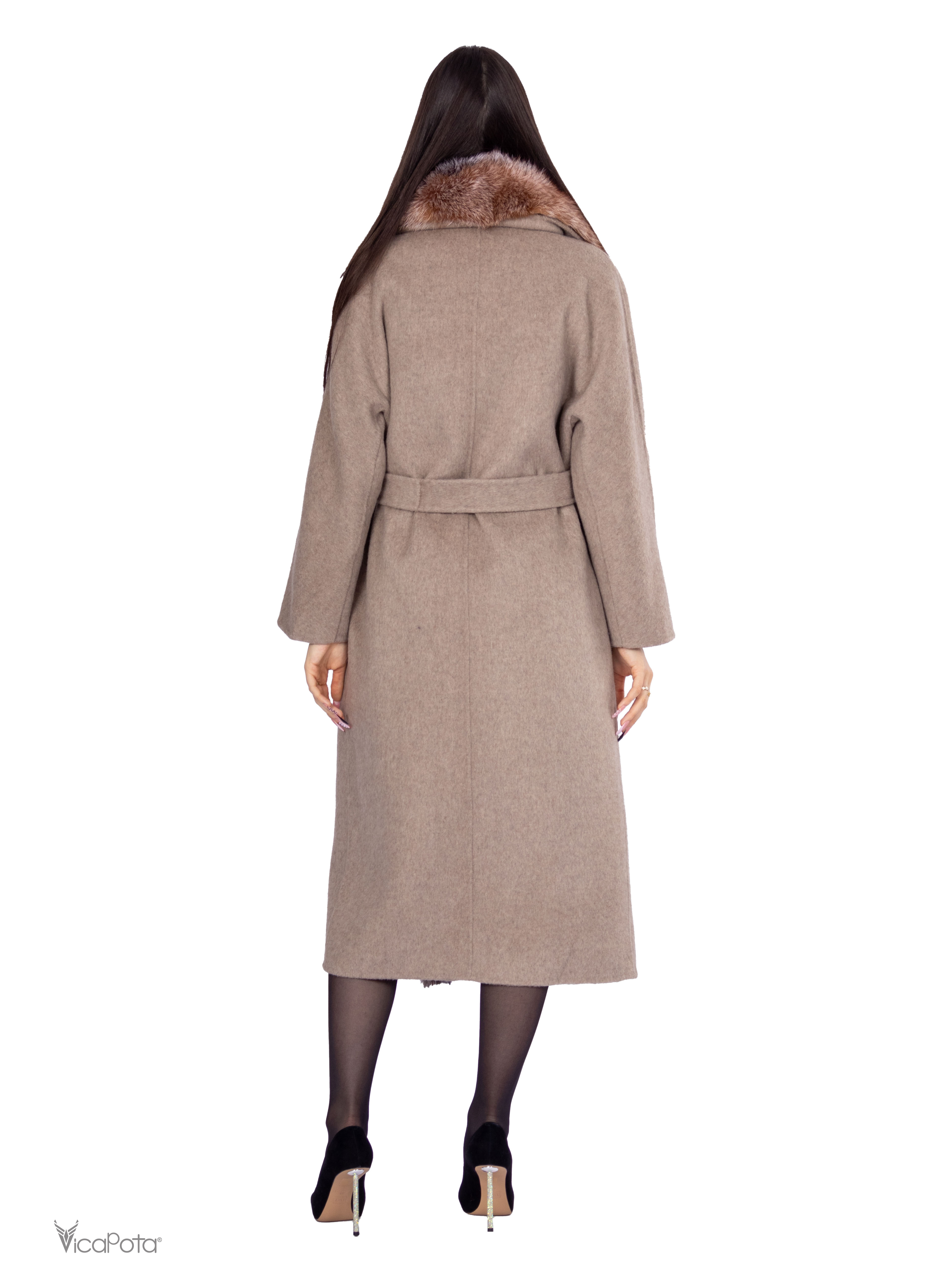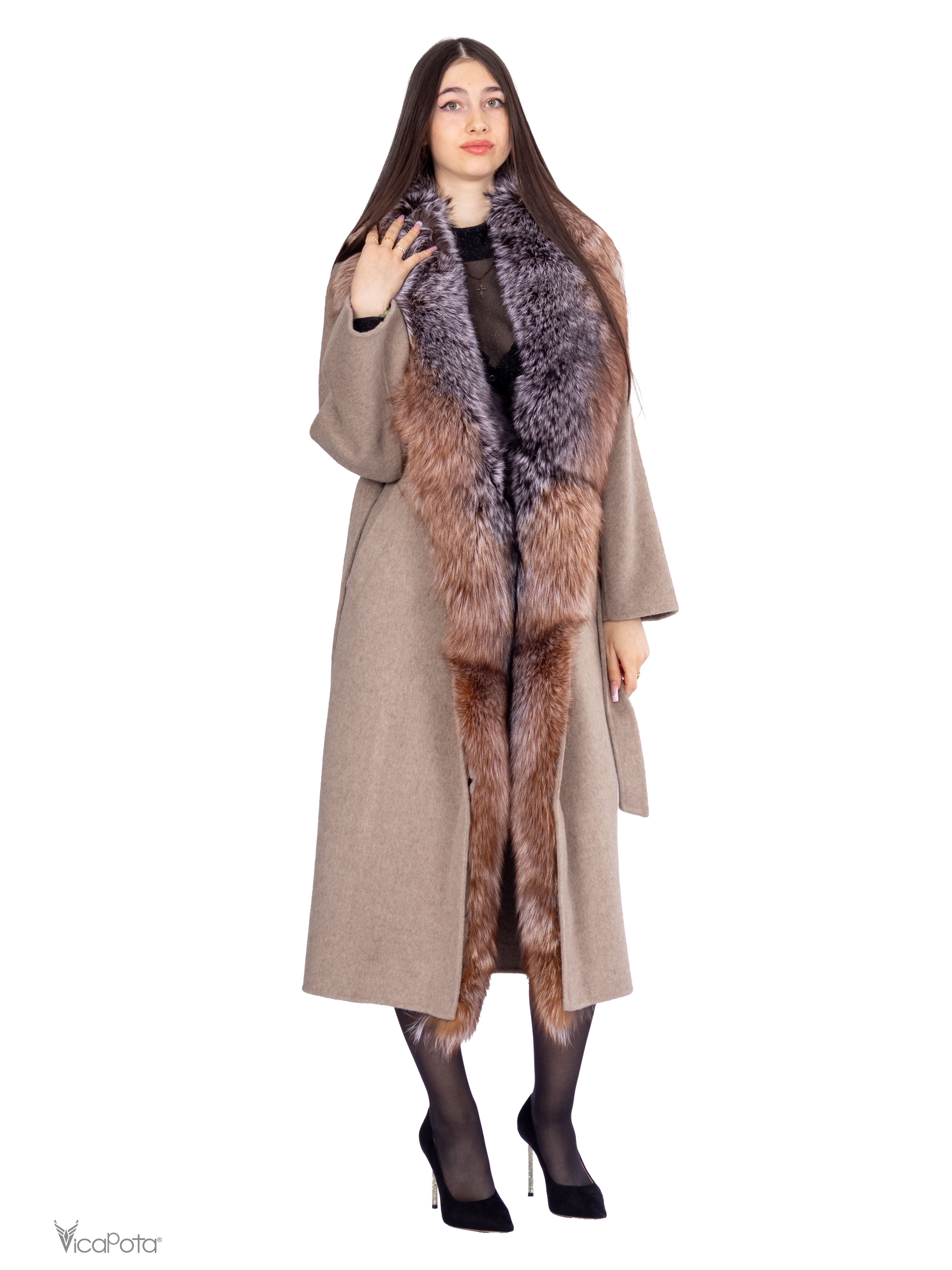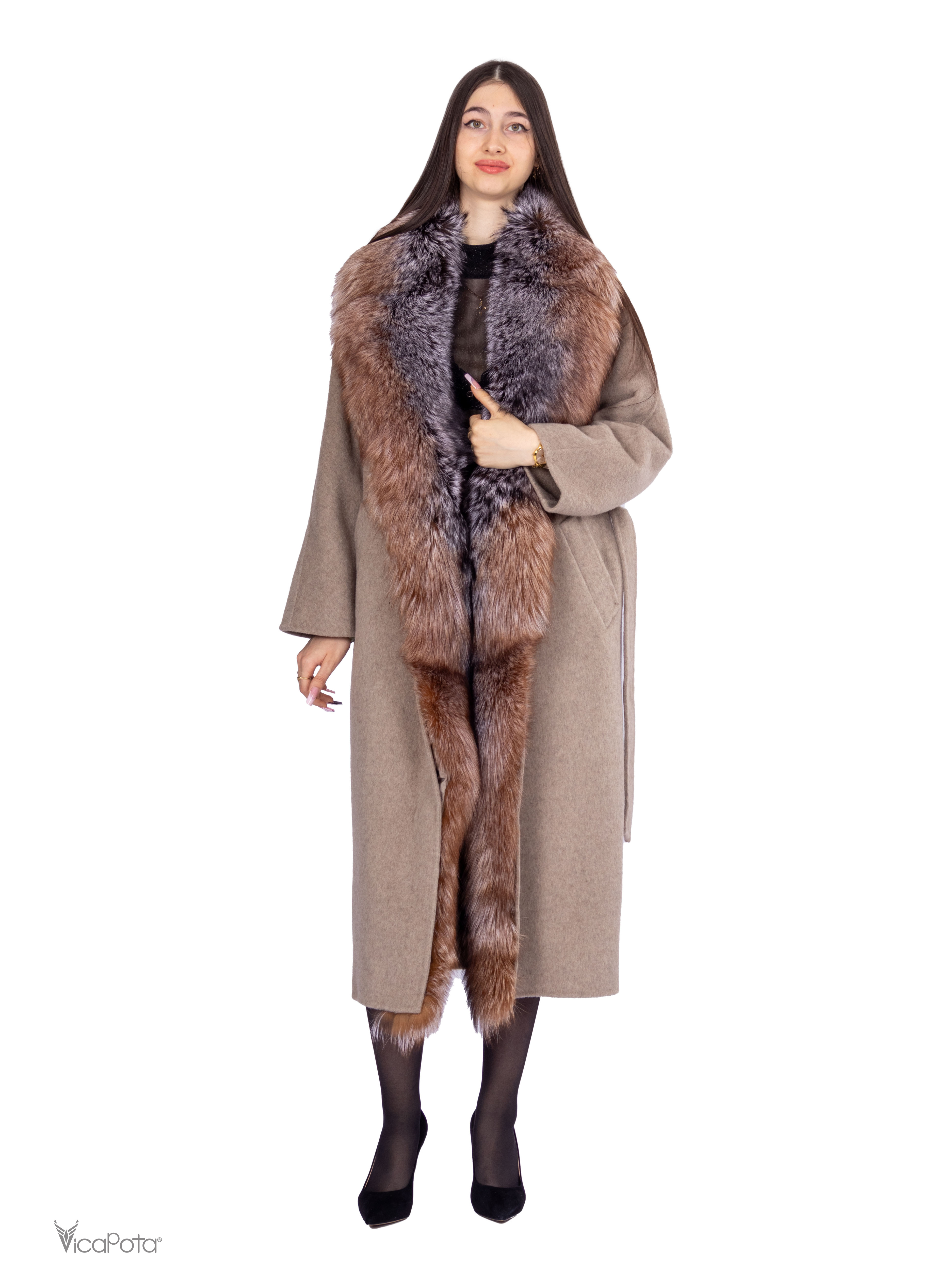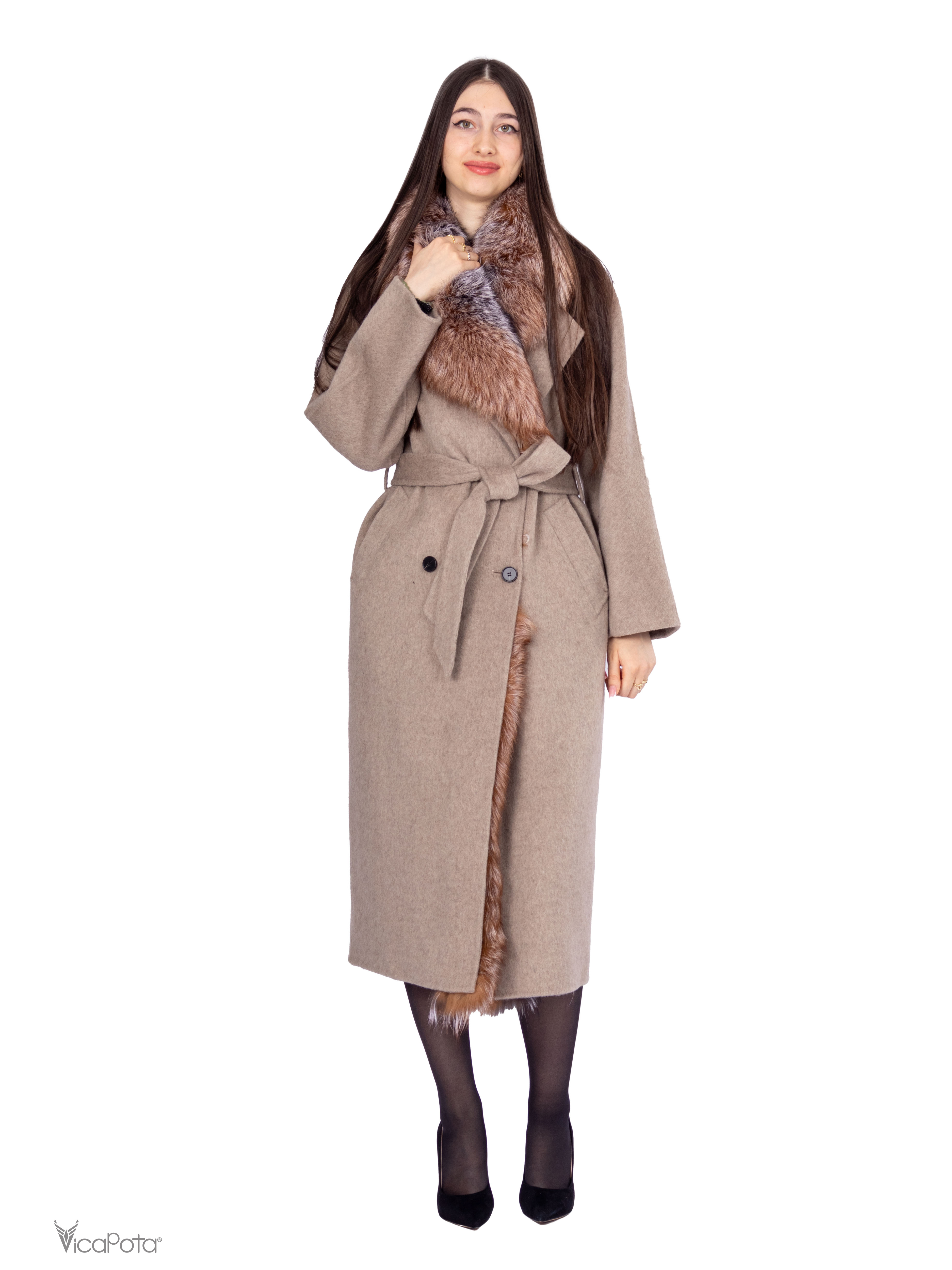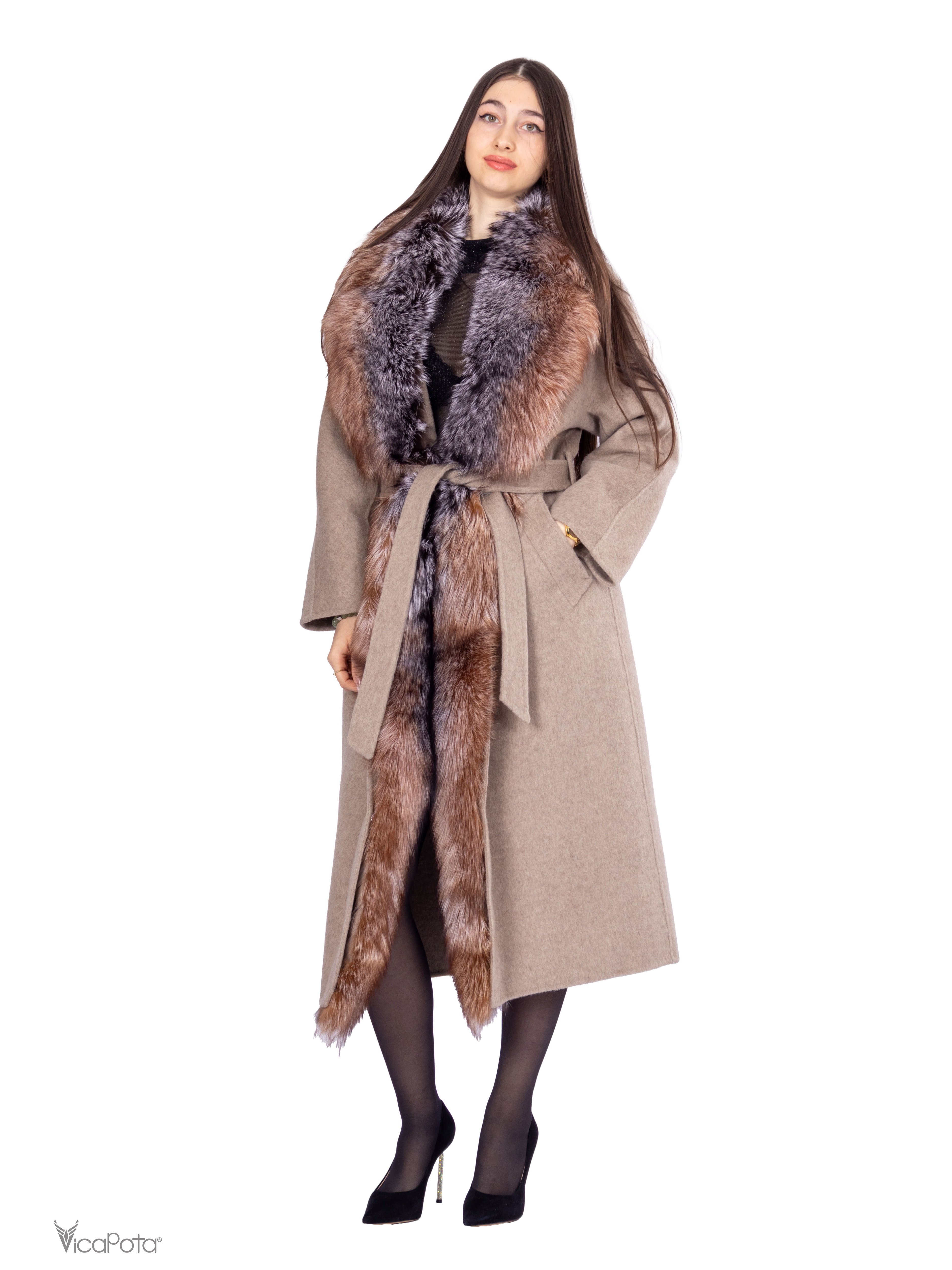 - Натуральне хутро лисиці прикрашає пальто, додаючи вишуканості.