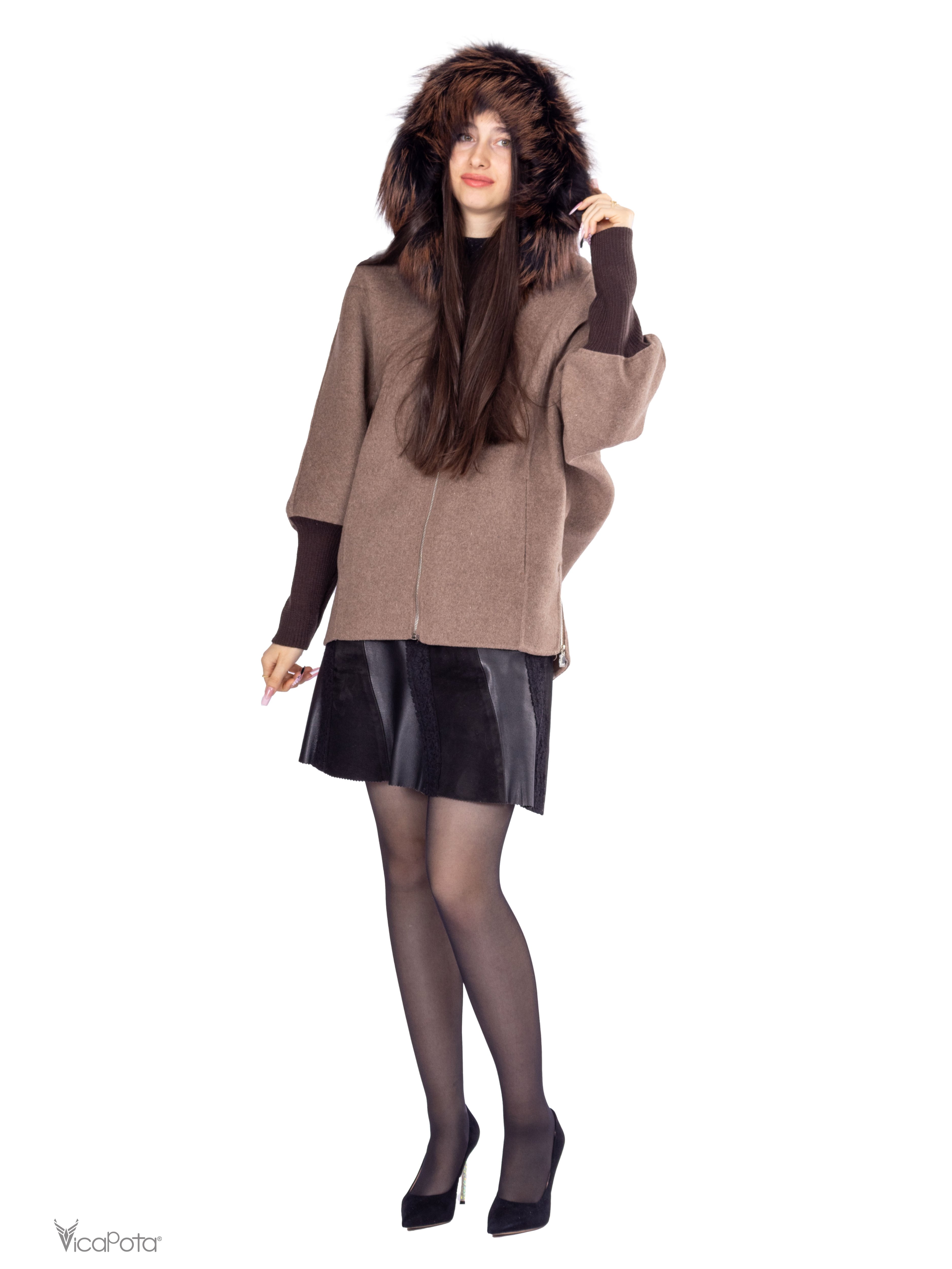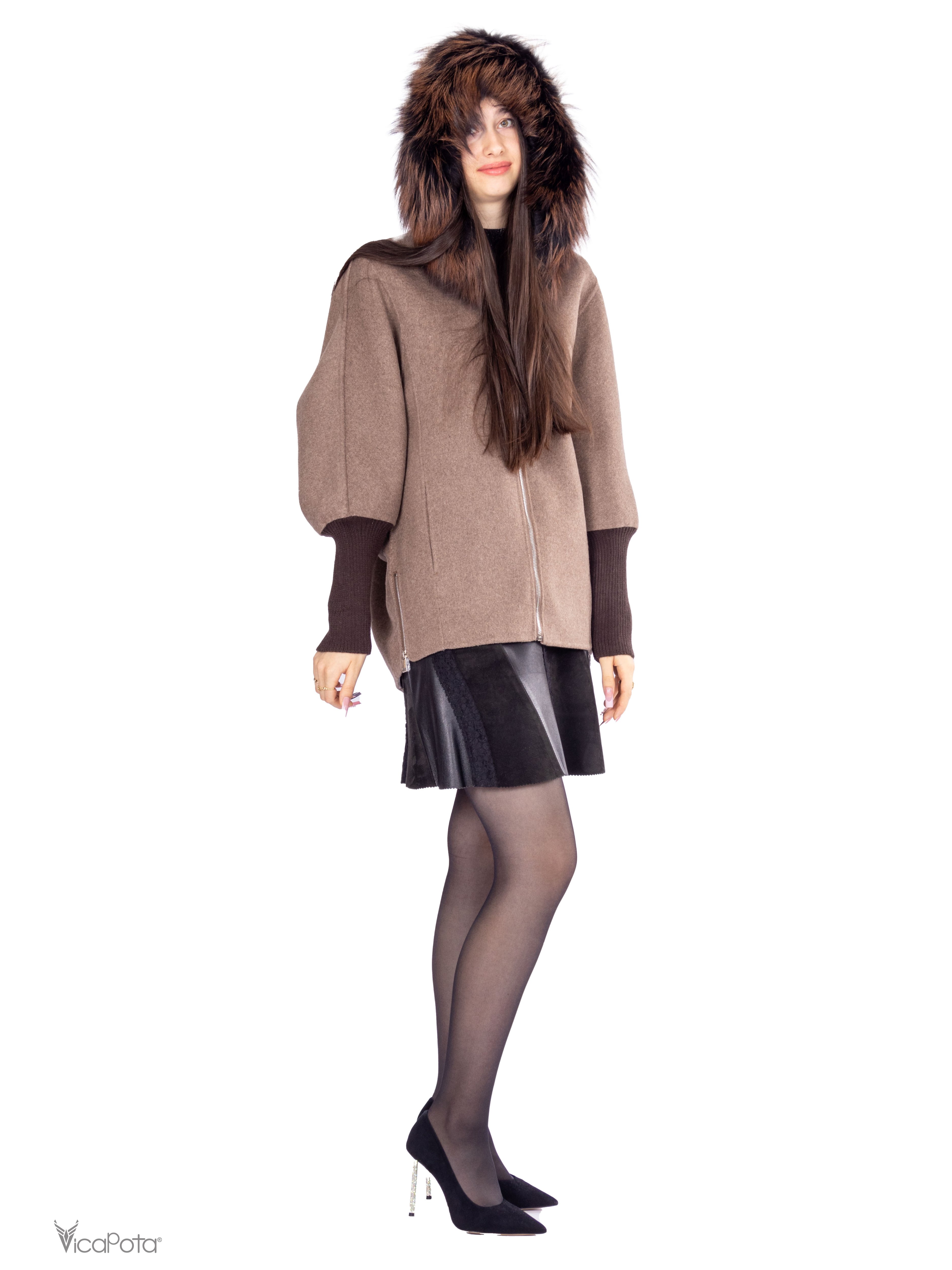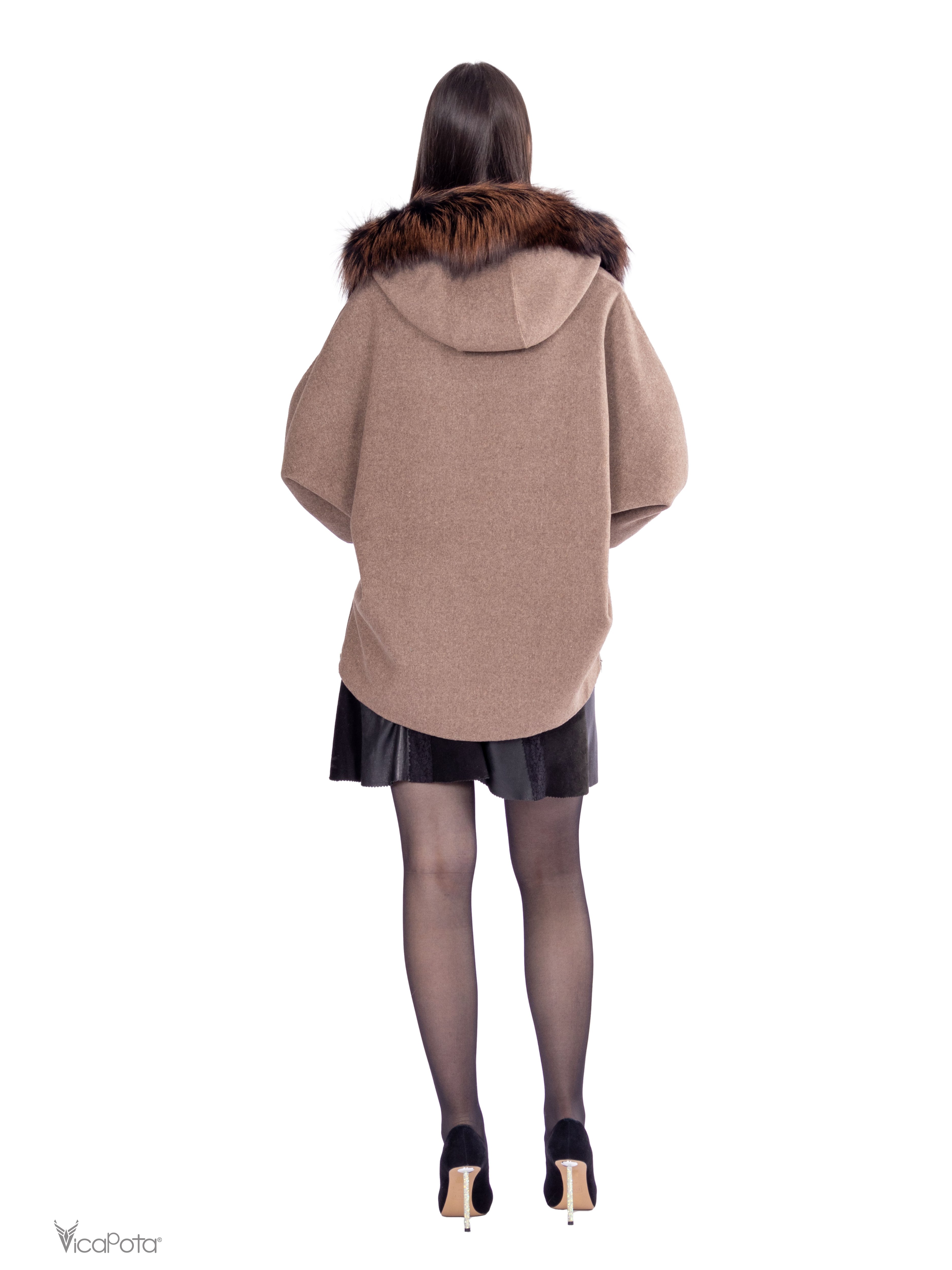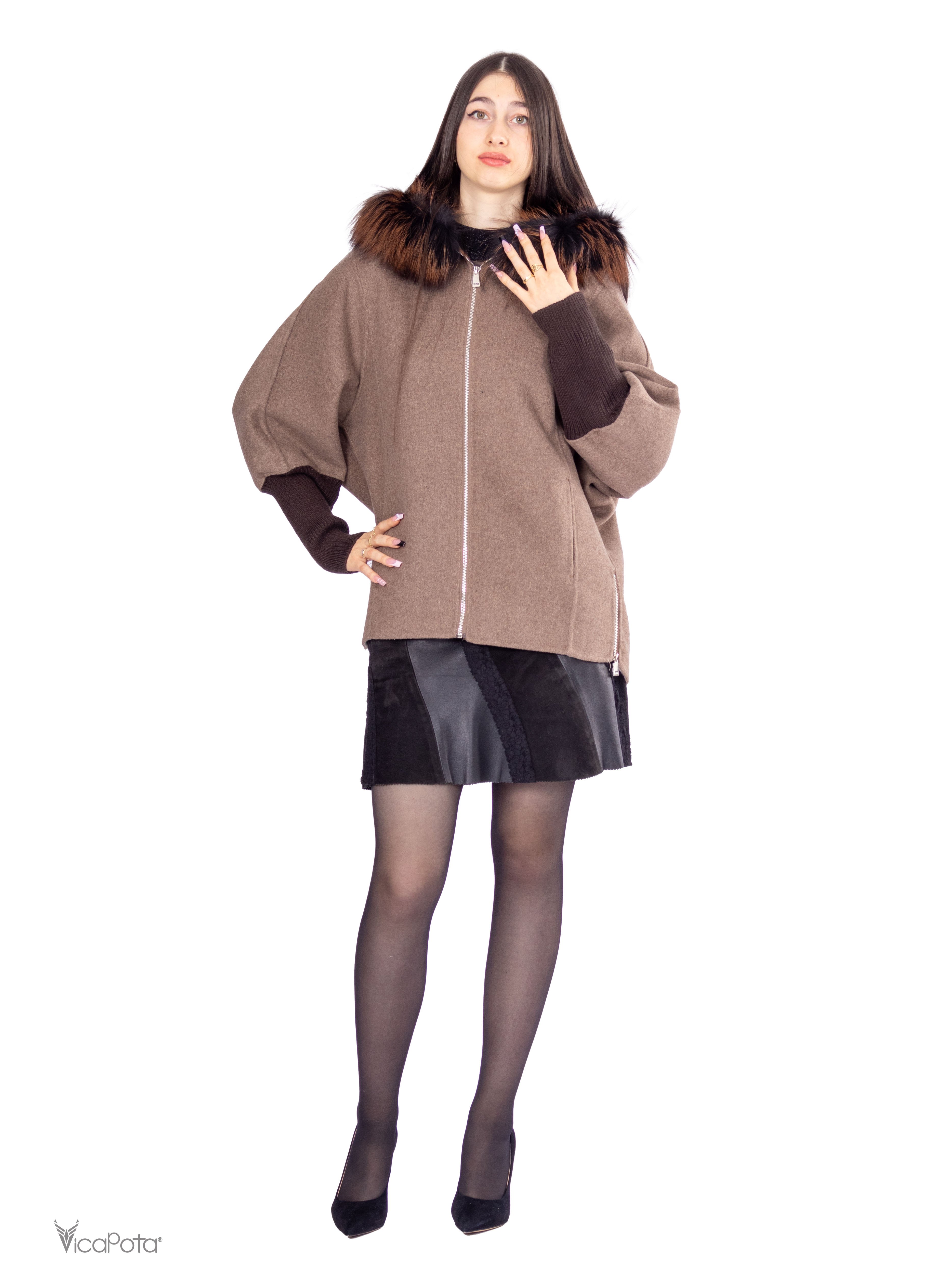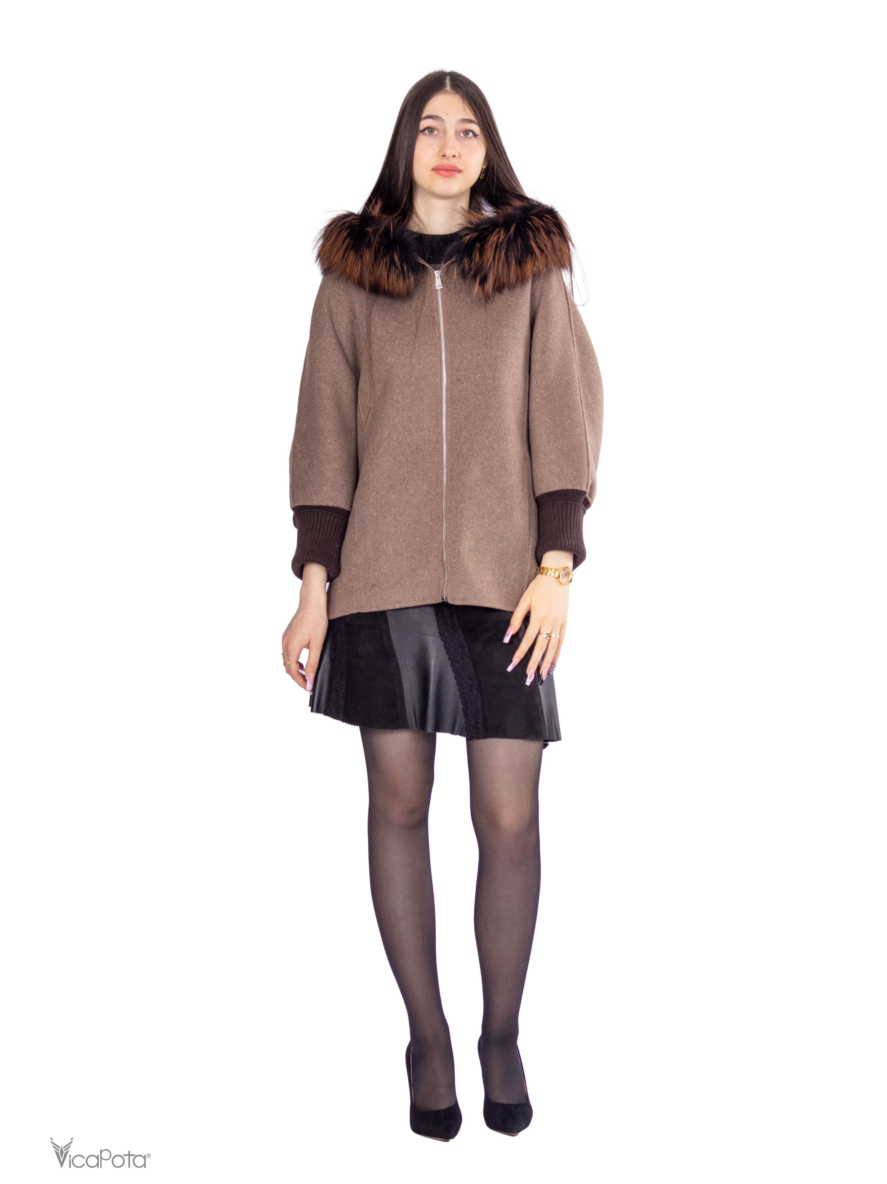 - **Мех:** натуральний хутряний комір із лисиці, який можна зняти, змінюючи стиль пальто на більш повсякденний.