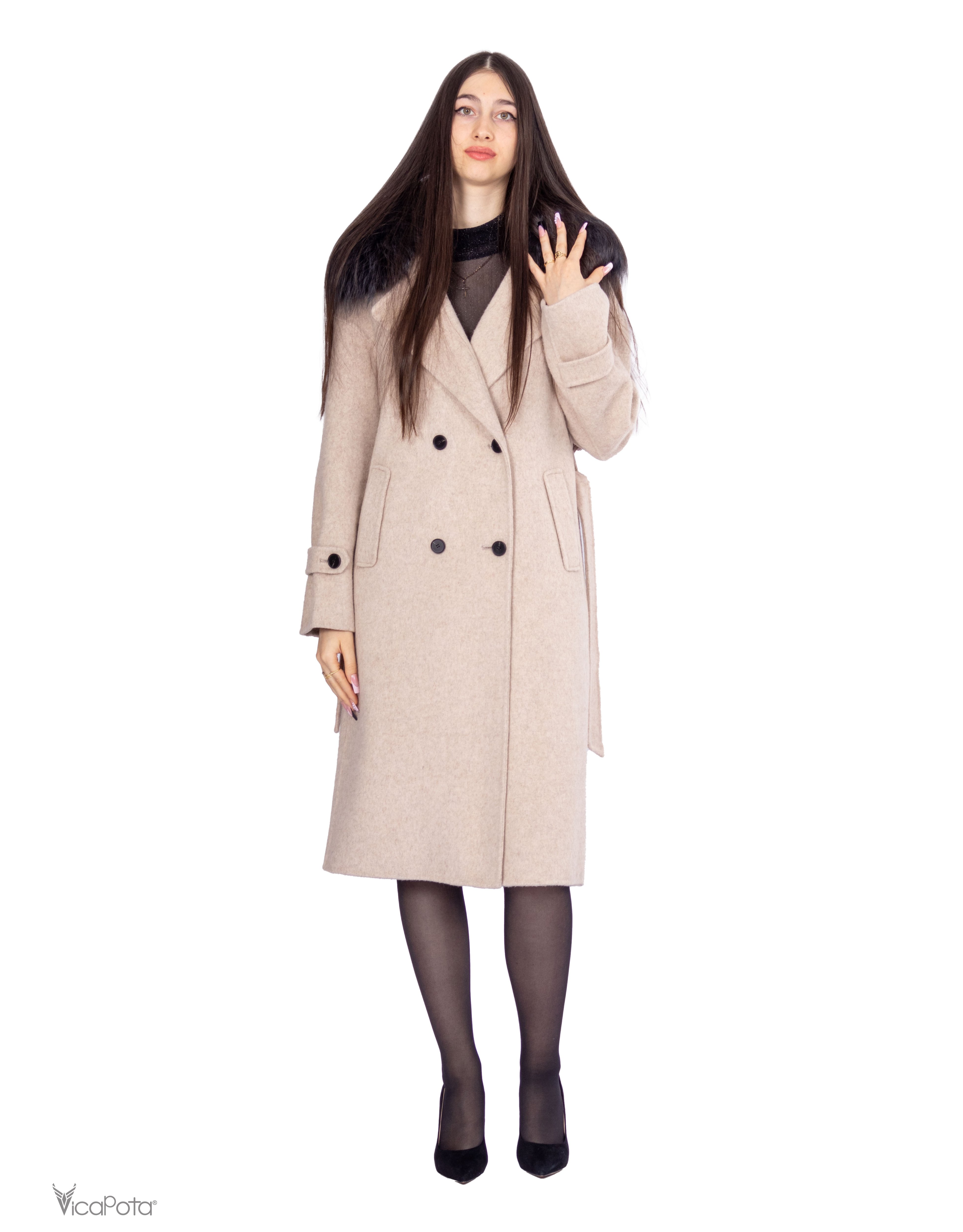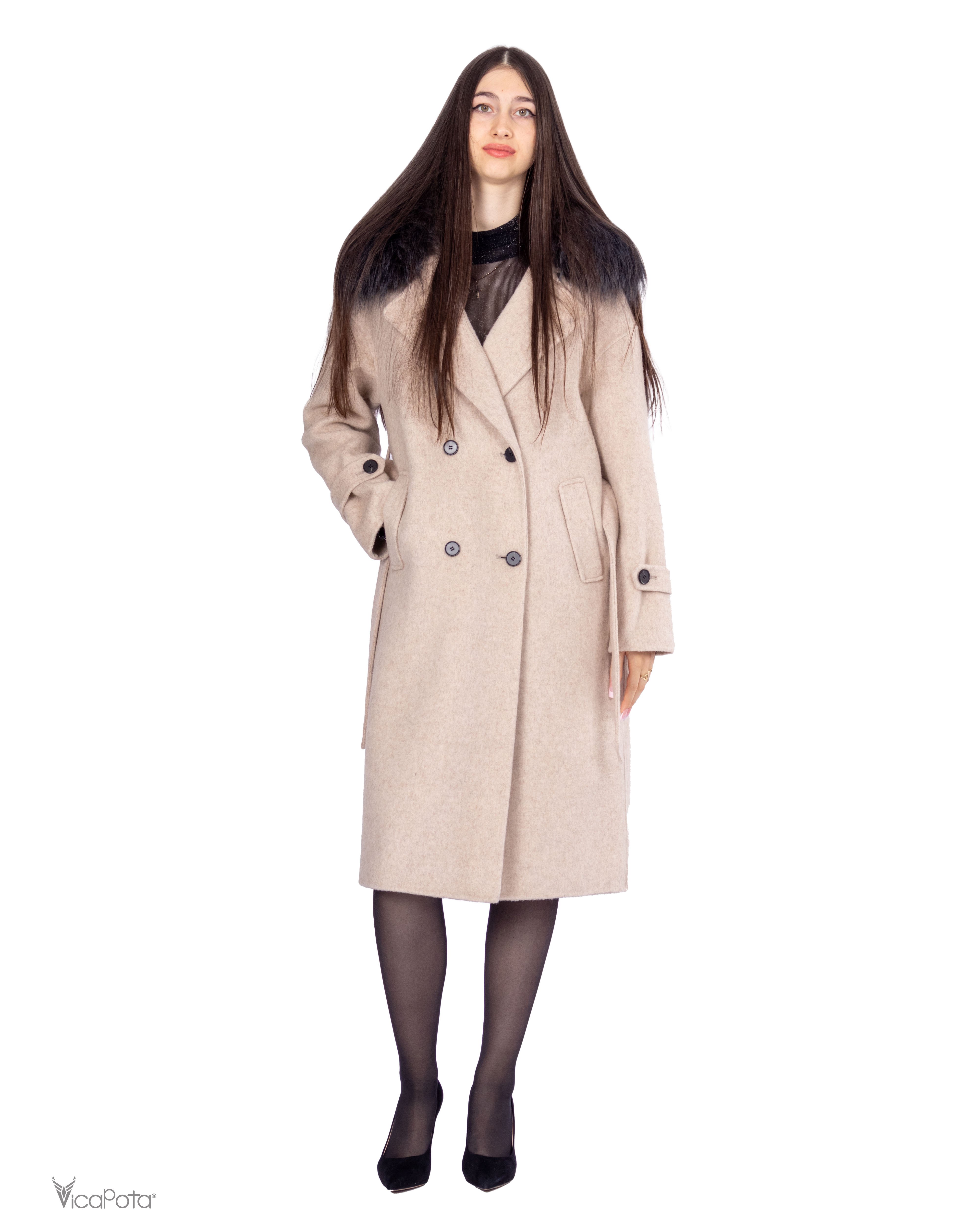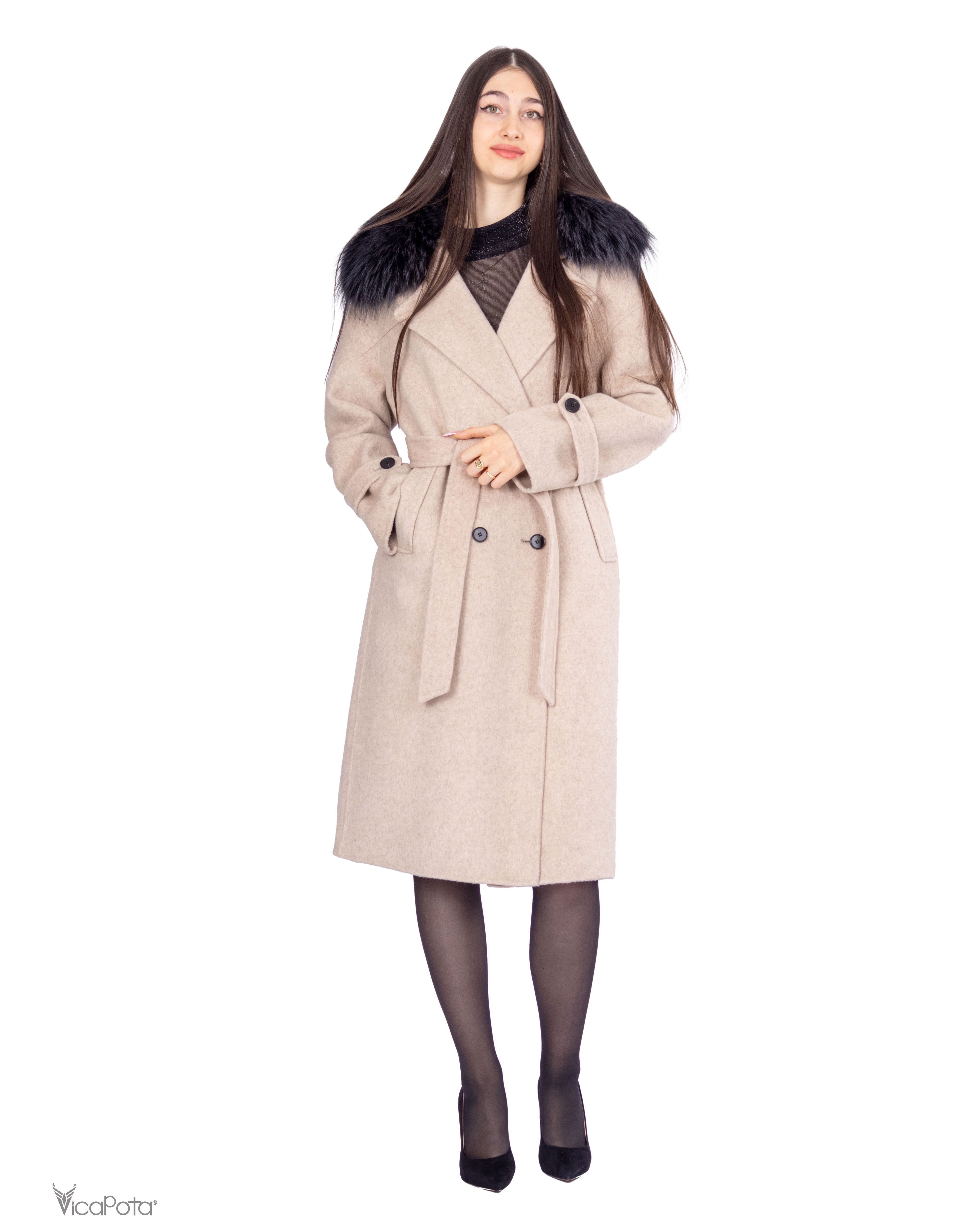 - **Комір:** натуральний хутряний комір додає розкішності та елегантності. Знімний дизайн дозволяє легко змінювати стиль пальто.