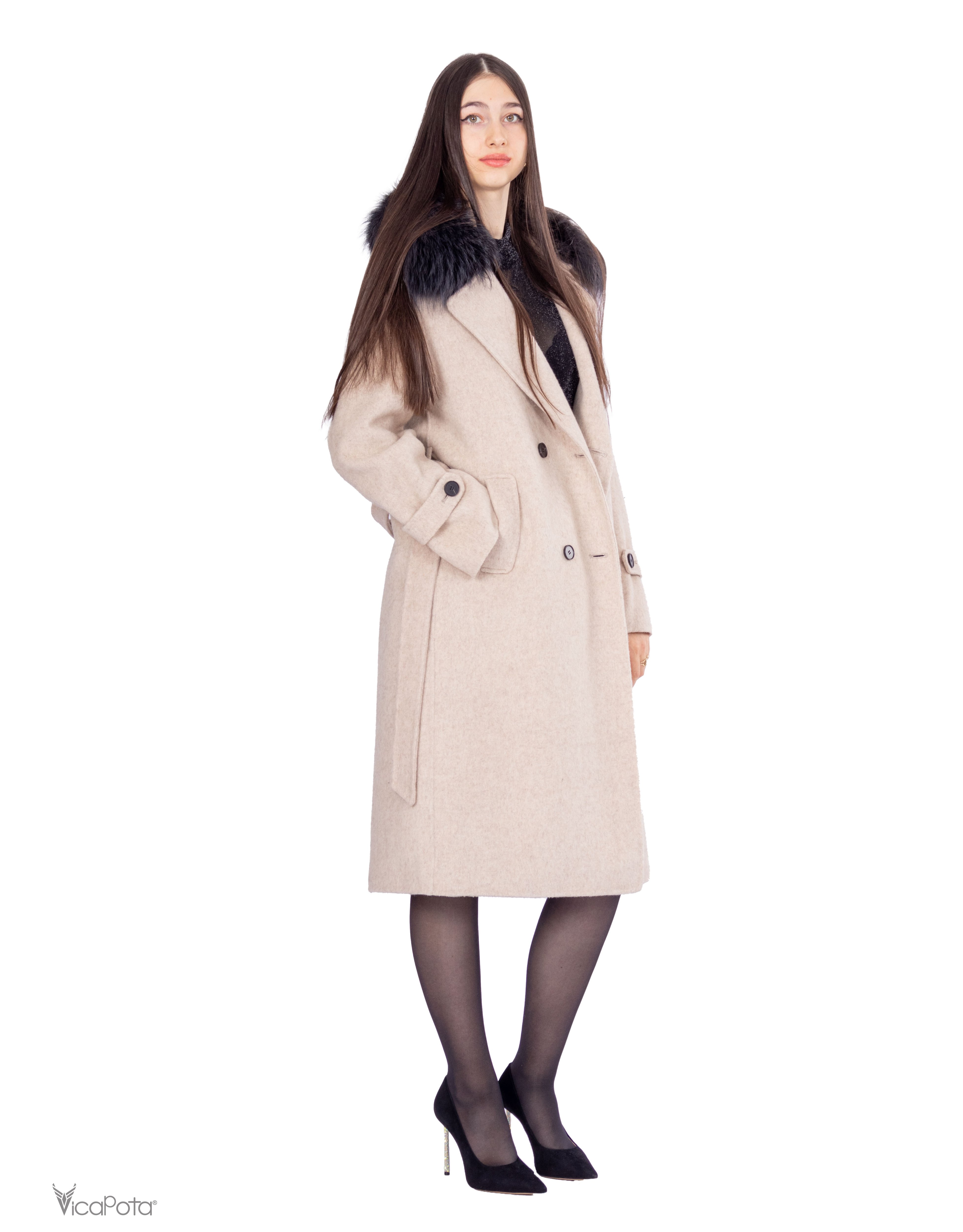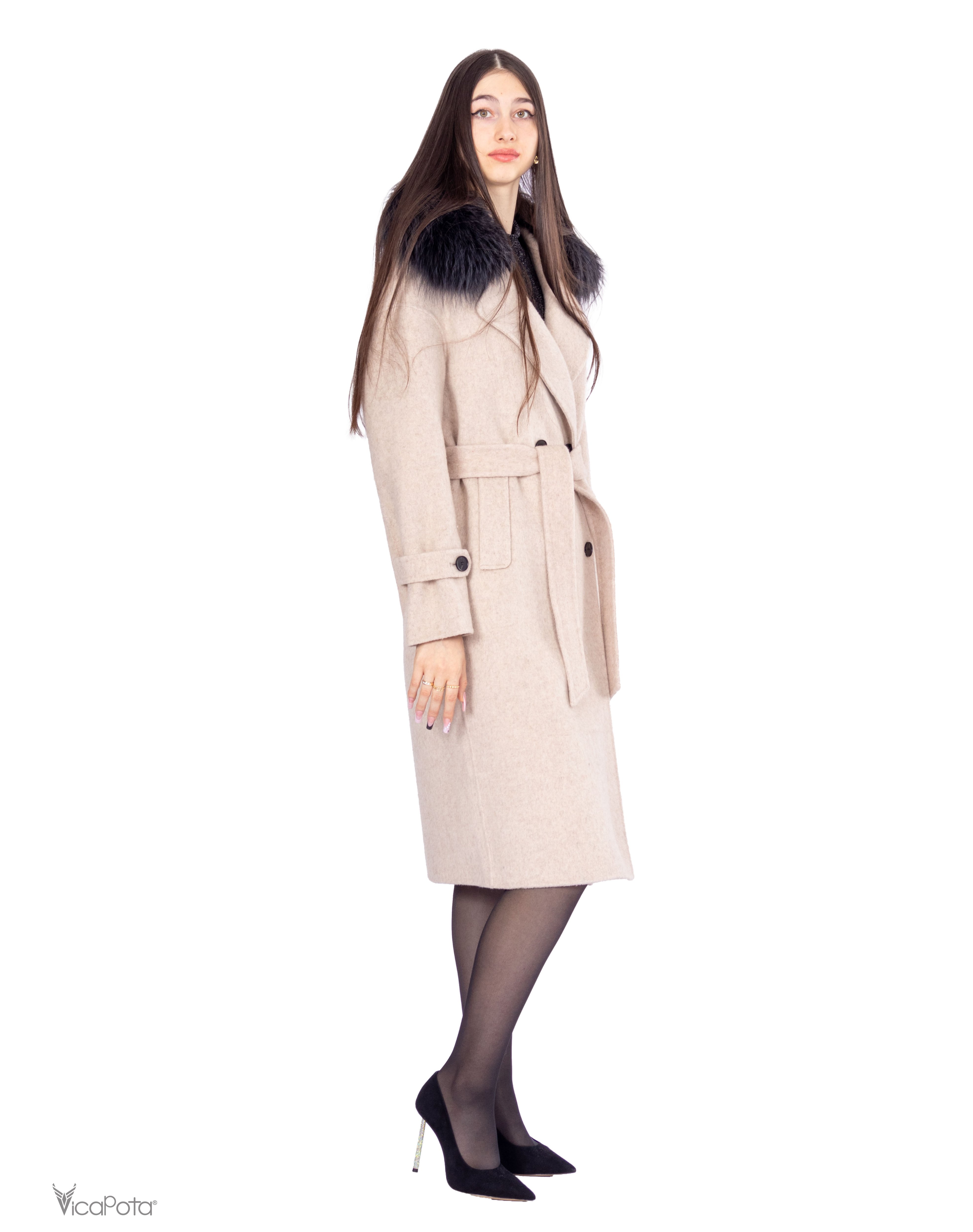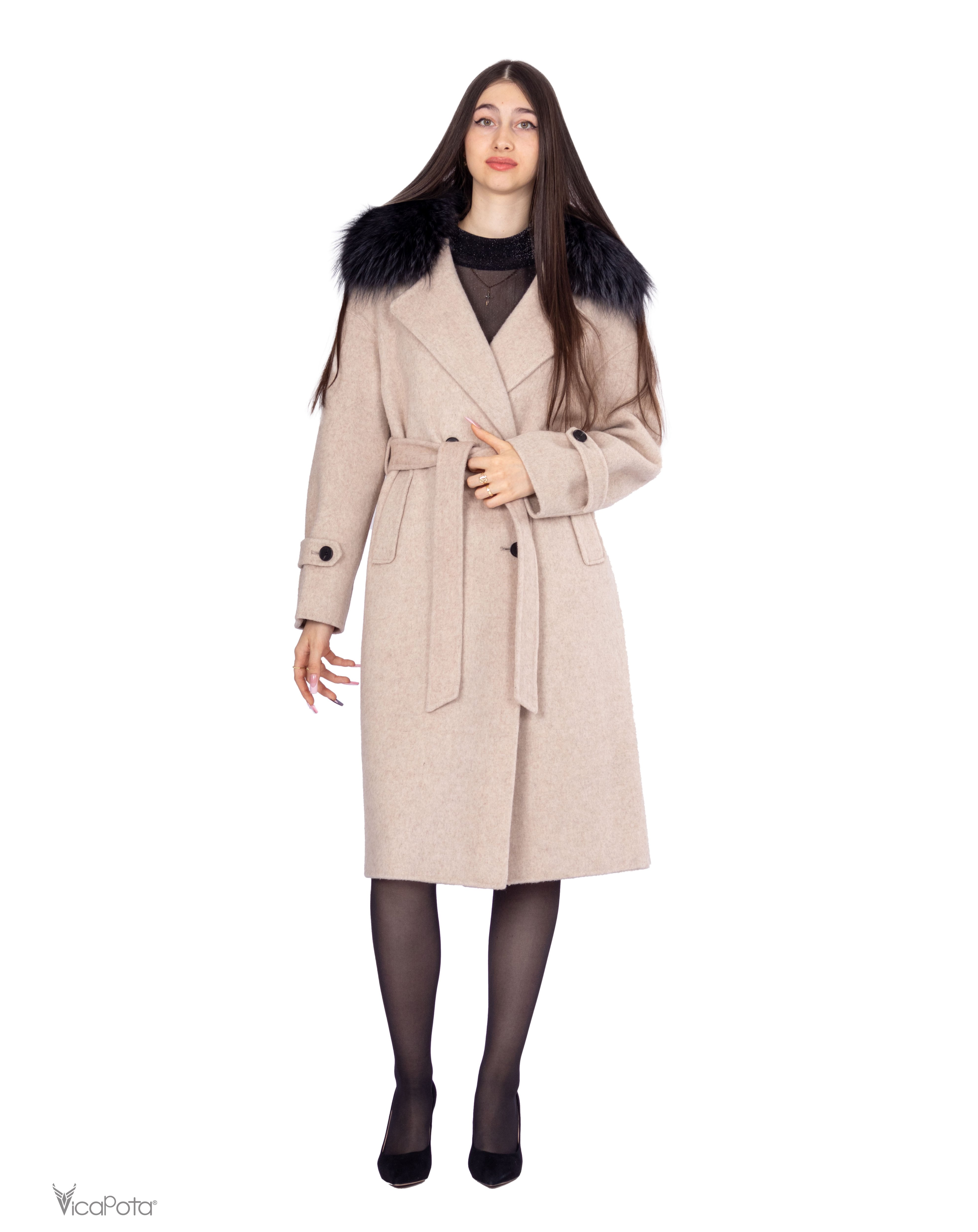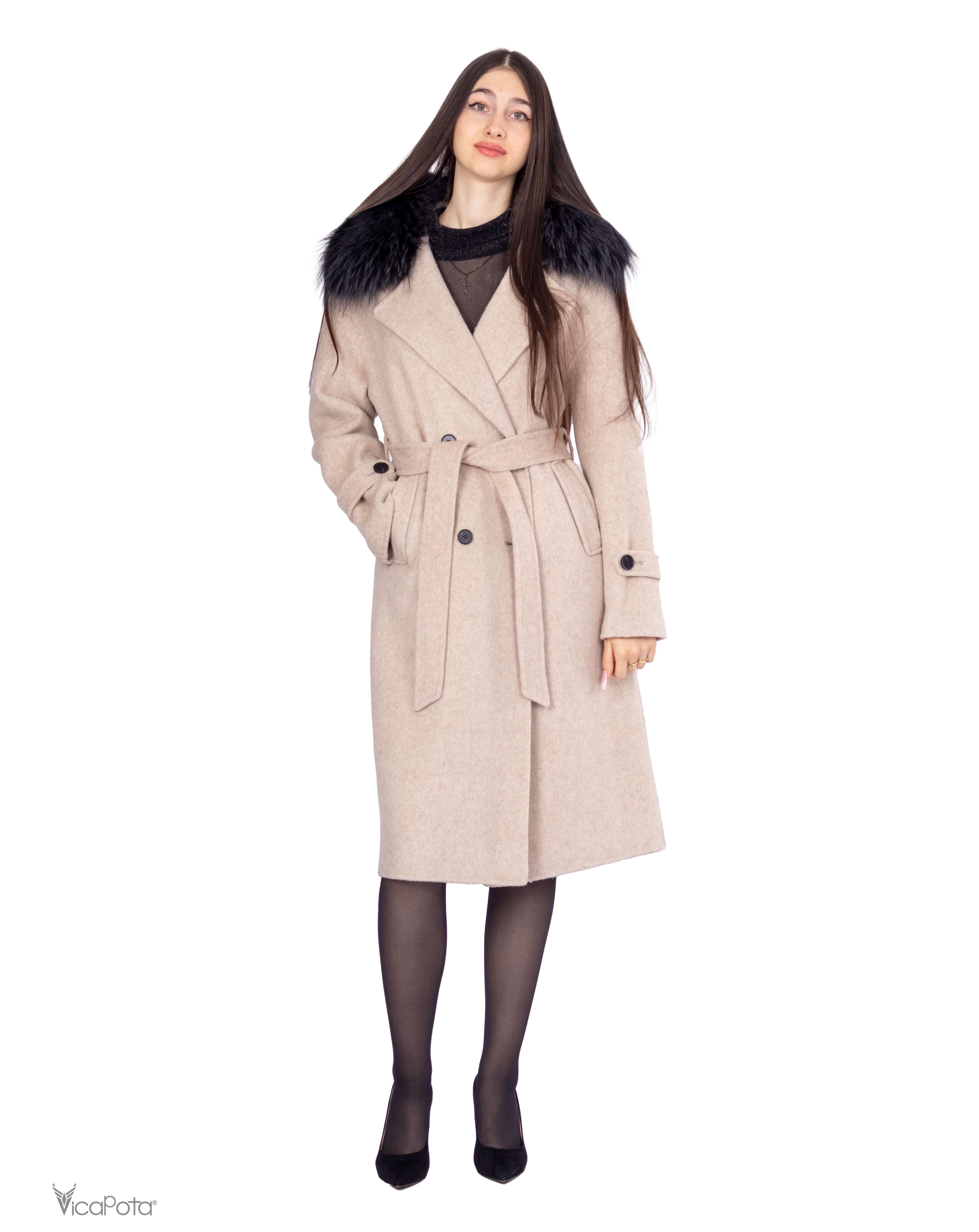 - **Комір:** натуральний хутряний комір додає розкішності та елегантності. Знімний дизайн дозволяє легко змінювати стиль пальто.