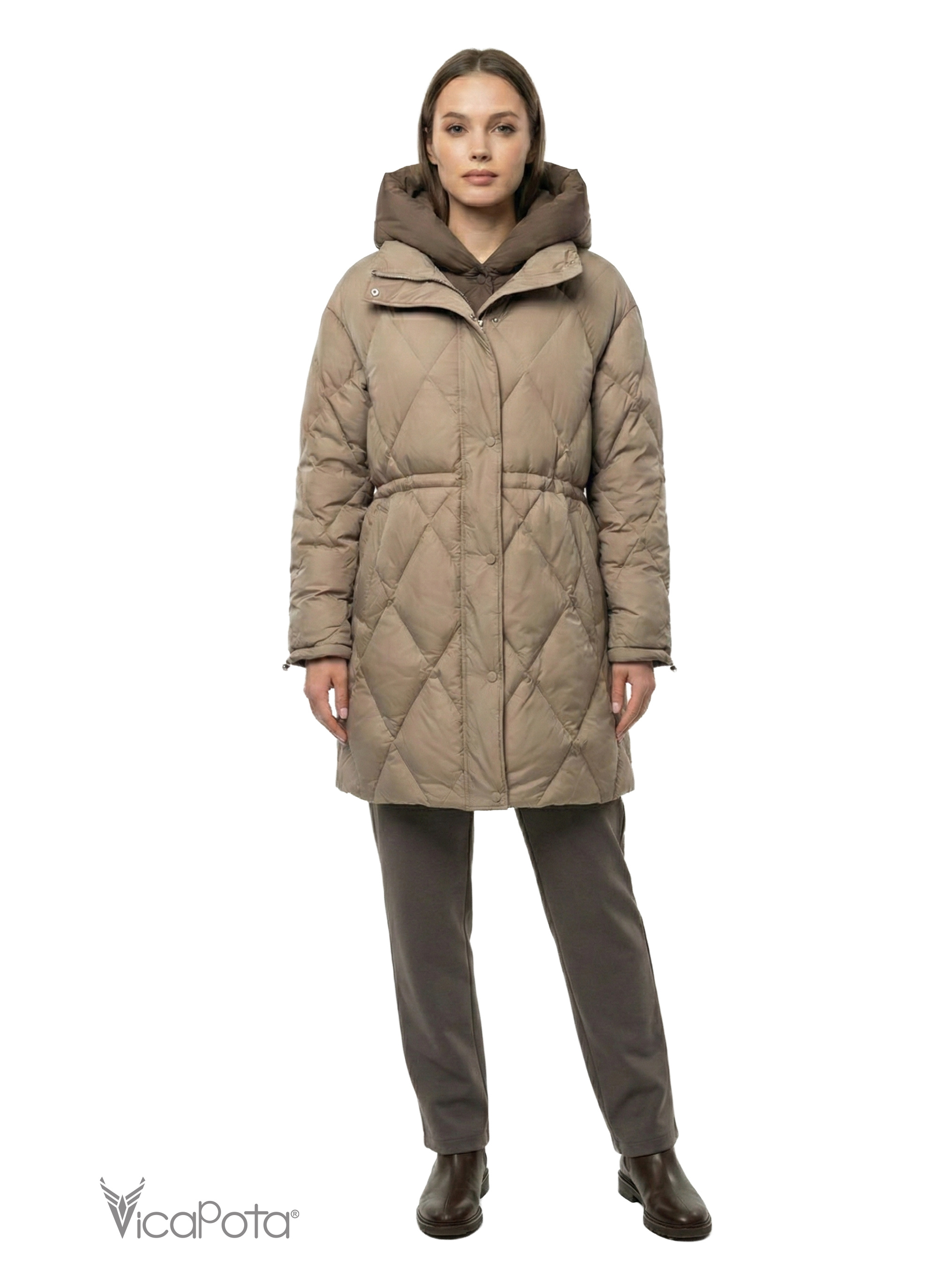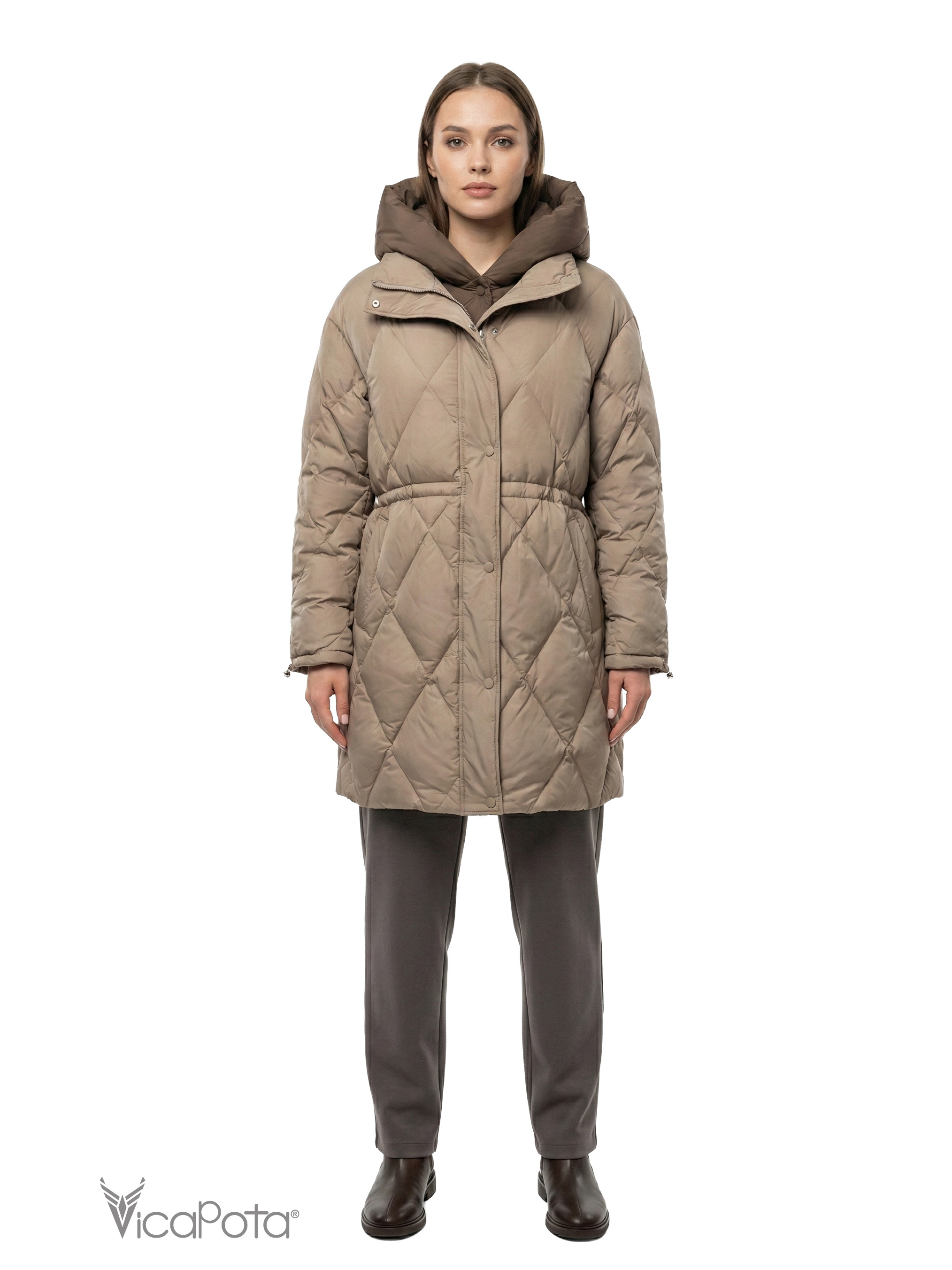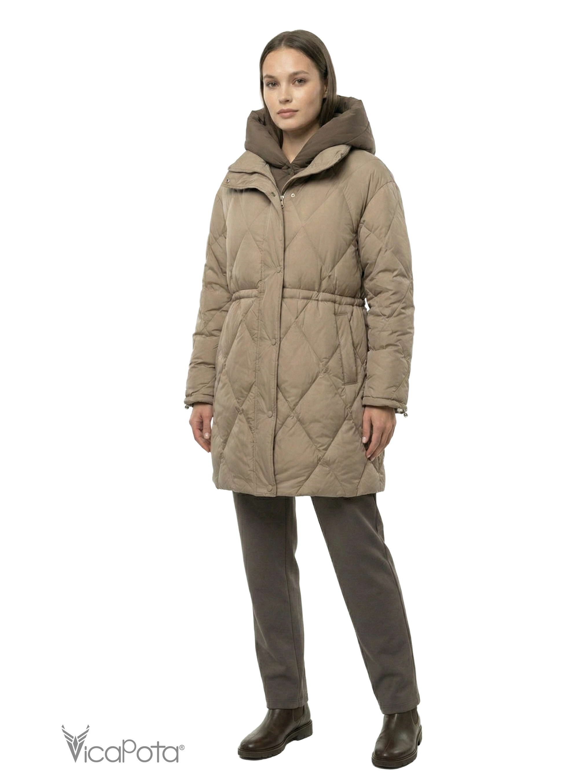 Жіночий пуховик преміум-класу в елегантному кольорі latte — ідеальне поєднання стилю, тепла та сучасного італійського дизайну.