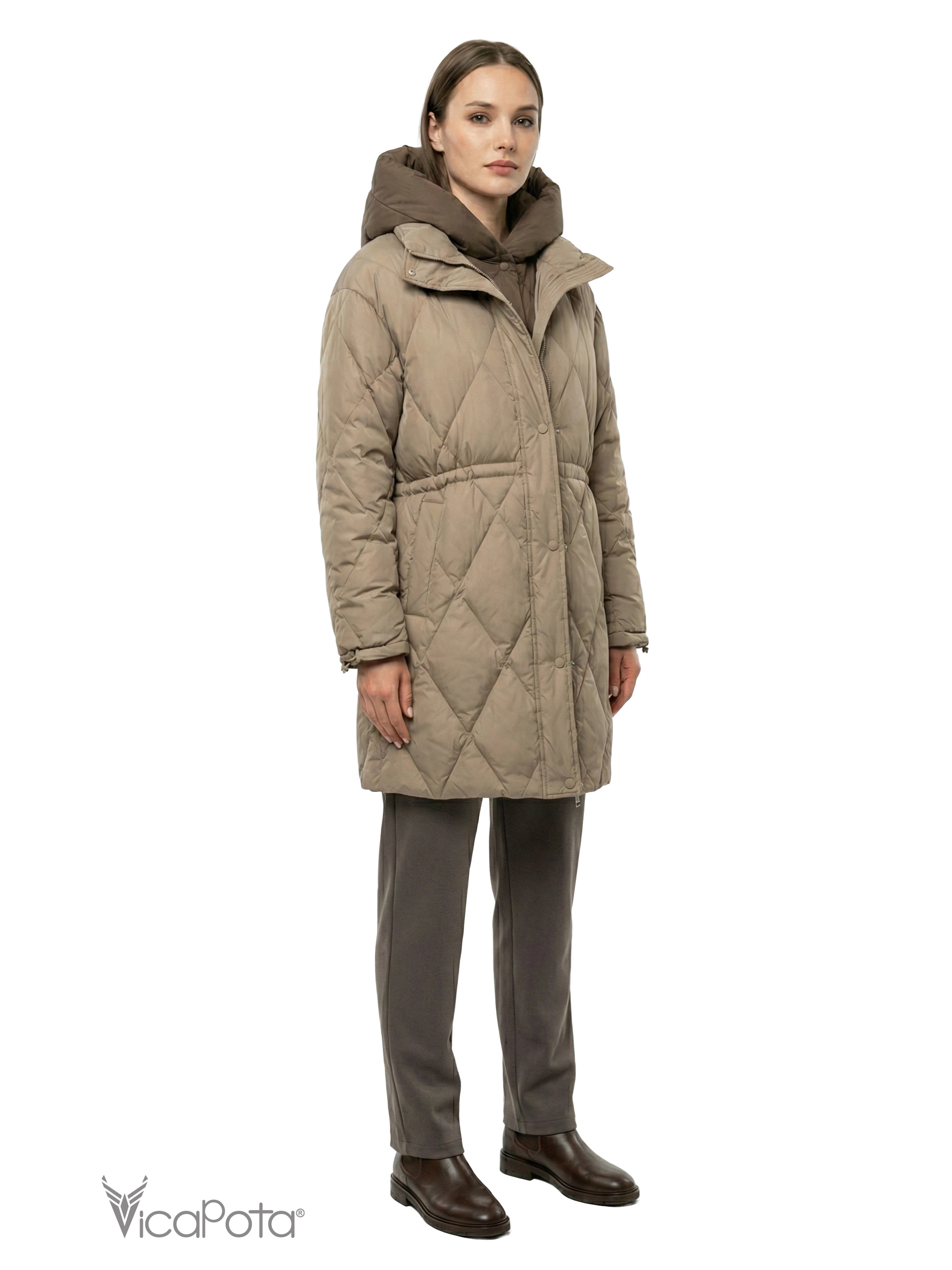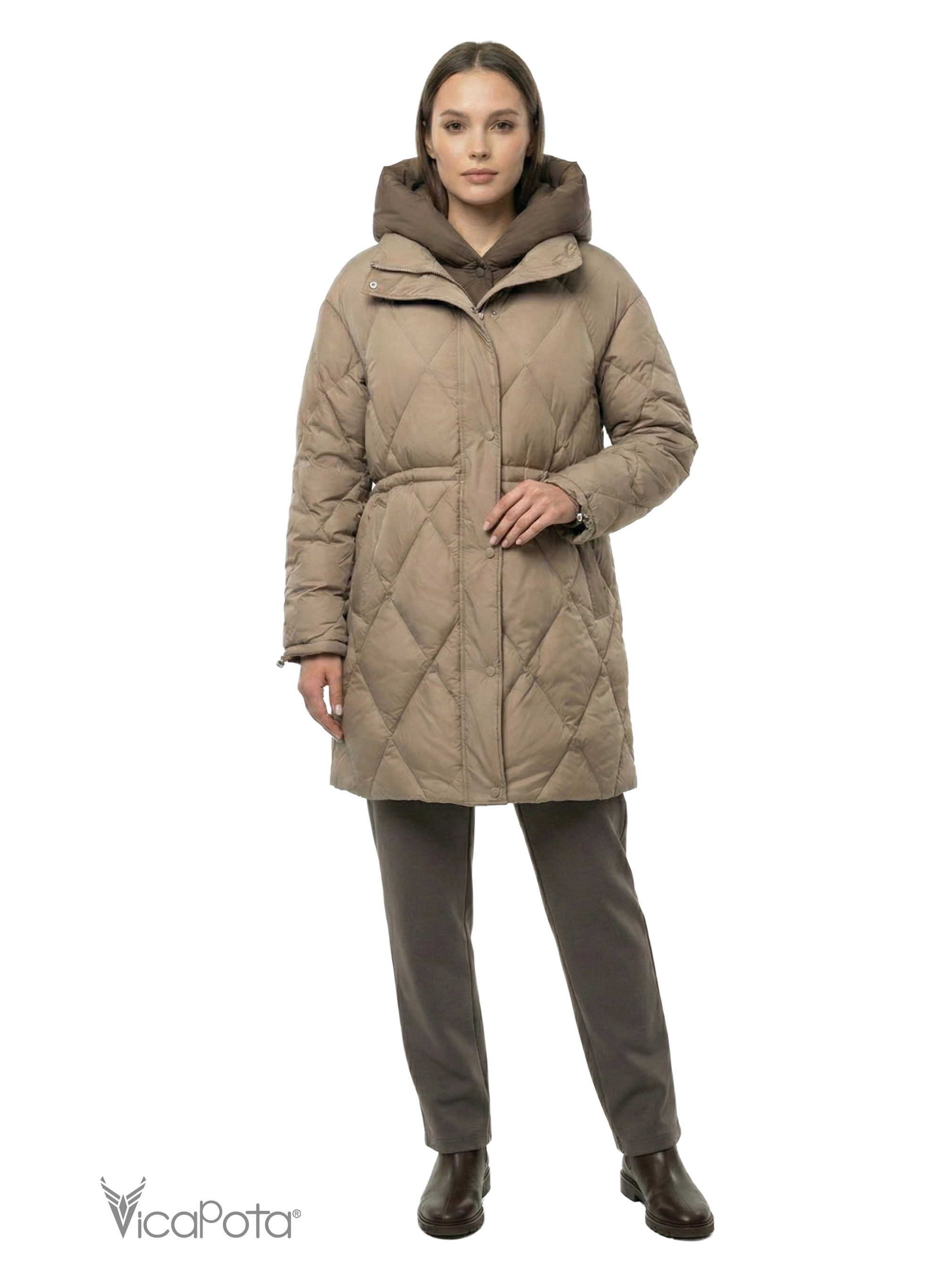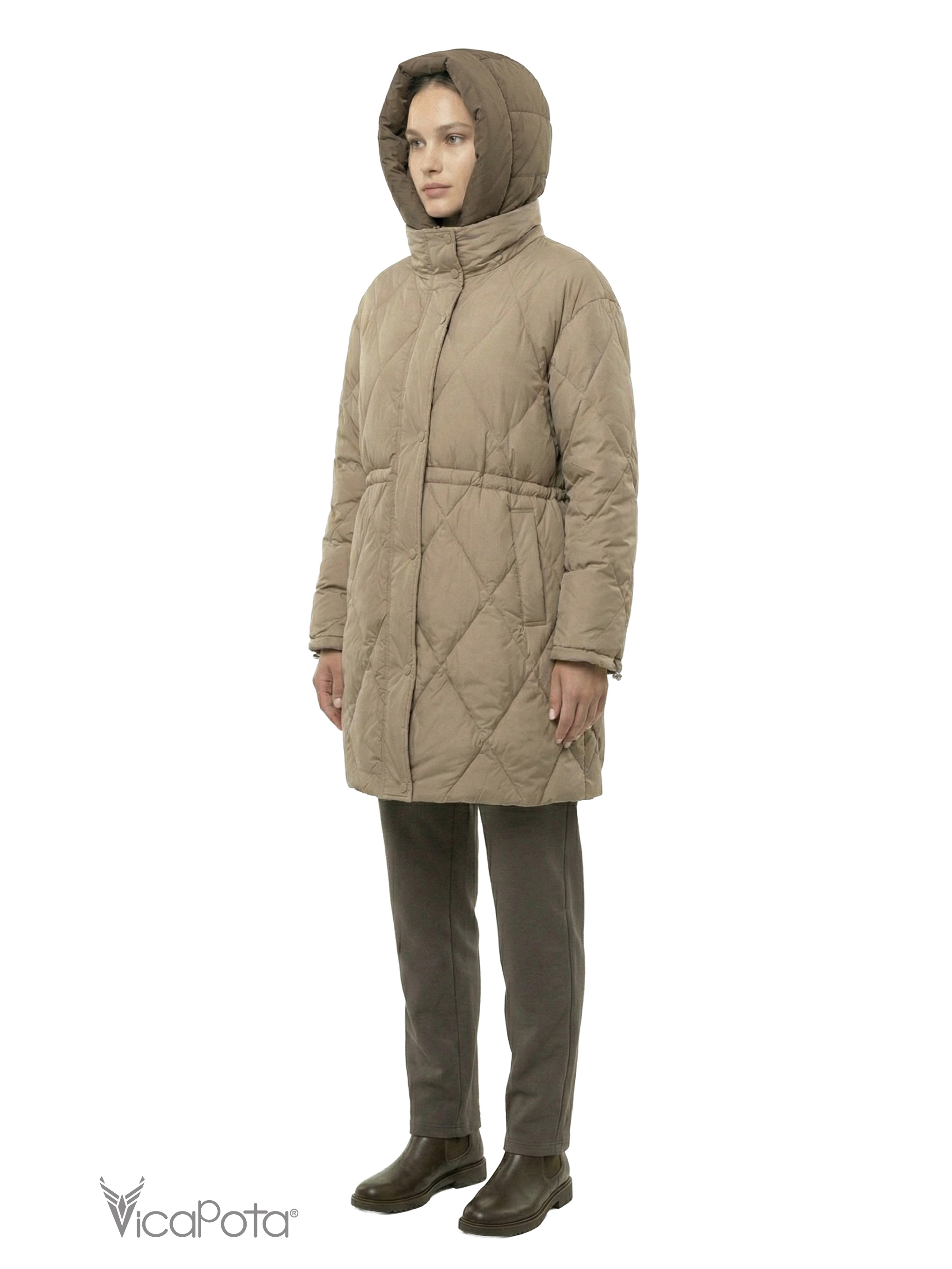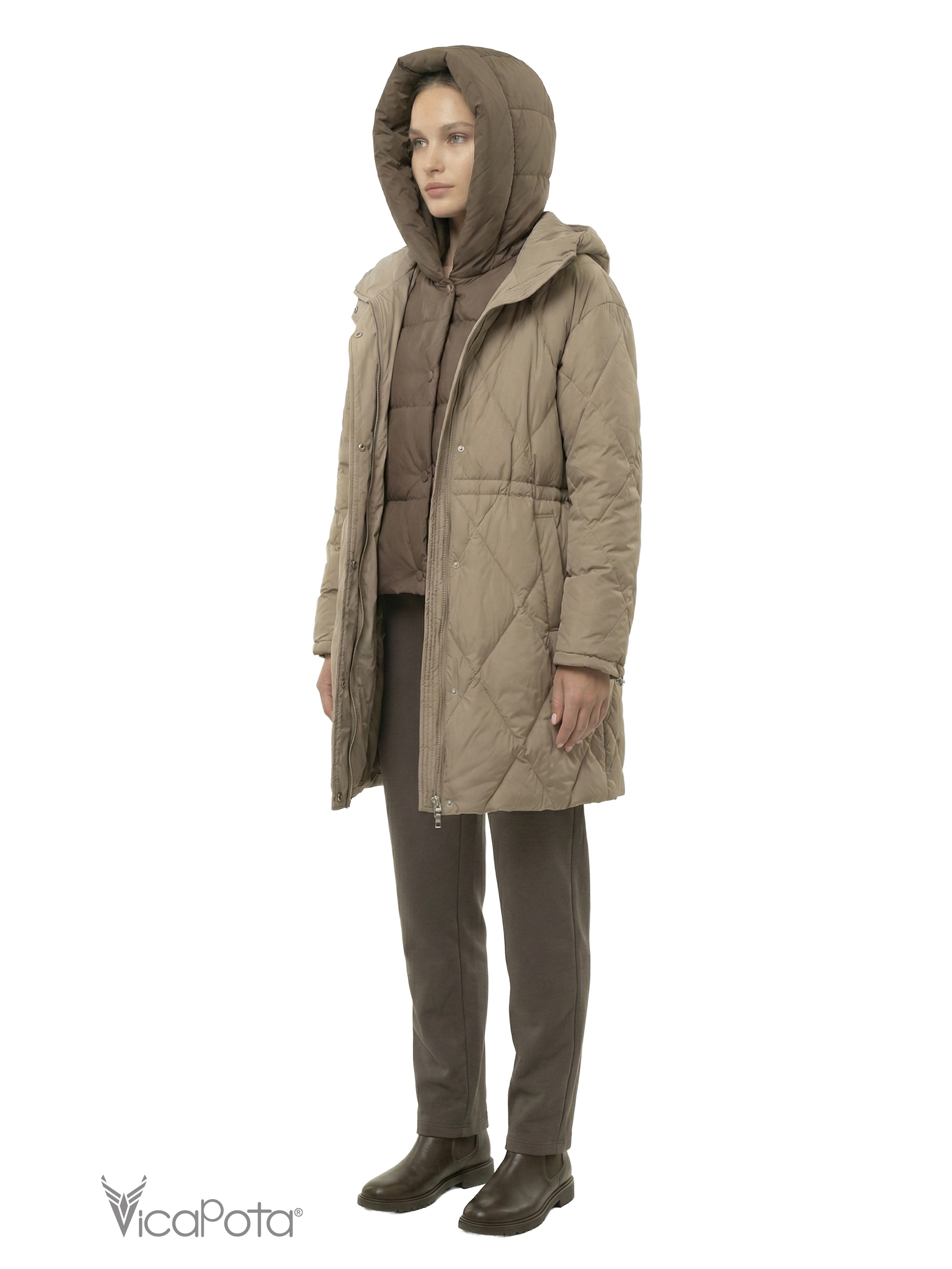 Жіночий пуховик преміум-класу в елегантному кольорі latte — ідеальне поєднання стилю, тепла та сучасного італійського дизайну.