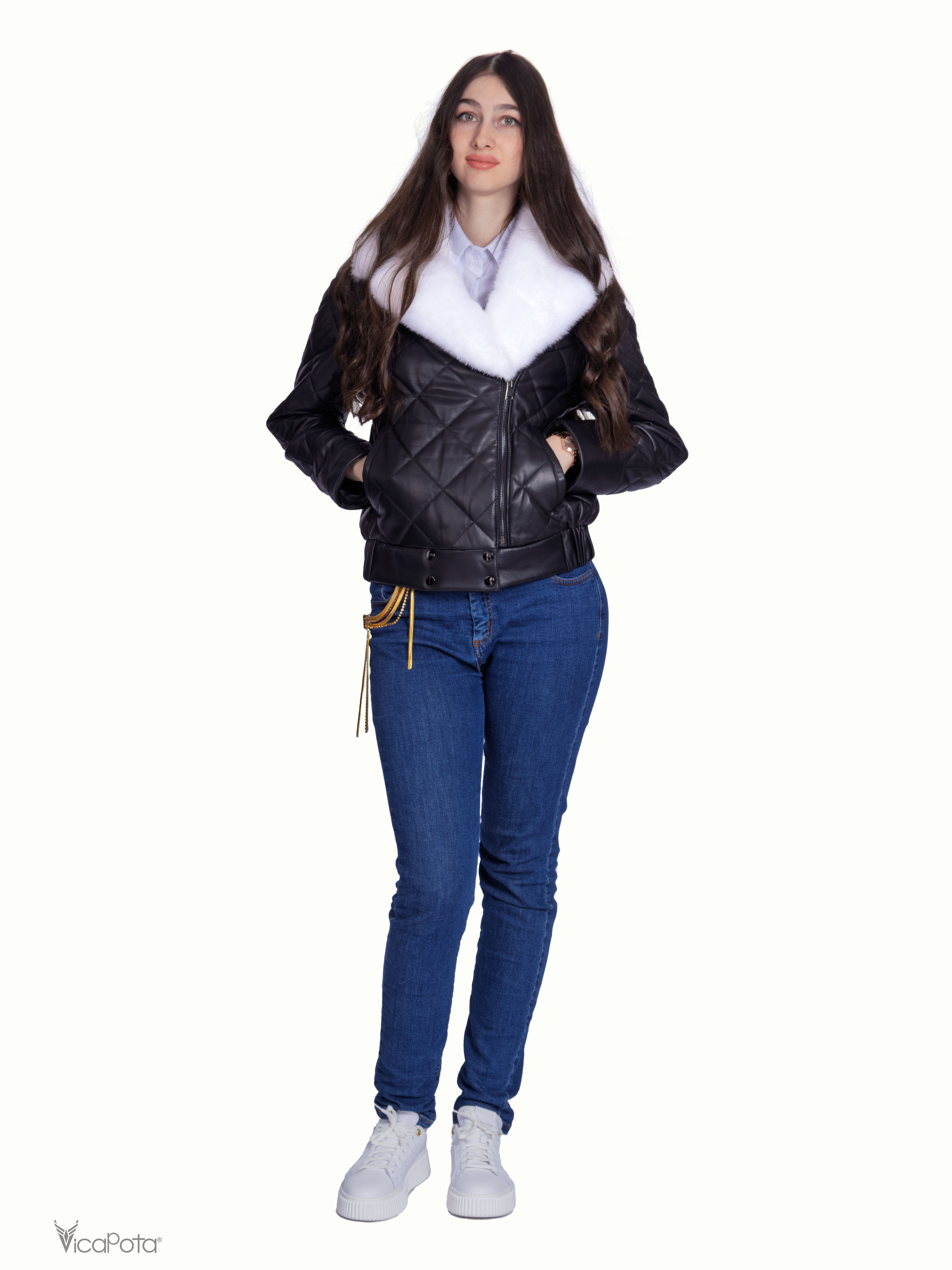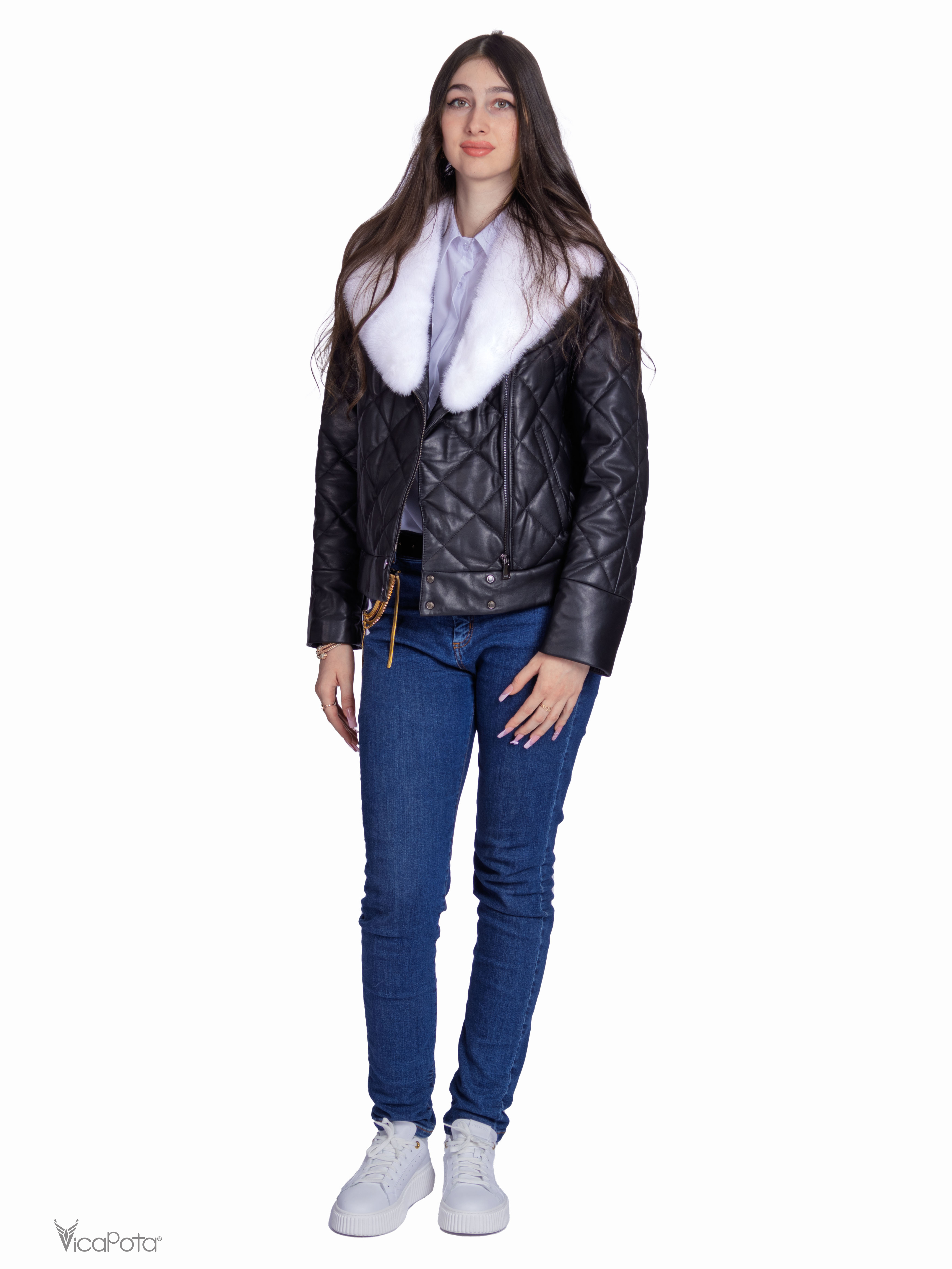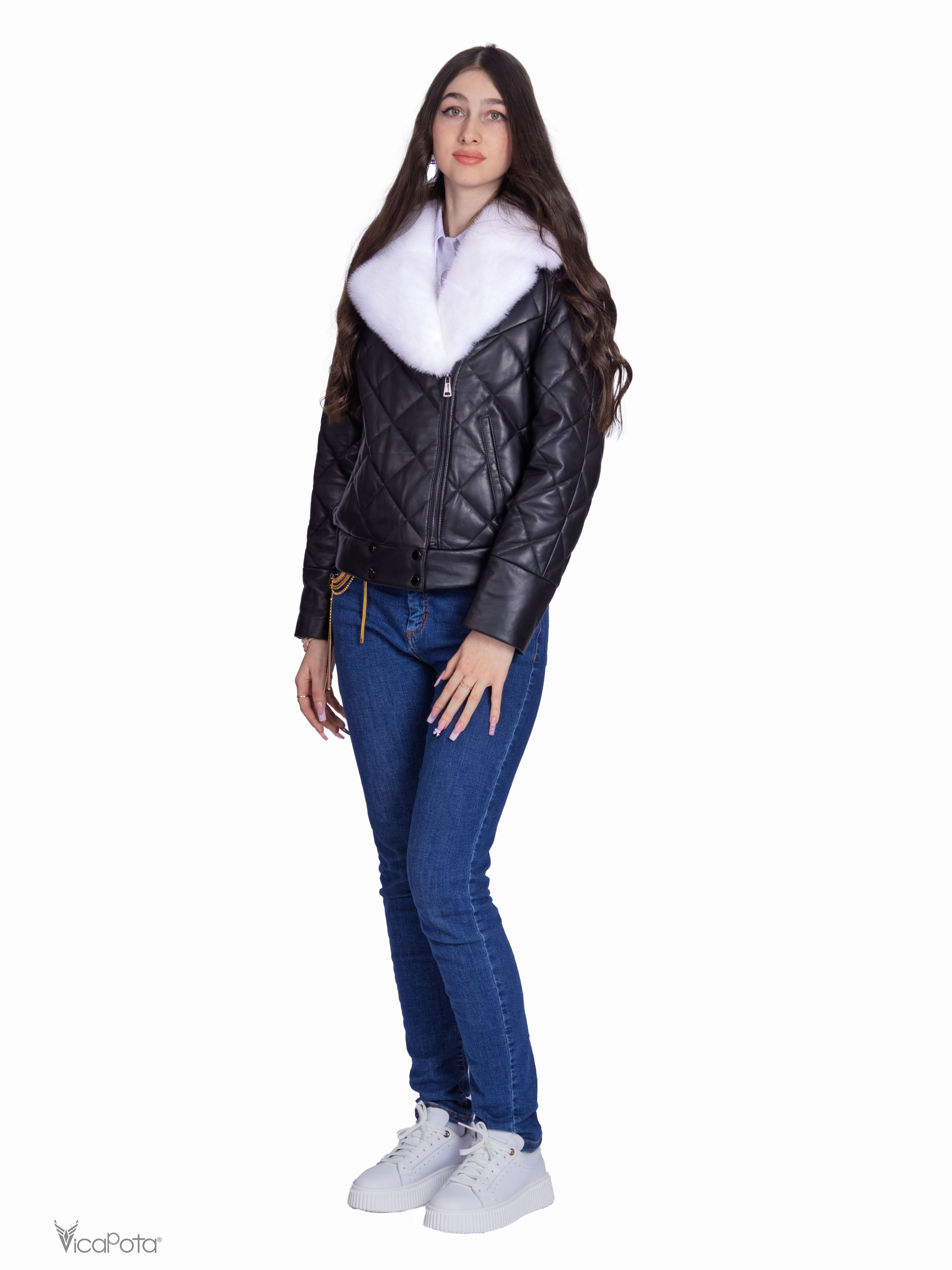**Утеплена стьобана шкіряна куртка** – ідеальне поєднання елегантності та практичності.