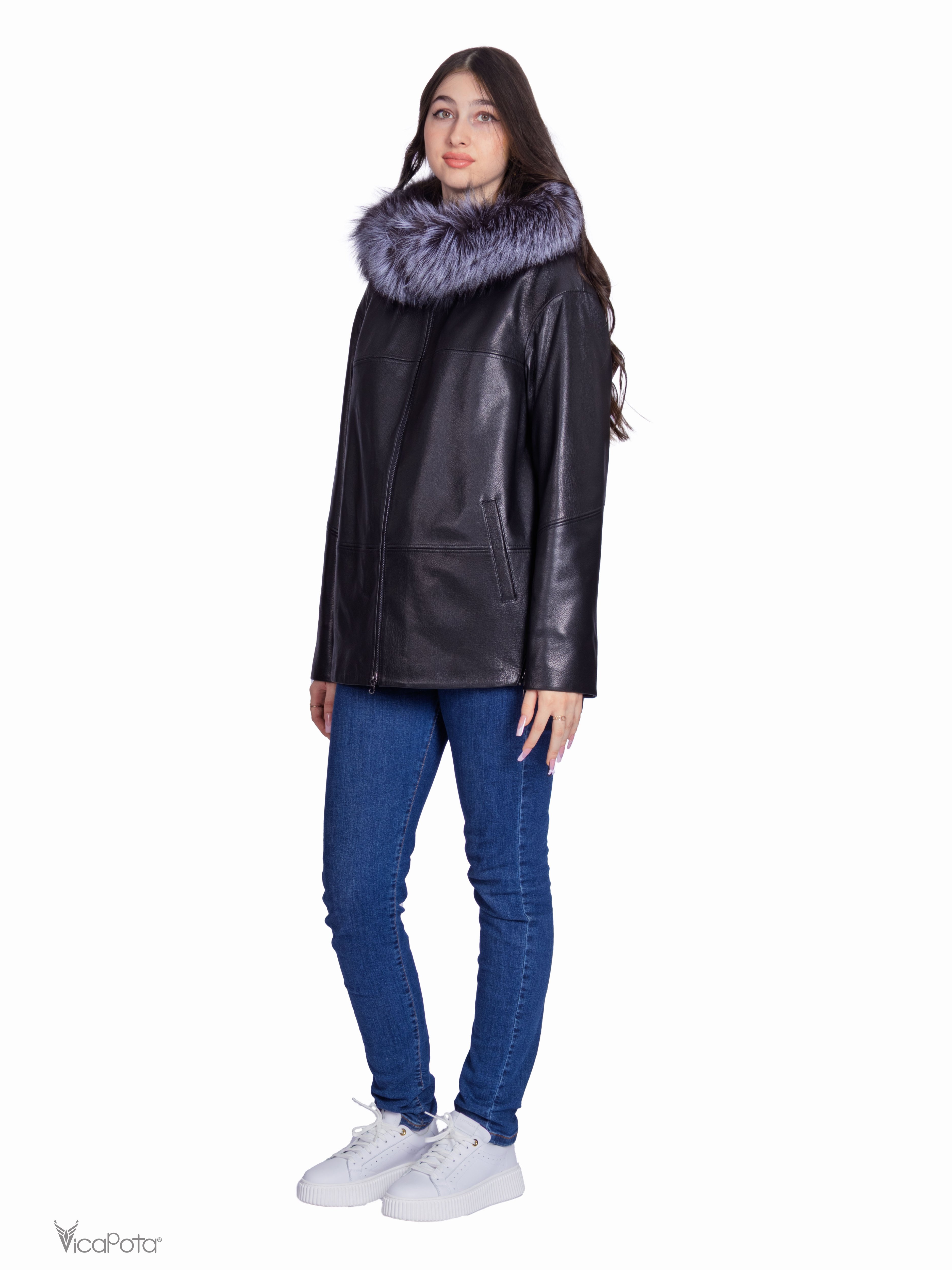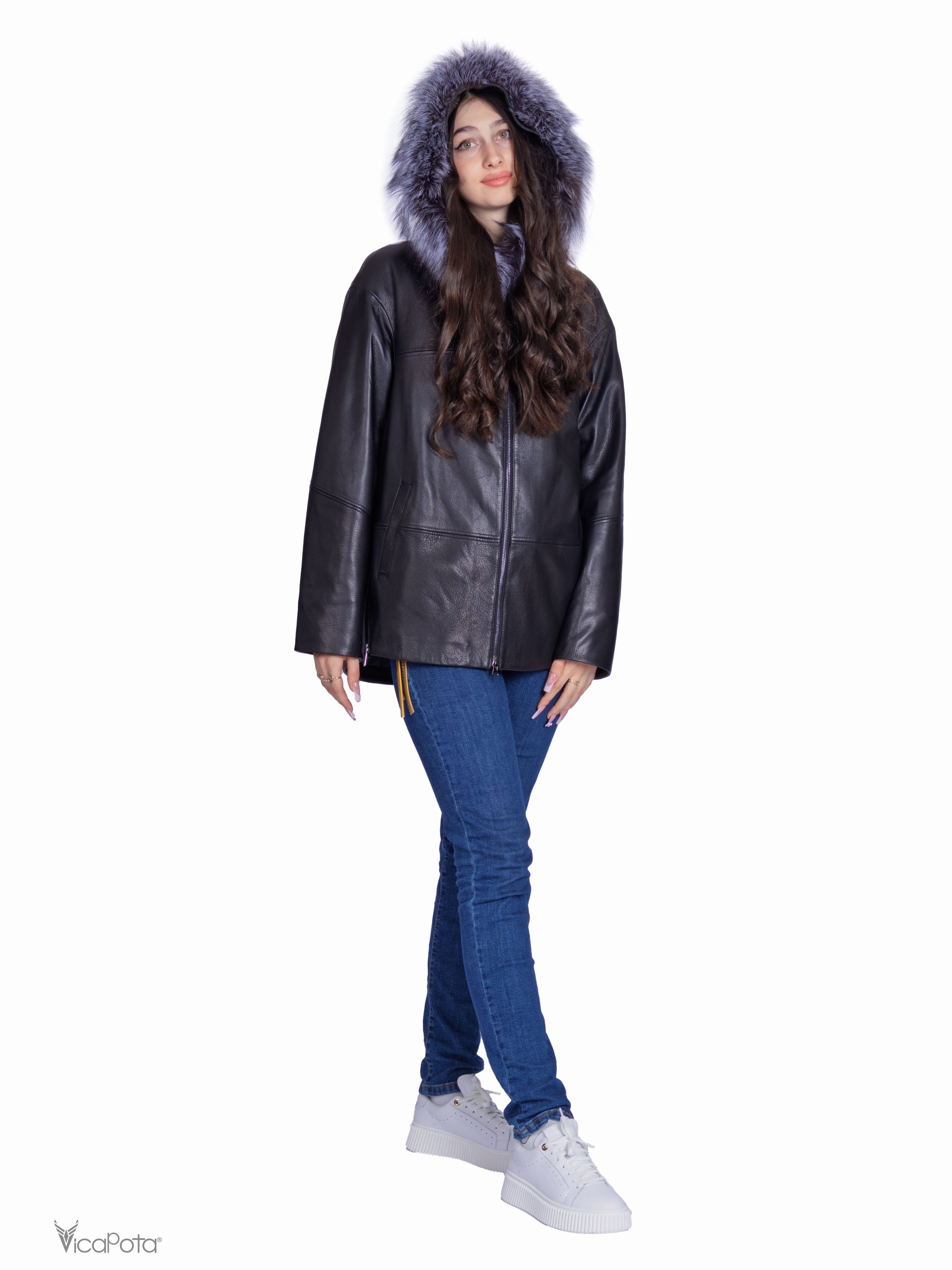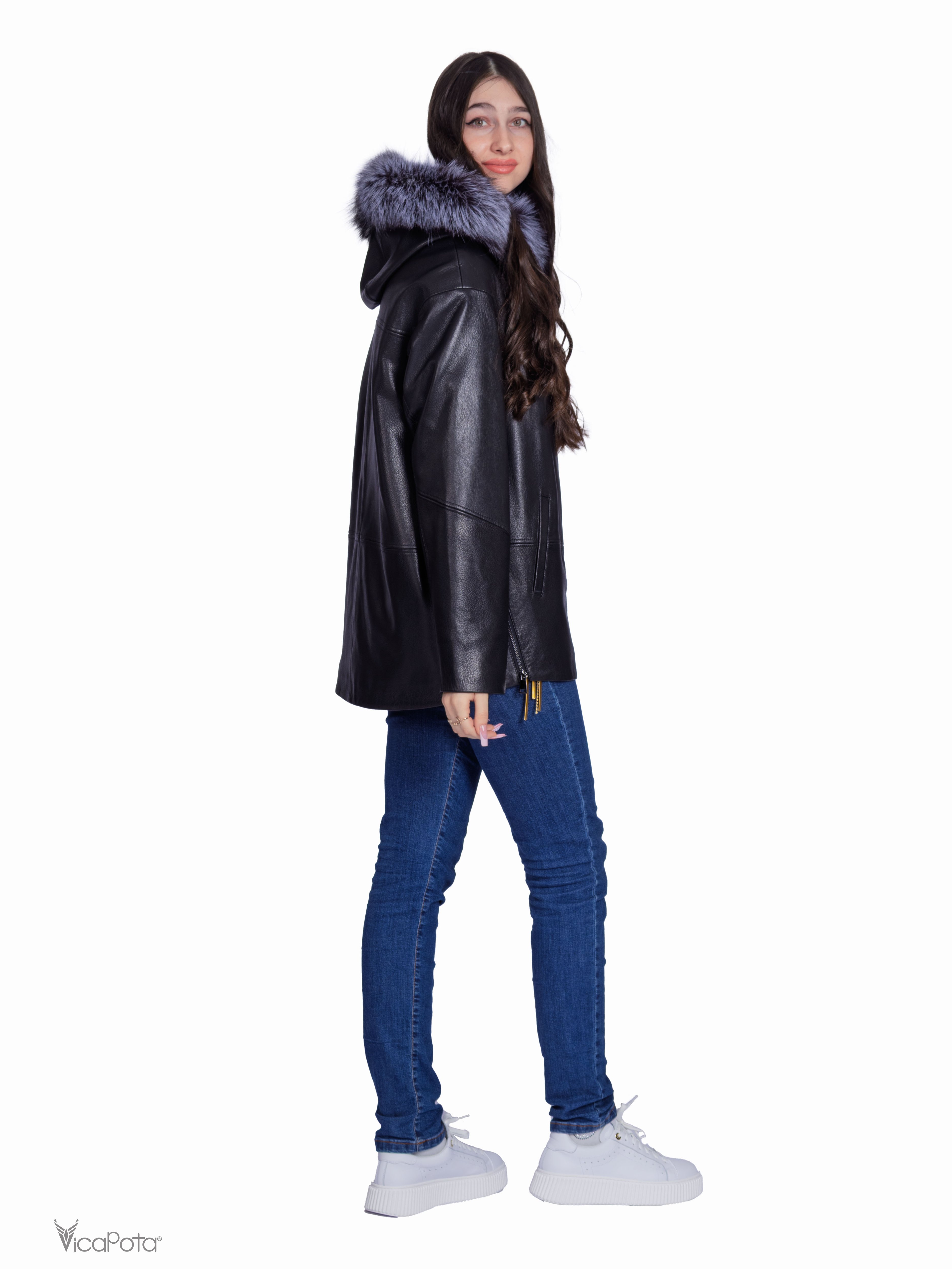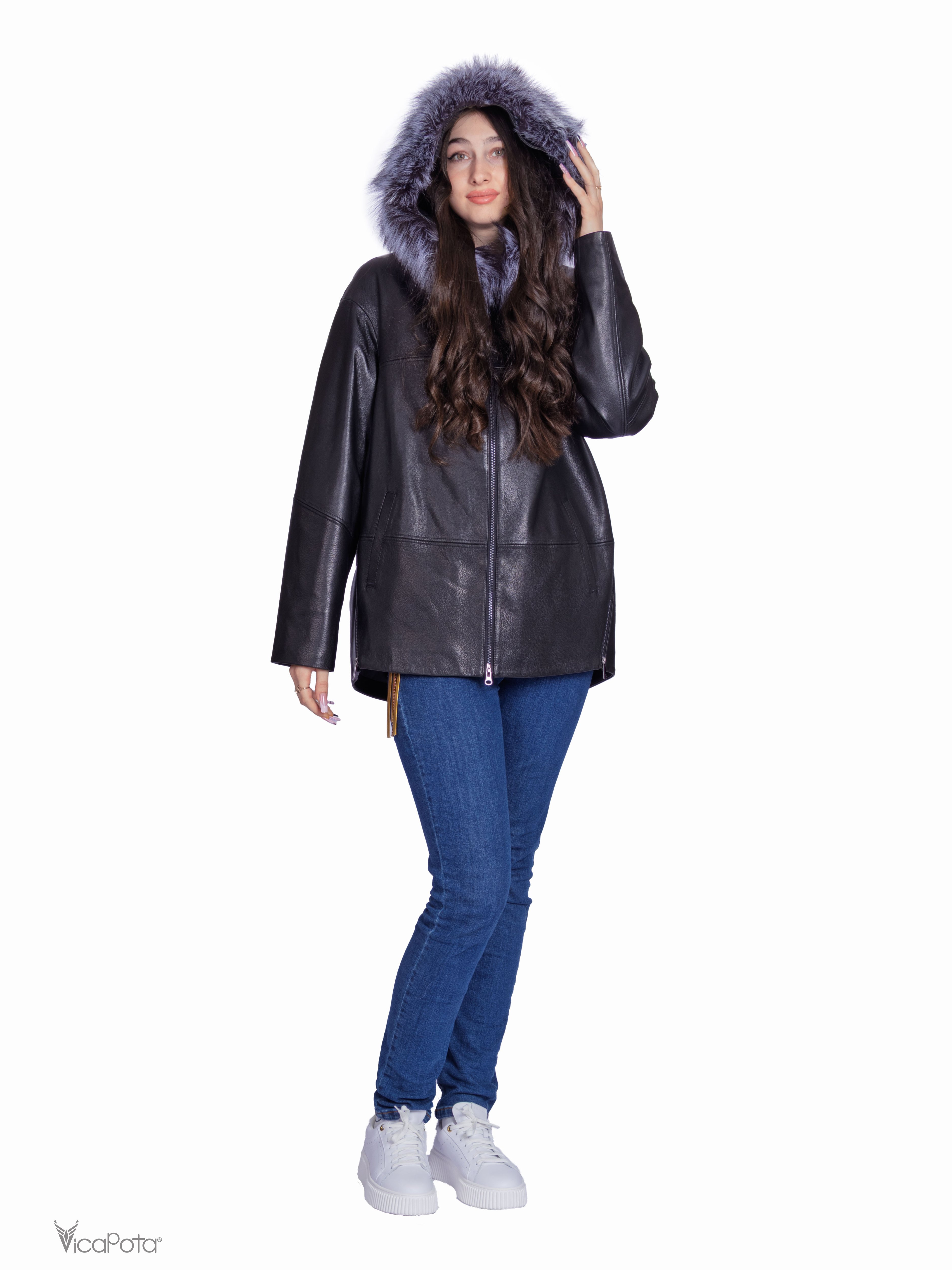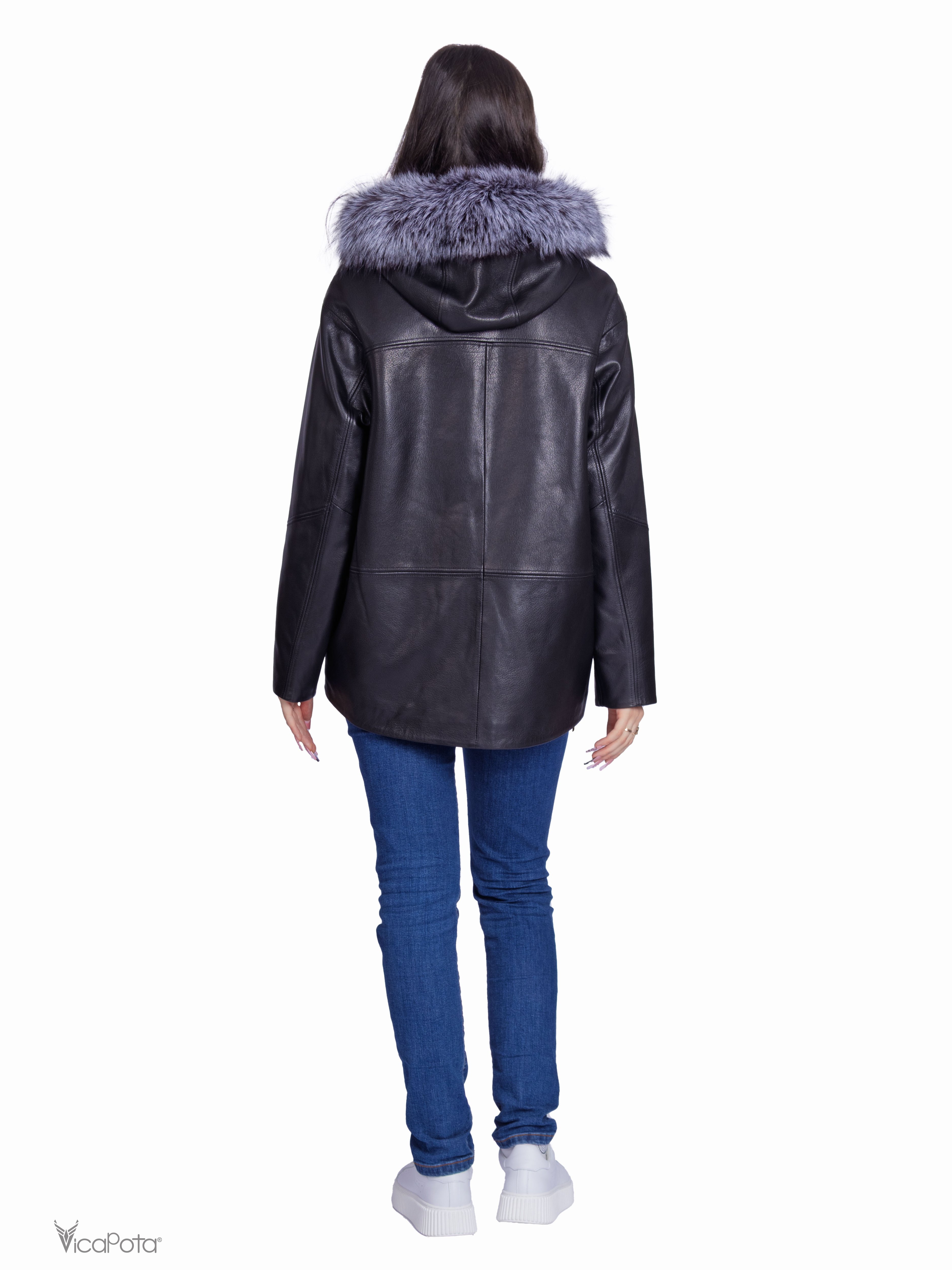 ✔️ **Об’ємний капюшон із натуральним хутром чорнобурки** – ефектний вигляд та додаткове утеплення.