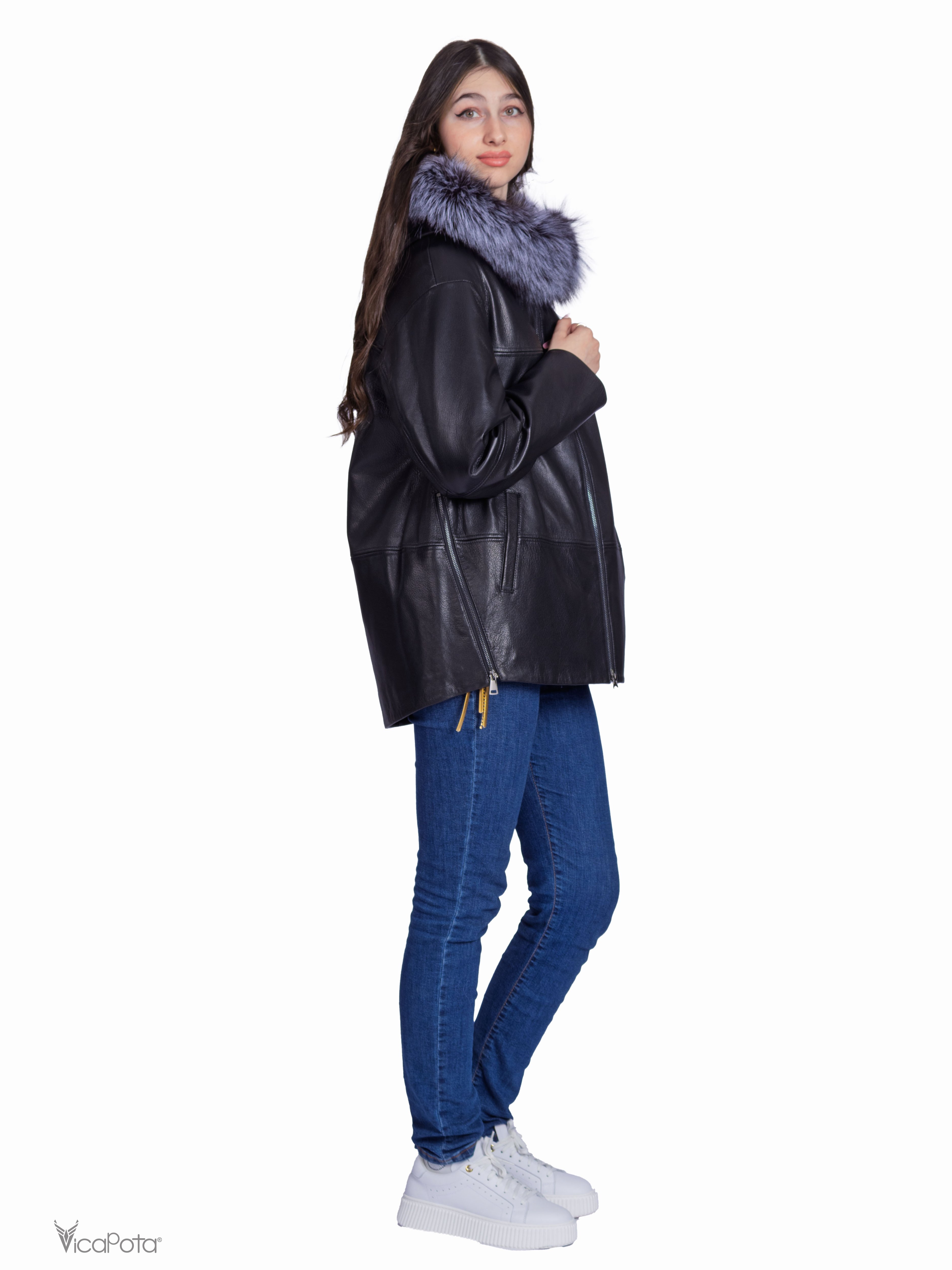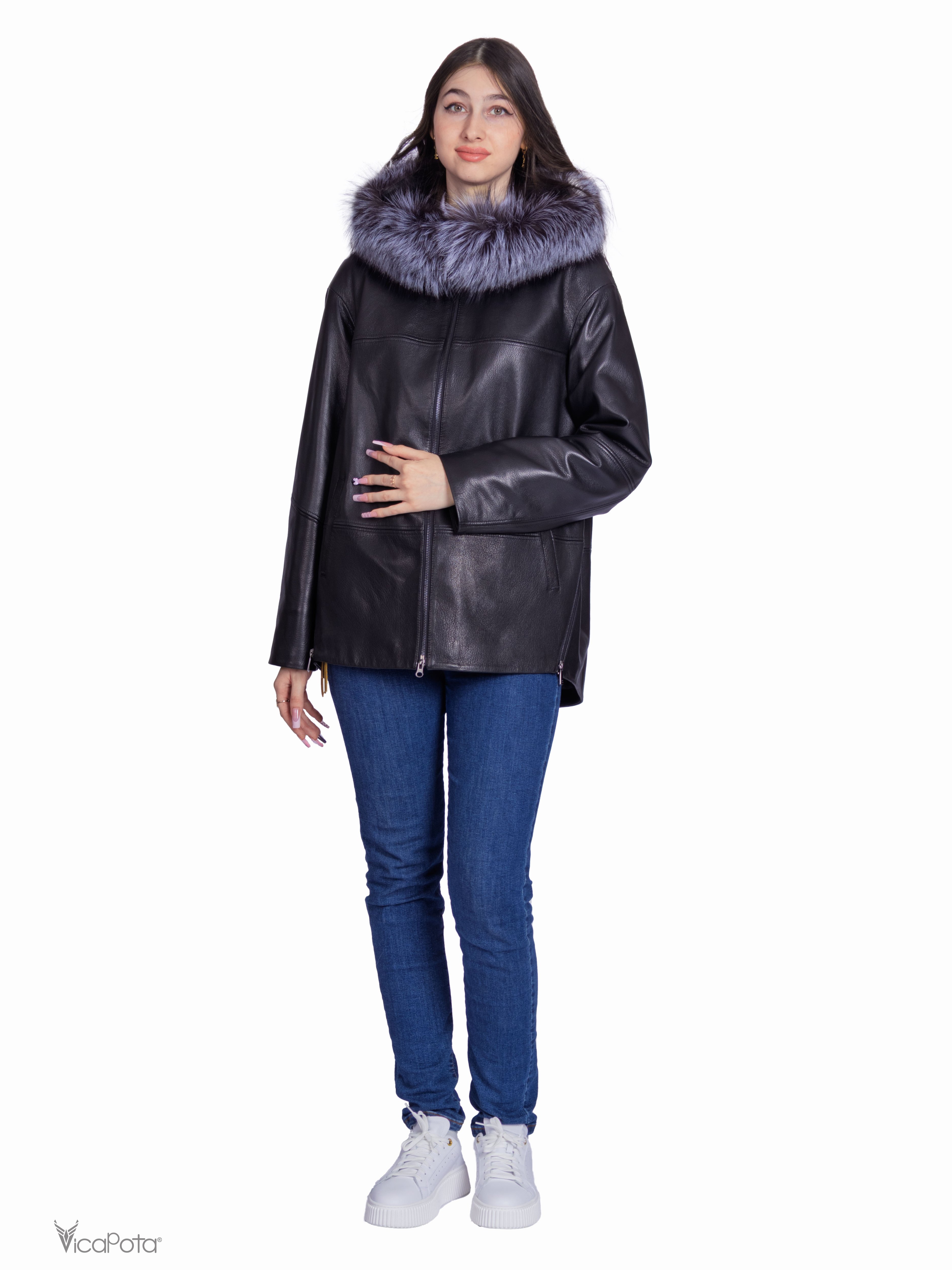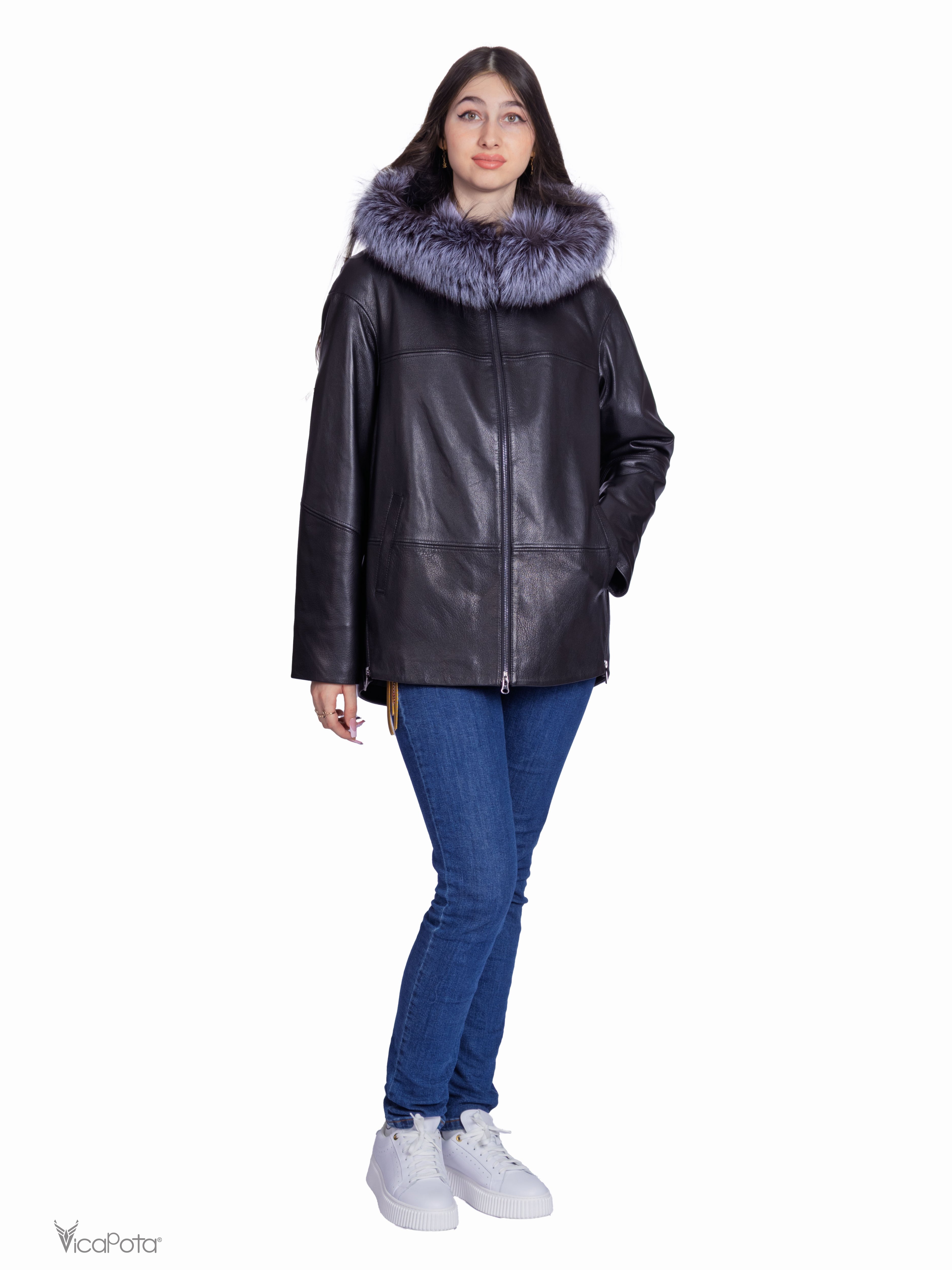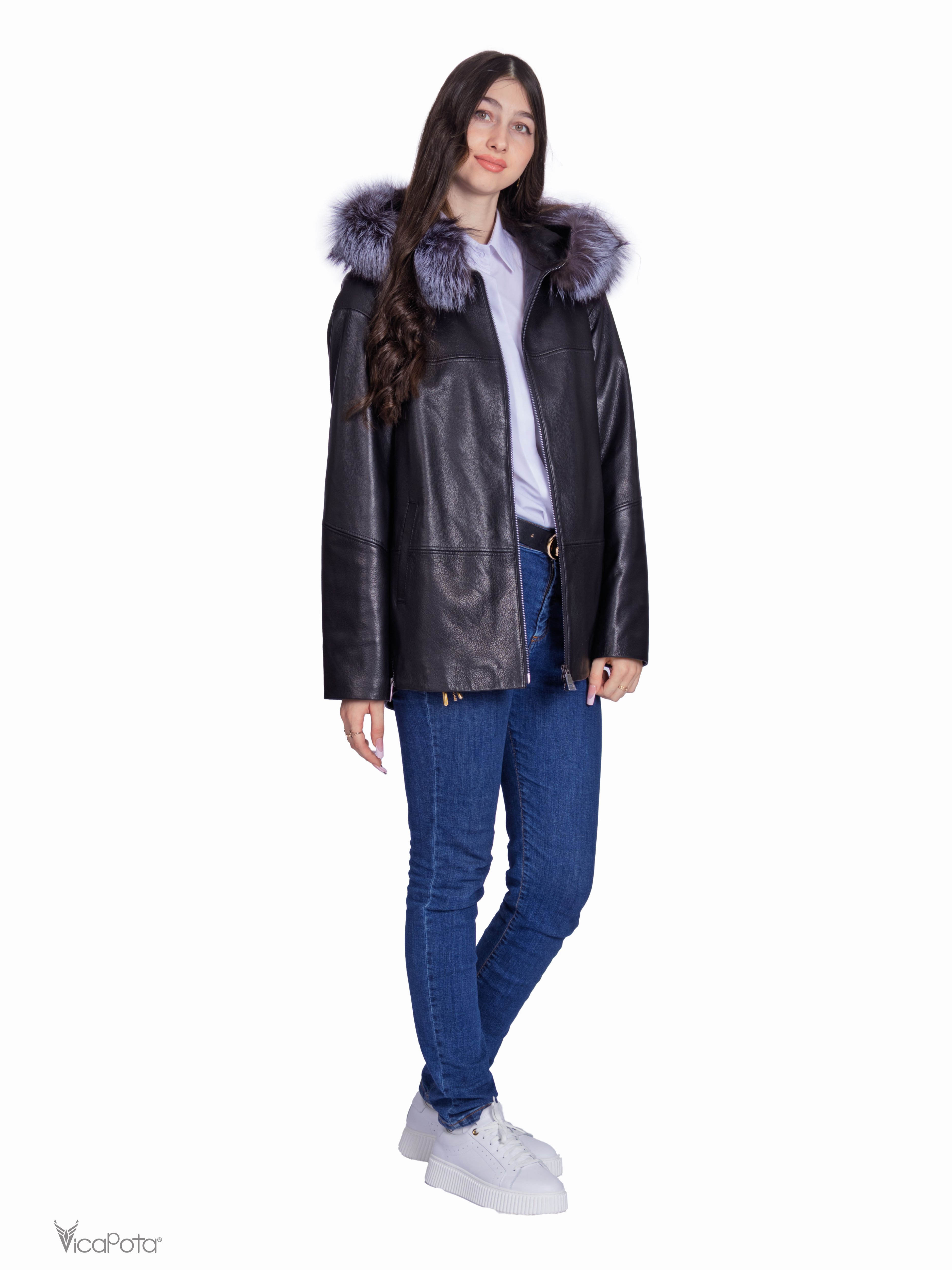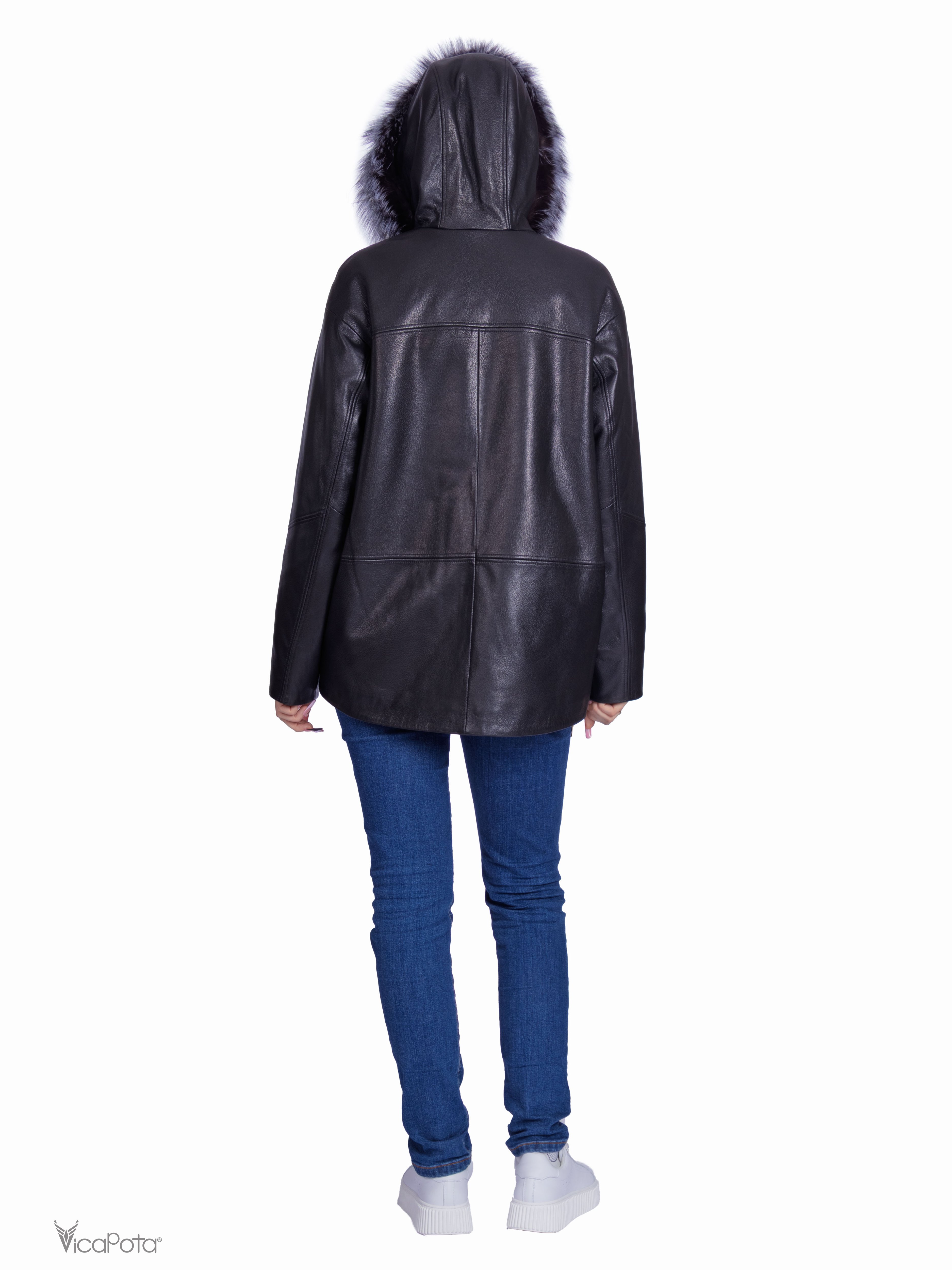 ✔️ **Об’ємний капюшон із натуральним хутром чорнобурки** – ефектний вигляд та додаткове утеплення.
