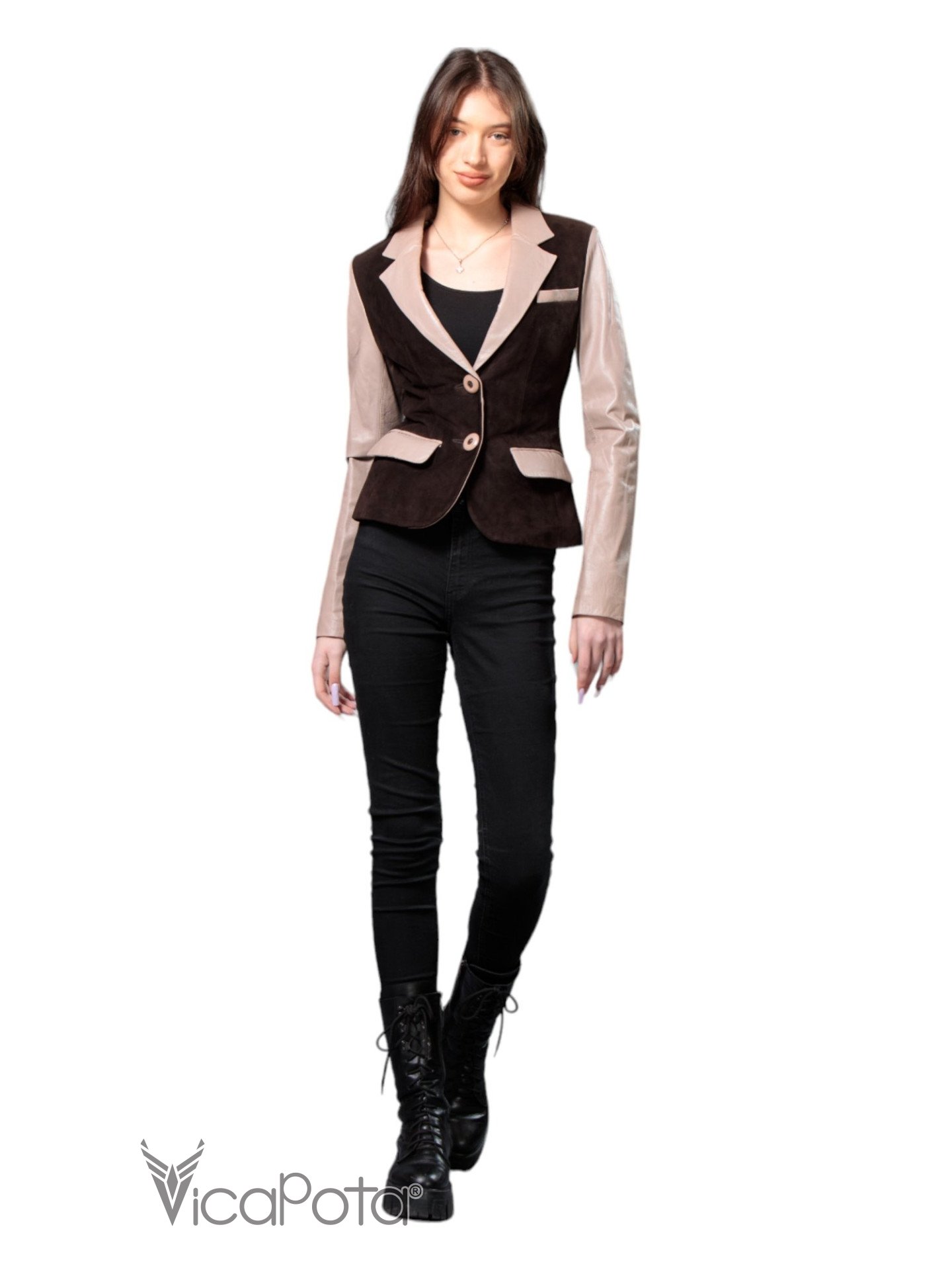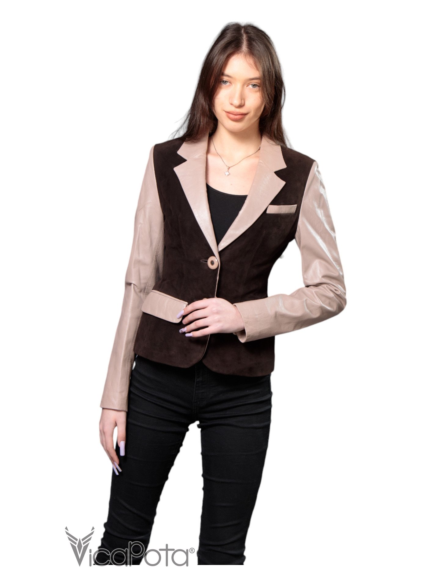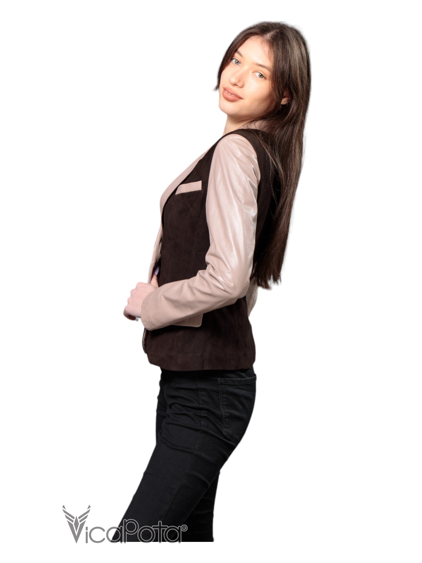 Заміри: Розмір xS; Колір коричневый, кожа комбинированная: замша и гладкая кожа.; ОГ 82 см; ОТ 68 см; ОС 76 см; Довжина рукава 64 см.; Довжина 54 см.