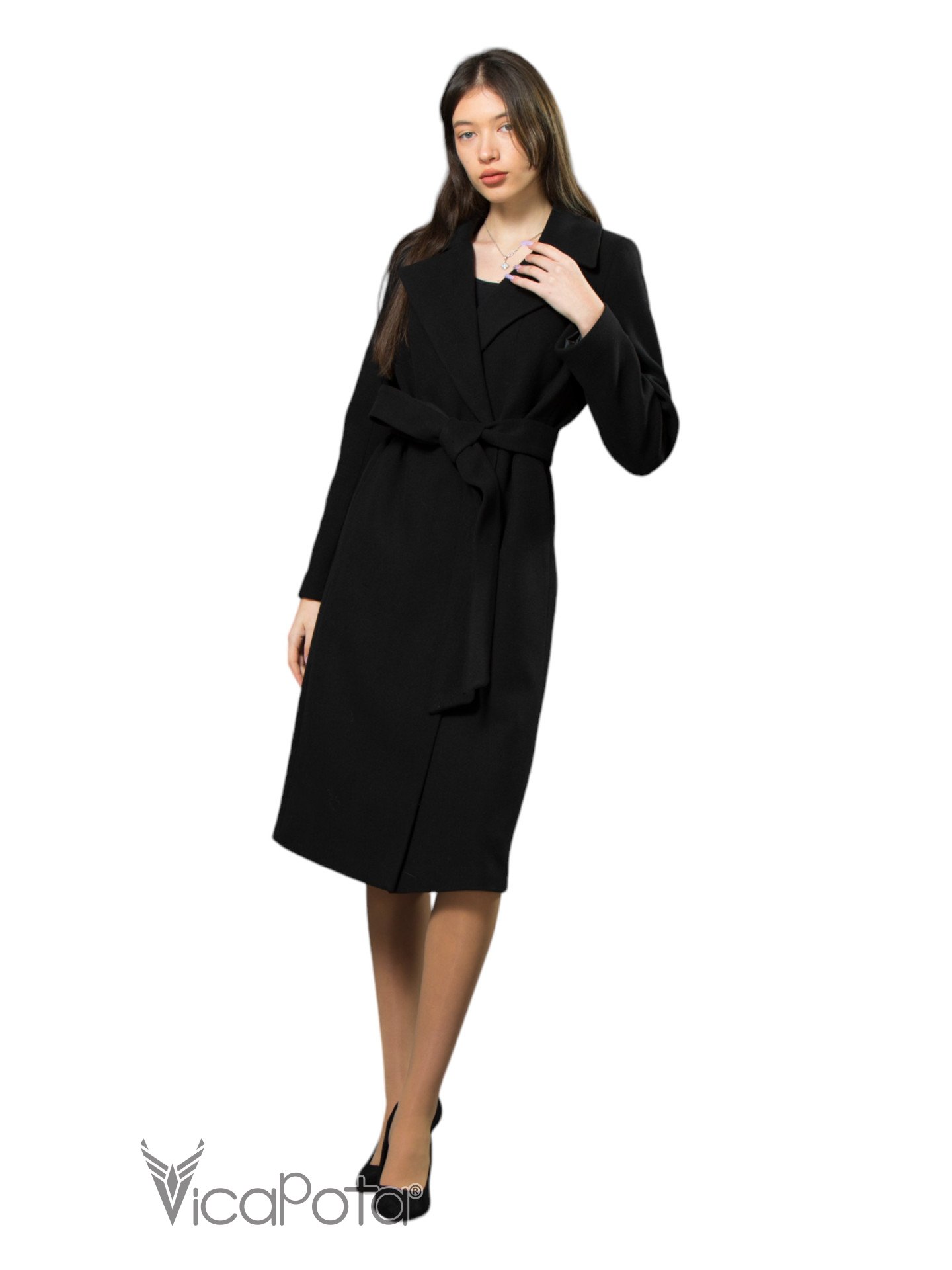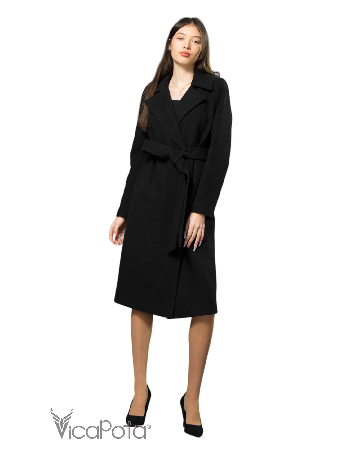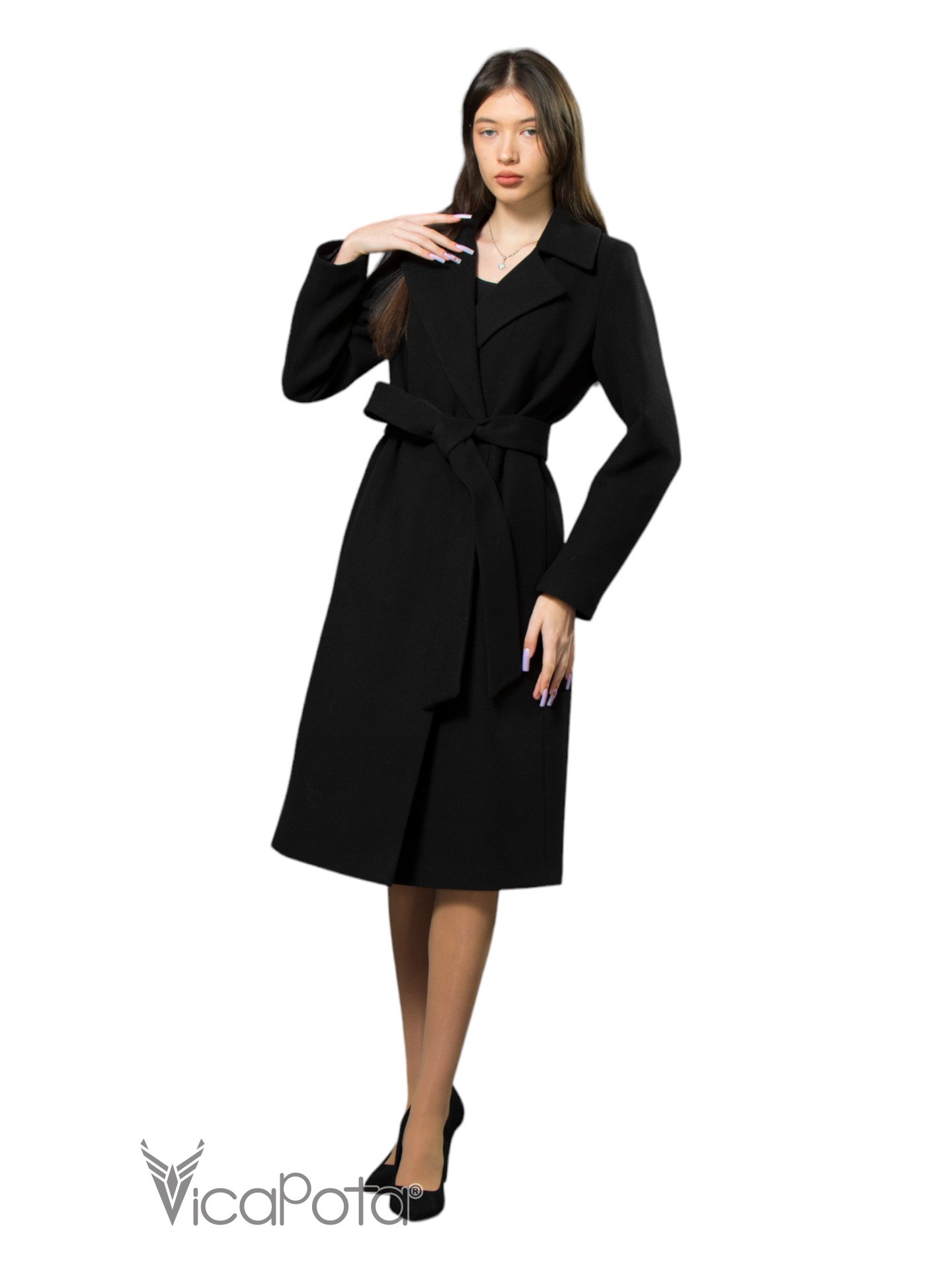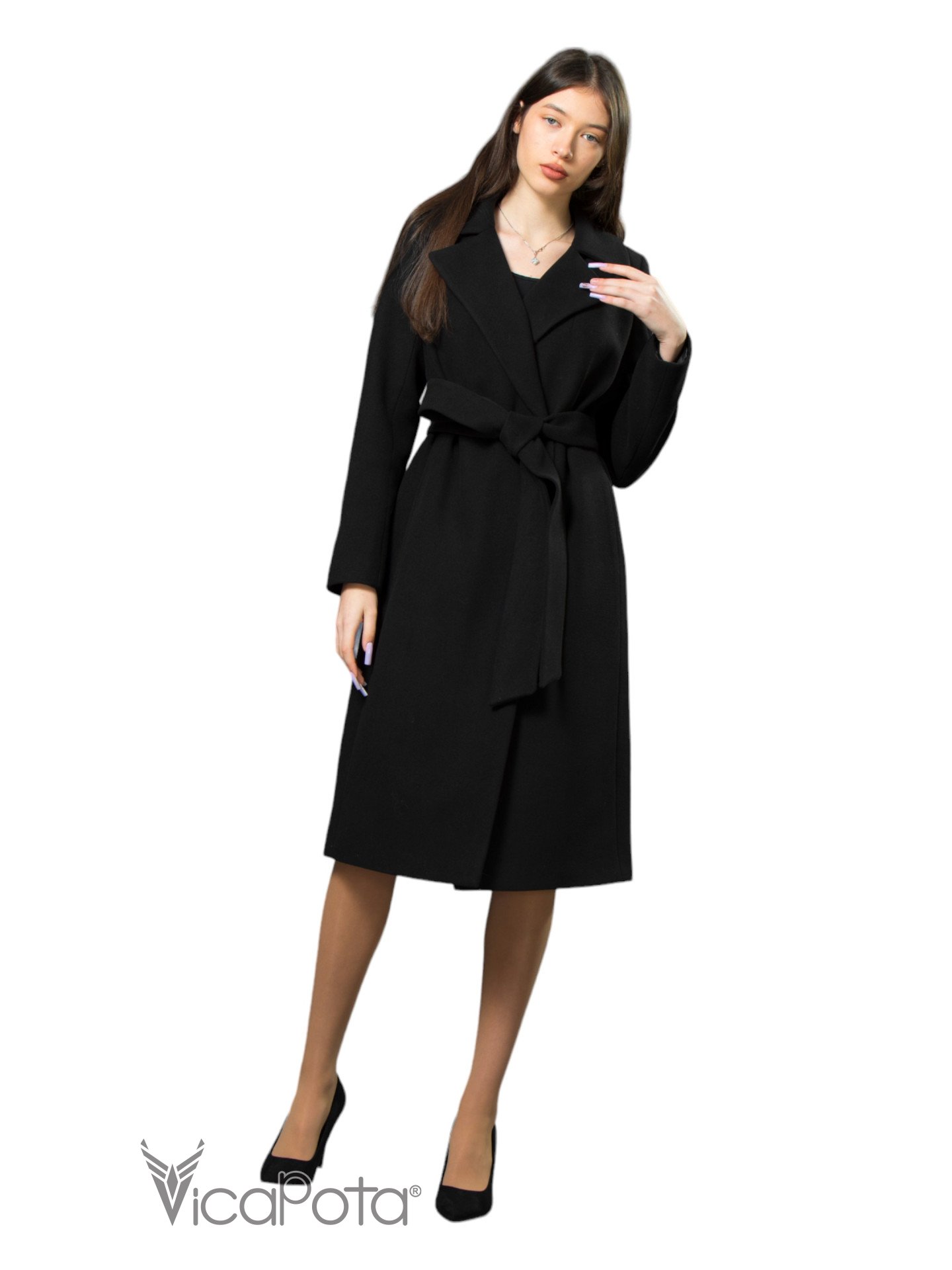 Класичне кашемірове пальто чорного кольору довжиною 110 см — це втілення елегантності та універсальності. Виготовлене з якісного матеріалу, що містить 70% вовни, 20% акрилу та 10% віскози, пальто забезпечує тепло та комфорт у прохолодну пору року. Приталений силует підкреслює фігуру, створюючи витончений і жіночний образ. Потайні пришивні кнопки додають моделі мінімалістичного шику, а можливість носити пальто як з поясом, так і без нього, дозволяє легко змінювати стиль: акцентувати талію або створювати більш розслаблений вигляд. Цей універсальний варіант ідеально підходить для ділових зустрічей та повсякденних виходів, підкреслюючи ваш витончений стиль і бездоганний смак.