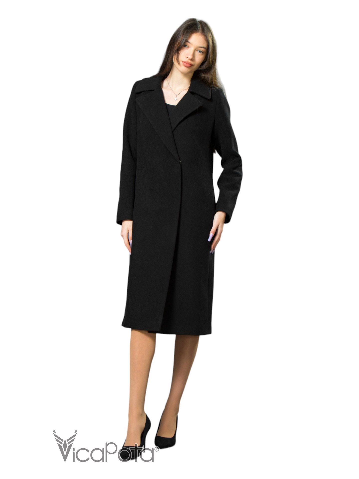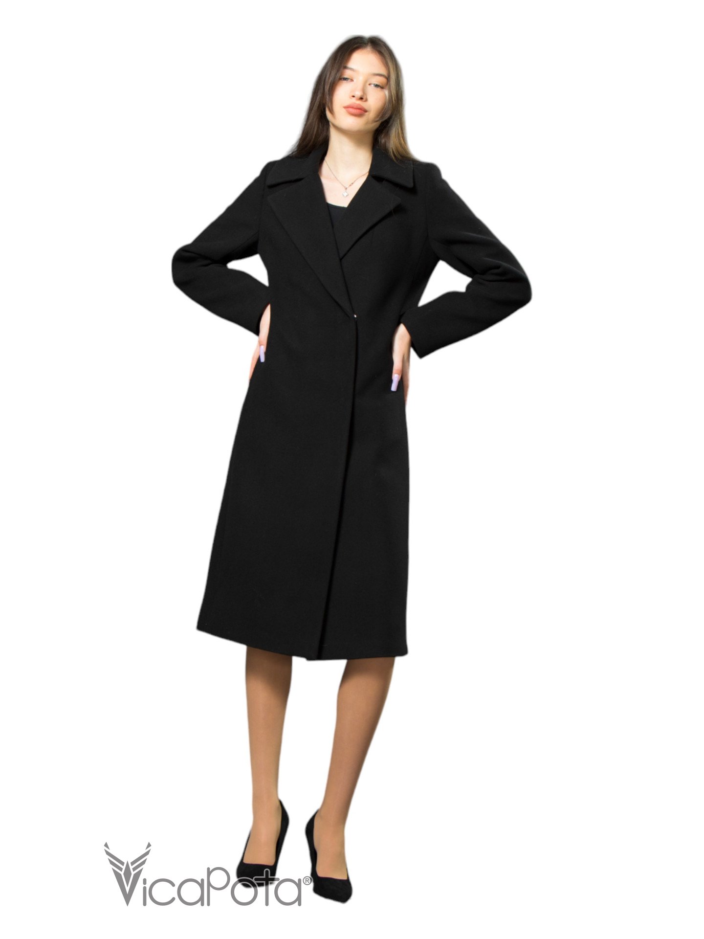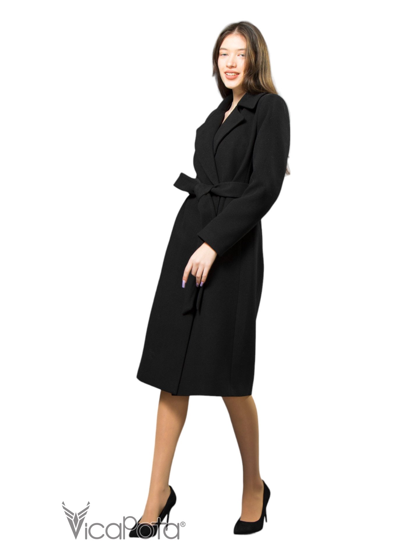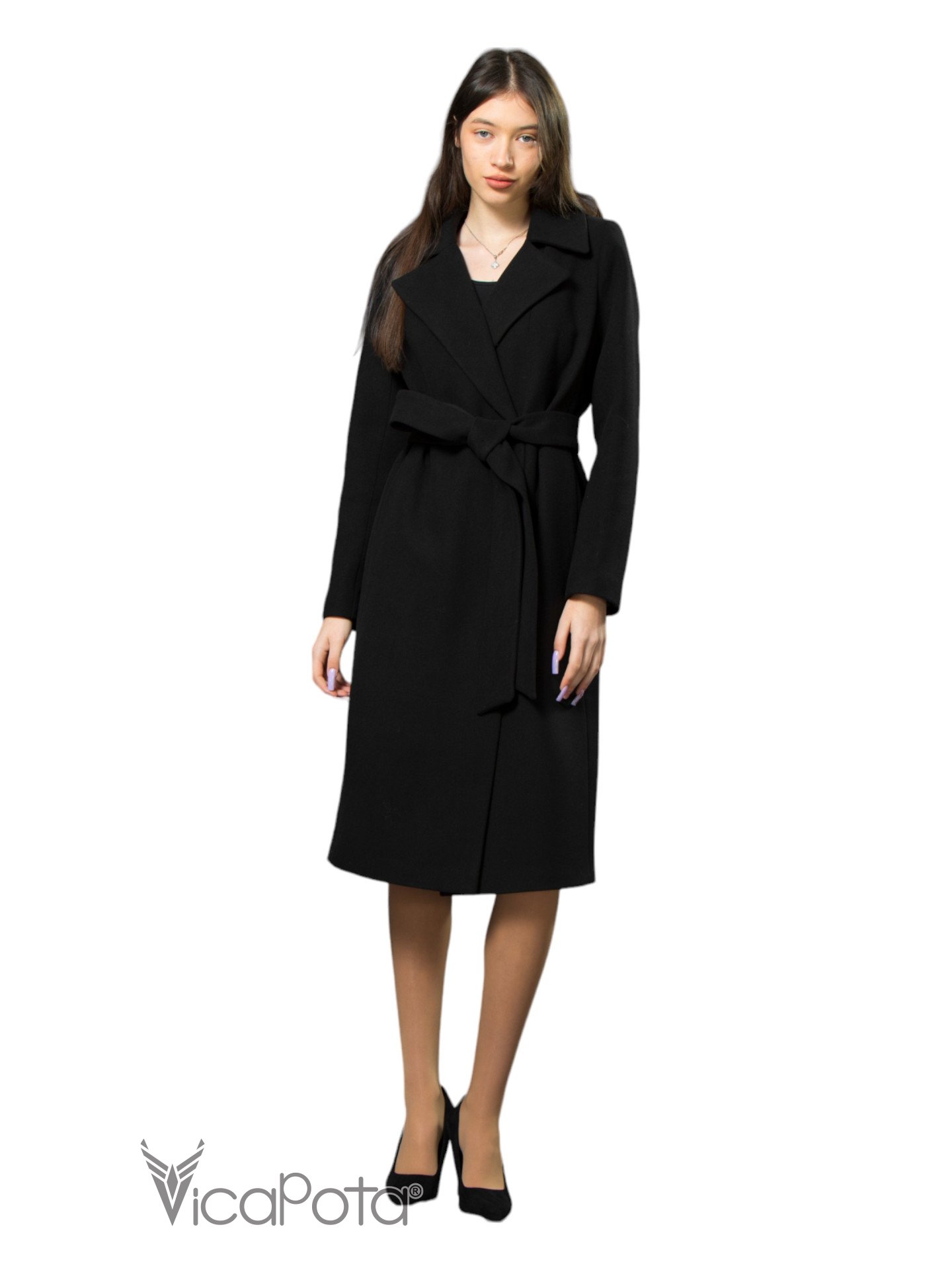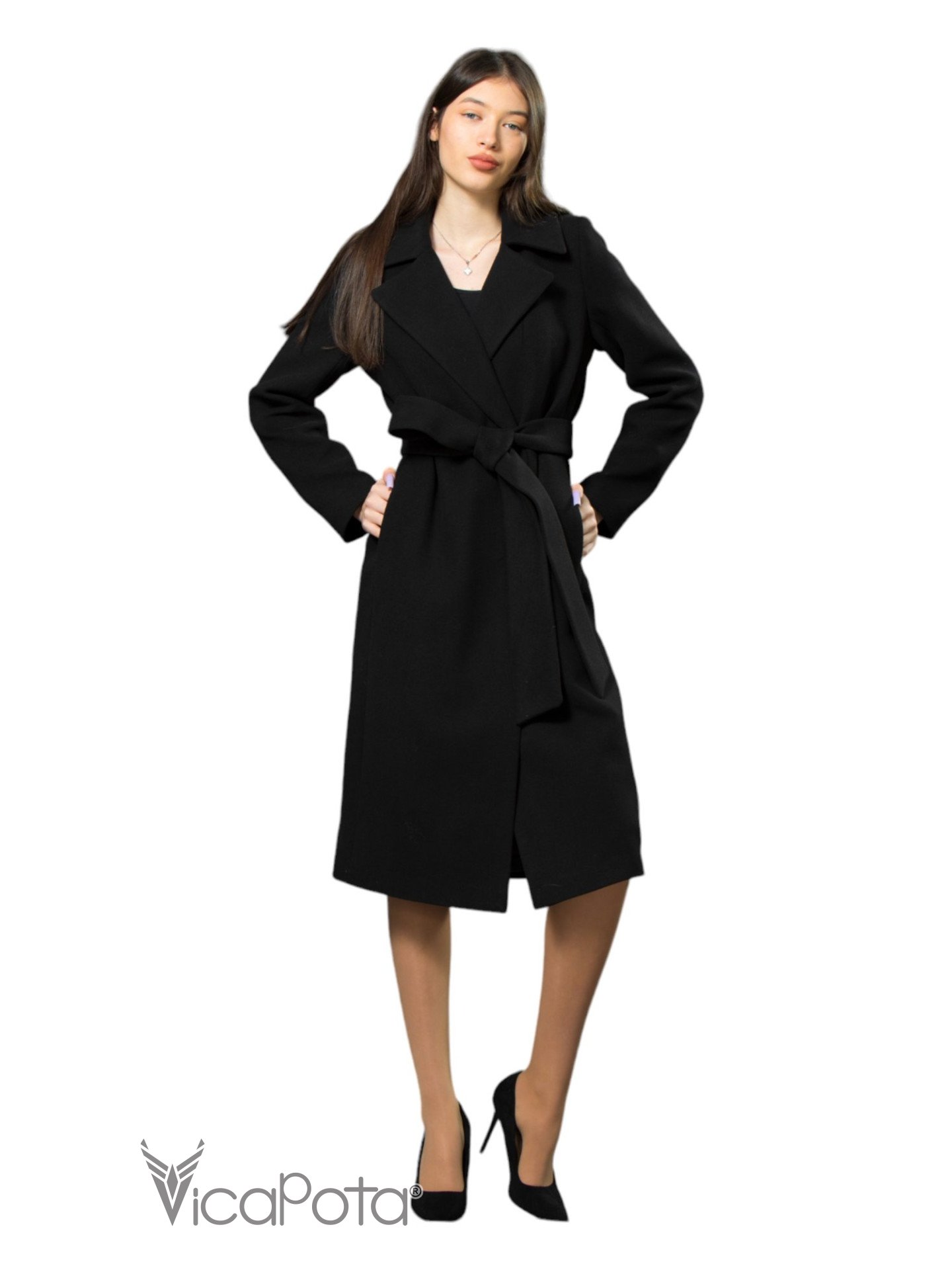 Класичне кашемірове пальто чорного кольору довжиною 110 см — це втілення елегантності та універсальності. Виготовлене з якісного матеріалу, що містить 70% вовни, 20% акрилу та 10% віскози, пальто забезпечує тепло та комфорт у прохолодну пору року. Приталений силует підкреслює фігуру, створюючи витончений і жіночний образ. Потайні пришивні кнопки додають моделі мінімалістичного шику, а можливість носити пальто як з поясом, так і без нього, дозволяє легко змінювати стиль: акцентувати талію або створювати більш розслаблений вигляд. Цей універсальний варіант ідеально підходить для ділових зустрічей та повсякденних виходів, підкреслюючи ваш витончений стиль і бездоганний смак.