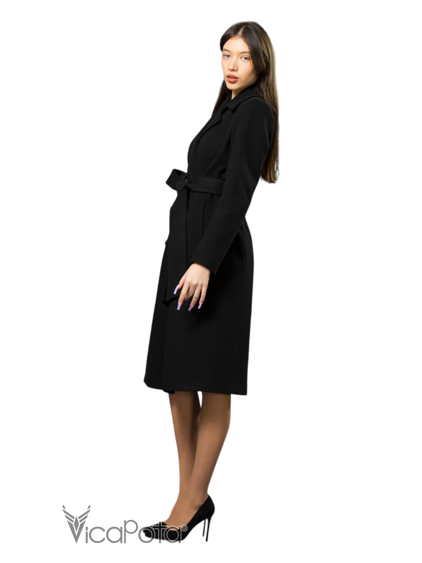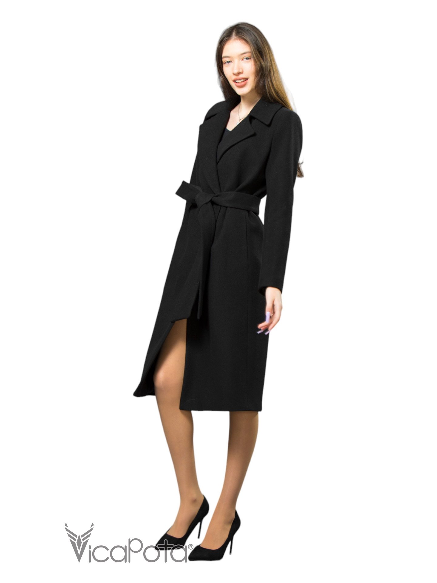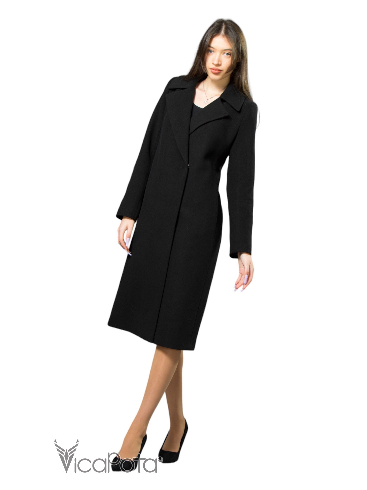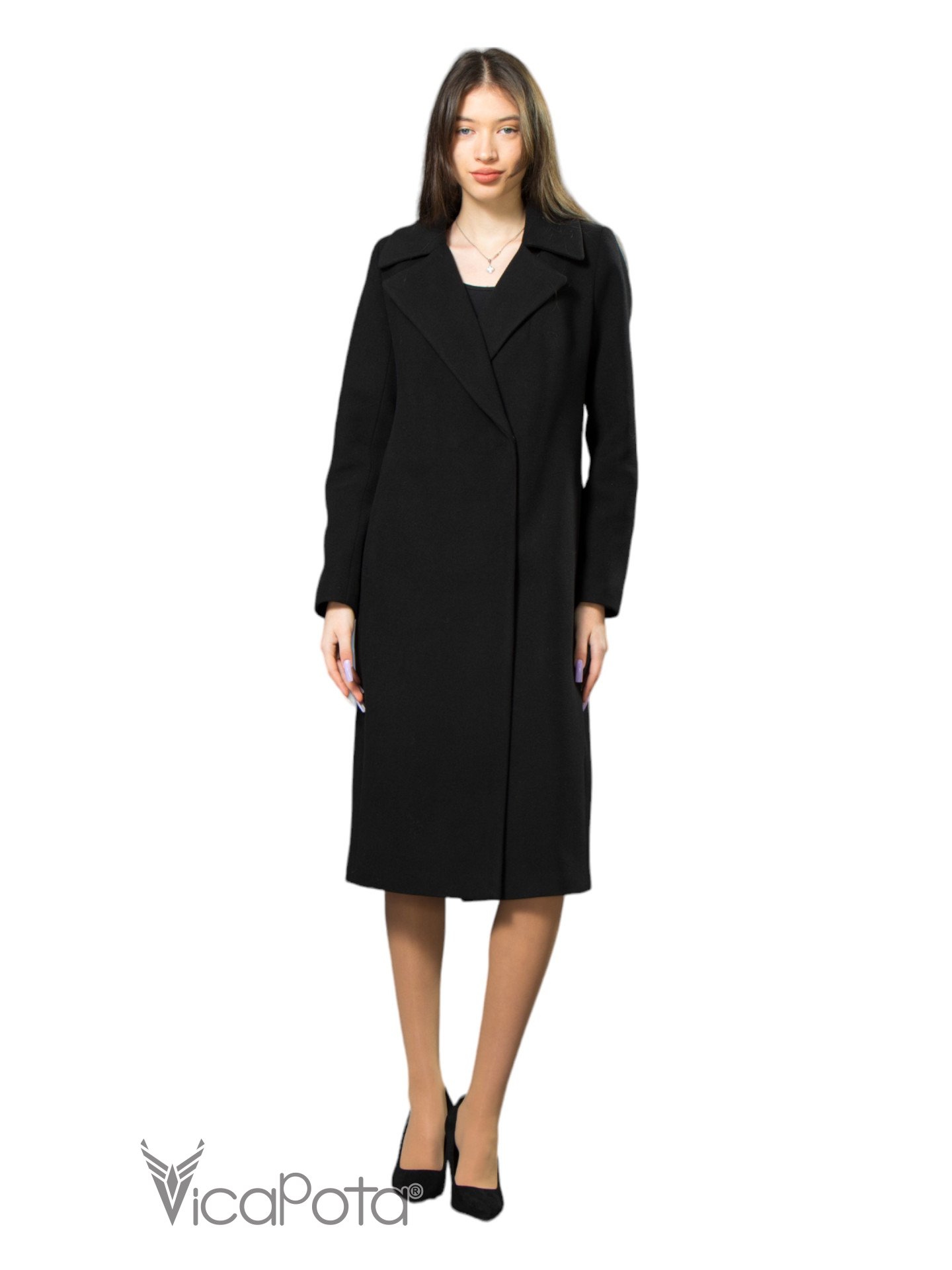 Класичне кашемірове пальто чорного кольору довжиною 110 см — це втілення елегантності та універсальності. Виготовлене з якісного матеріалу, що містить 70% вовни, 20% акрилу та 10% віскози, пальто забезпечує тепло та комфорт у прохолодну пору року. Приталений силует підкреслює фігуру, створюючи витончений і жіночний образ. Потайні пришивні кнопки додають моделі мінімалістичного шику, а можливість носити пальто як з поясом, так і без нього, дозволяє легко змінювати стиль: акцентувати талію або створювати більш розслаблений вигляд. Цей універсальний варіант ідеально підходить для ділових зустрічей та повсякденних виходів, підкреслюючи ваш витончений стиль і бездоганний смак.