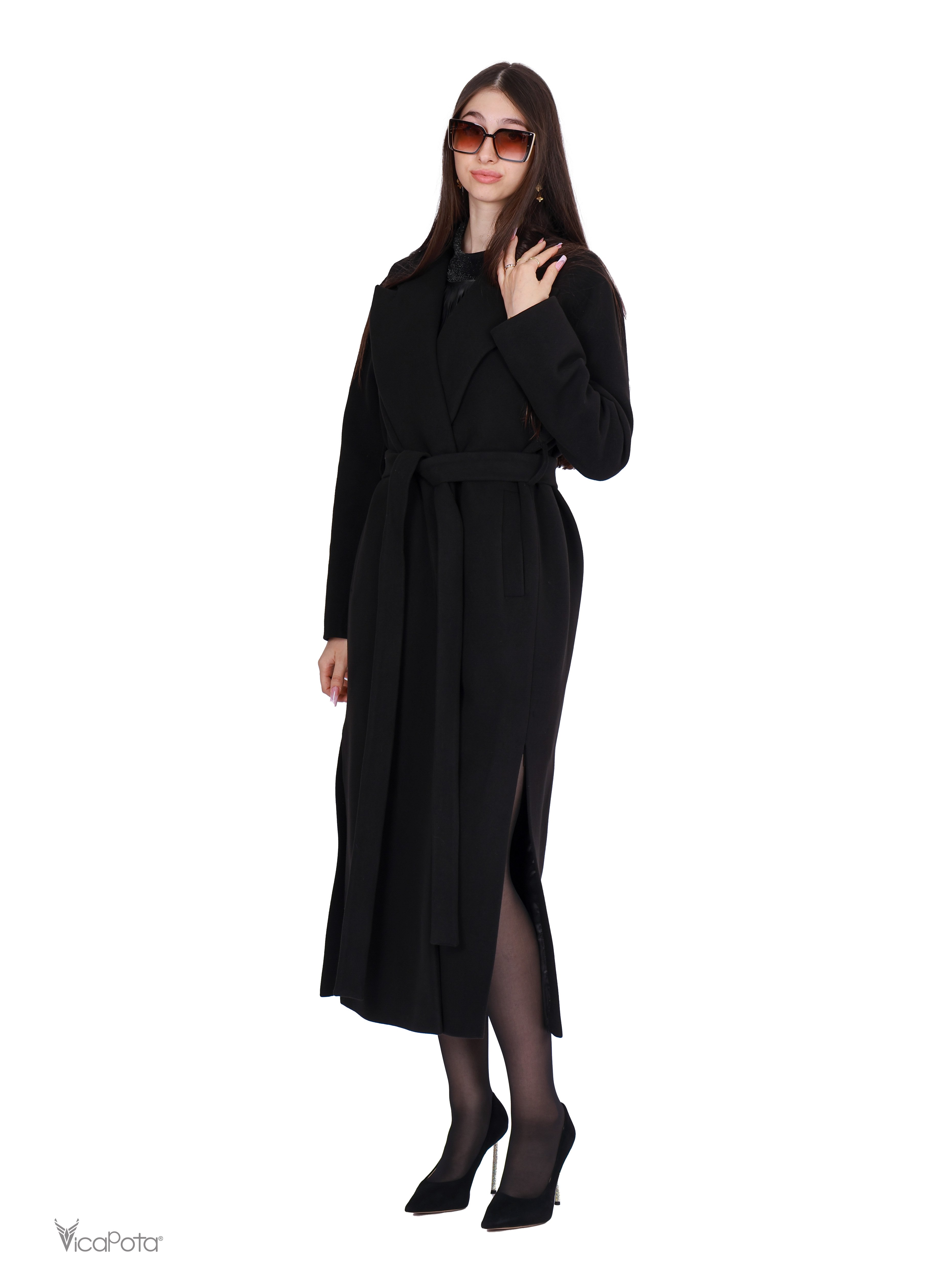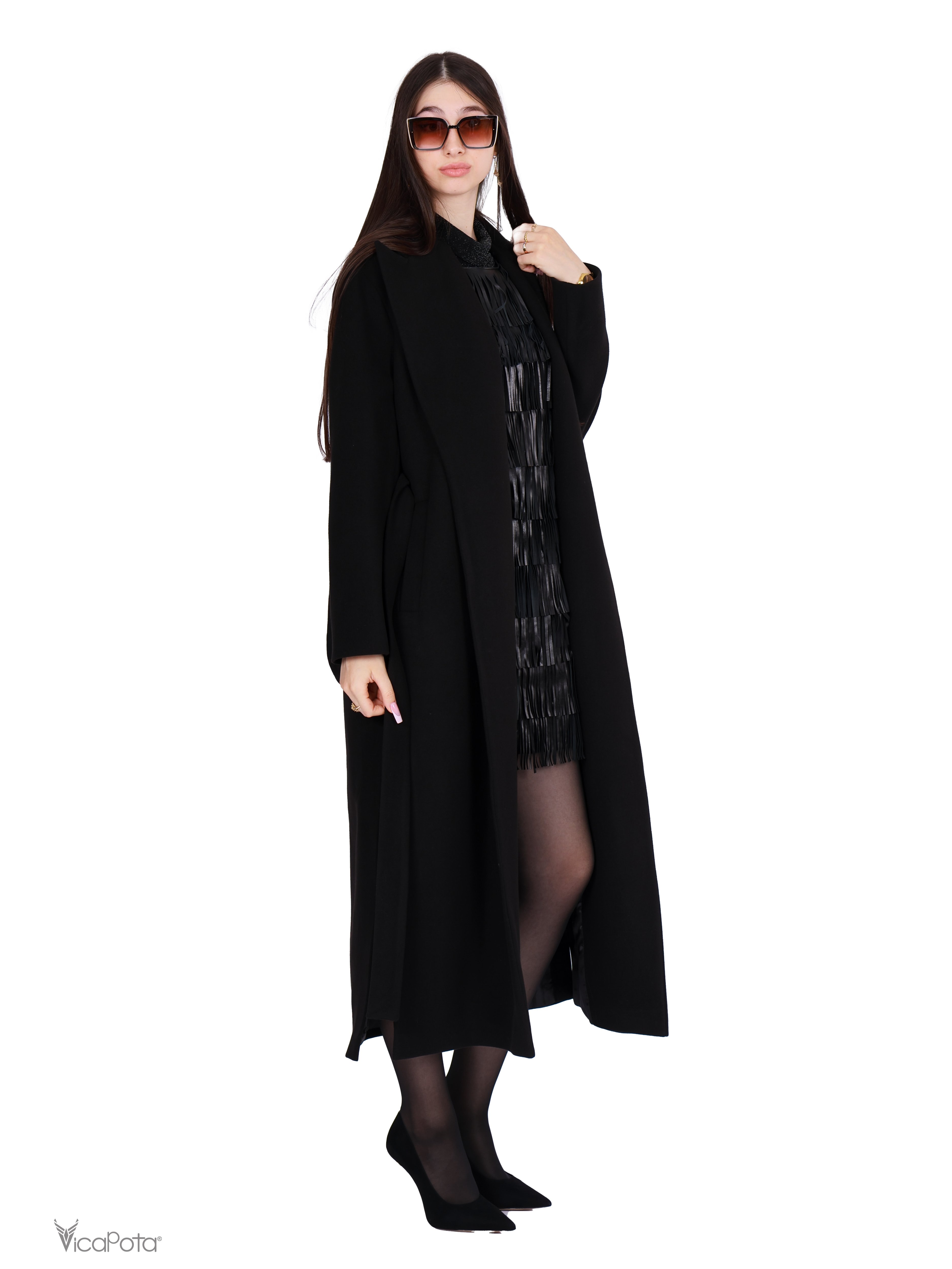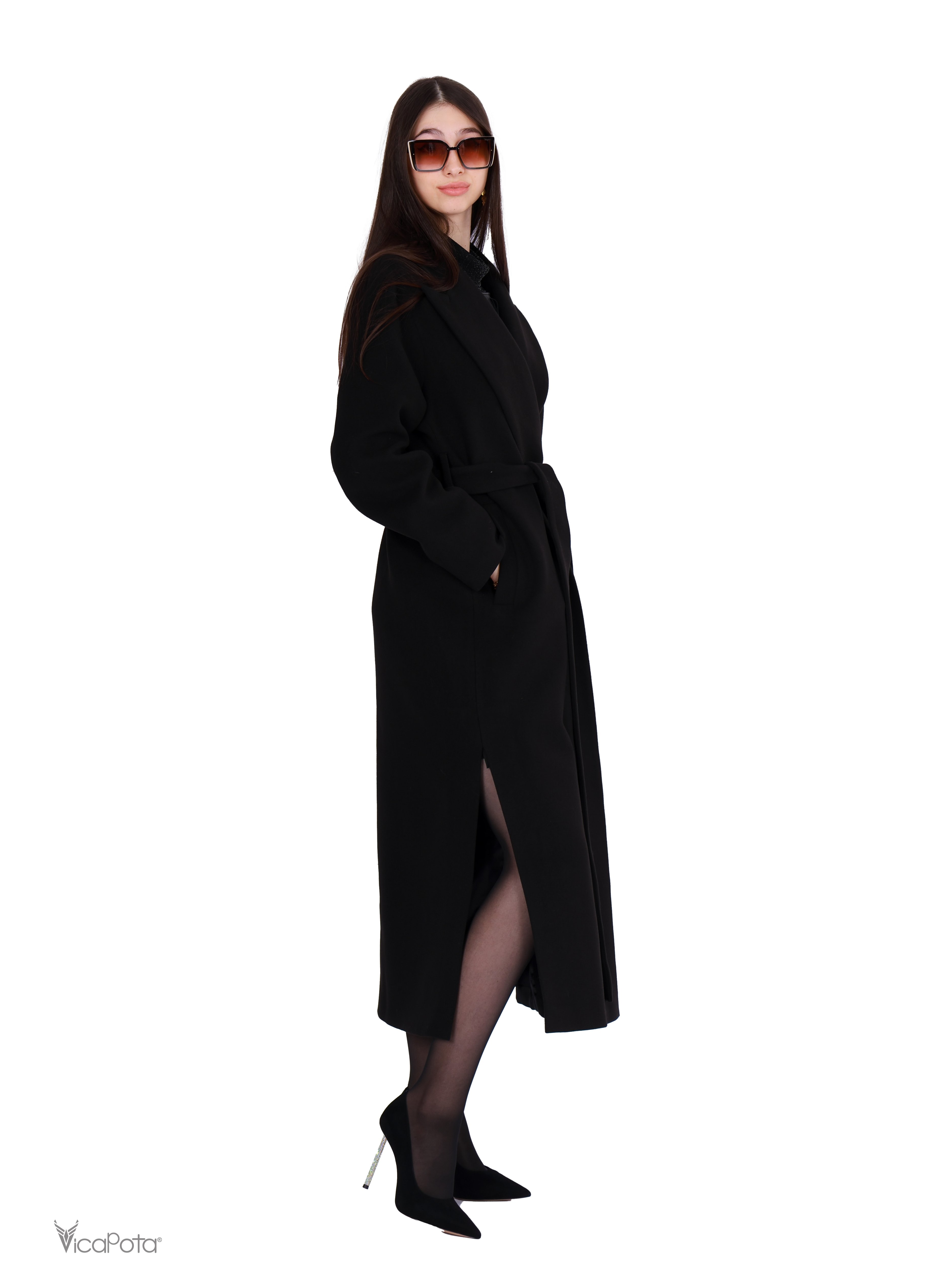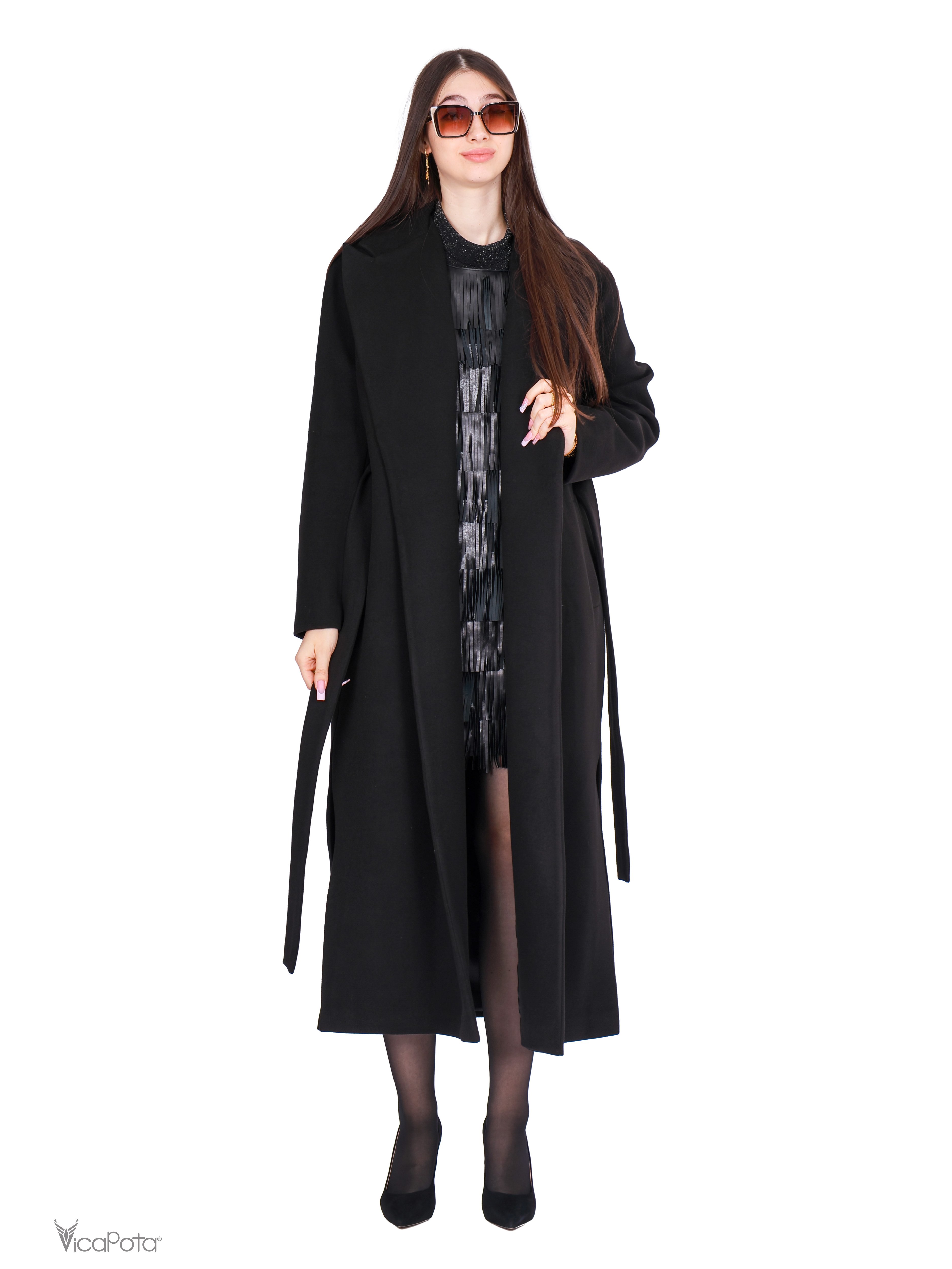 Елегантне кашемірове пальто на запах із поясом, виконане в класичному чорному кольорі, — ідеальний вибір для холодного сезону. Модель виготовлена з якісної тканини з вмістом 70% вовни, акрилу та віскози, що забезпечує м’якість і міцність. Довжина 130 см робить пальто універсальним рішенням, а бокові розрізи додають свободи рухів та елегантності образу. Це пальто підкреслить вашу індивідуальність, ставши стильним і універсальним доповненням зимового гардероба.