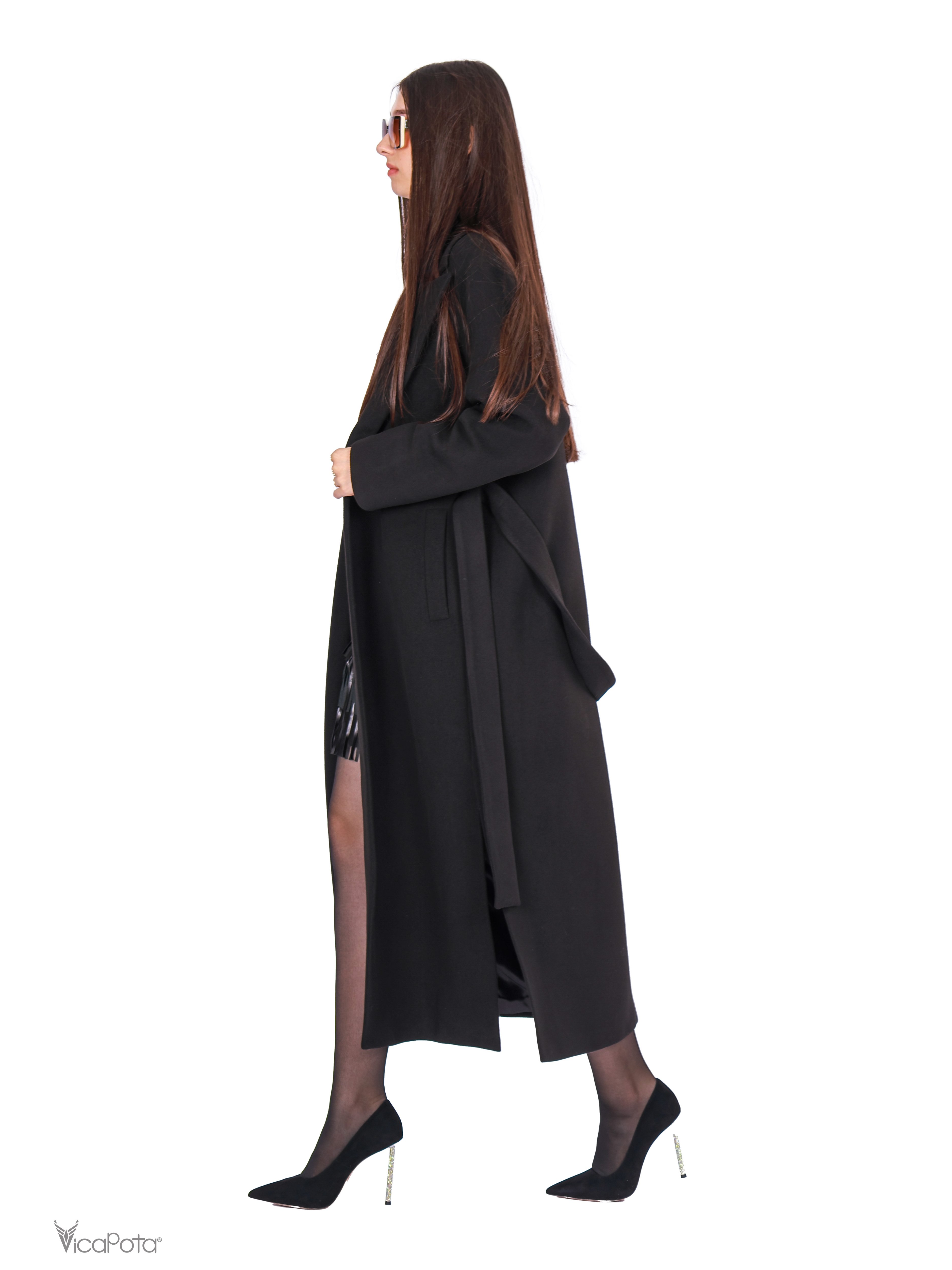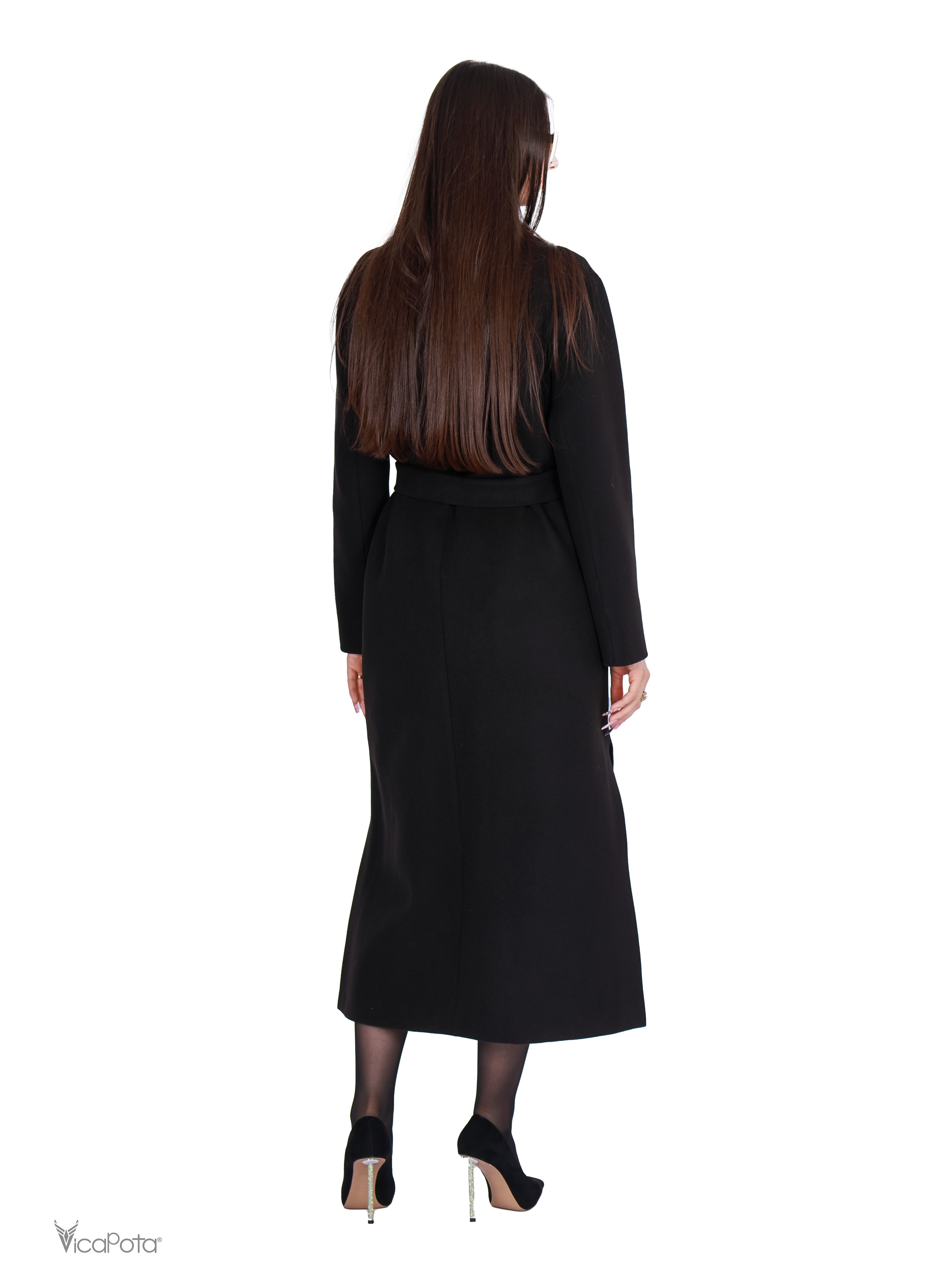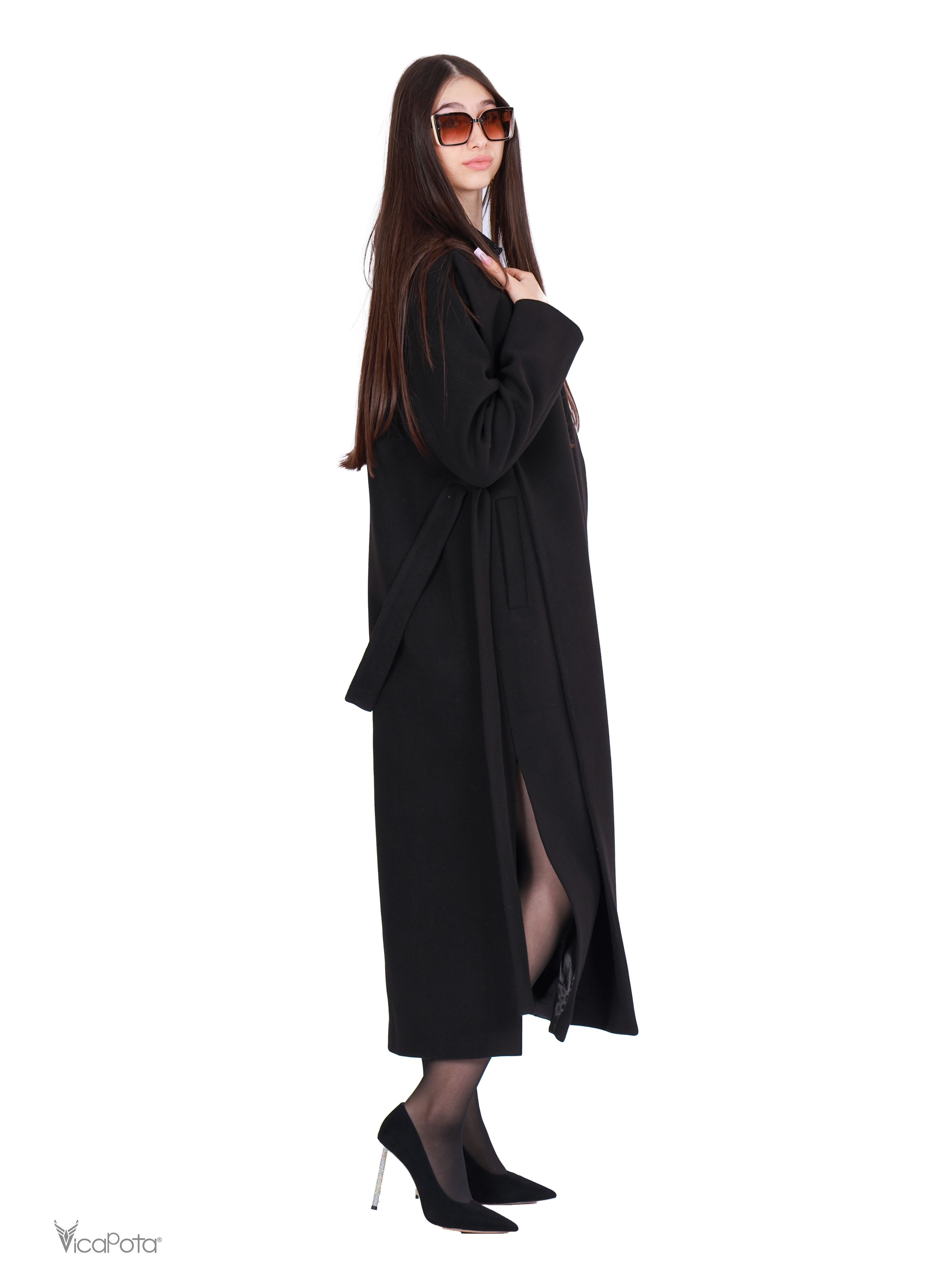 Елегантне кашемірове пальто на запах із поясом, виконане в класичному чорному кольорі, — ідеальний вибір для холодного сезону. Модель виготовлена з якісної тканини з вмістом 70% вовни, акрилу та віскози, що забезпечує м’якість і міцність. Довжина 130 см робить пальто універсальним рішенням, а бокові розрізи додають свободи рухів та елегантності образу. Це пальто підкреслить вашу індивідуальність, ставши стильним і універсальним доповненням зимового гардероба.