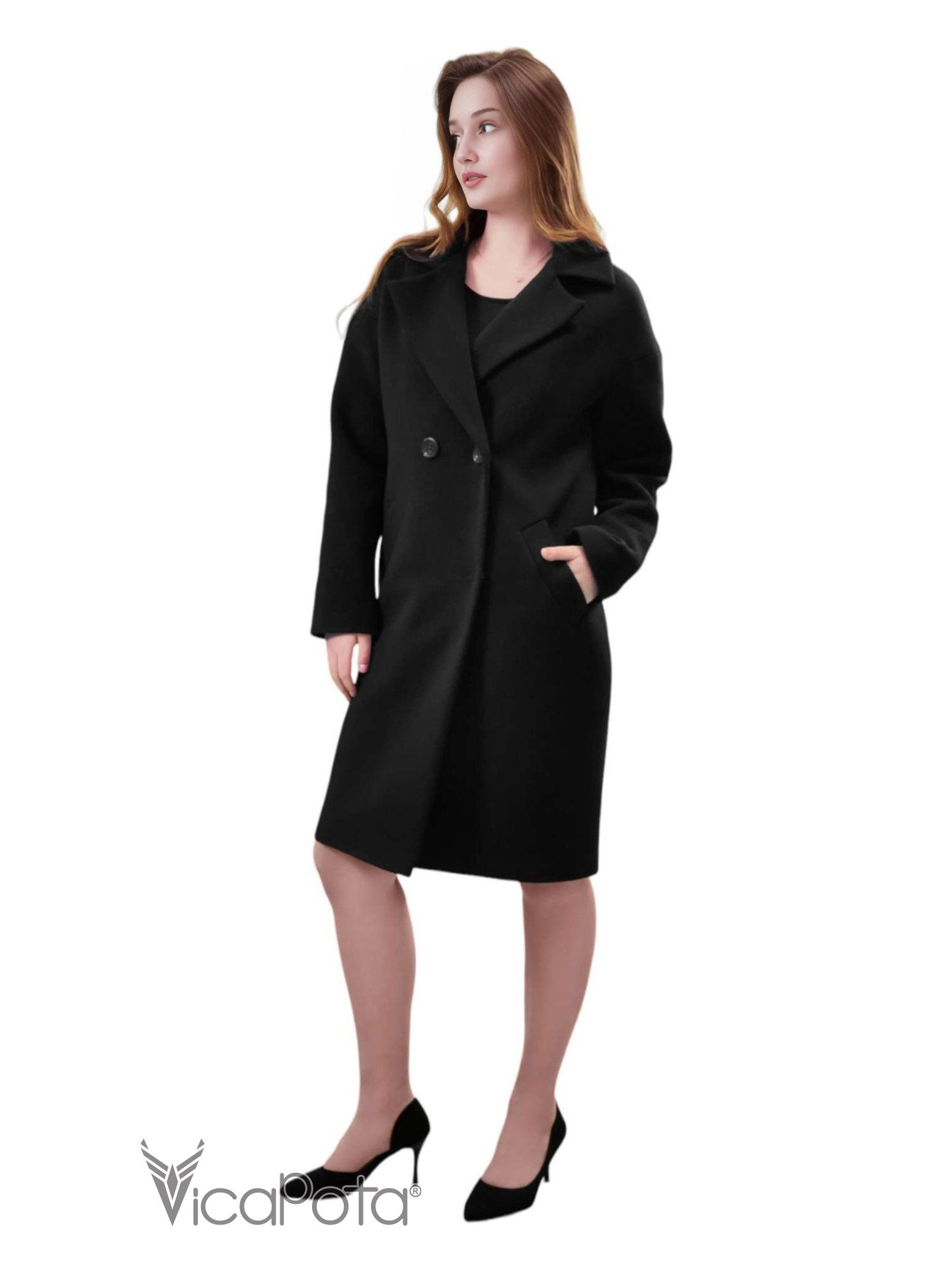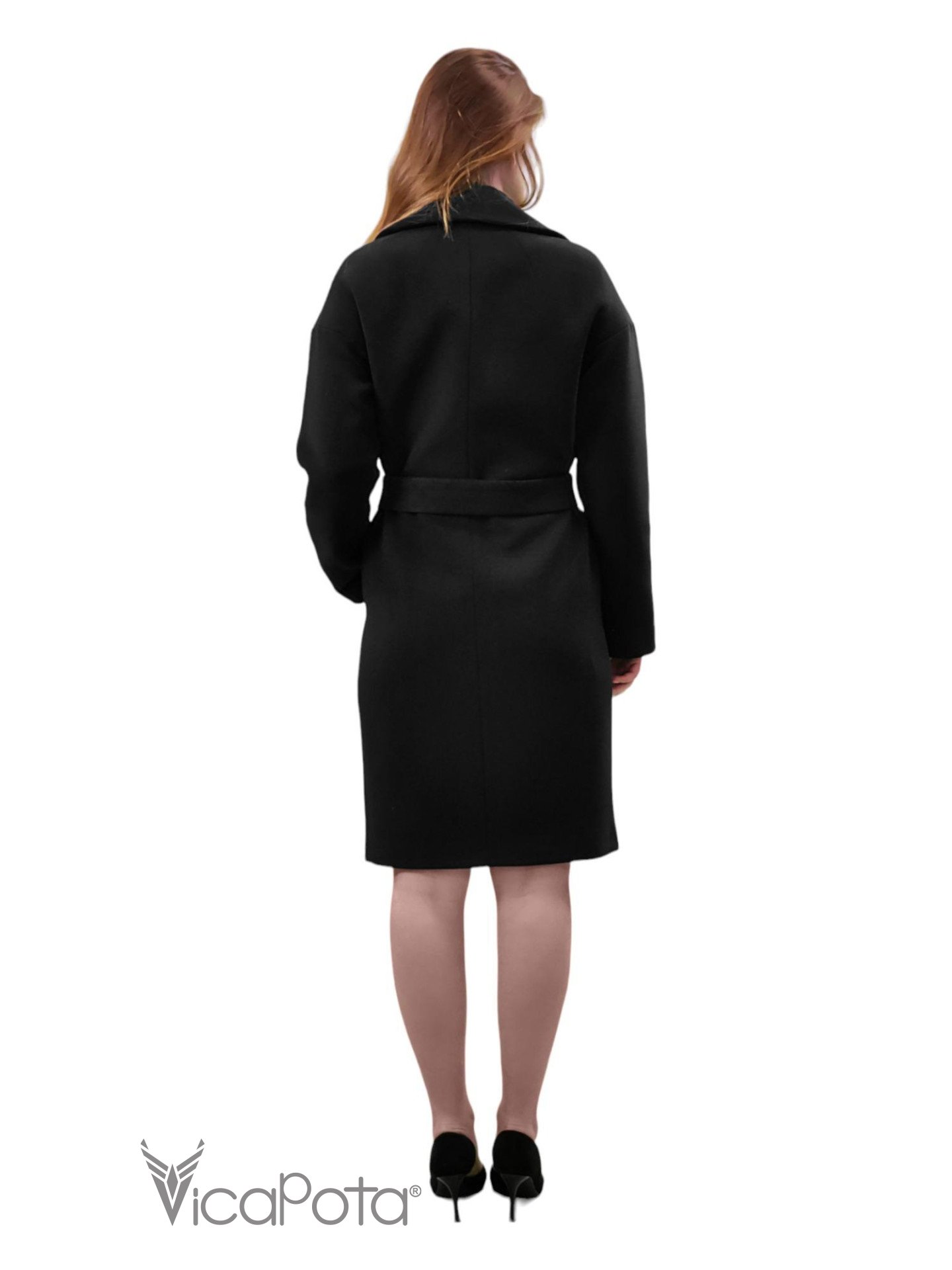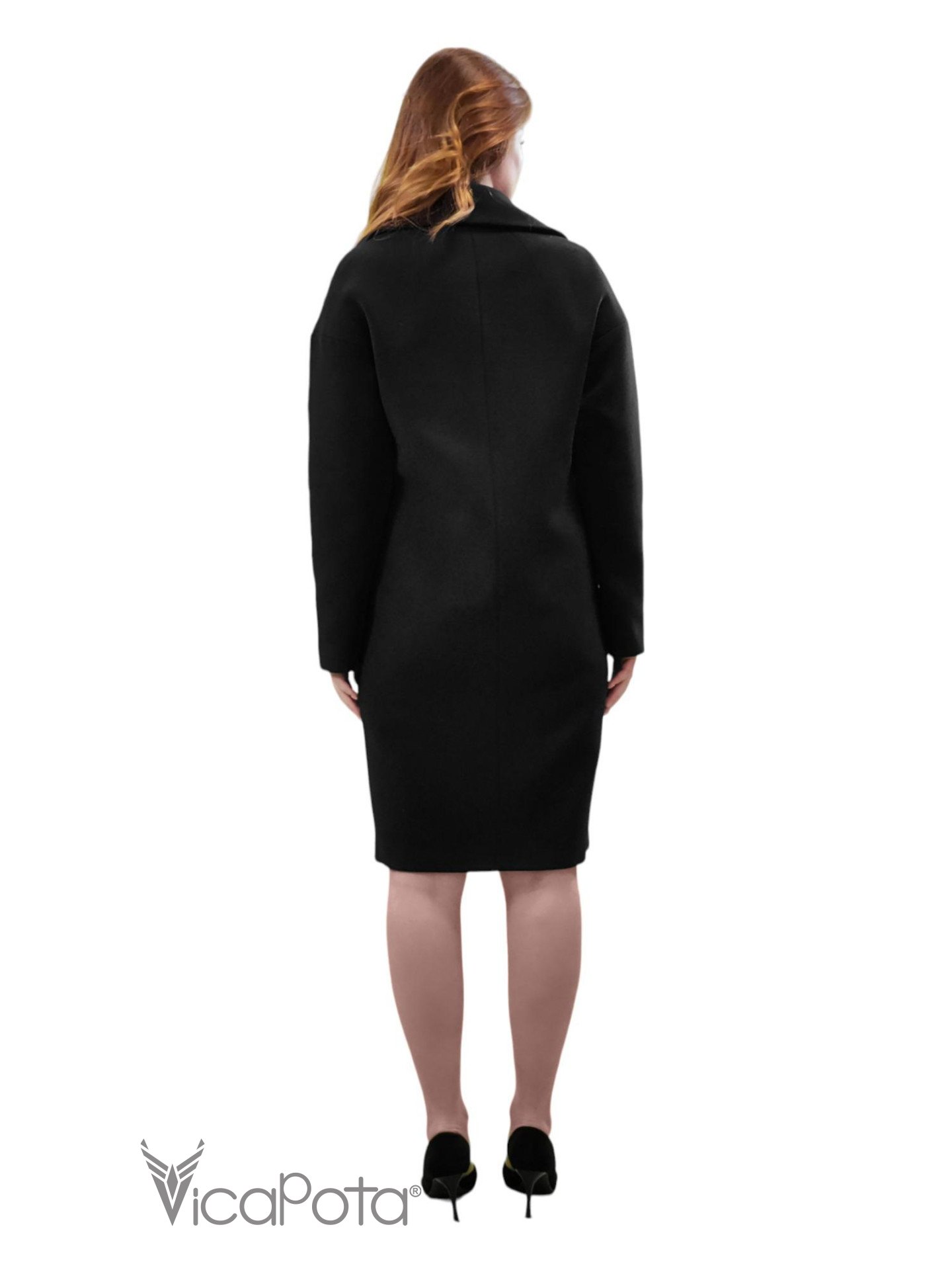 Стильна новинка пальто в стилі оверсайз, чорного кольору. Пальто прямого крою в комбінації з поясом при необхідності допоможе вигідно сховати деякі недоліки фігури. Модель має відкладний англійський комір, м'яке плече, втачной рукав. Застібається пальто на ґудзики, збоку є зручні урізні кишені з листочком. Тип одягу: Пальто, Сезон: Демісезон, Довжина 100 см. Склад: кашемір Туреччина (70%-вовна, 20%-поліестер, 10%-віскоза), підбивка сатин - жаккард. Розтяжність: (0%) Виміри пальто 58 р. Довжина 100 см., Груди 128 см., Талія 124 см., Стегна 130 см.