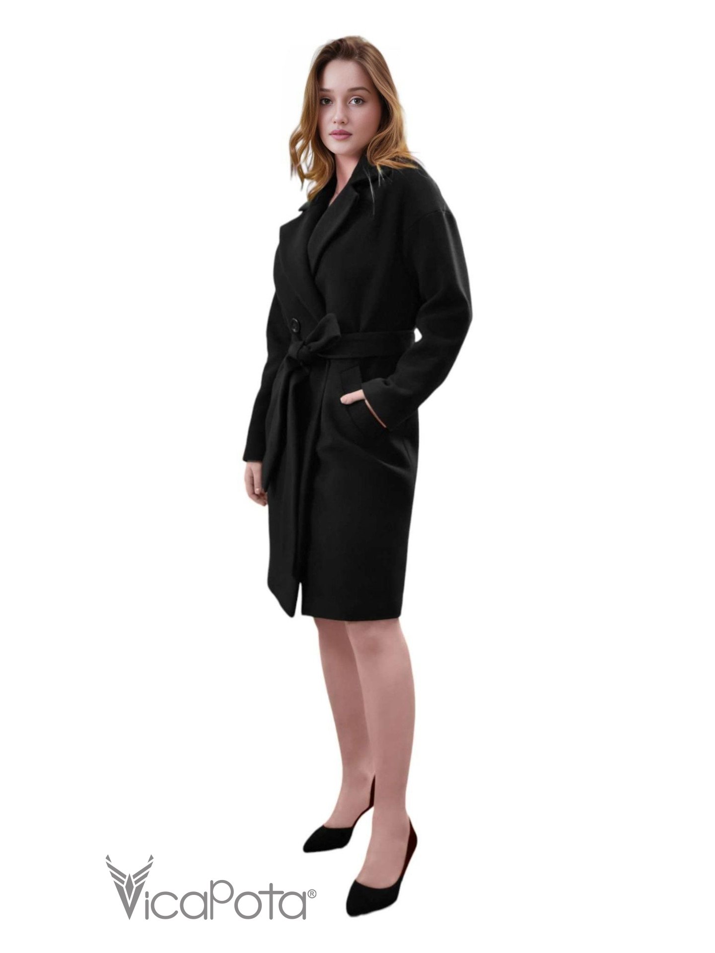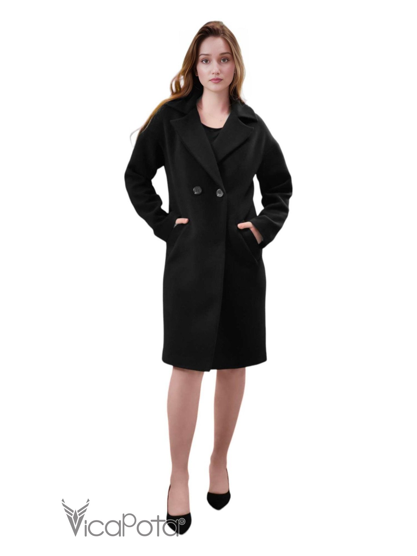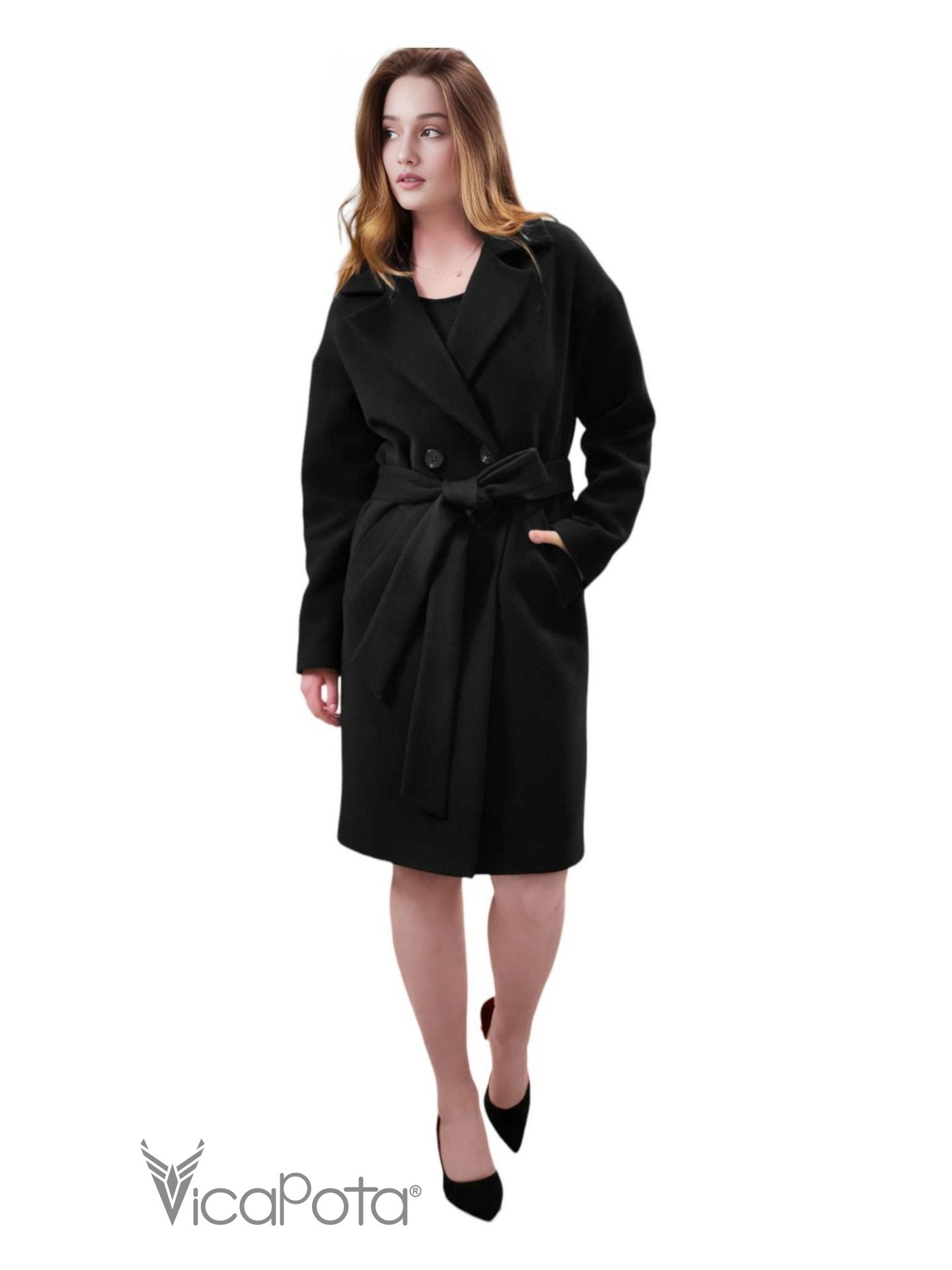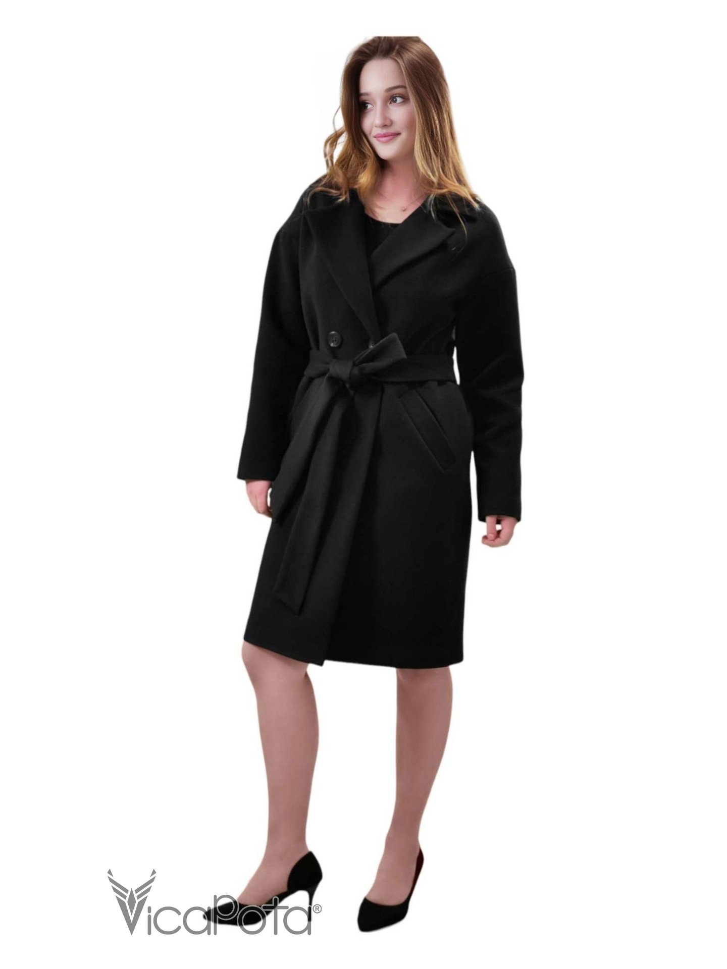 Стильна новинка пальто в стилі оверсайз, чорного кольору. Пальто прямого крою в комбінації з поясом при необхідності допоможе вигідно сховати деякі недоліки фігури. Модель має відкладний англійський комір, м'яке плече, втачной рукав. Застібається пальто на ґудзики, збоку є зручні урізні кишені з листочком. Тип одягу: Пальто, Сезон: Демісезон, Довжина 100 см. Склад: кашемір Туреччина (70%-вовна, 20%-поліестер, 10%-віскоза), підбивка сатин - жаккард. Розтяжність: (0%) Виміри пальто 58 р. Довжина 100 см., Груди 128 см., Талія 124 см., Стегна 130 см.
