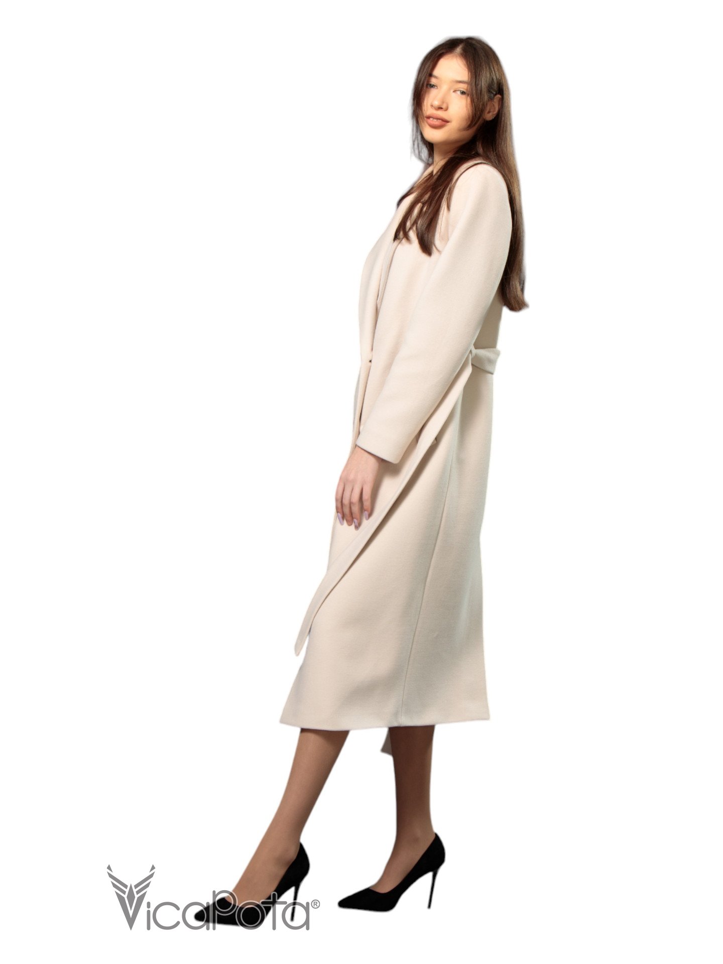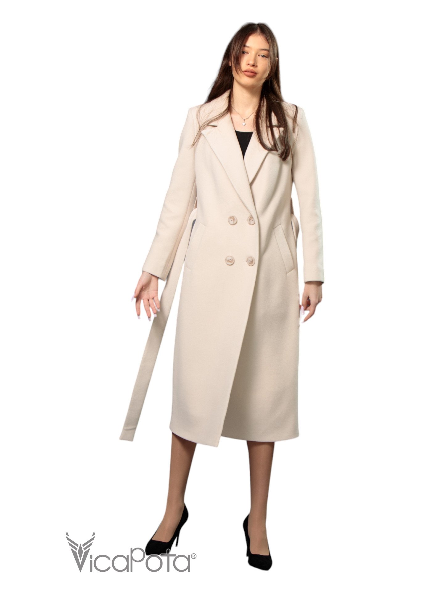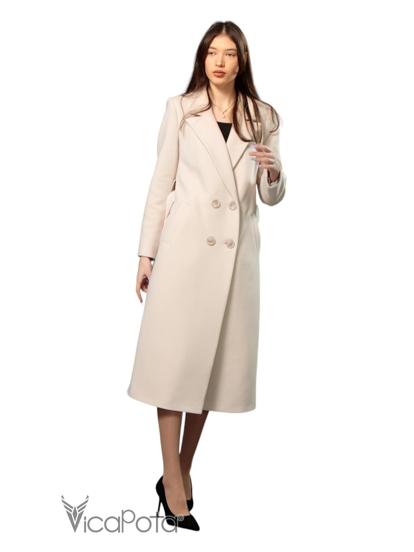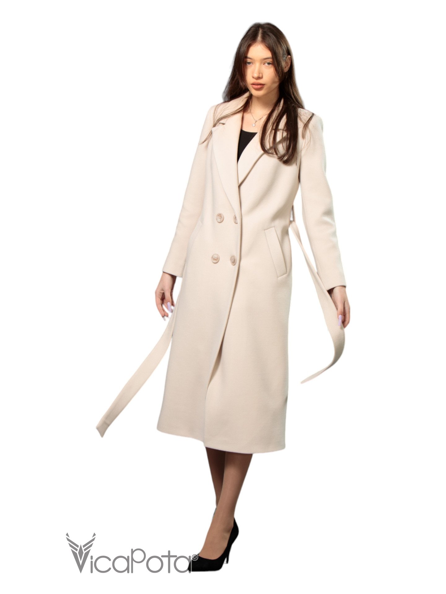 Елегантне двобортне кашемірове пальто світло-бежевого кольору довжиною 120 см — це вибір для тих, хто цінує класику і витонченість. Модель виконана з якісного матеріалу, що містить 70% вовни, 20% акрилу і 10% віскози, що забезпечує тепло і комфорт у прохолодну пору року. Приталений силует підкреслює фігуру, а пояс додає акцент на талії, створюючи витончений і жіночний образ. Світлий беж ідеально підходить для елегантного образу, а двобортний фасон додає пальту нотки класичної розкоші. Це пальто — чудовий вибір для стильних і впевнених у собі жінок, які цінують як функціональність, так і витончений стиль.