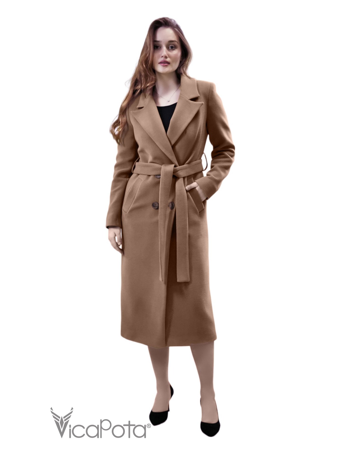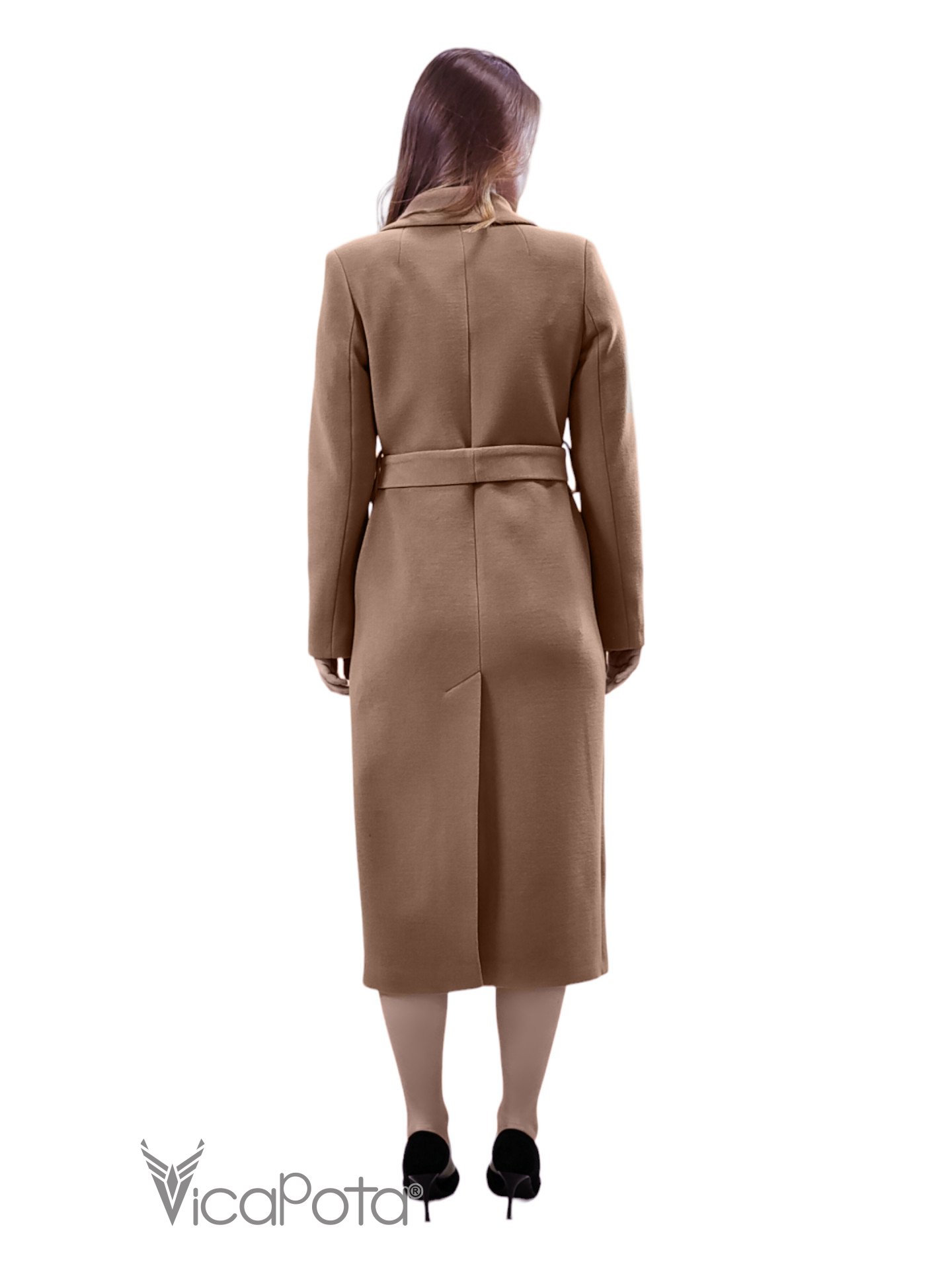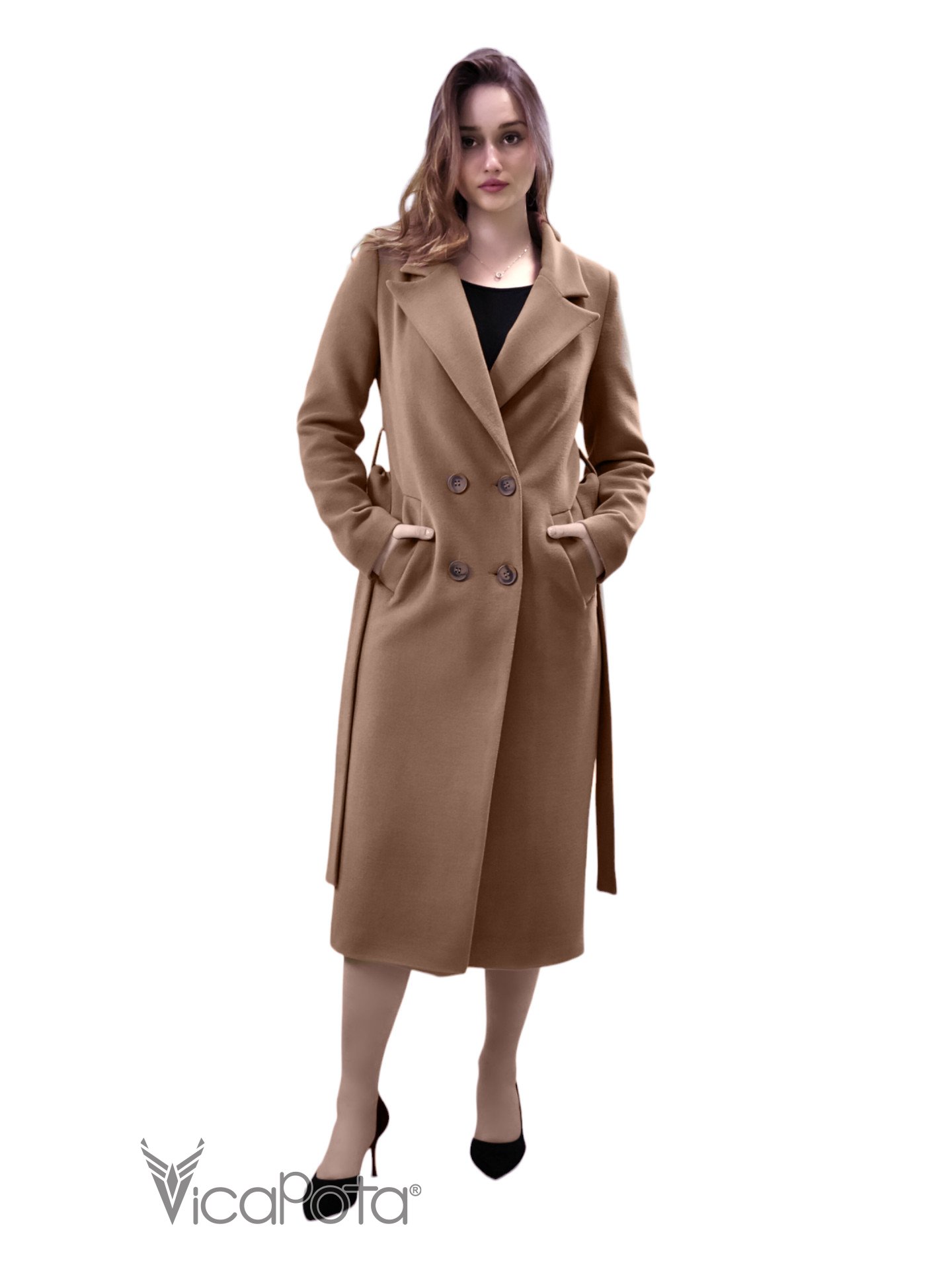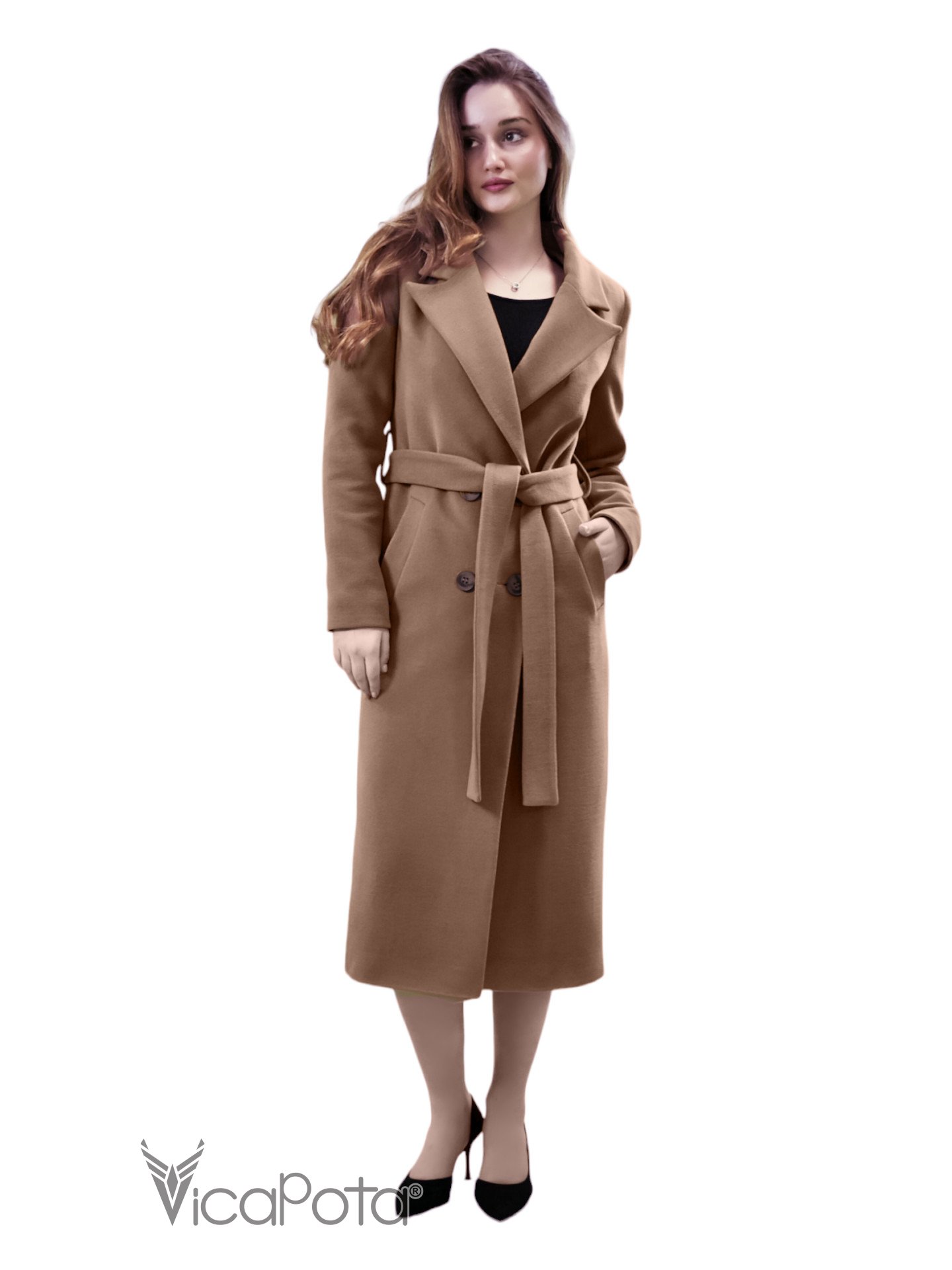 Елегантне кашемірове пальто кольору кемел — ідеальний вибір для поціновувачів класики та якості. Двобортна модель довжиною 120 см виготовлена з високоякісного матеріалу, що складається з 70% вовни, 20% акрилу та 10% віскози, що гарантує тепло і комфорт у прохолодну погоду. Пояс акцентує талію, створюючи витончений і жіночний силует, а класичний фасон робить пальто універсальним рішенням як для ділових, так і для повсякденних образів. Колір кемел додає образу вишуканості та легко поєднується з іншими елементами гардеробу, дозволяючи створювати стильні й елегантні комплекти. Це пальто стане незамінною річчю для прохолодних сезонів, підкреслюючи ваш витончений стиль.
