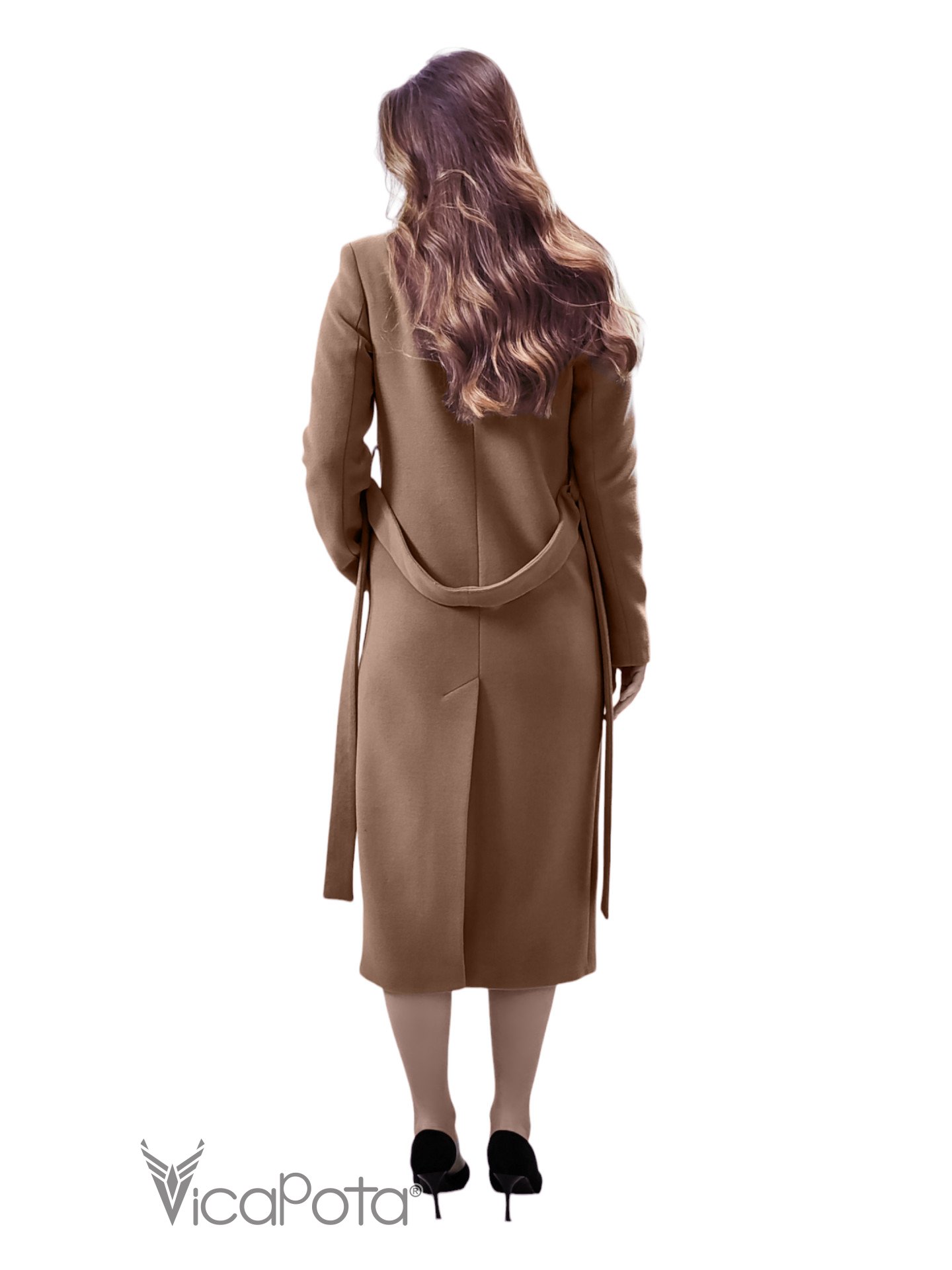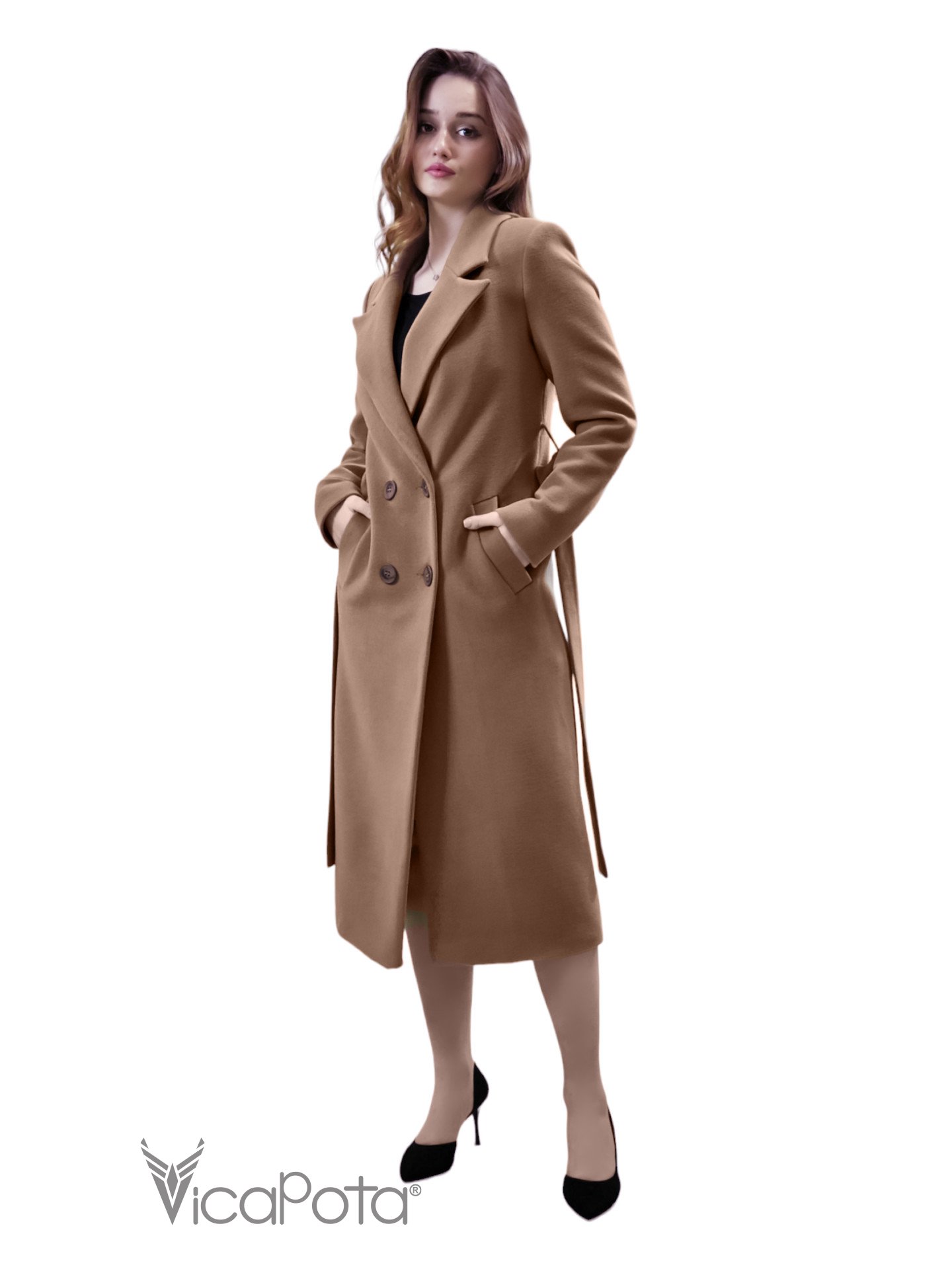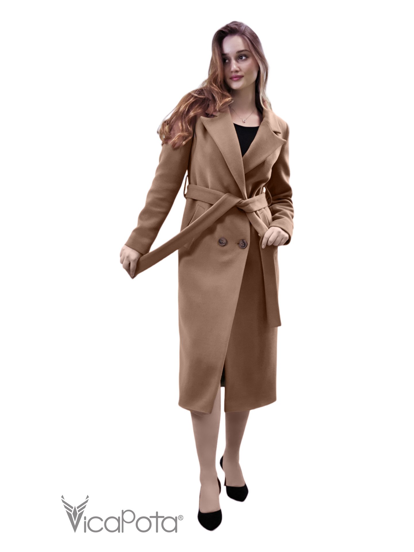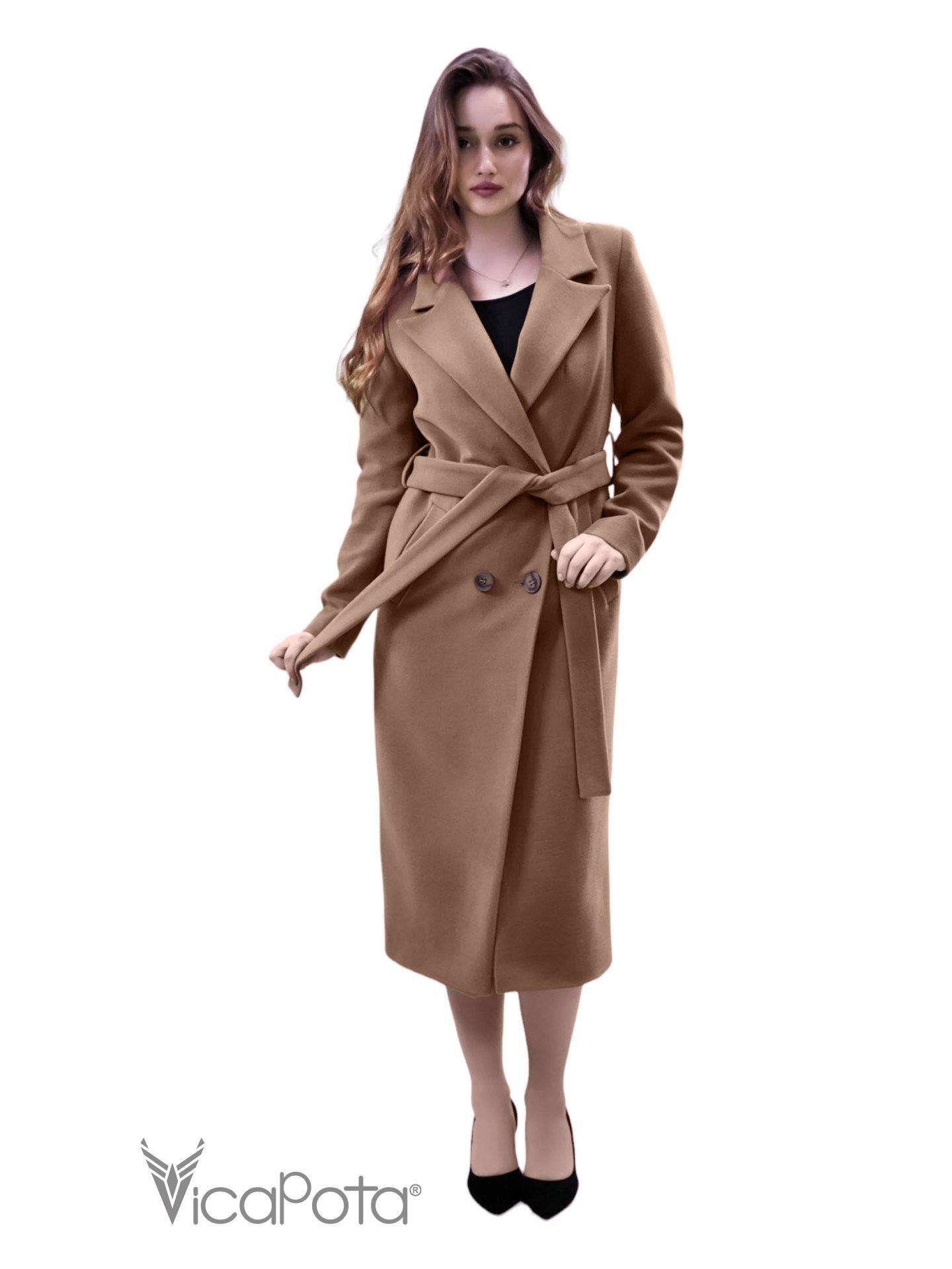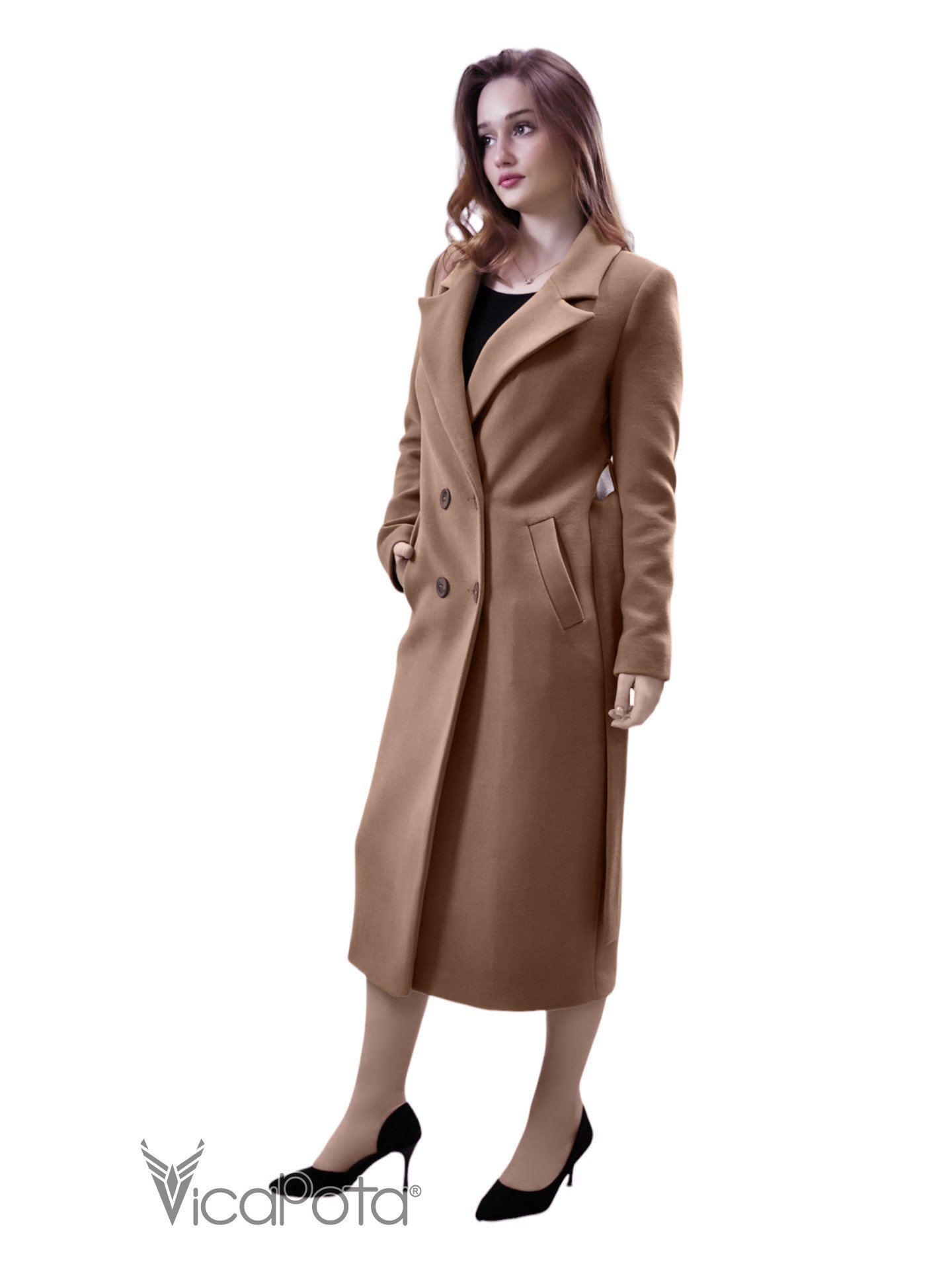 Елегантне кашемірове пальто кольору кемел — ідеальний вибір для поціновувачів класики та якості. Двобортна модель довжиною 120 см виготовлена з високоякісного матеріалу, що складається з 70% вовни, 20% акрилу та 10% віскози, що гарантує тепло і комфорт у прохолодну погоду. Пояс акцентує талію, створюючи витончений і жіночний силует, а класичний фасон робить пальто універсальним рішенням як для ділових, так і для повсякденних образів. Колір кемел додає образу вишуканості та легко поєднується з іншими елементами гардеробу, дозволяючи створювати стильні й елегантні комплекти. Це пальто стане незамінною річчю для прохолодних сезонів, підкреслюючи ваш витончений стиль.