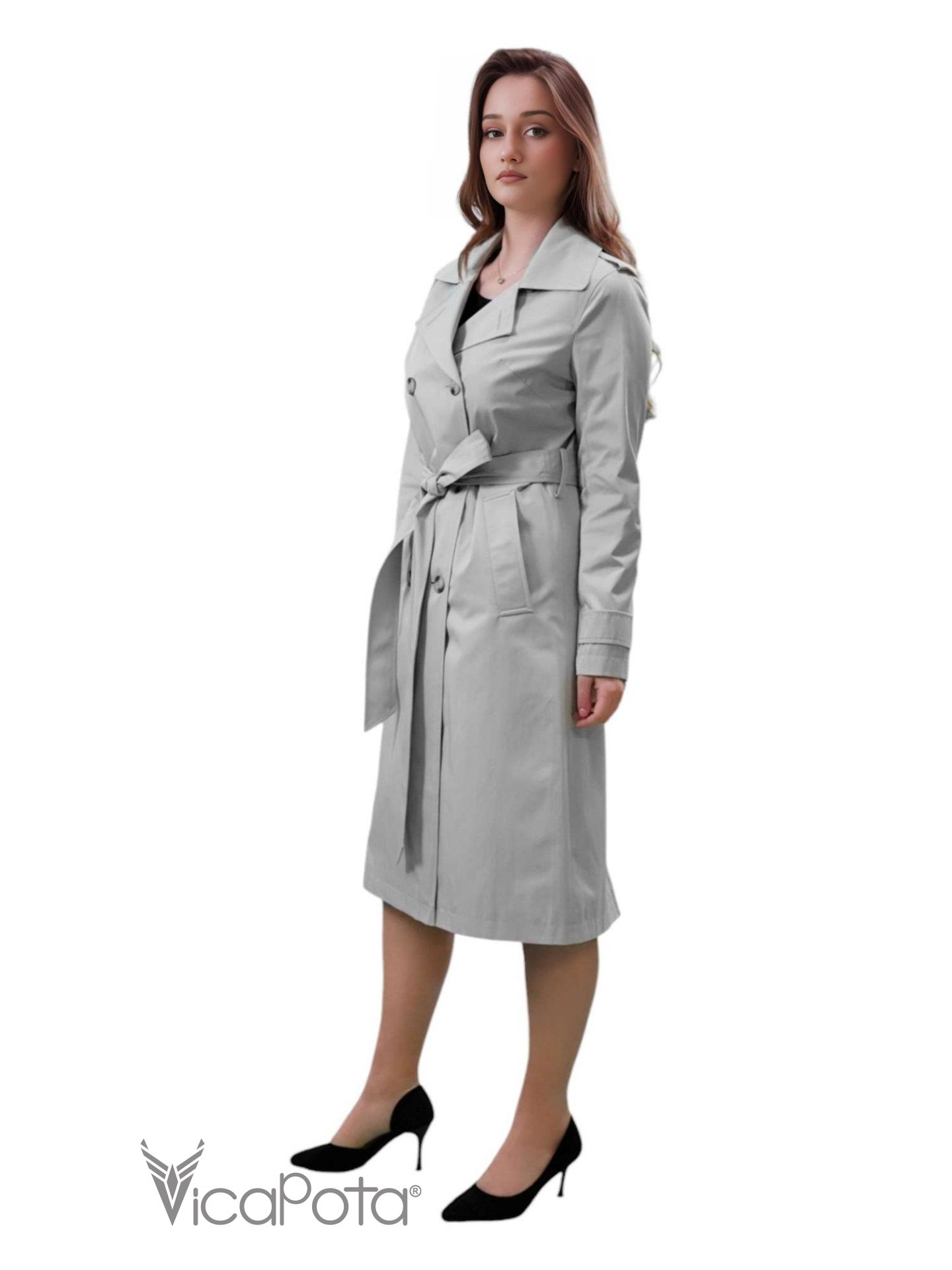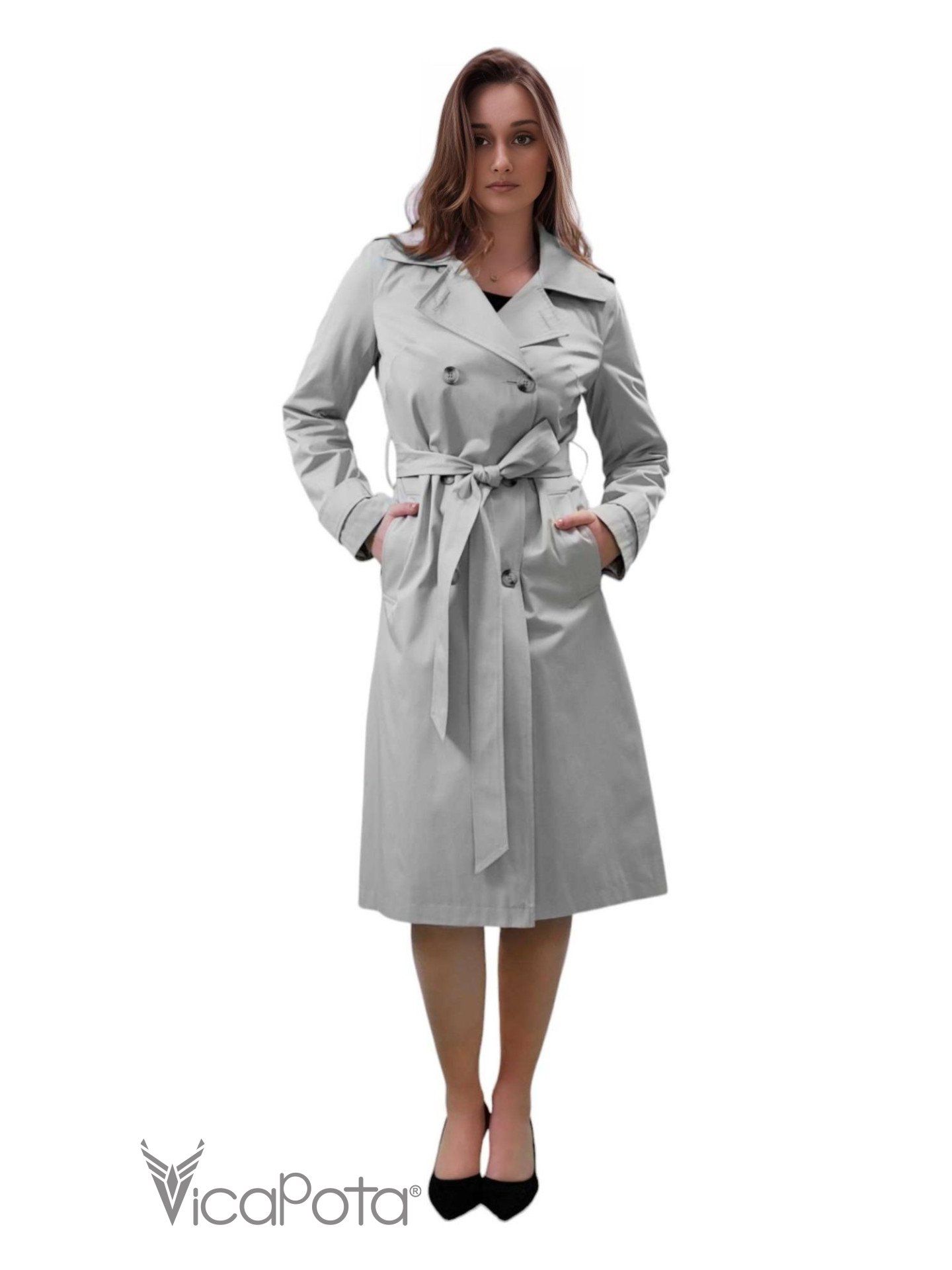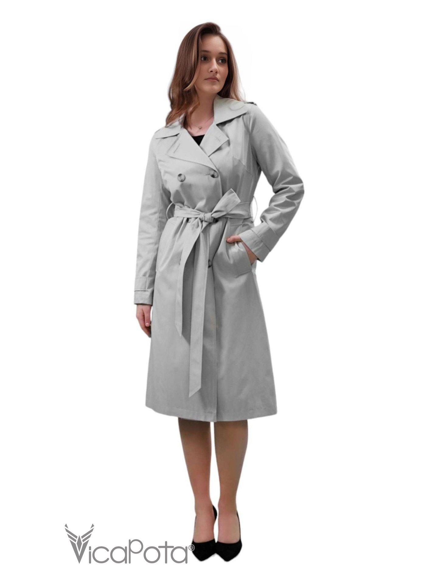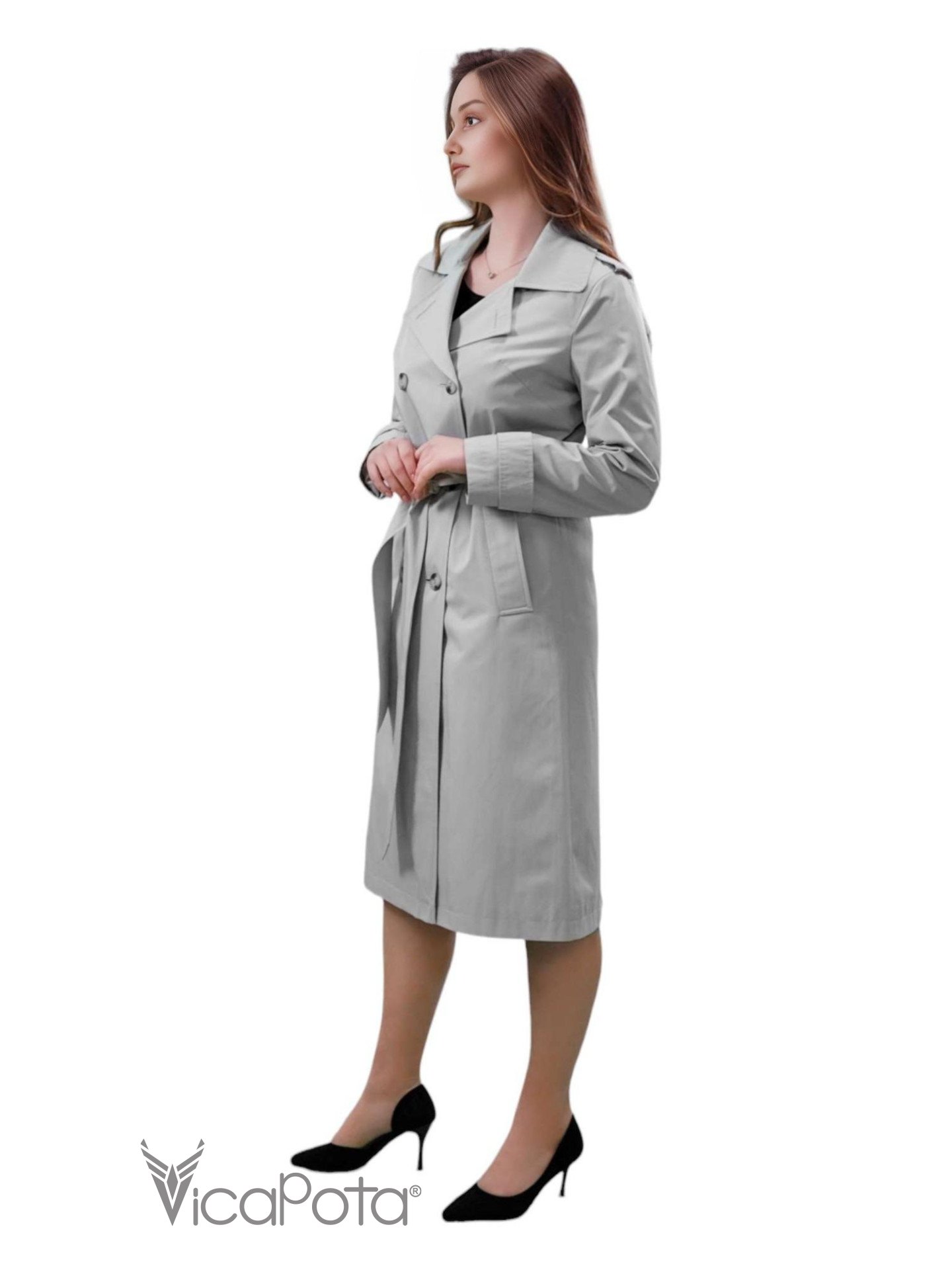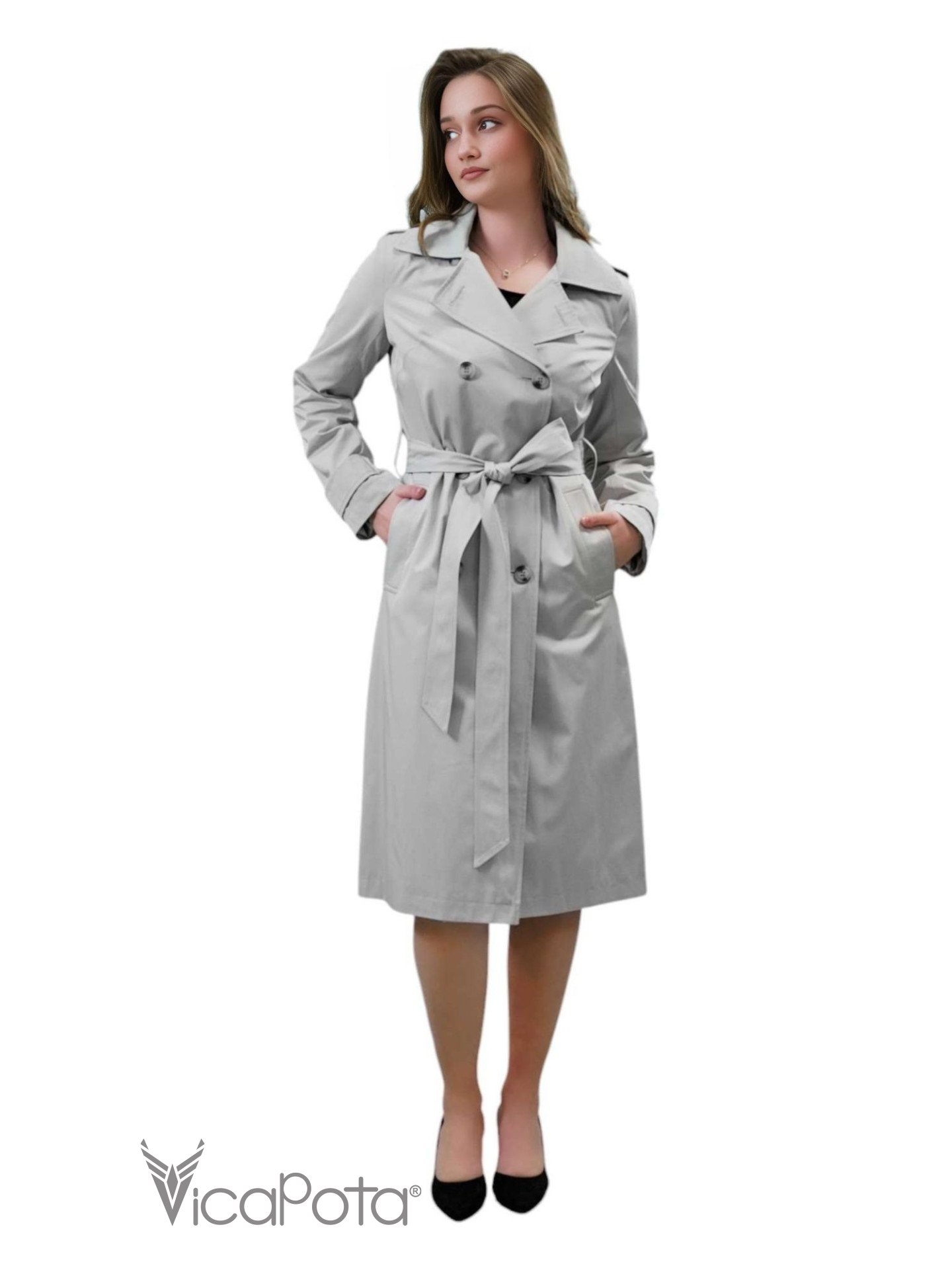 Елегантний сірий тренч стане ідеальним доповненням гардероба для тих, хто цінує вишуканість та функціональність. Класичний двобортний фасон із поясом акцентує увагу на талії, створюючи жіночний та витончений образ. Високоякісна тканина забезпечує комфорт та захист від вітру й дощу, роблячи цей тренч універсальним вибором для будь-якої погоди. Подовжений крій та строгий дизайн додають стилю, роблячи цей тренч підходящим як для повсякденних, так і для ділових образів. Стильний та практичний, він стане вашим надійним супутником на щодень і на важливі зустрічі.